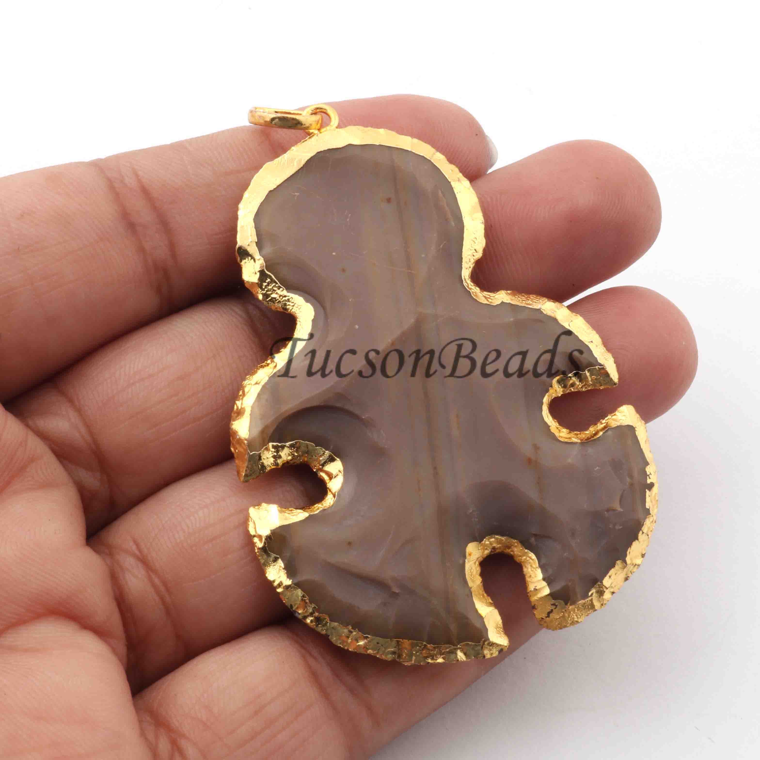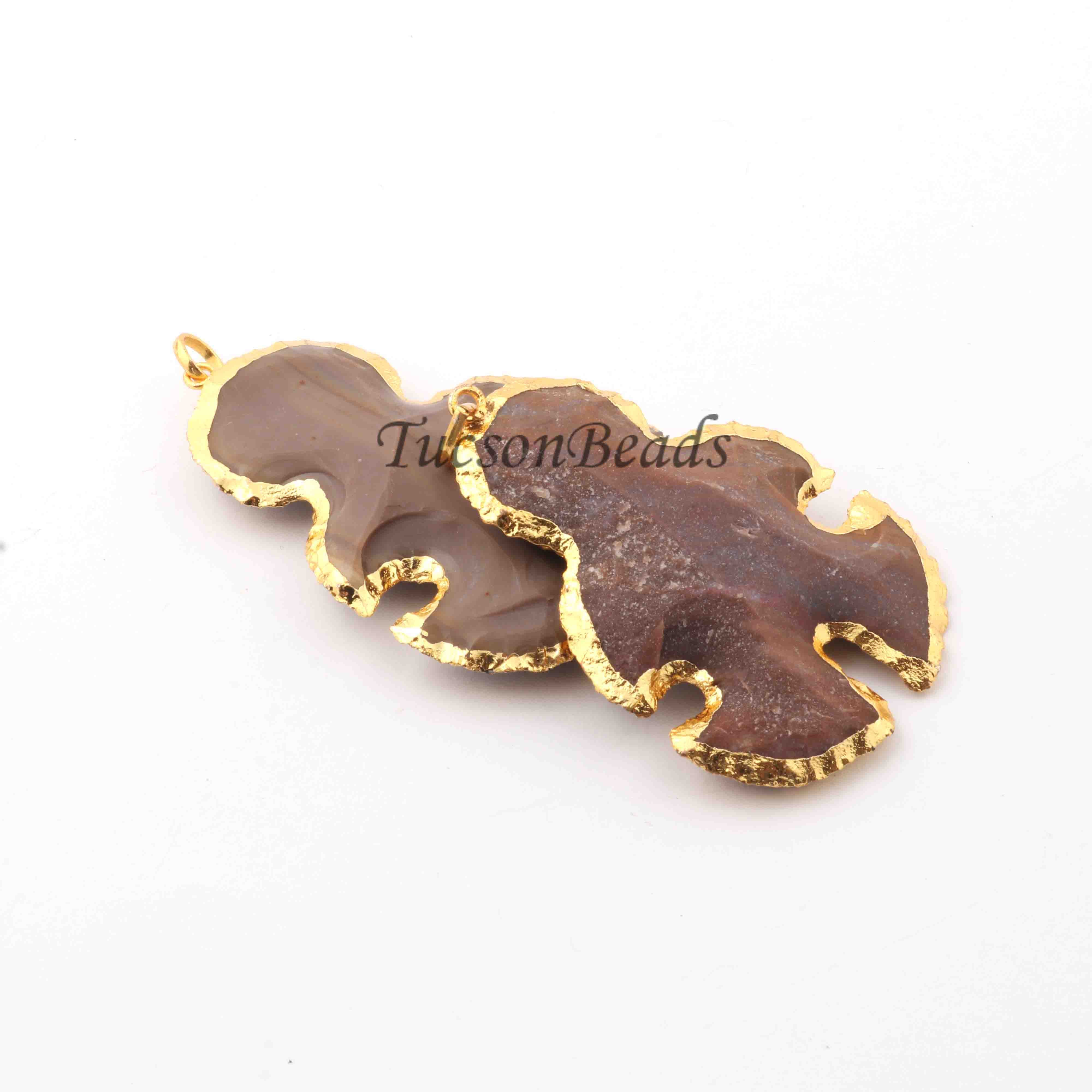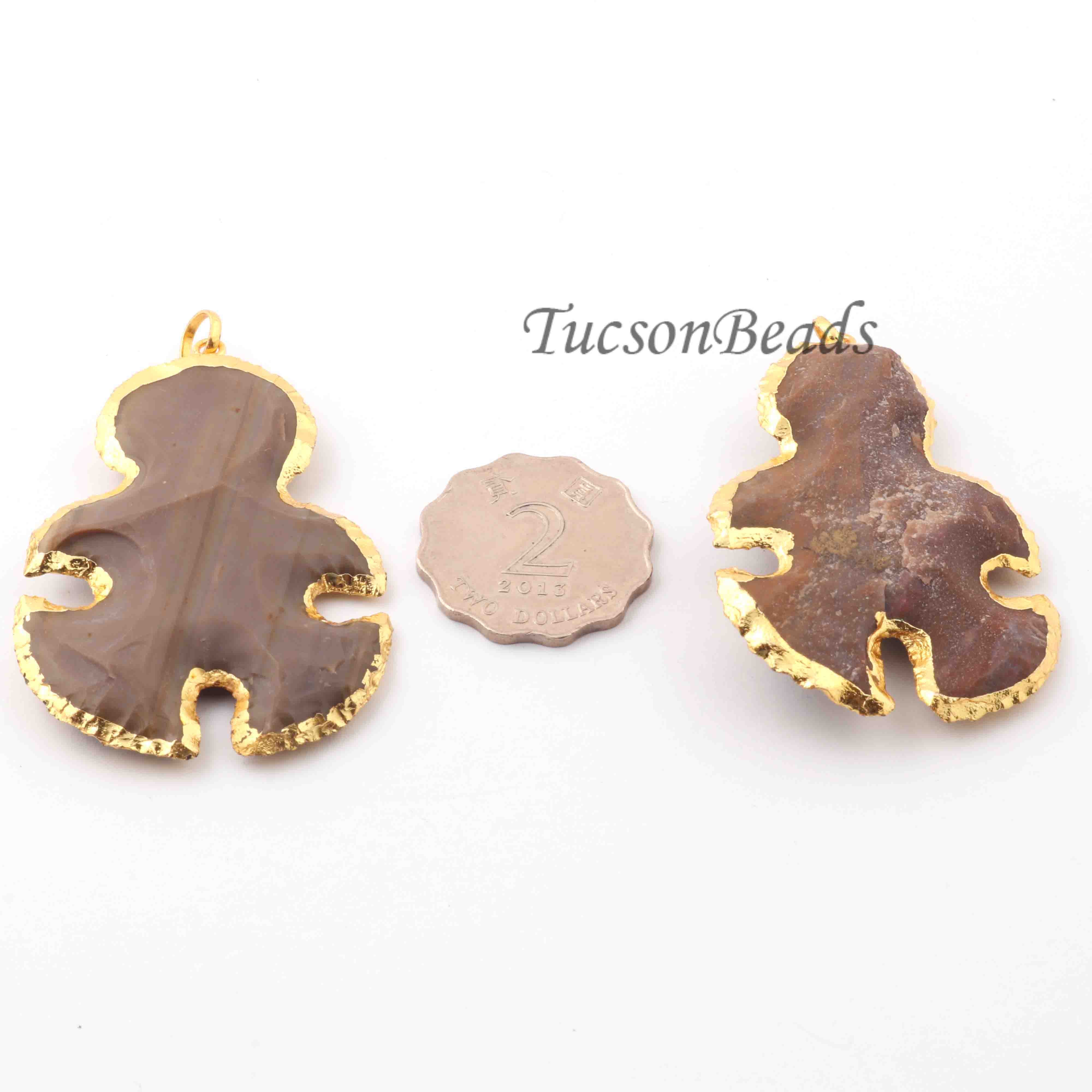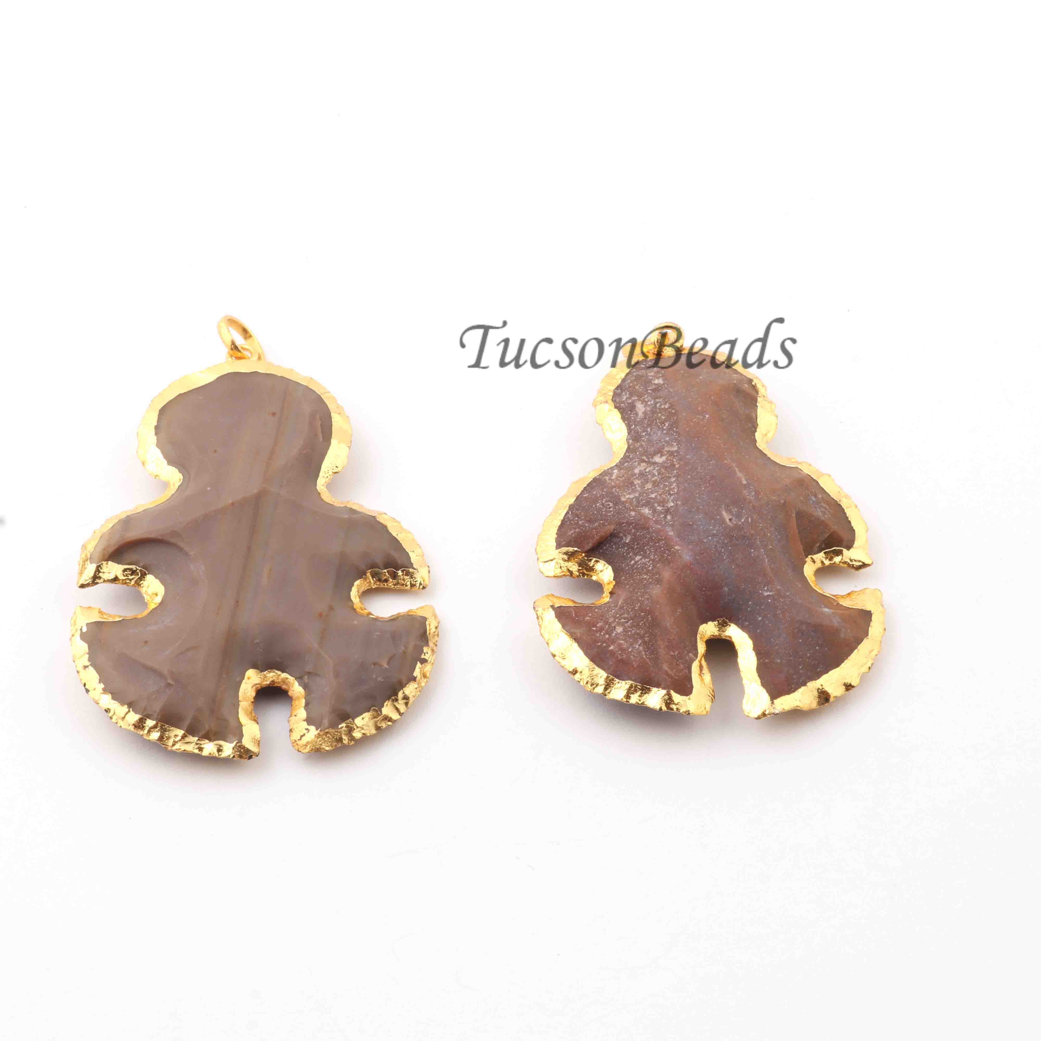 Listing Is For (2) PCS Jasper Snowman Arrowhead 24k Gold Plated Charm Single Bail Pendant-Electroplated With Gold Edge- 40mmx57mm AR141