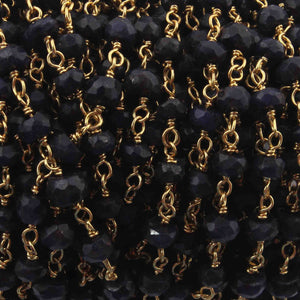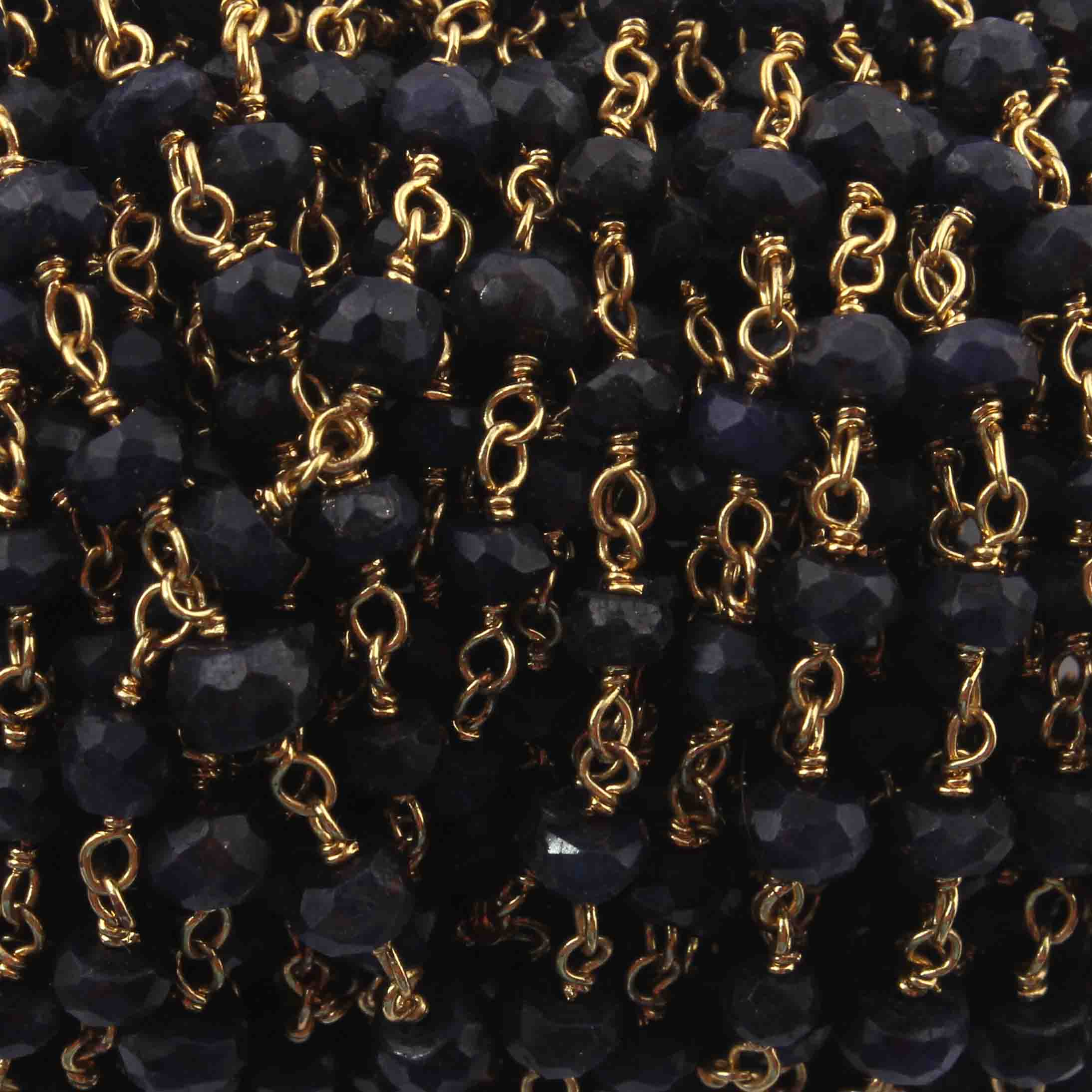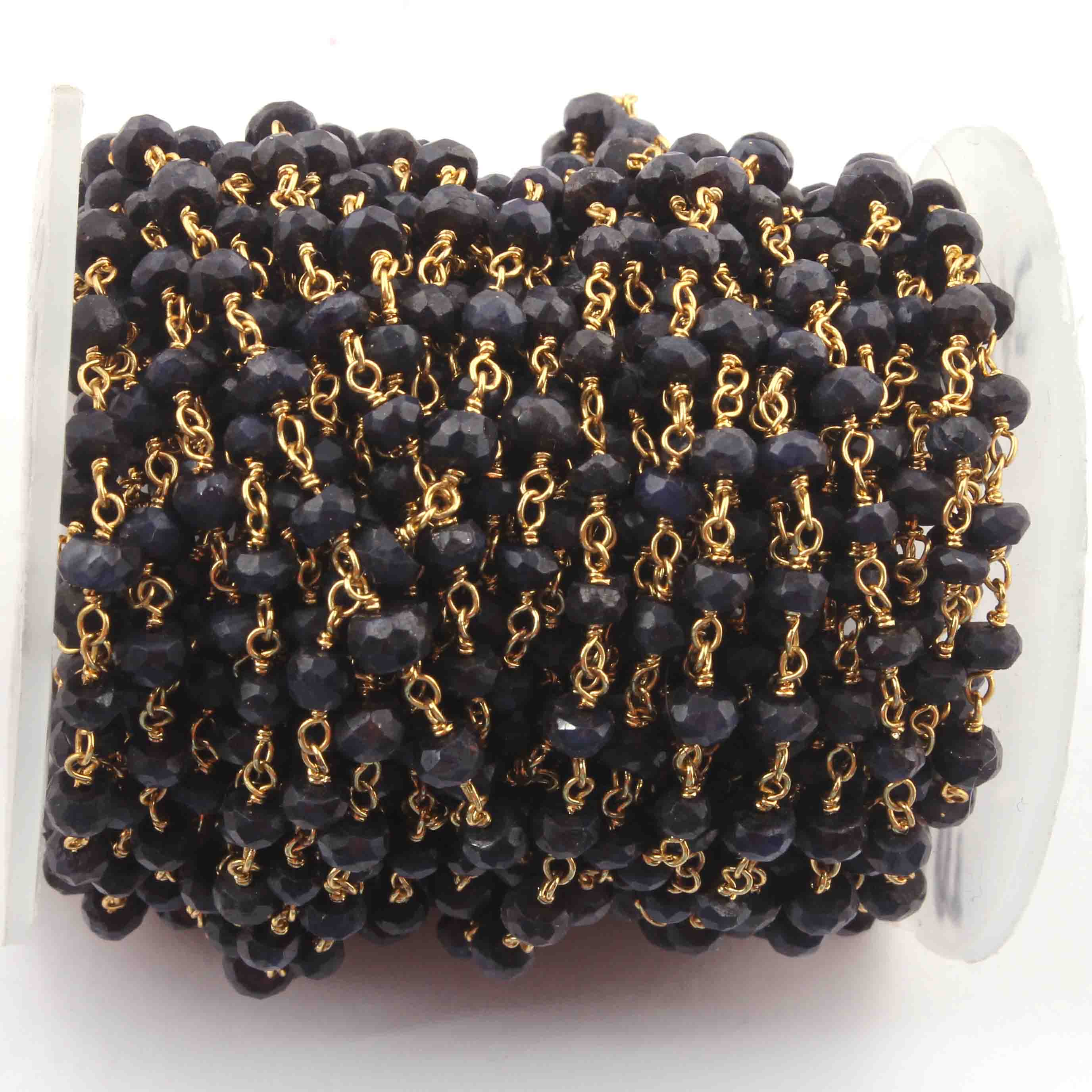 1 Feet Blue Sapphire Rondelle Rosary Style 925 Sterling Vermeil Beaded Chain- 3mm-3.5mm- Vermeil wire Chain SRC018