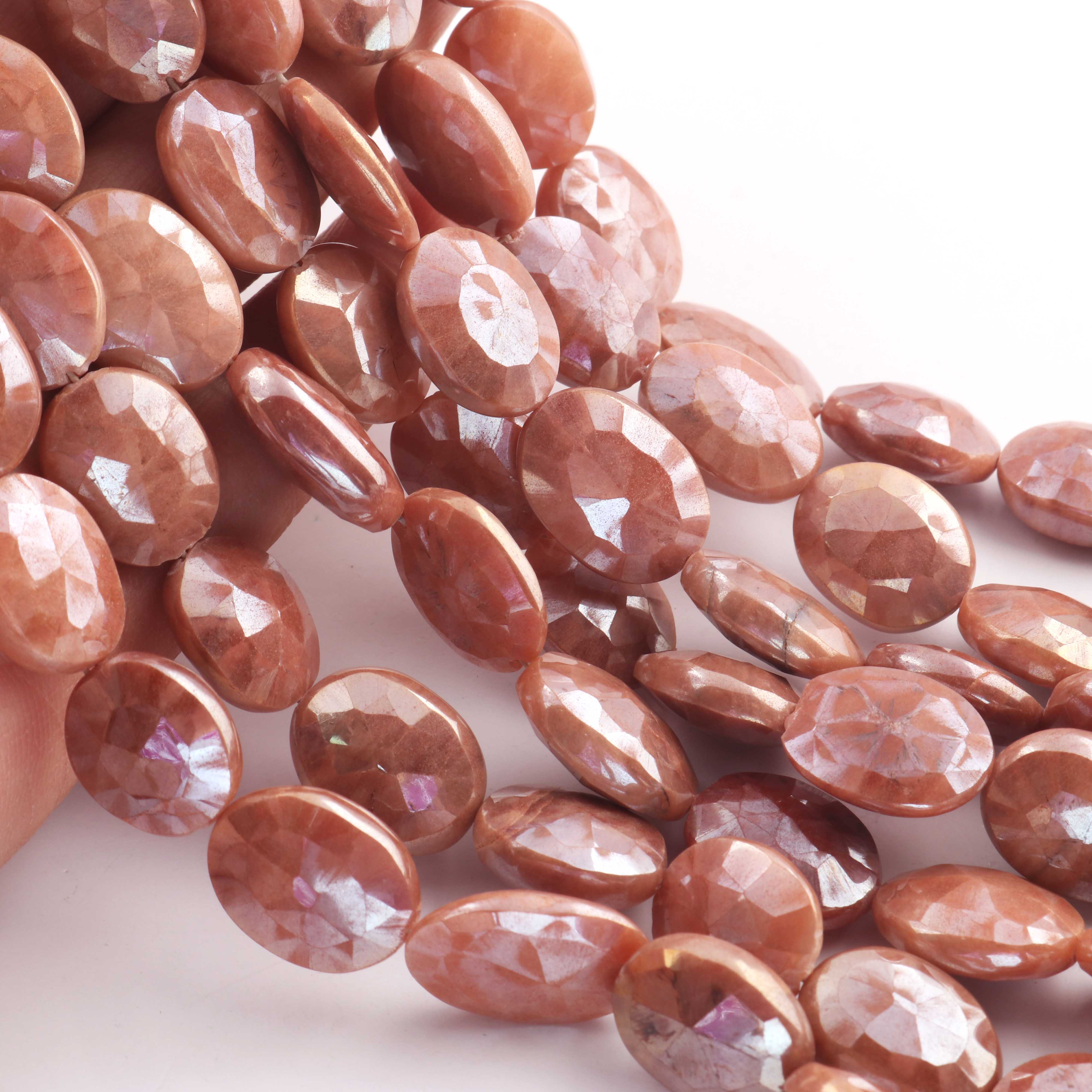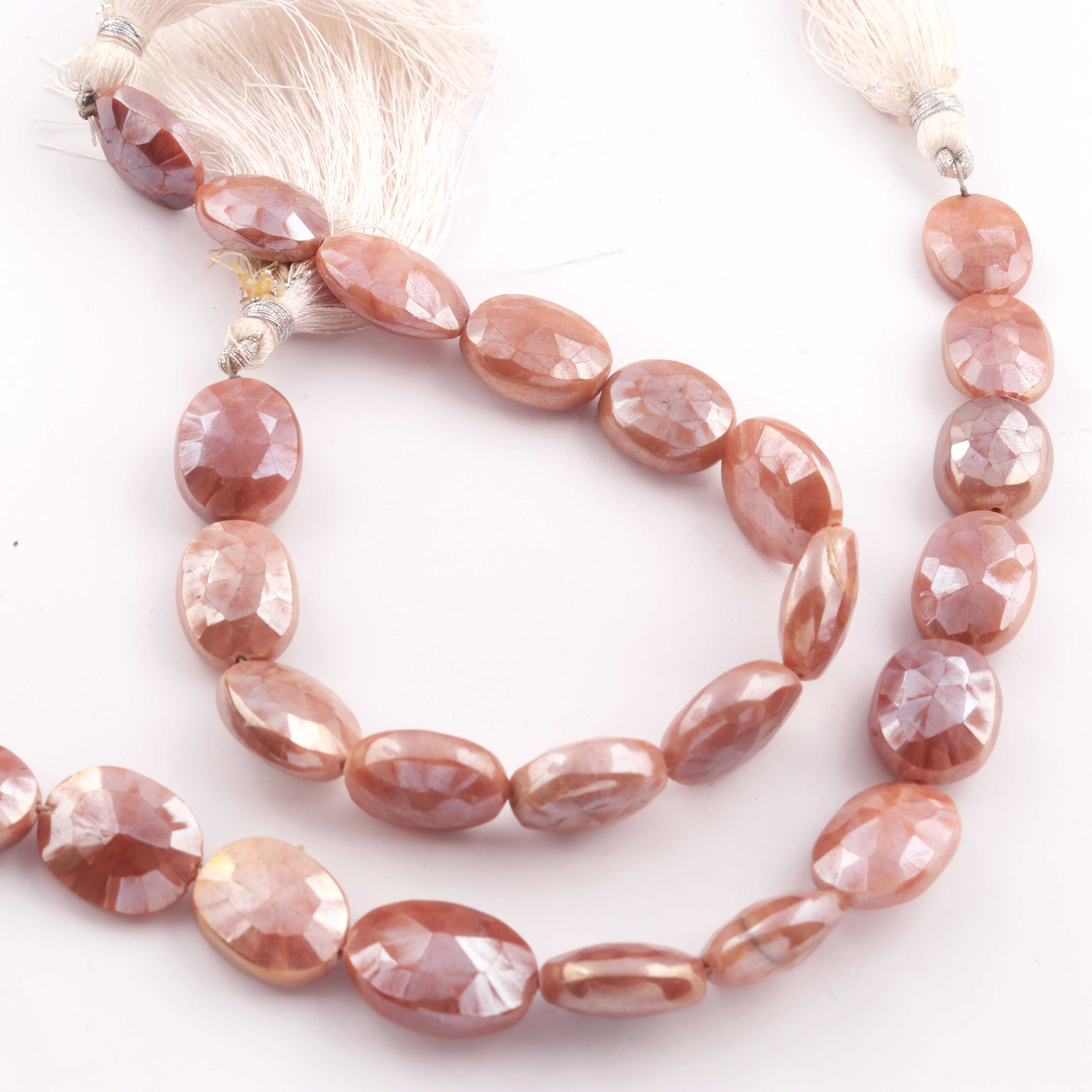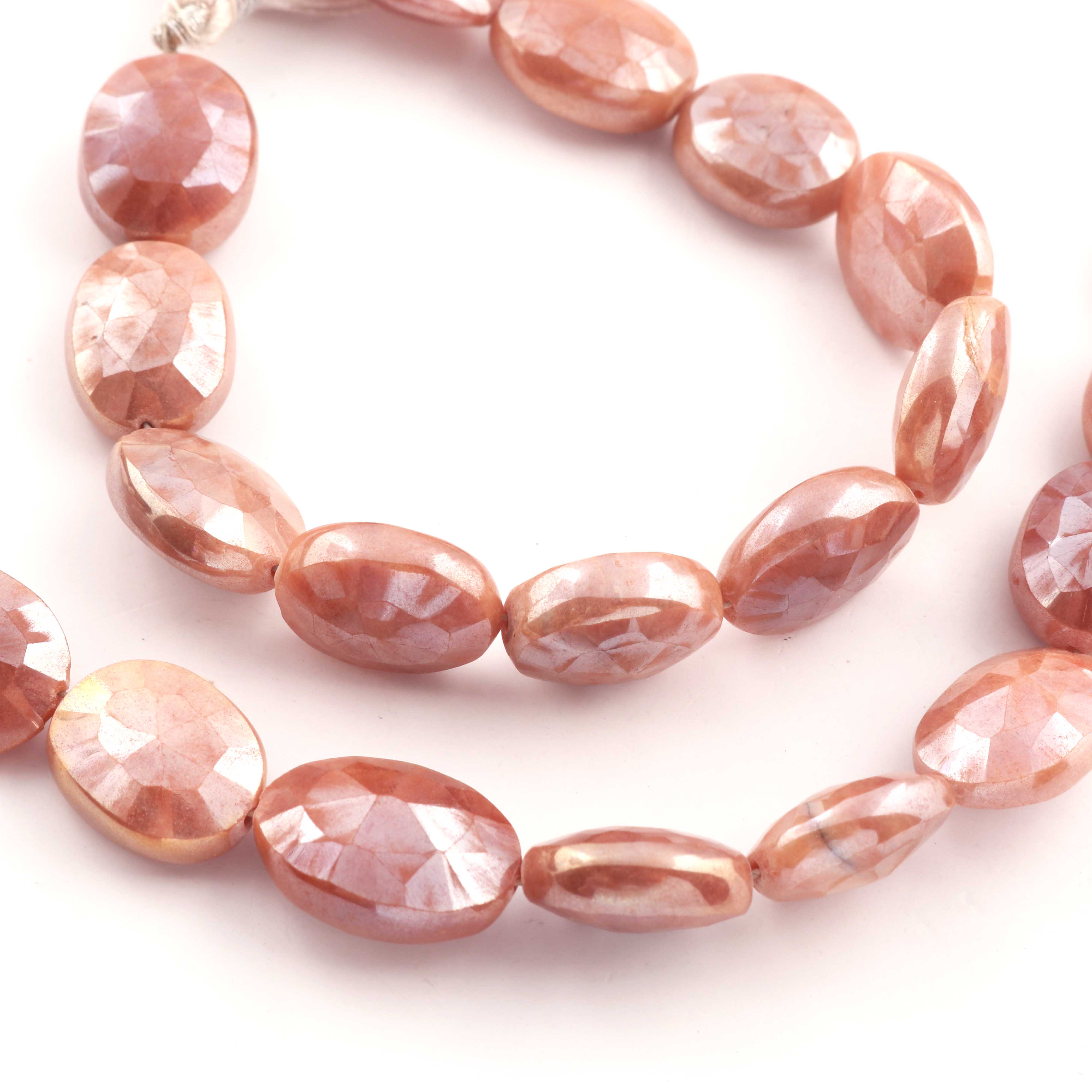 1 Strand Peach Moonstone Silver Coated Faceted Briolettes - Oval Shape Briolettes - 15mmx12mm -19mmx13mm 8.5Inches BR0709
