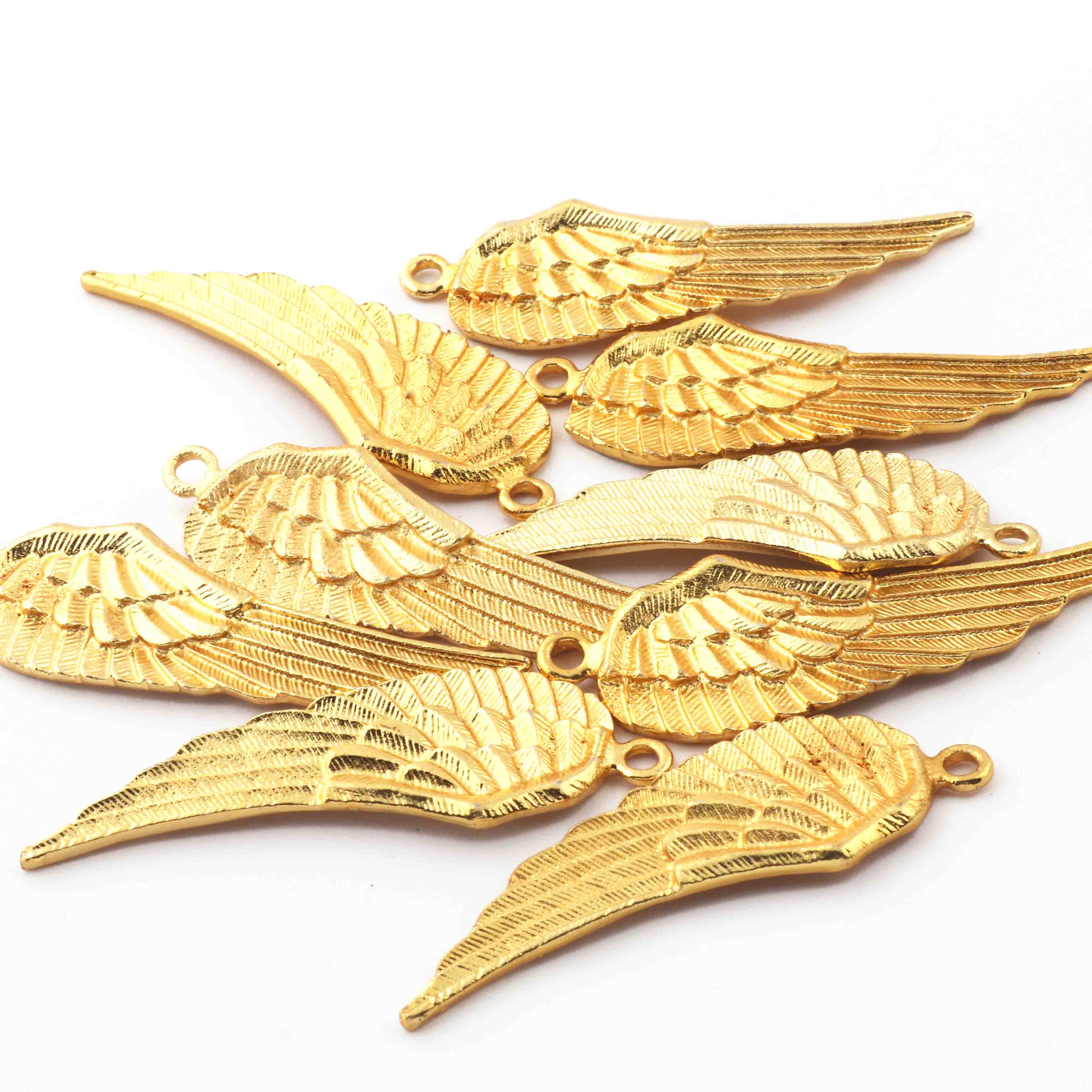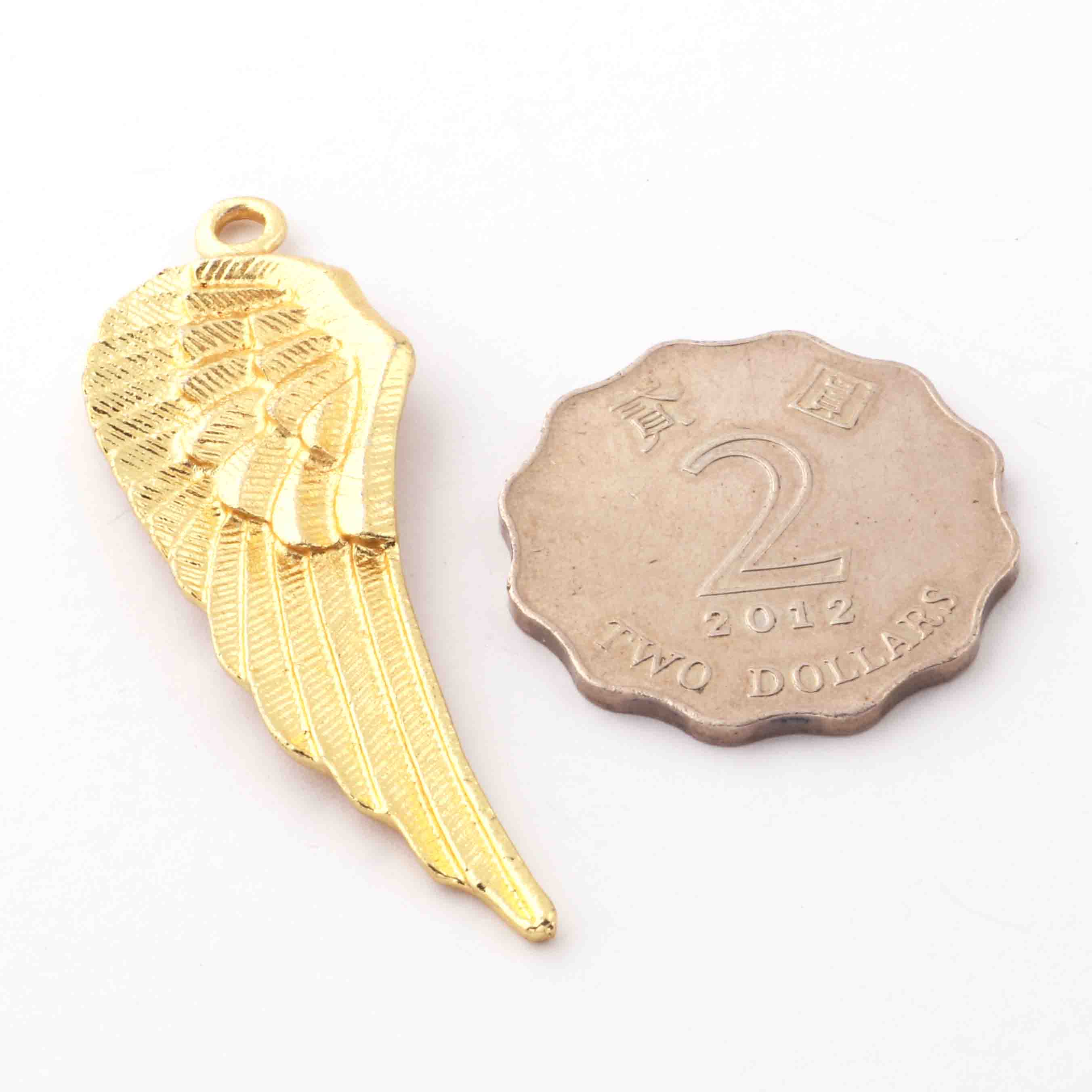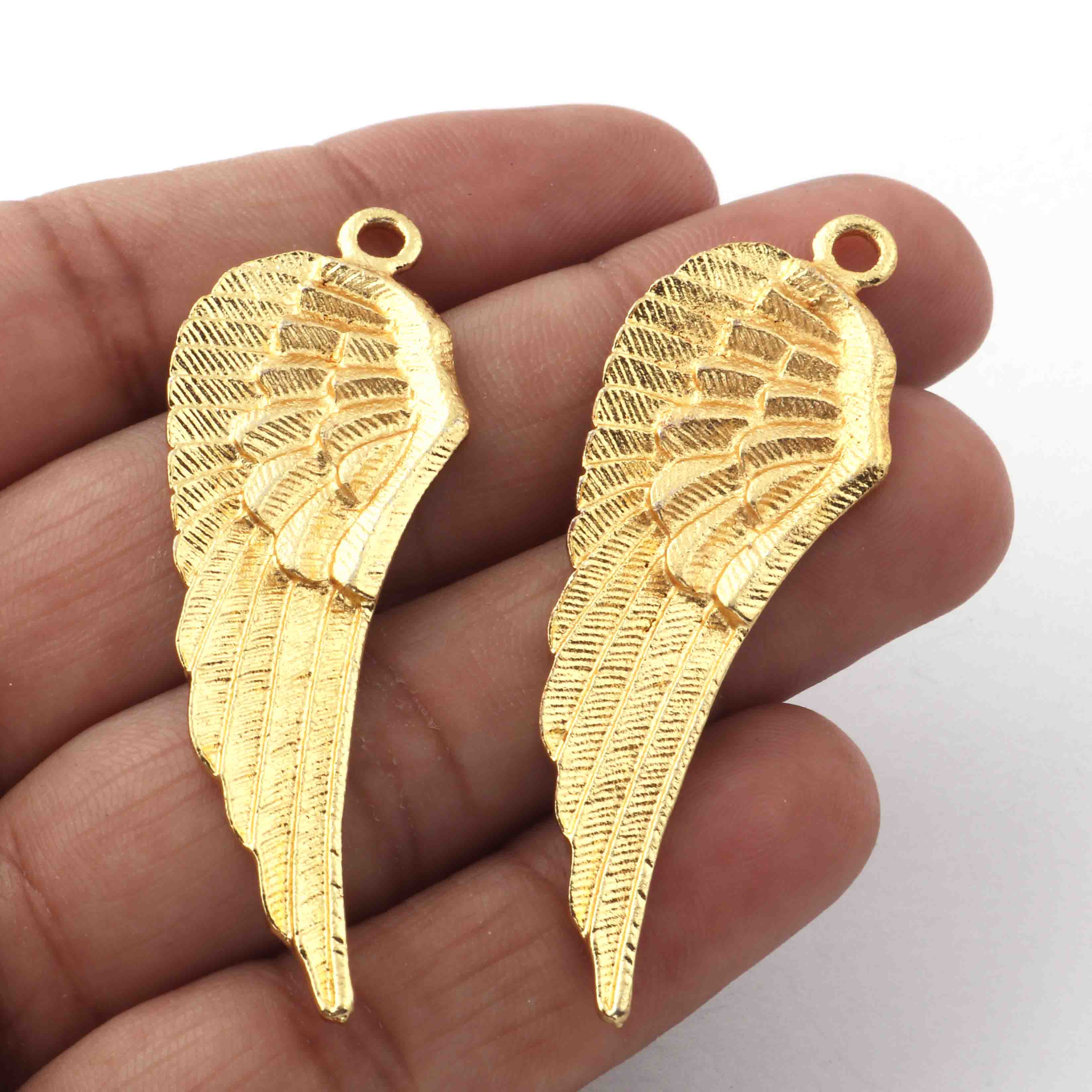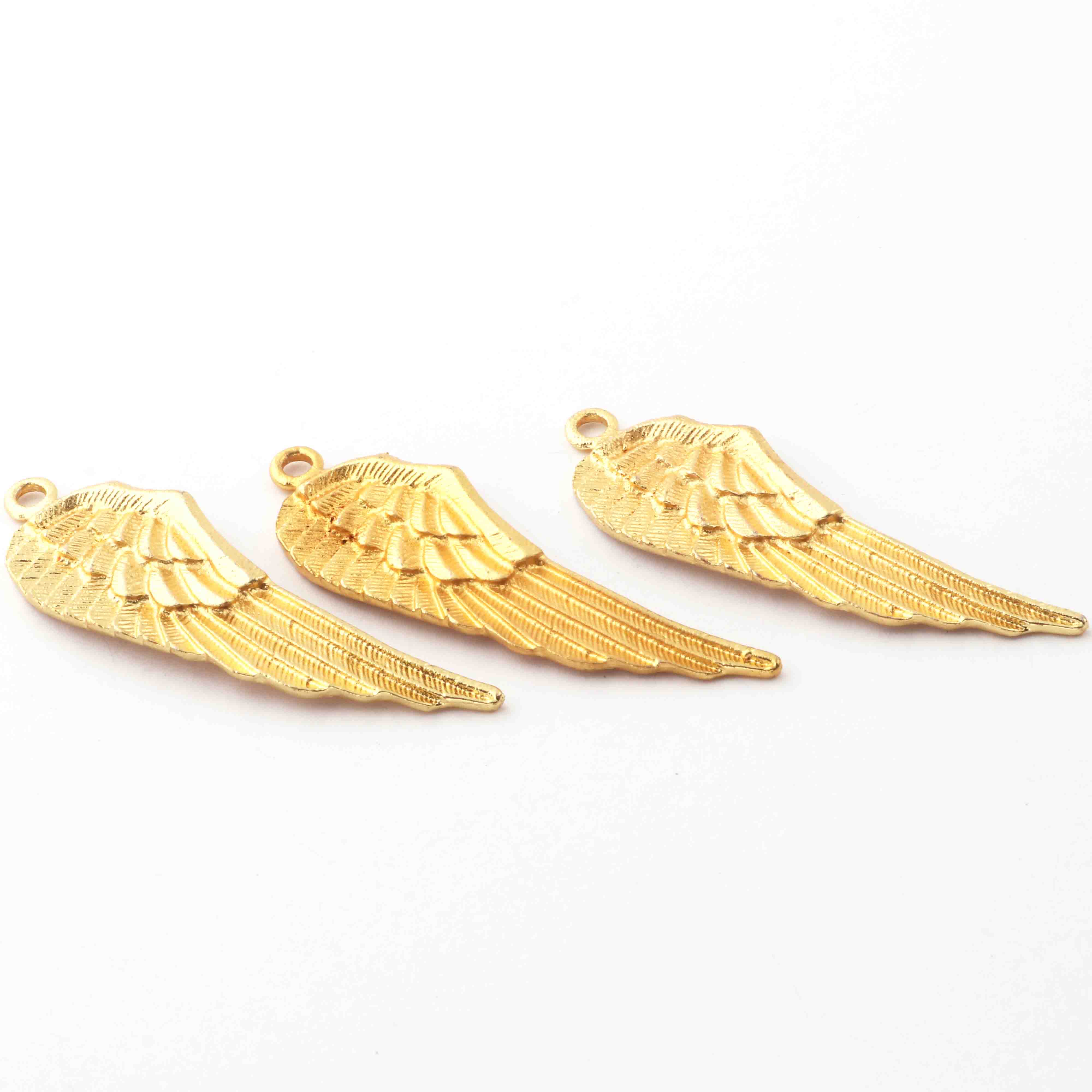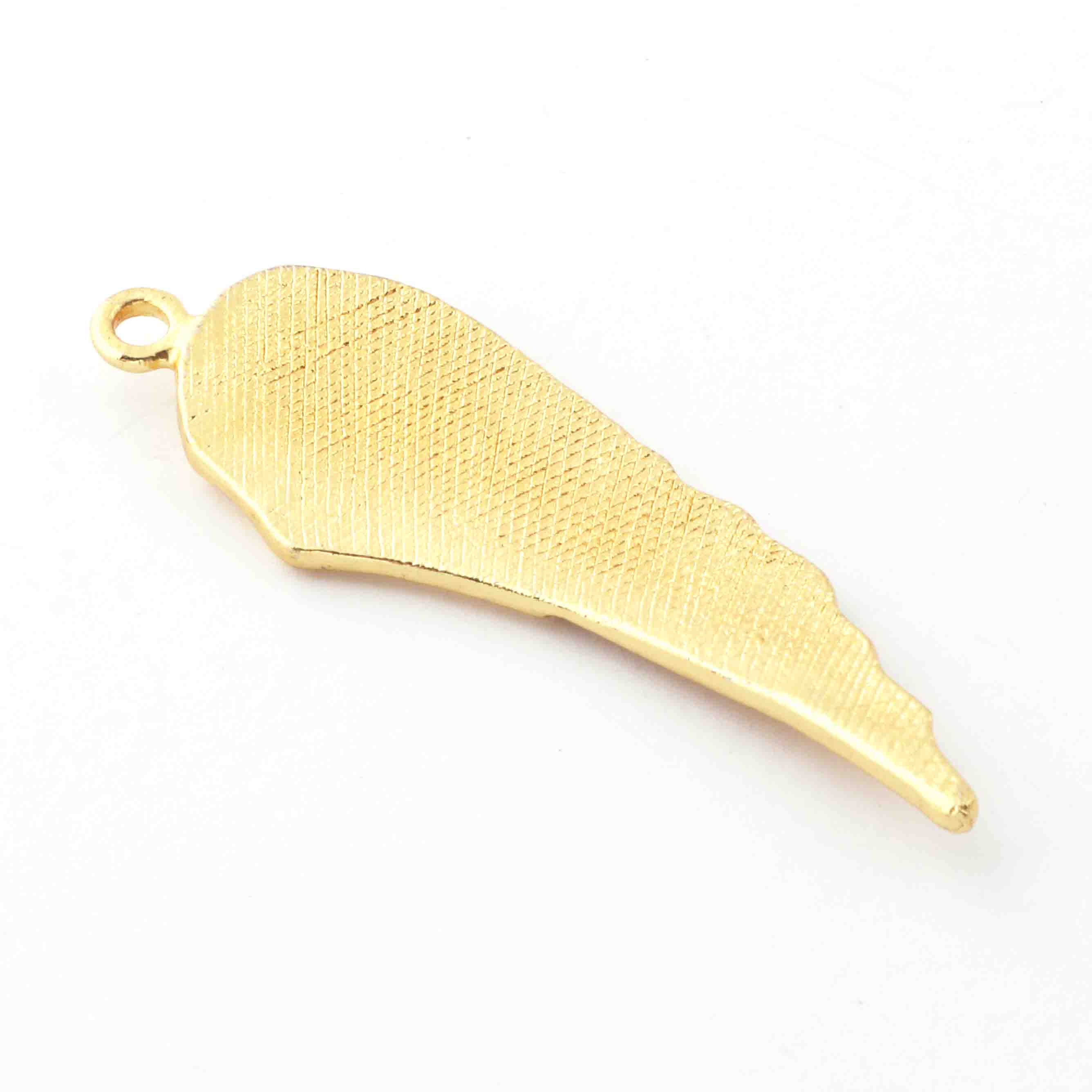 5 Pc Gold Feather Charm Pendant - 24k Matte Gold Plated - Brass Gold Feather Pendant 54mmx18mm GPC532