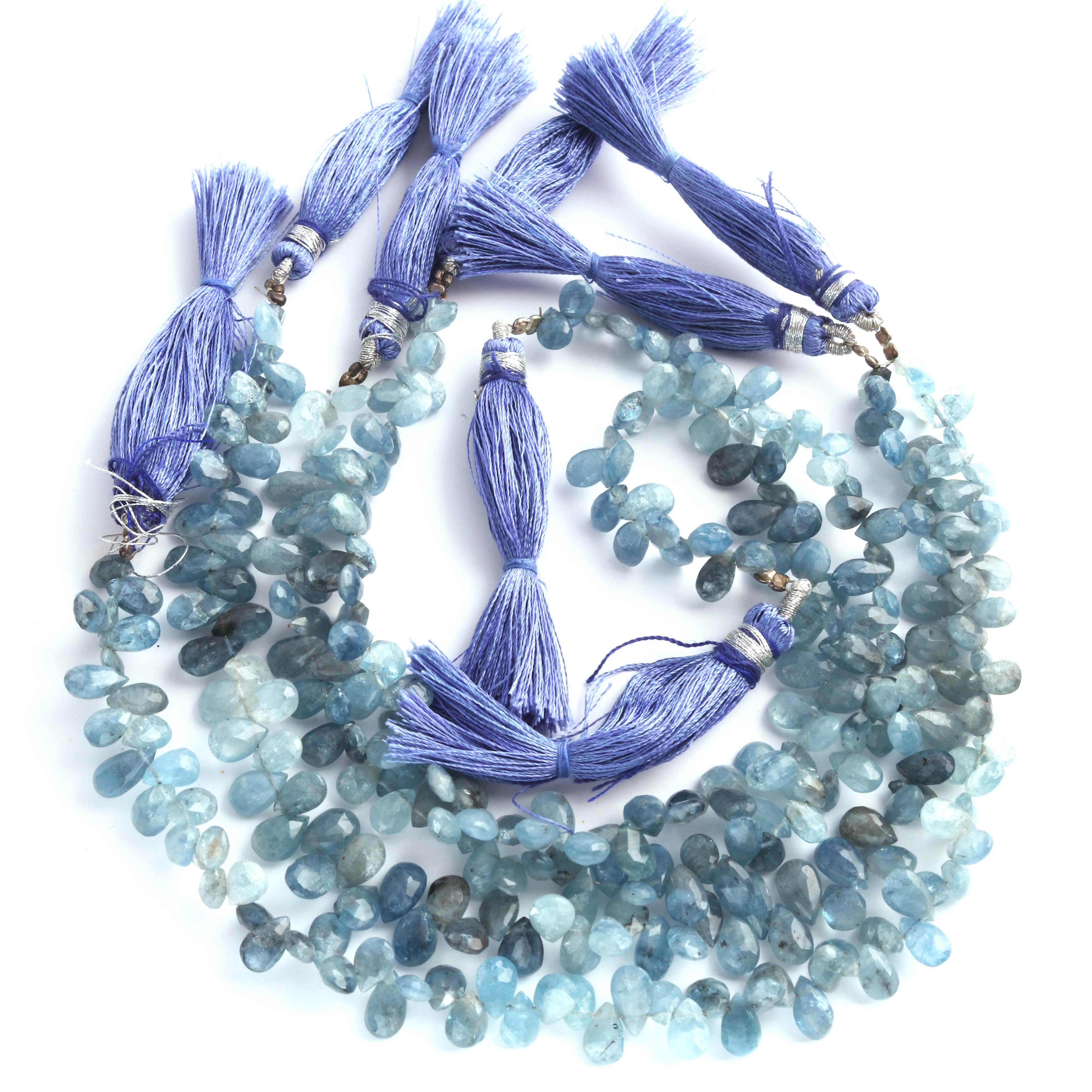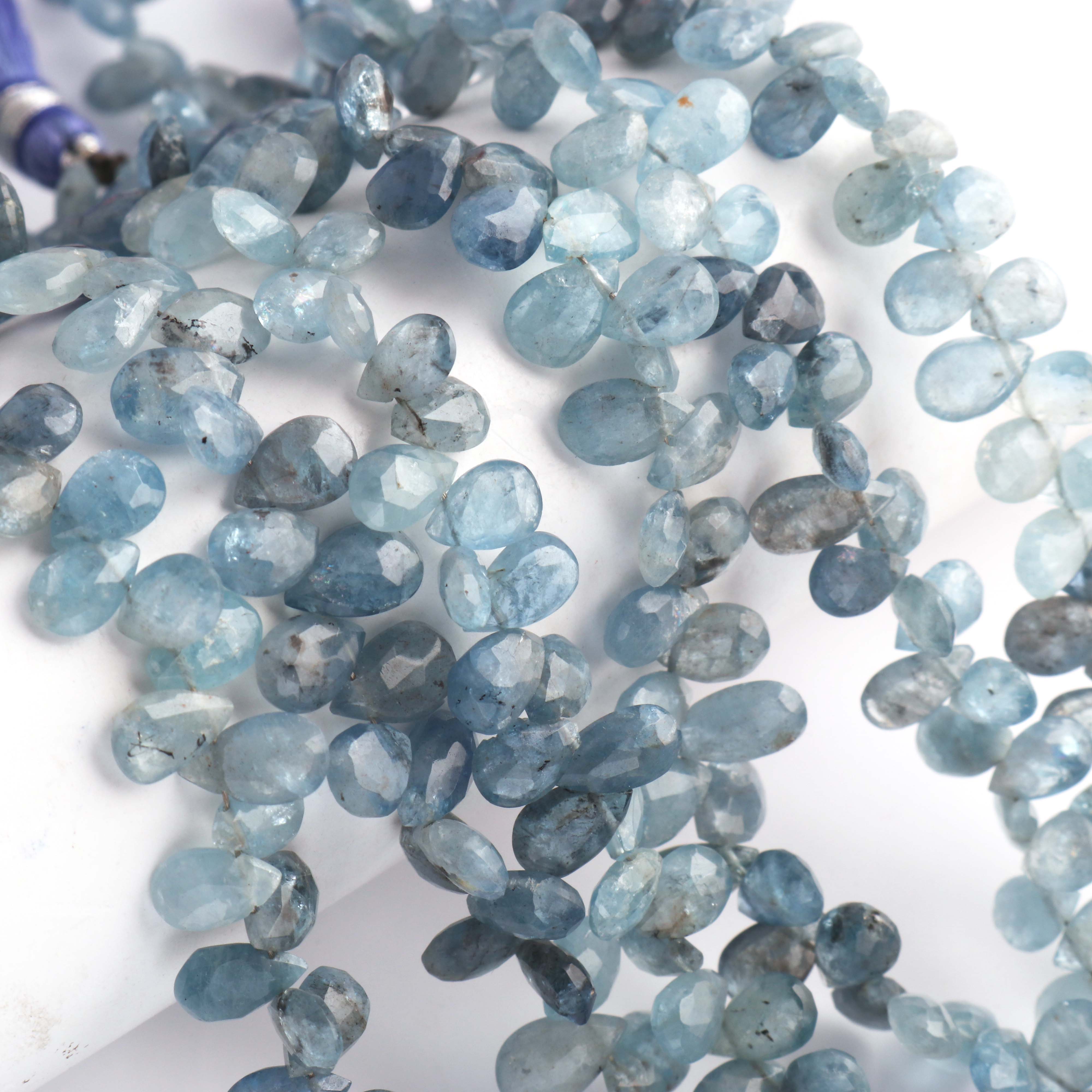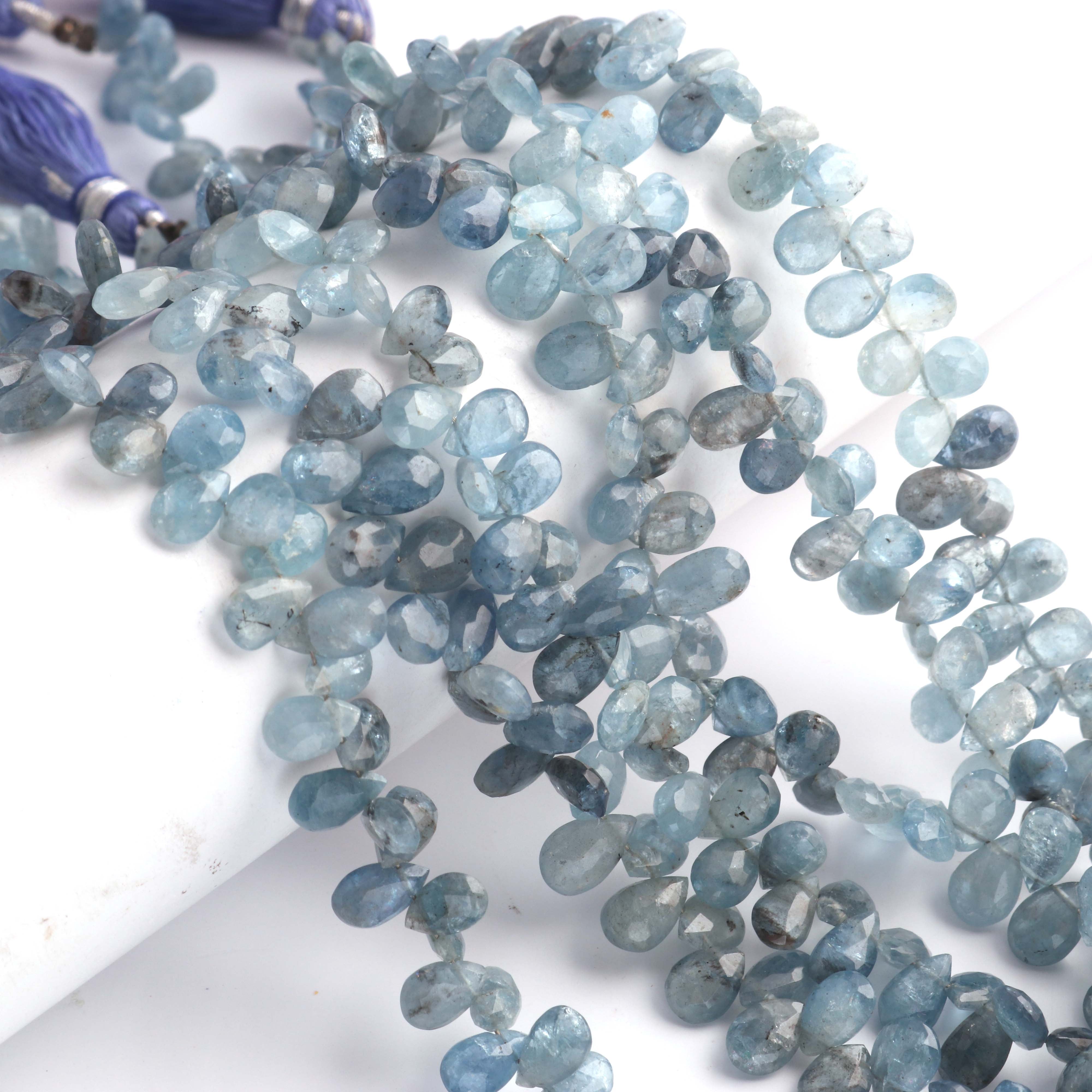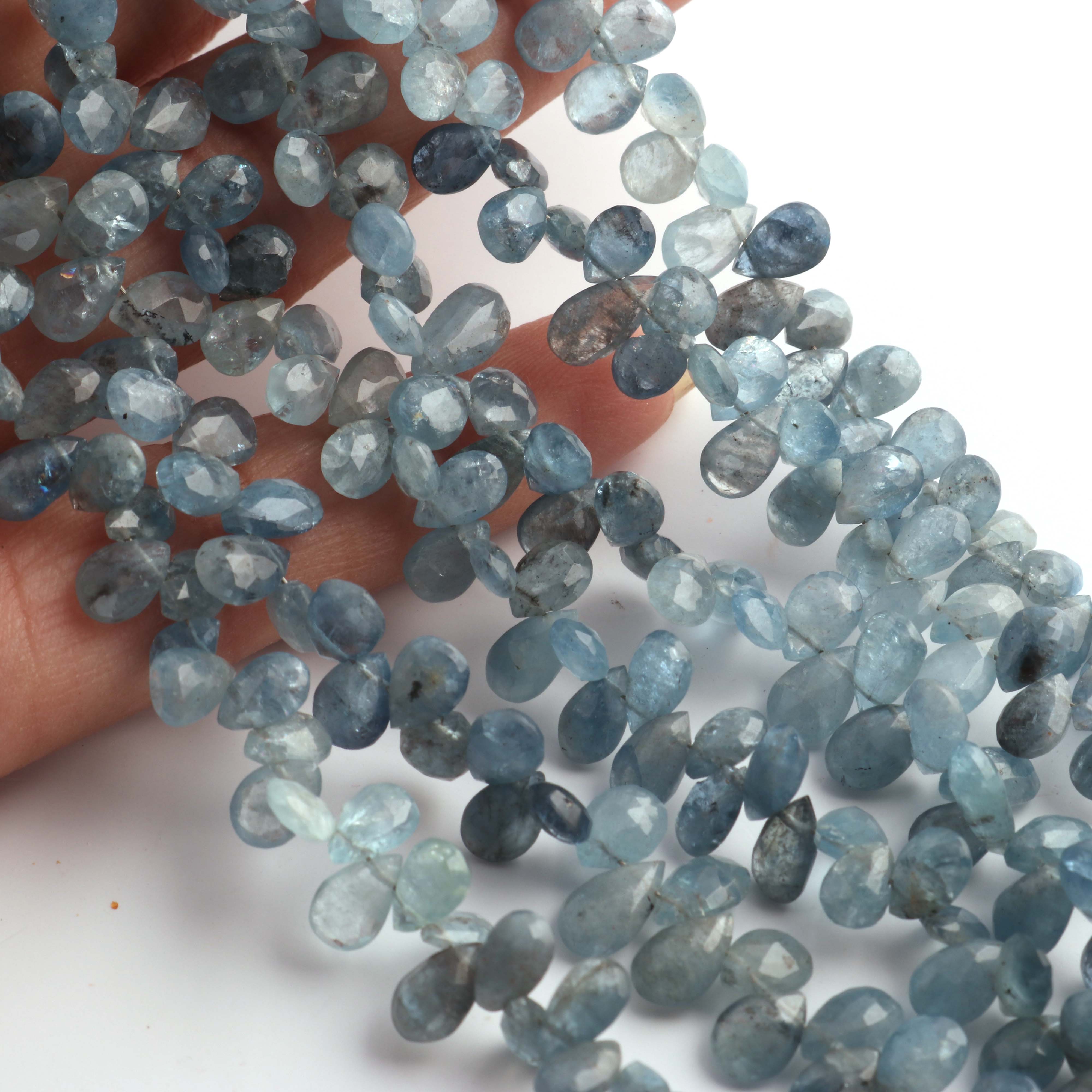 1 Long Strand Natural Light Blue Kyanite Faceted Briolettes -Pear Shape Briolettes -  6mmx4mm-8mmx5mm- 9 Inches BR0889