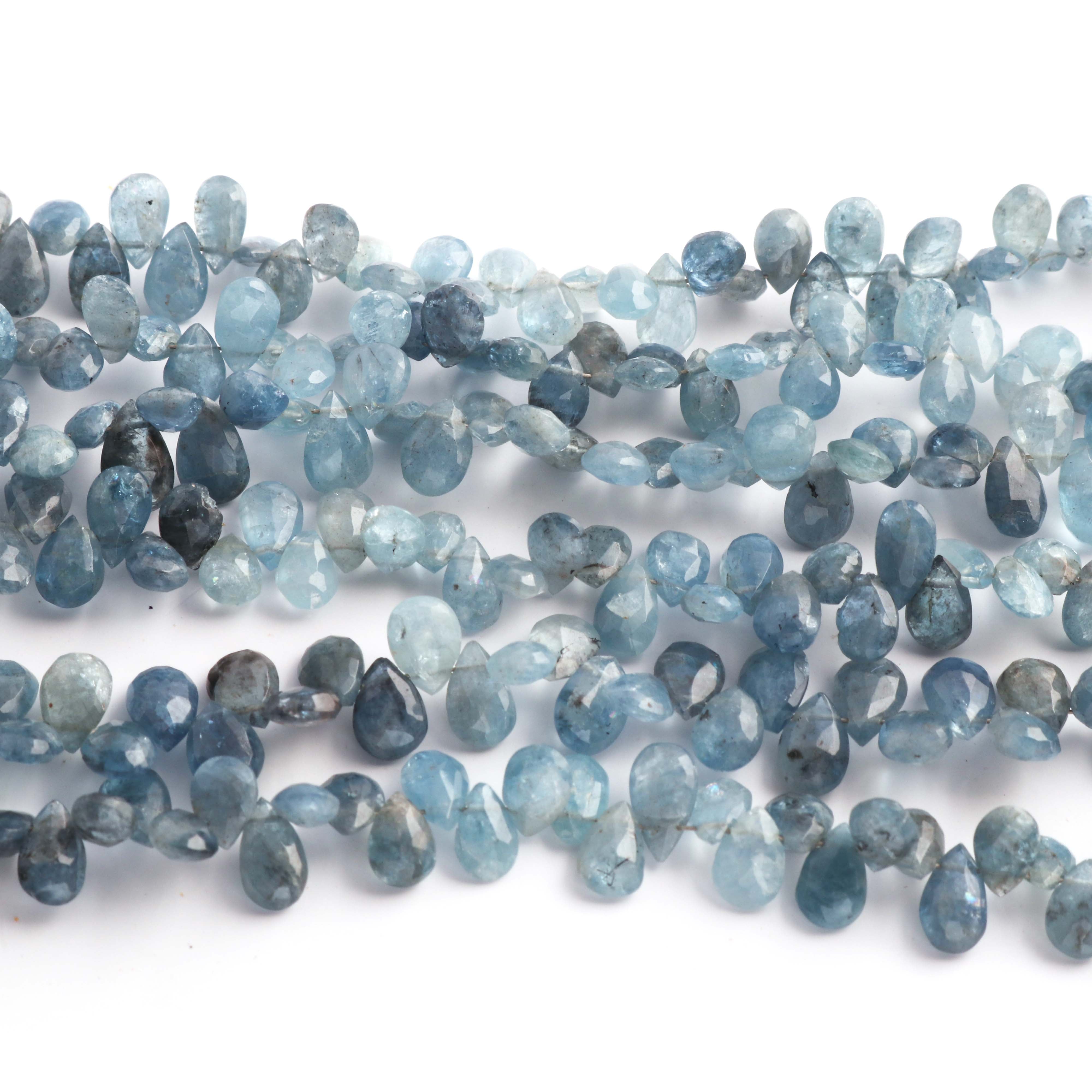 1 Long Strand Natural Light Blue Kyanite Faceted Briolettes -Pear Shape Briolettes - 6mmx4mm-8mmx5mm- 9 Inches BR0889