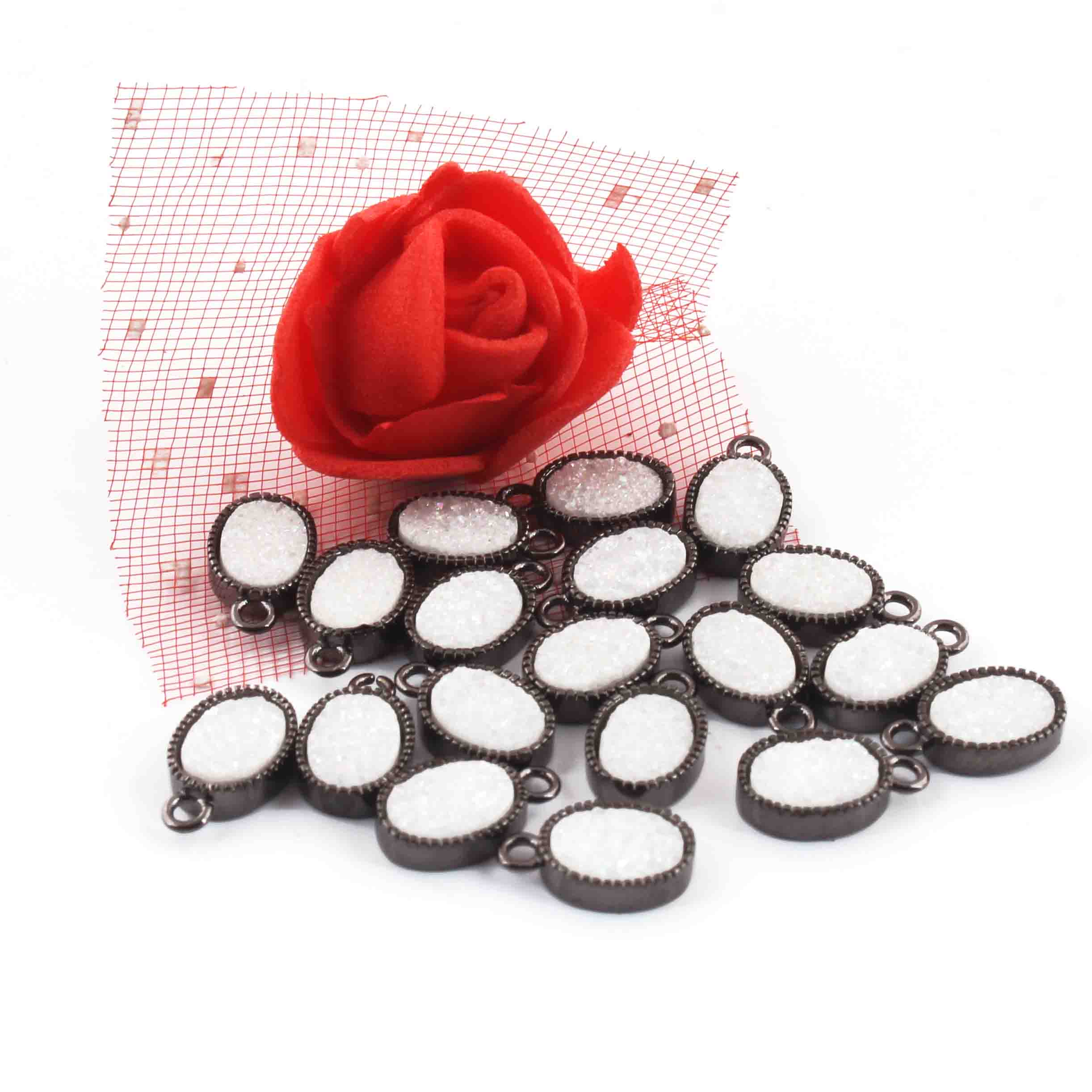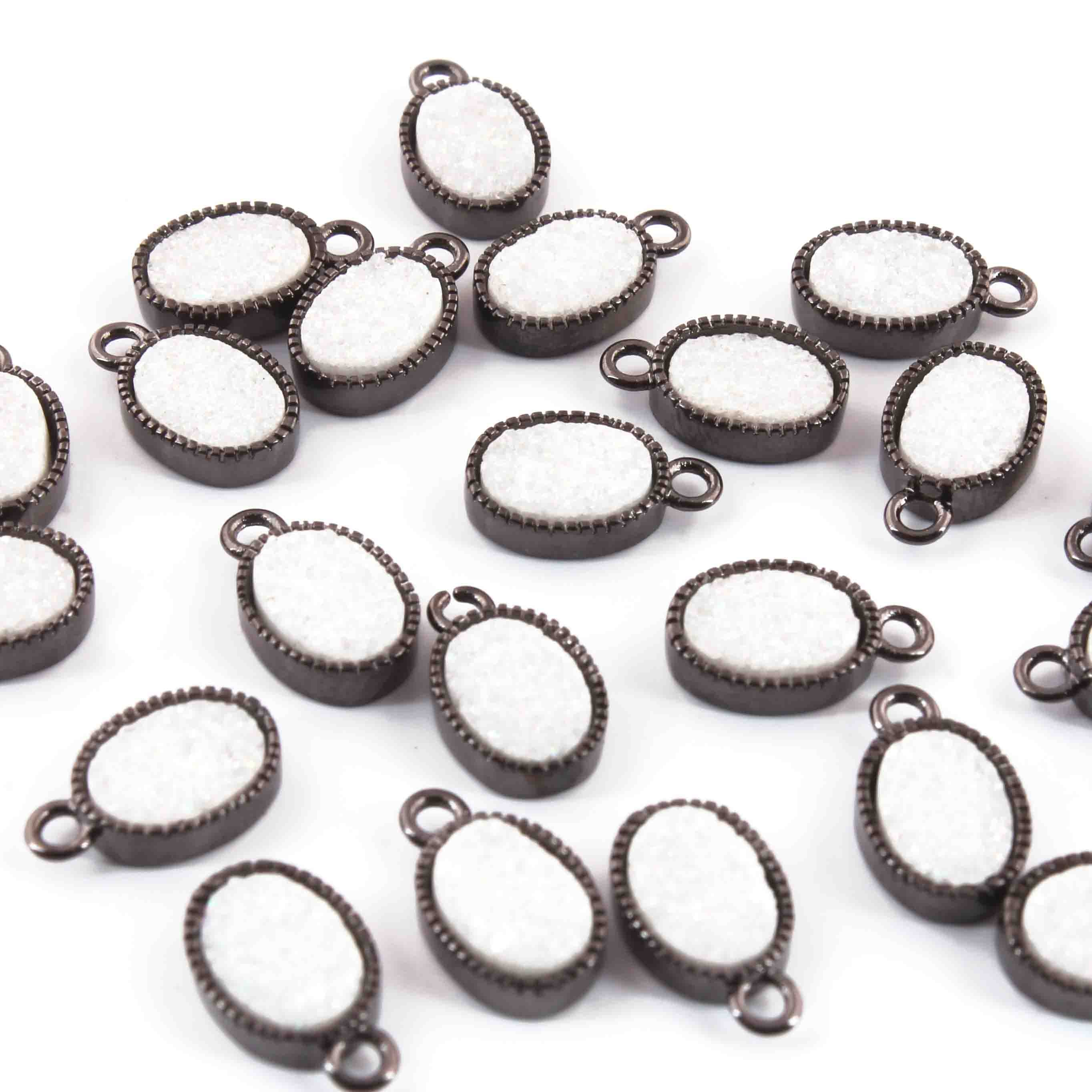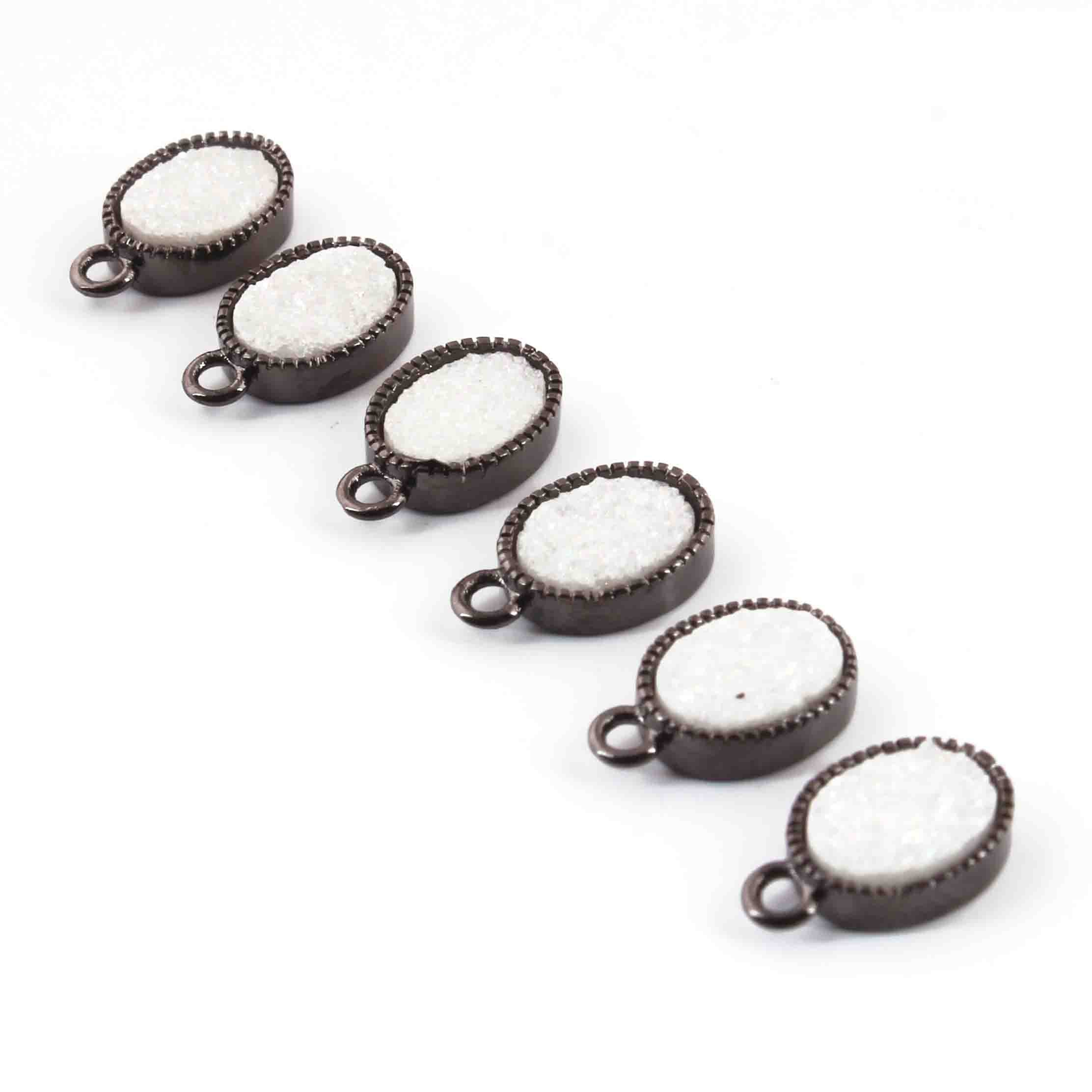 9 Pcs Mystic Druzy Pendant Oval Shape Pendant, Oxidized Silver Plated, Titanium Pendant,Bezel Oval Pendant 11mmX6mm PC994