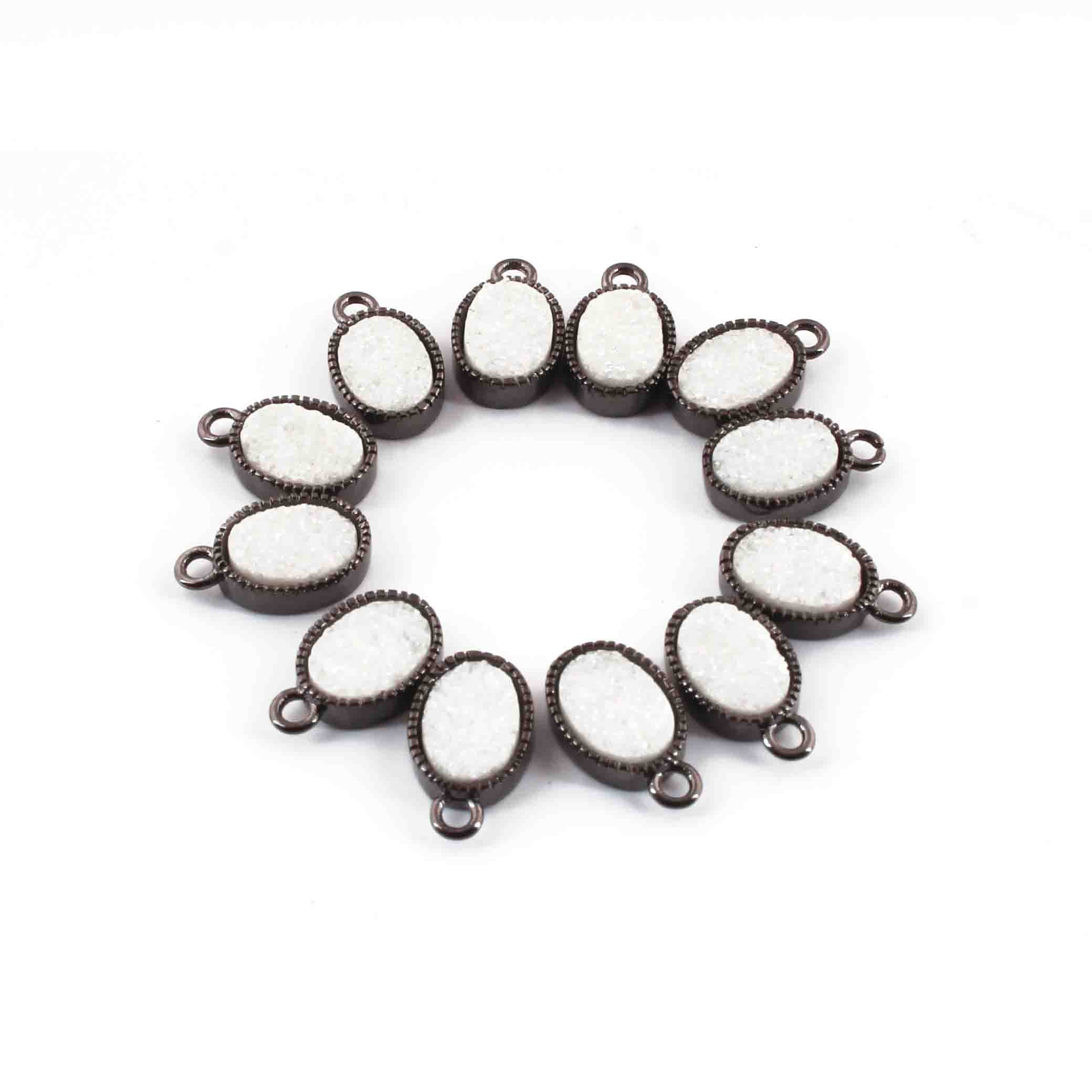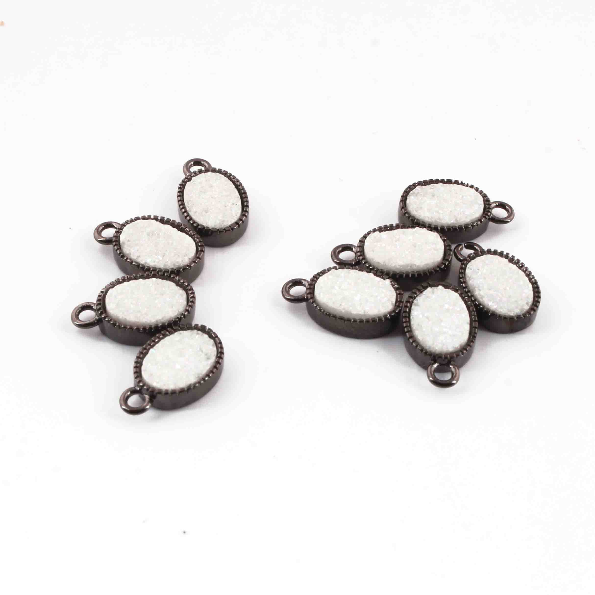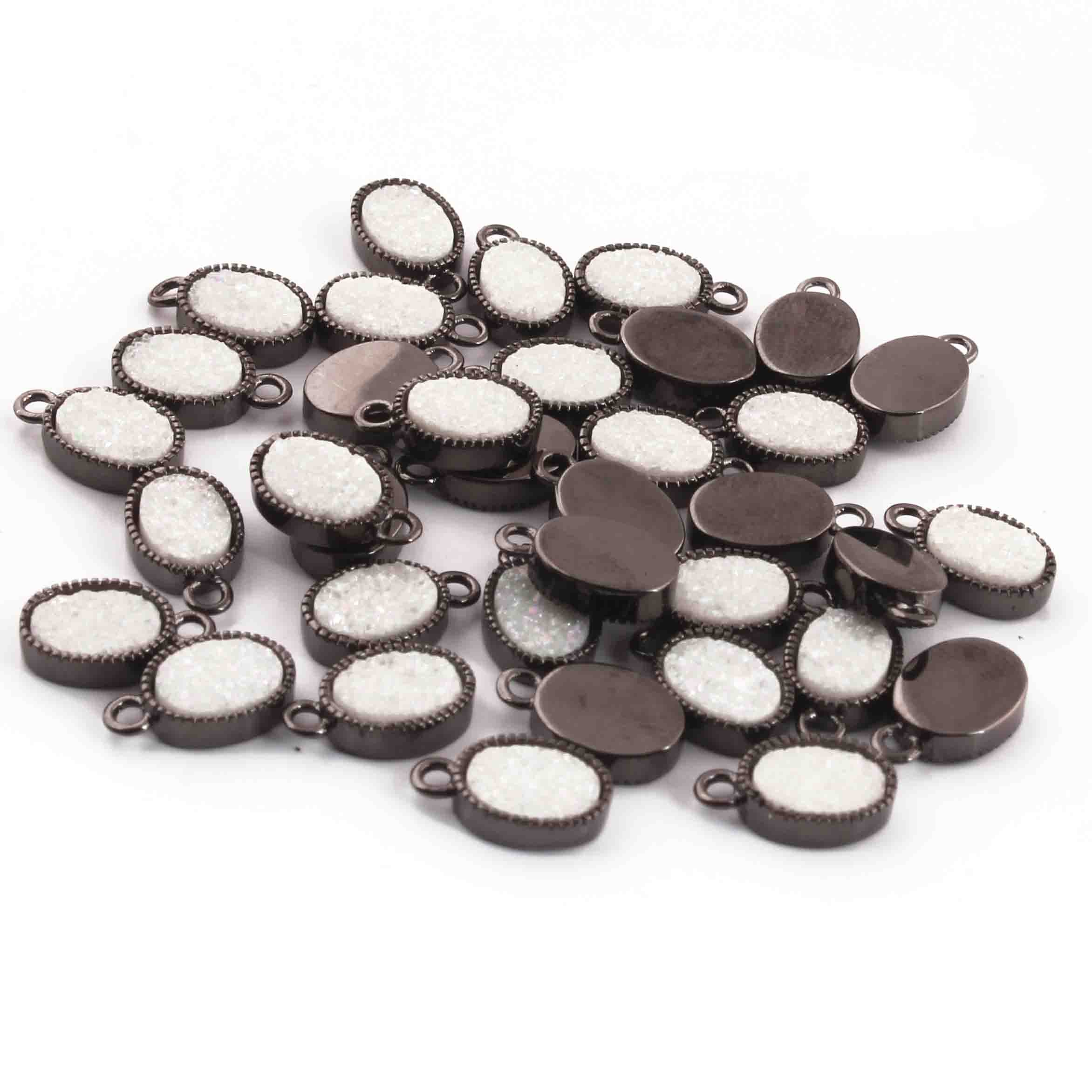 9 Pcs Mystic Druzy Pendant Oval Shape Pendant, Oxidized Silver Plated, Titanium Pendant,Bezel Oval Pendant 11mmX6mm PC994