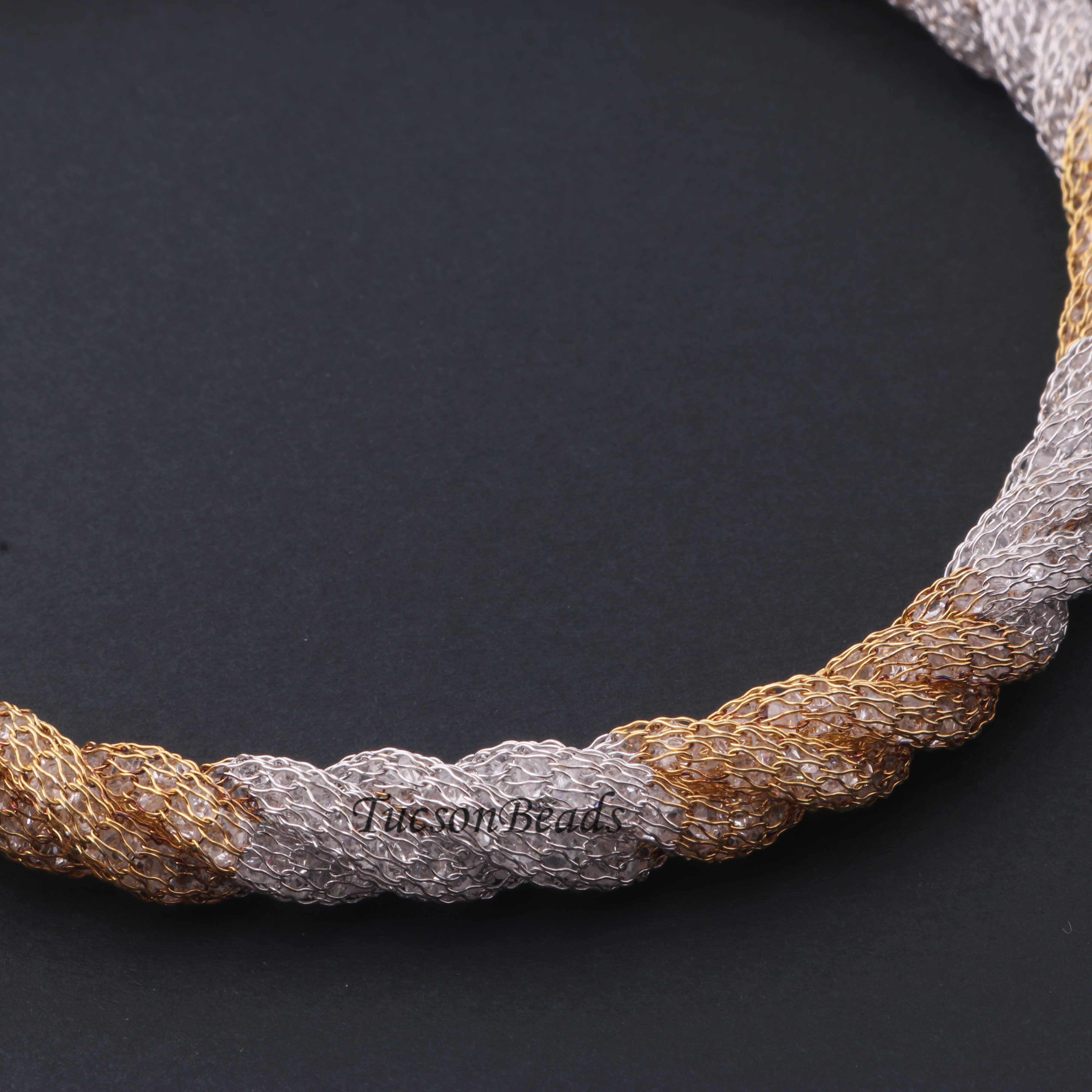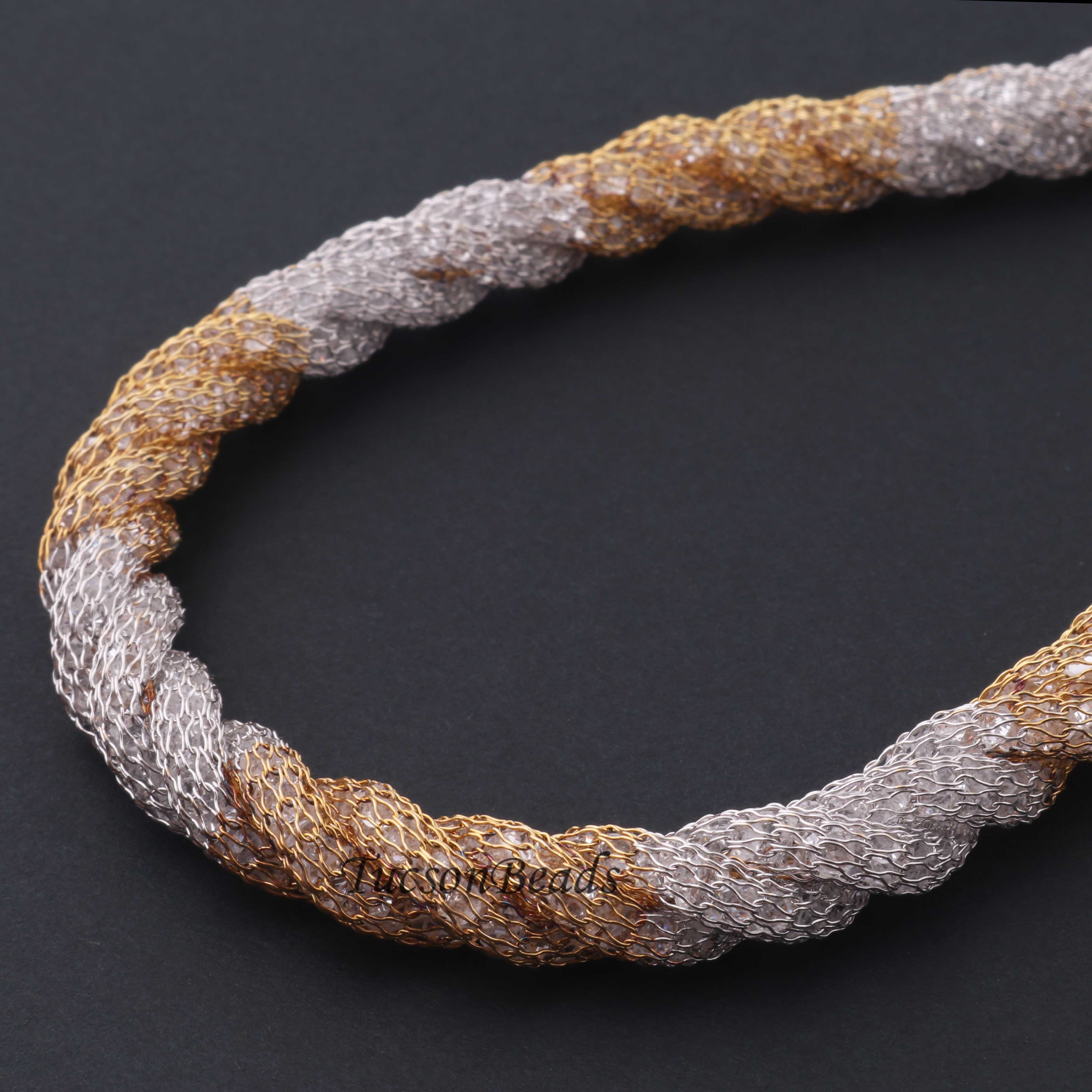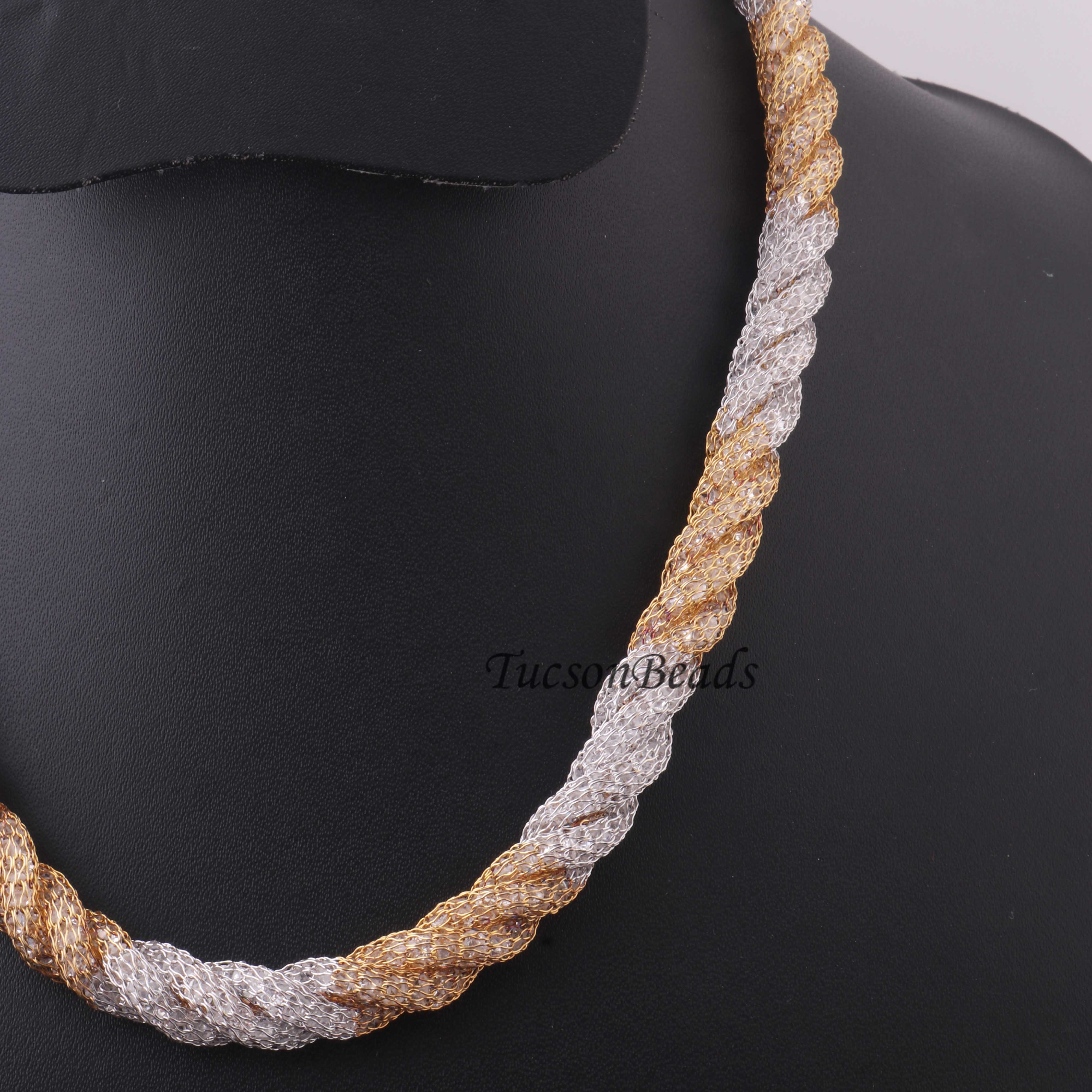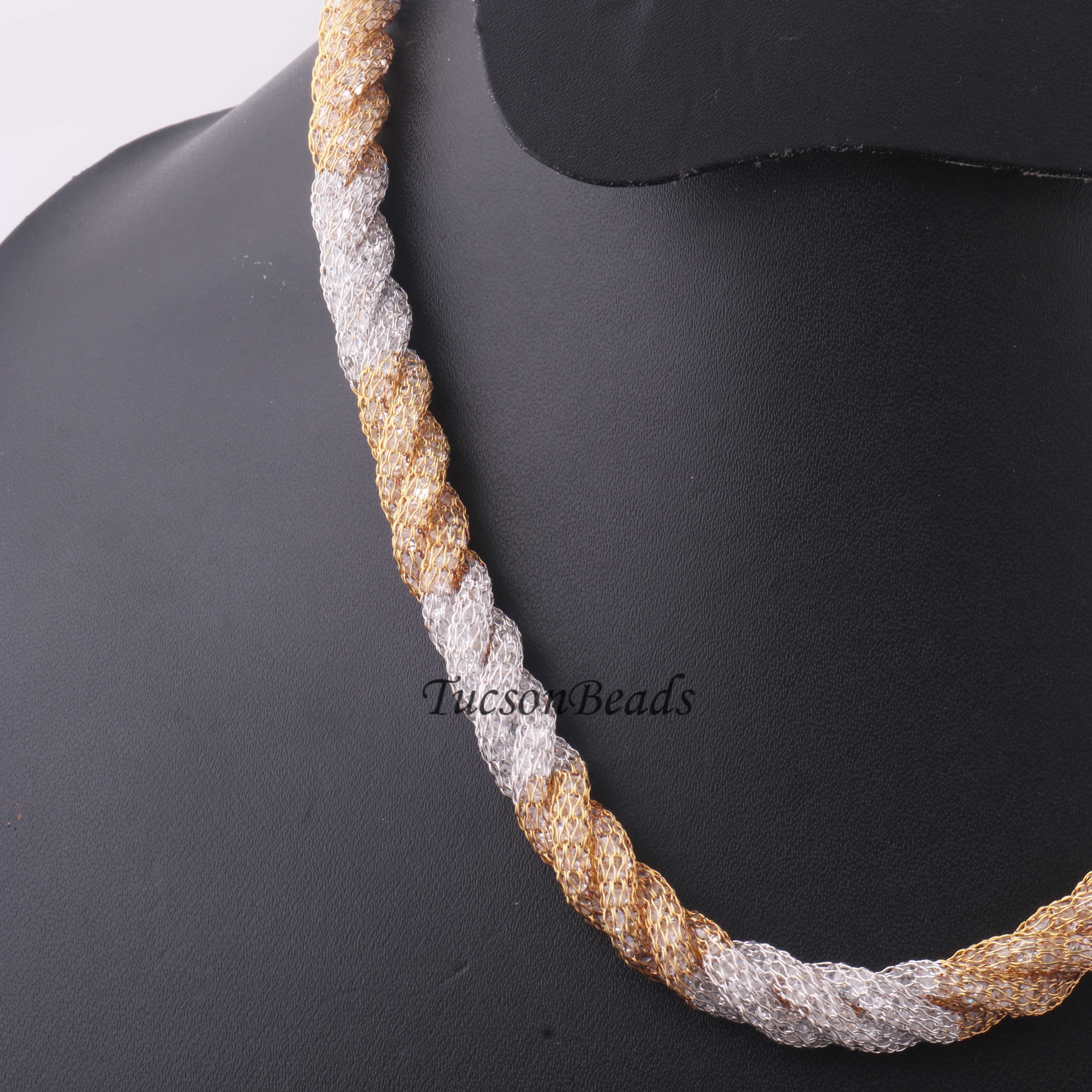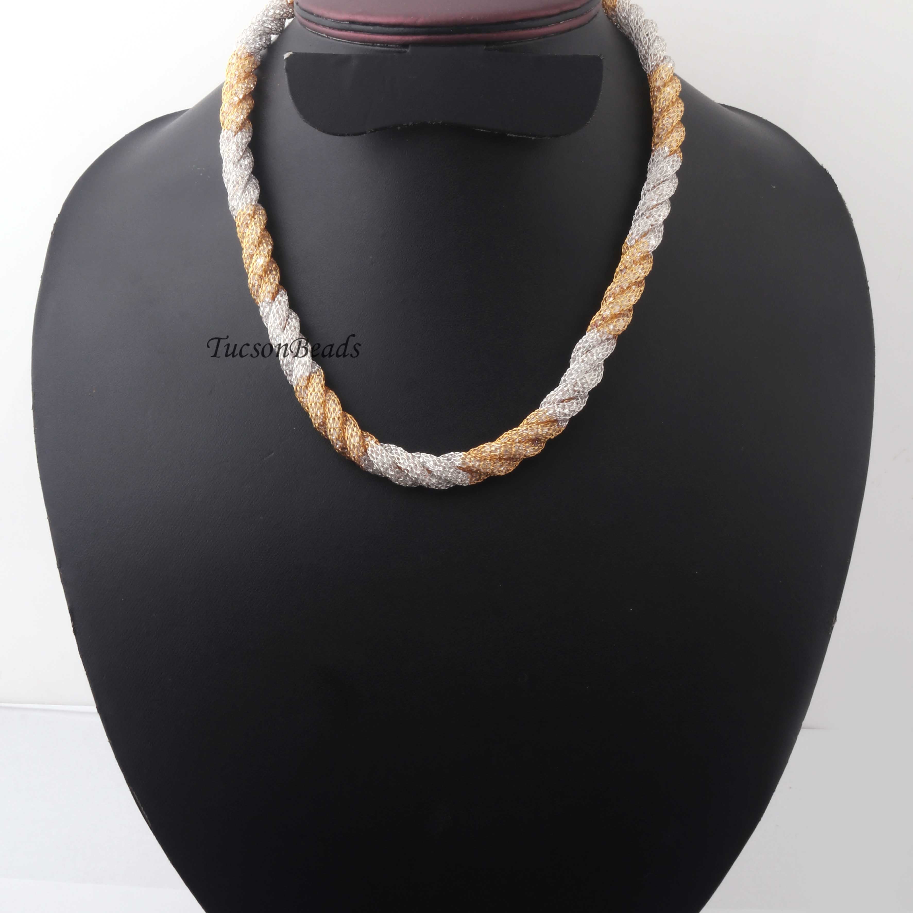 1 Pc Necklace 24k Gold & Silver Plated Mesh Chains- Silver Plated Chains- 17 Inch OS042