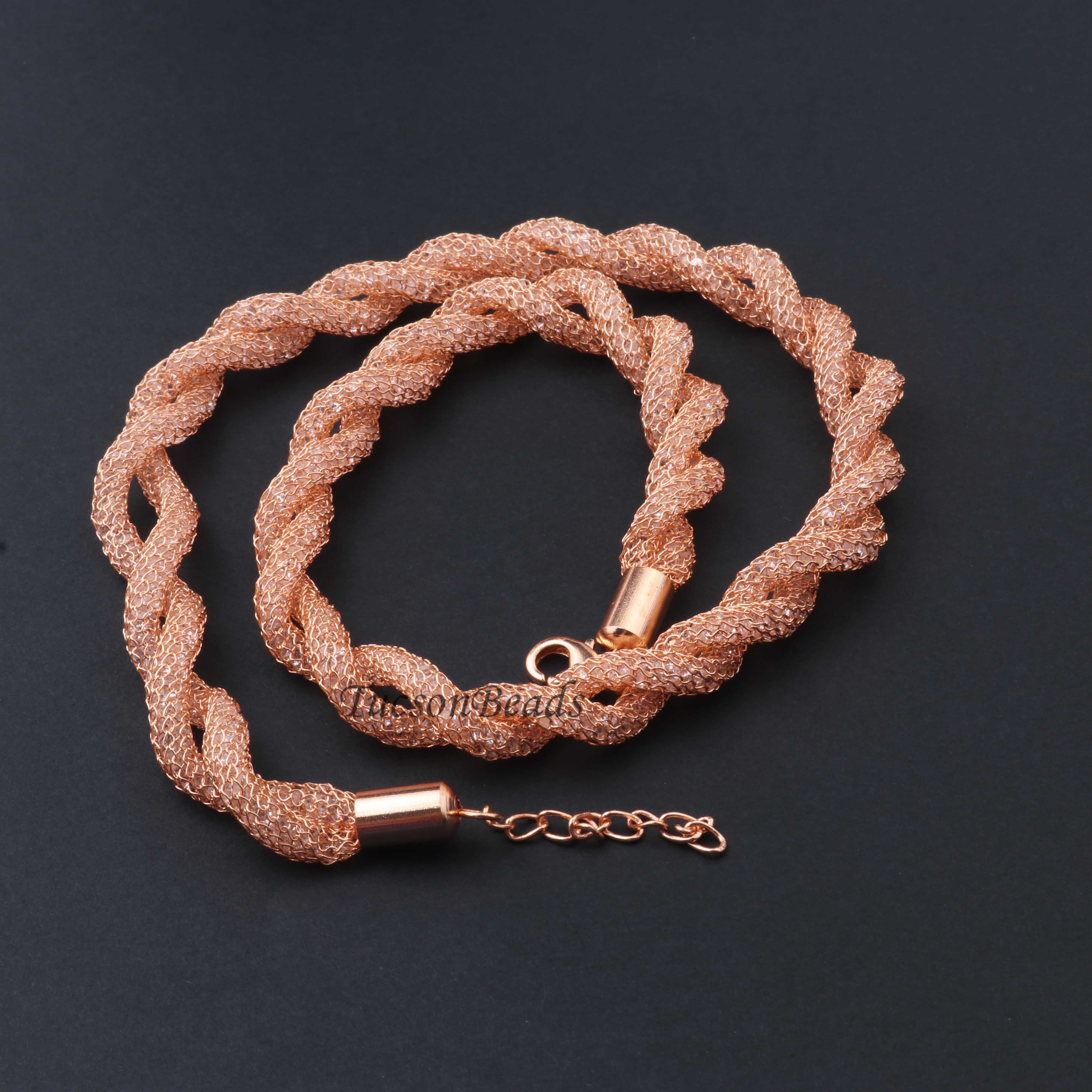 1 Pc Necklace Rose Gold Plated Mesh Chains- Rose Gold Plated Chains- 16.5 Inch OS031