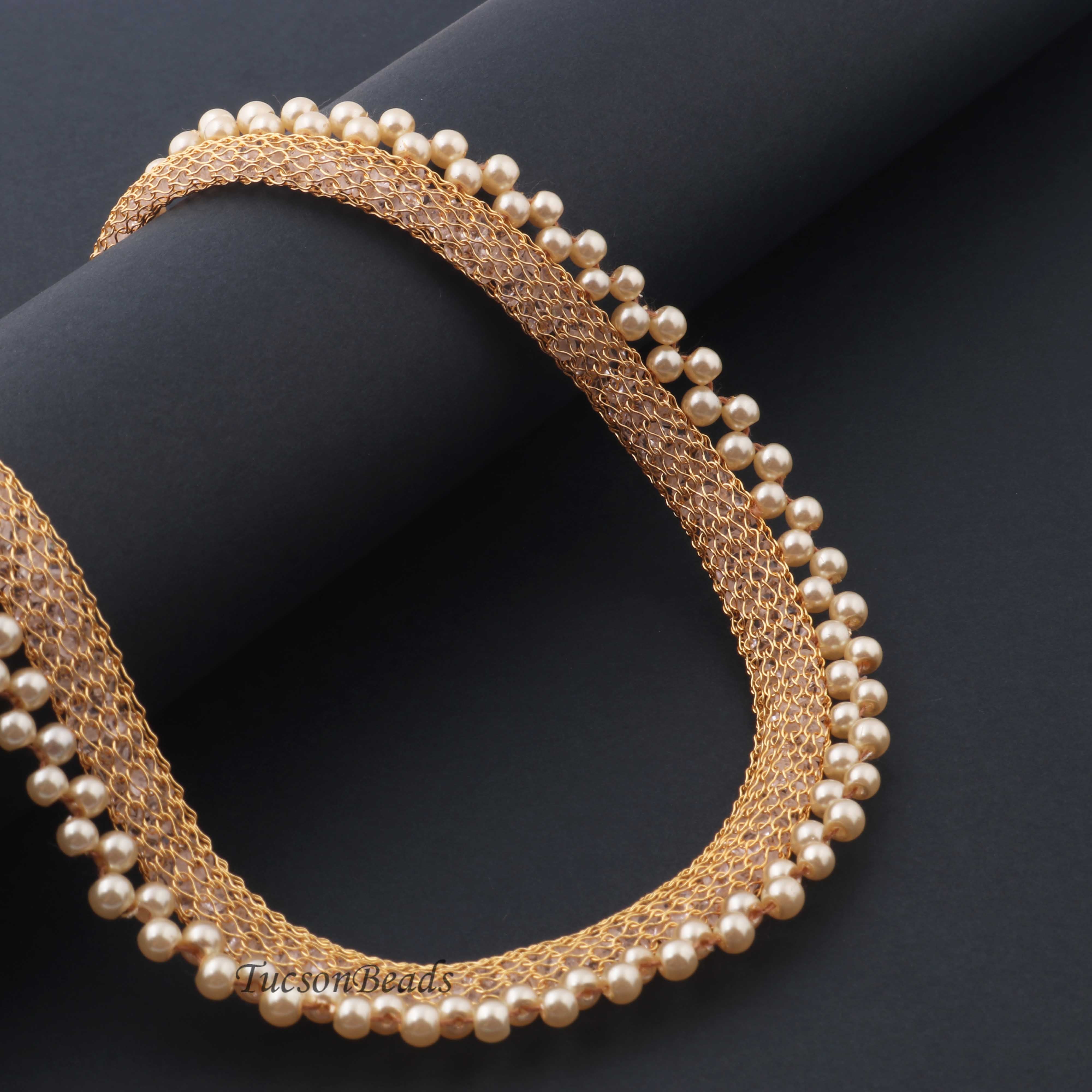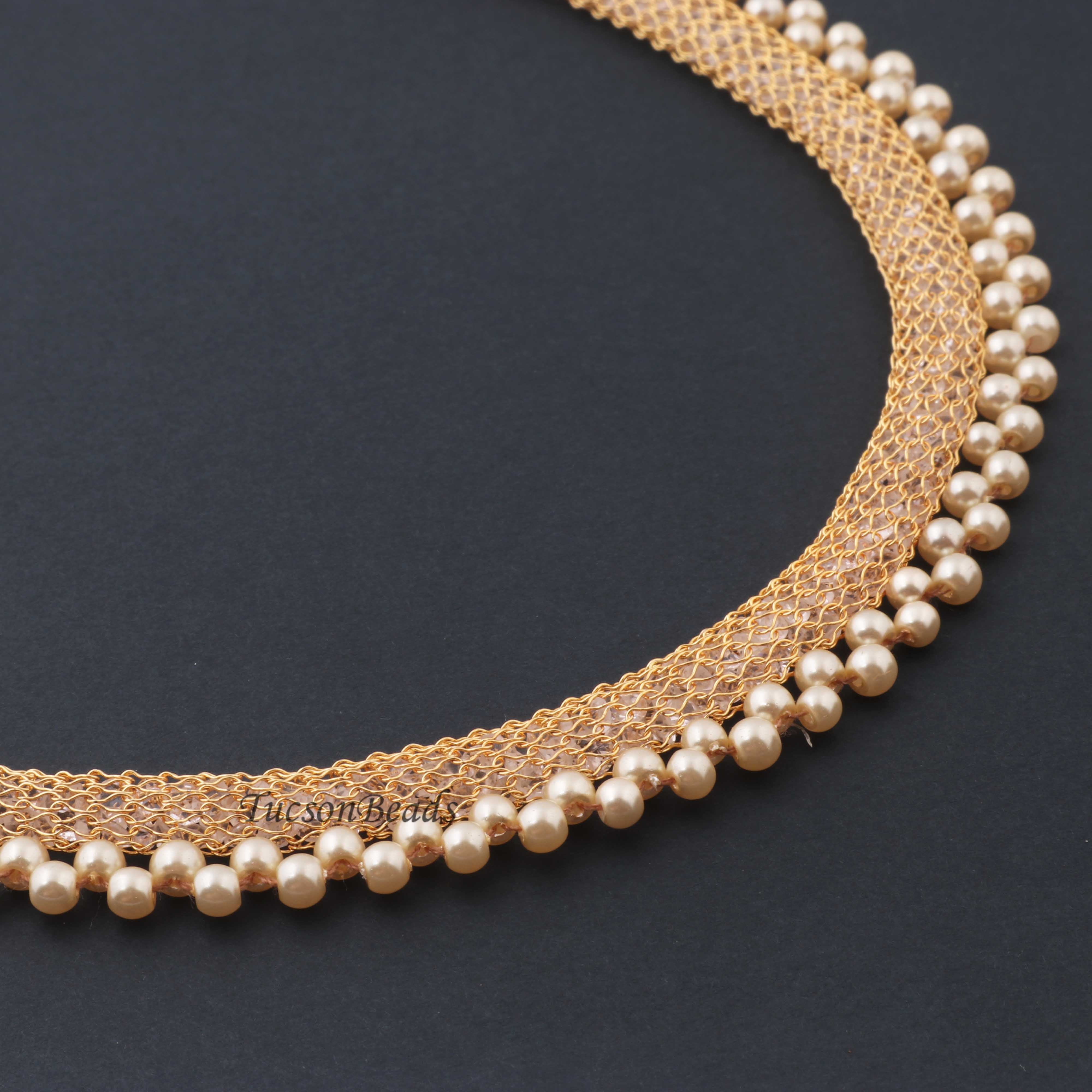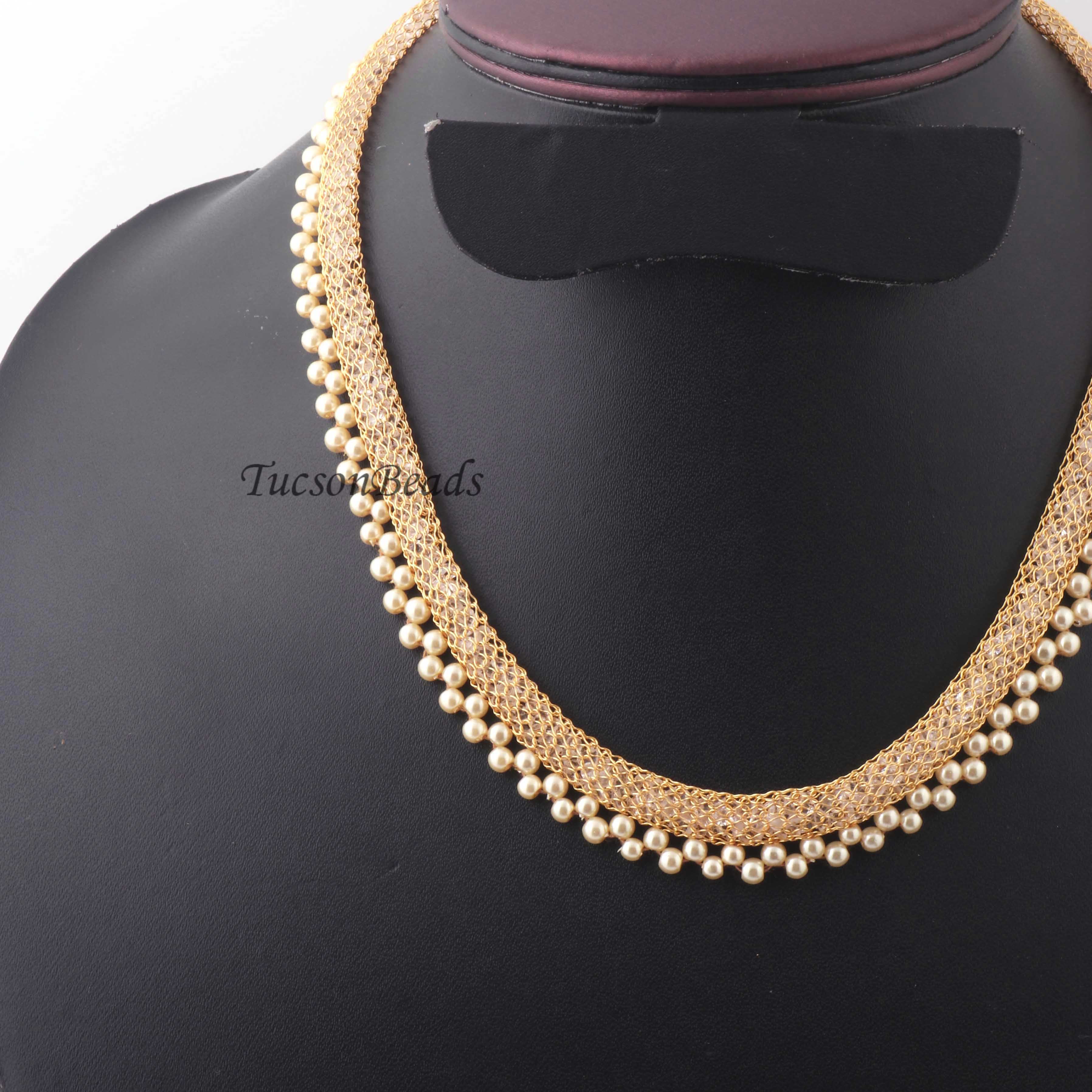 1 Pc Necklace With Pearl Stone 24k Gold Plated Mesh Chains- 24k Gold Plated Chains- 15 Inch OS029