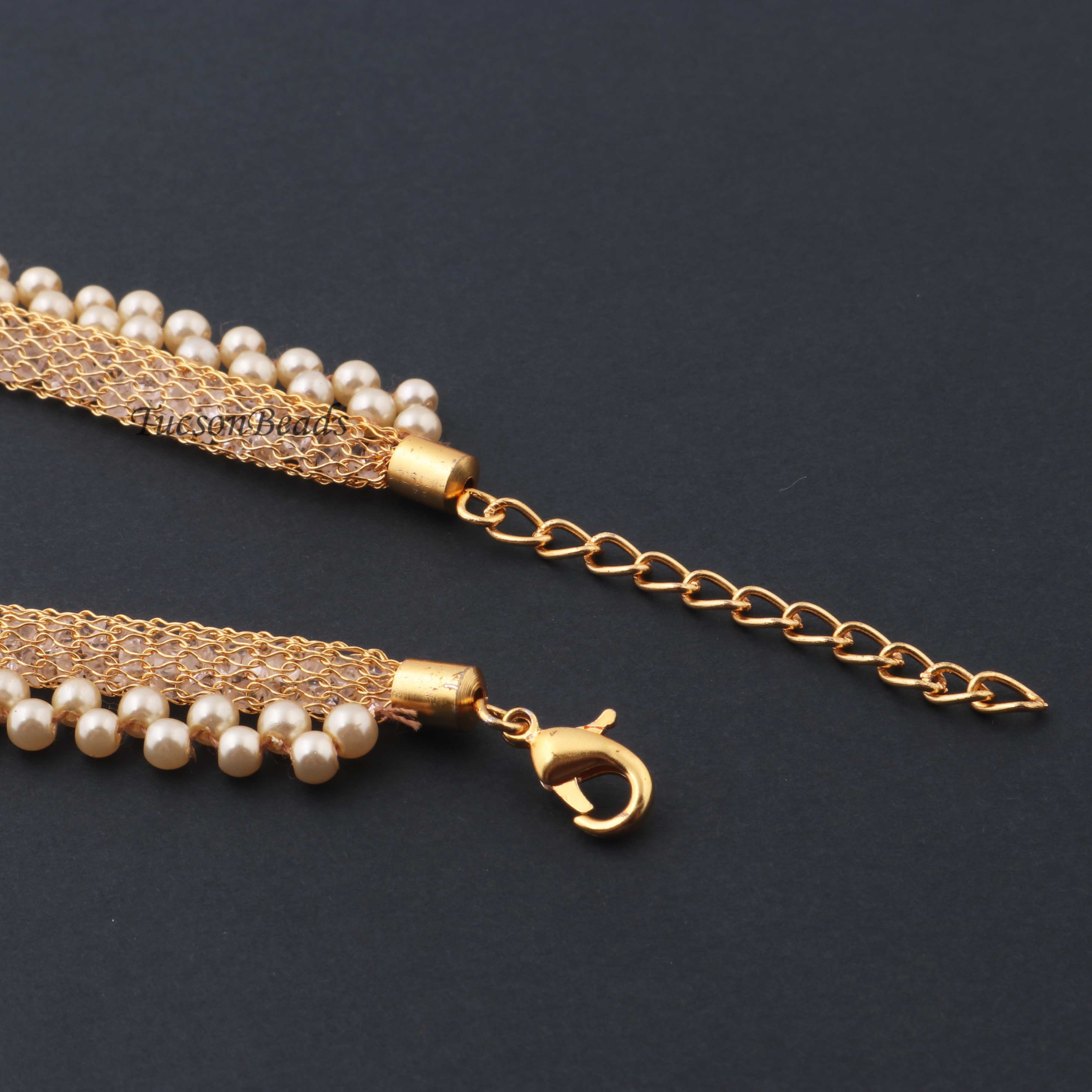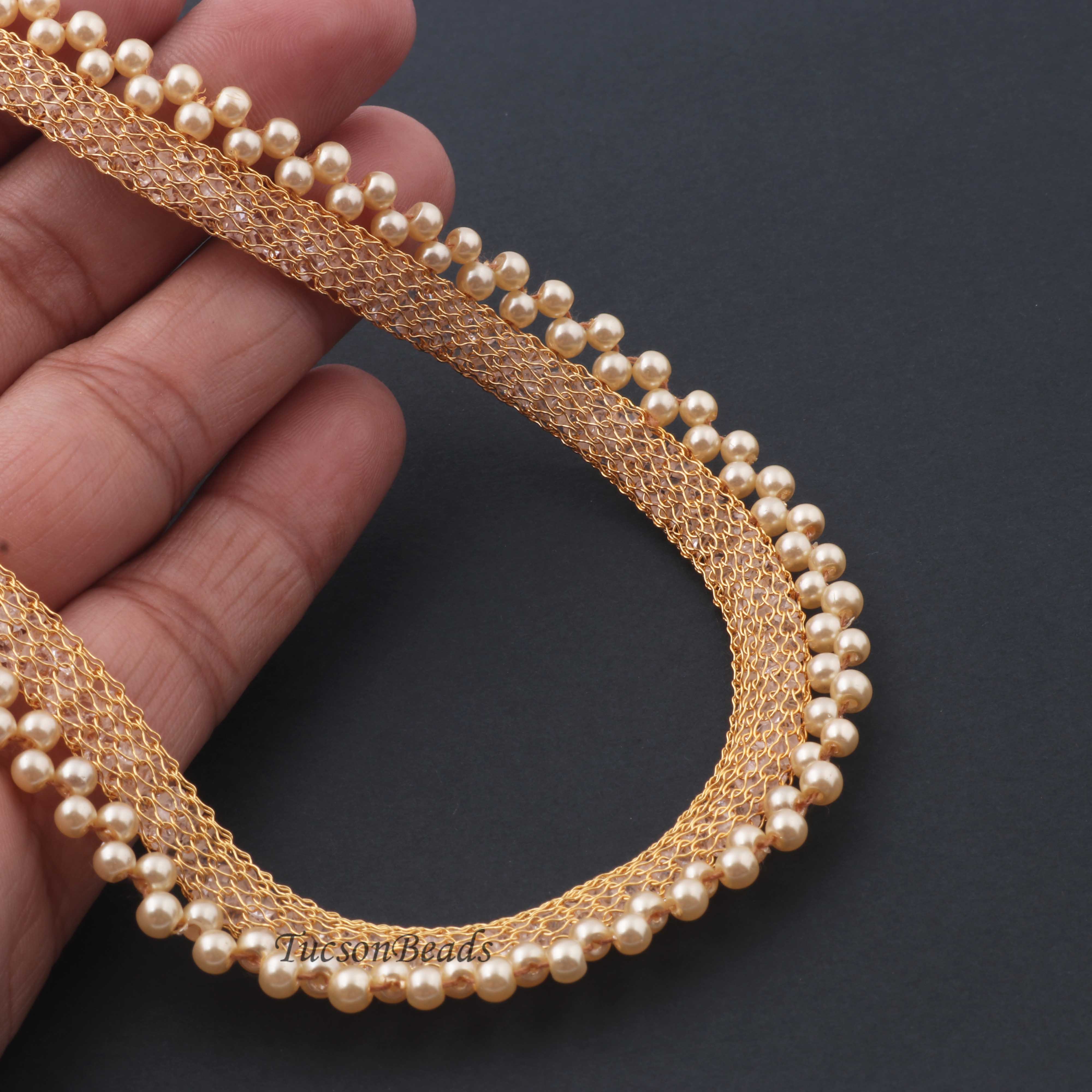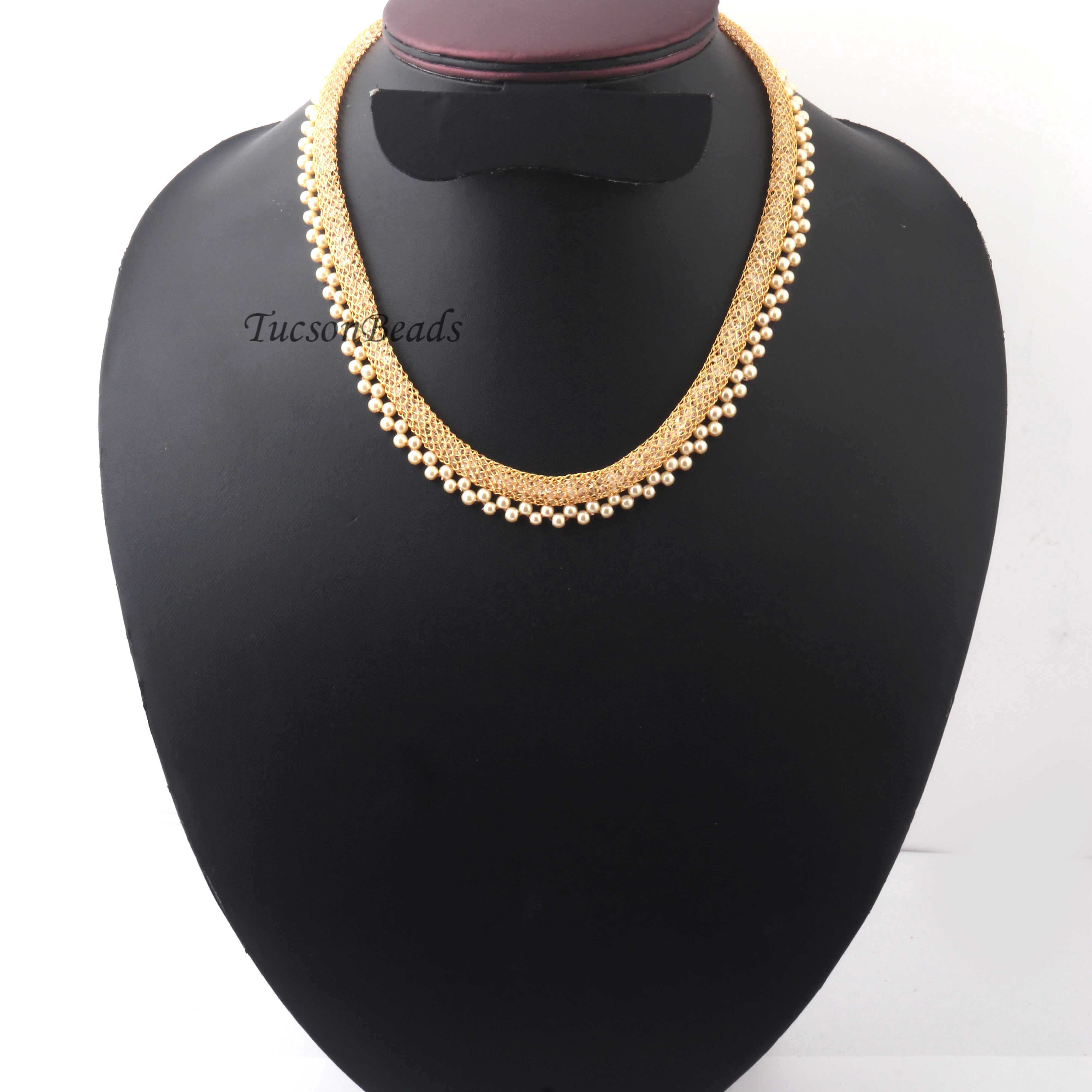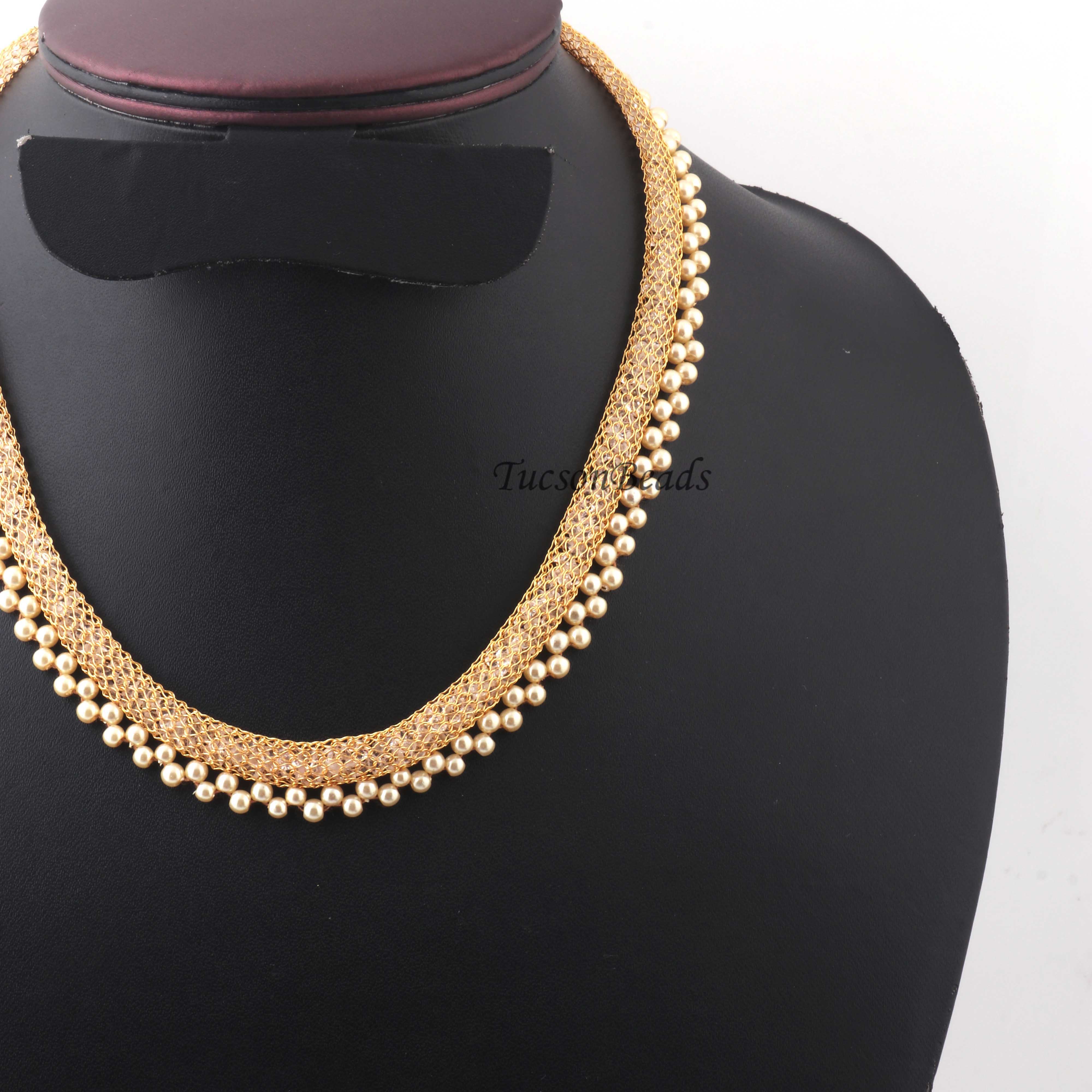 1 Pc Necklace With Pearl Stone 24k Gold Plated Mesh Chains- 24k Gold Plated Chains- 15 Inch OS029