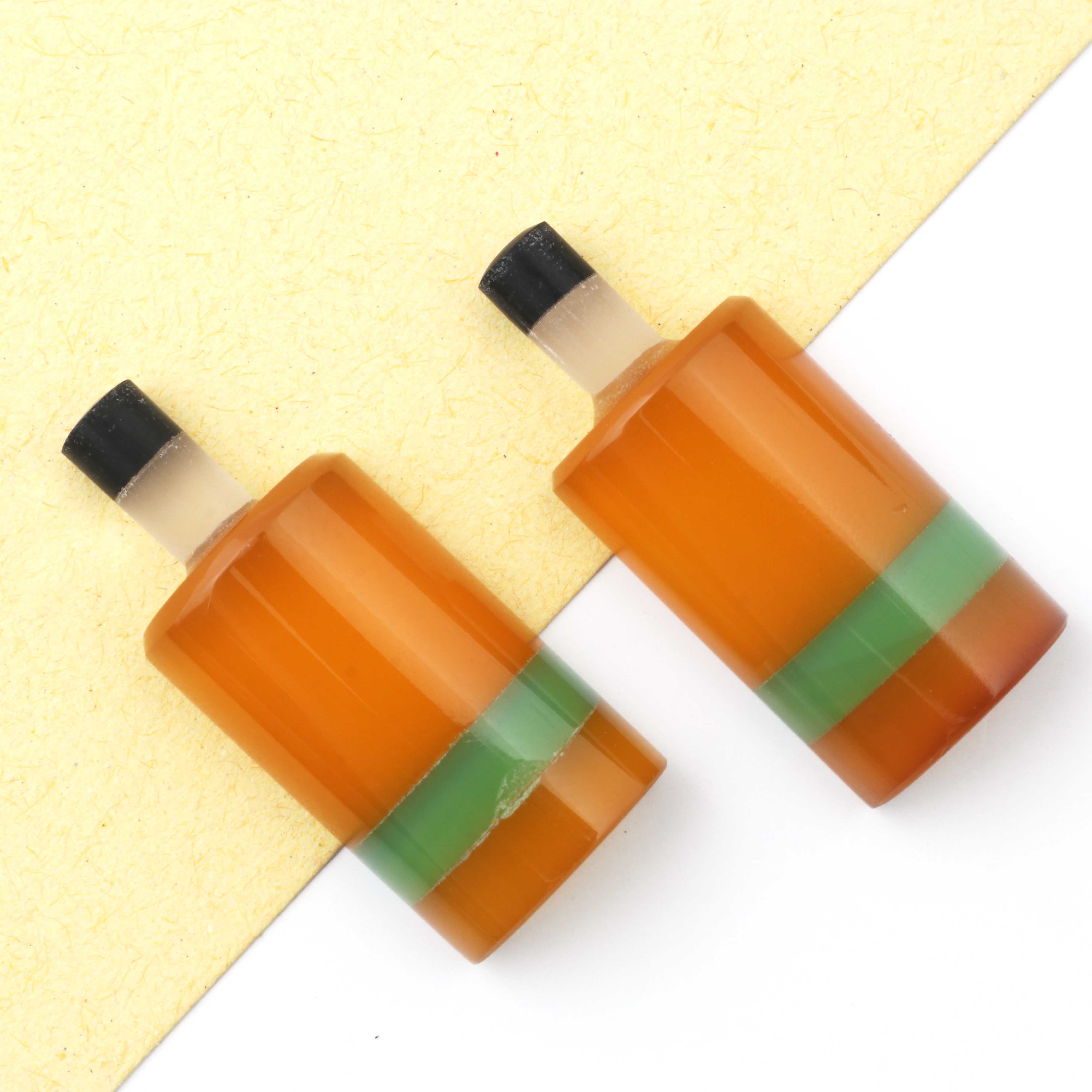 Matched Pairs Natural Orange Chalcedony ,Green Chalcedony Joined Smooth Bottle Shape Loose Gemstone 28mmx12mm BG0043