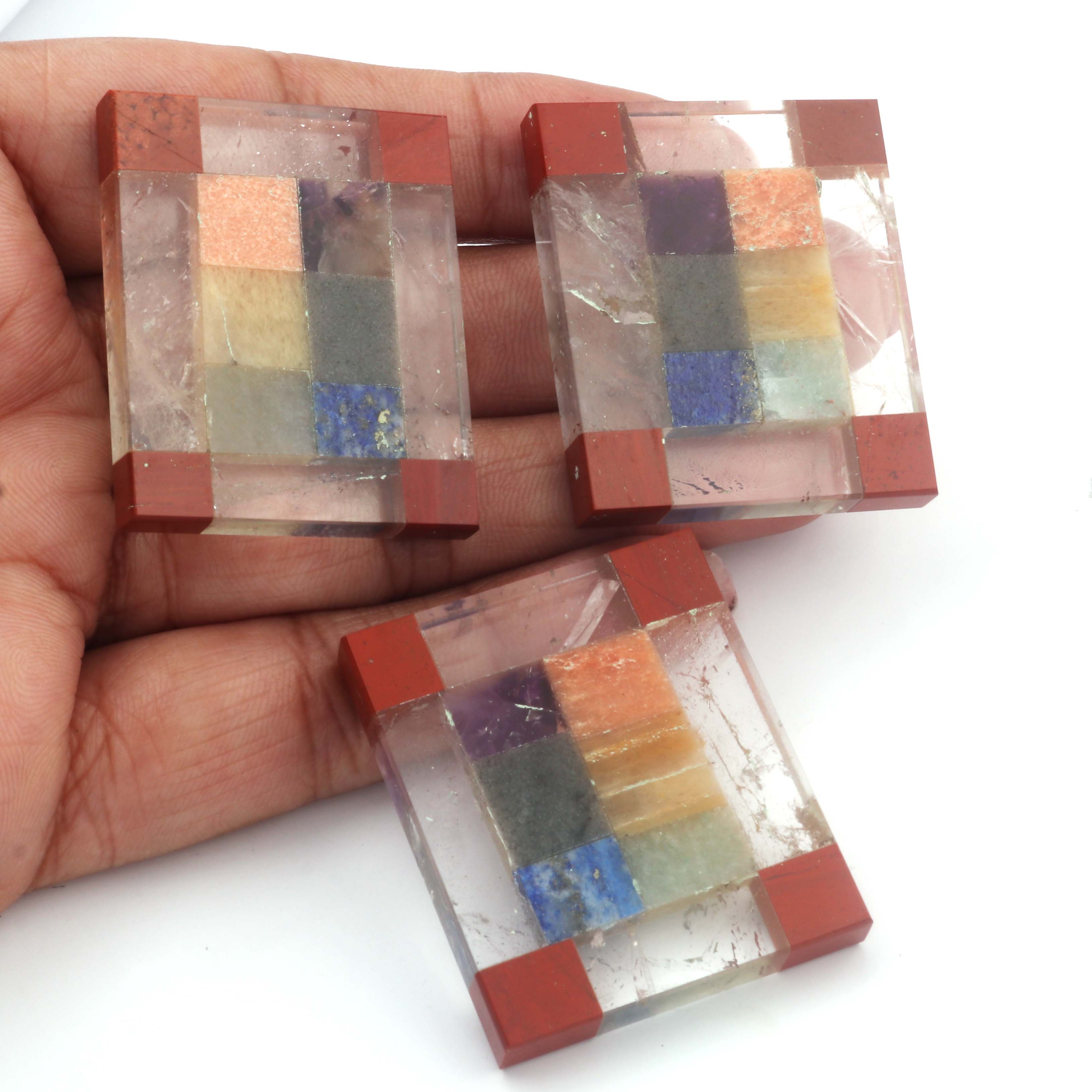 1 Pcs Seven Chakra Bonded Palm Stone / Worry Stone / Square Shape Palm Stone / 7 Chakra Worry Stone/Healing Square Chakra HS132