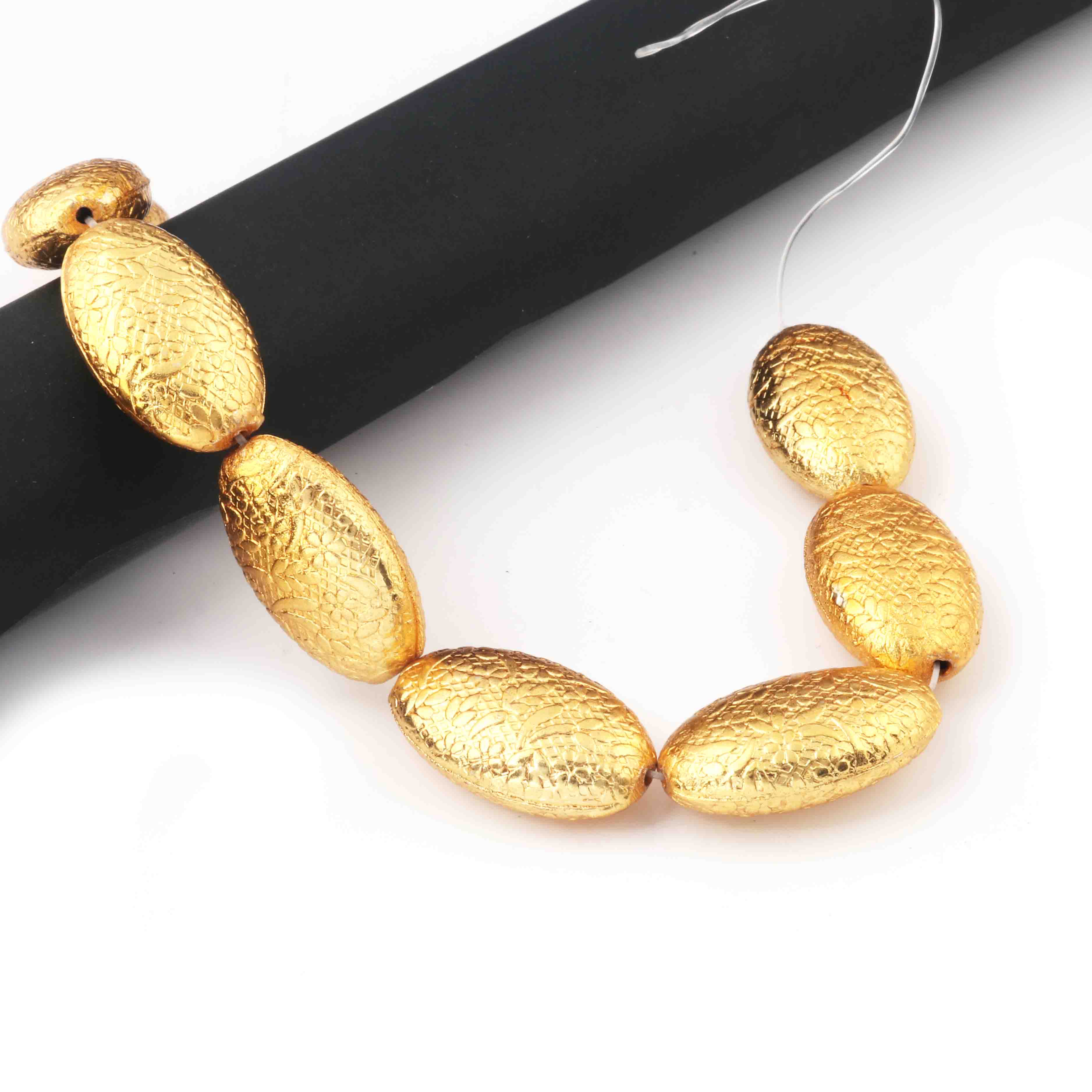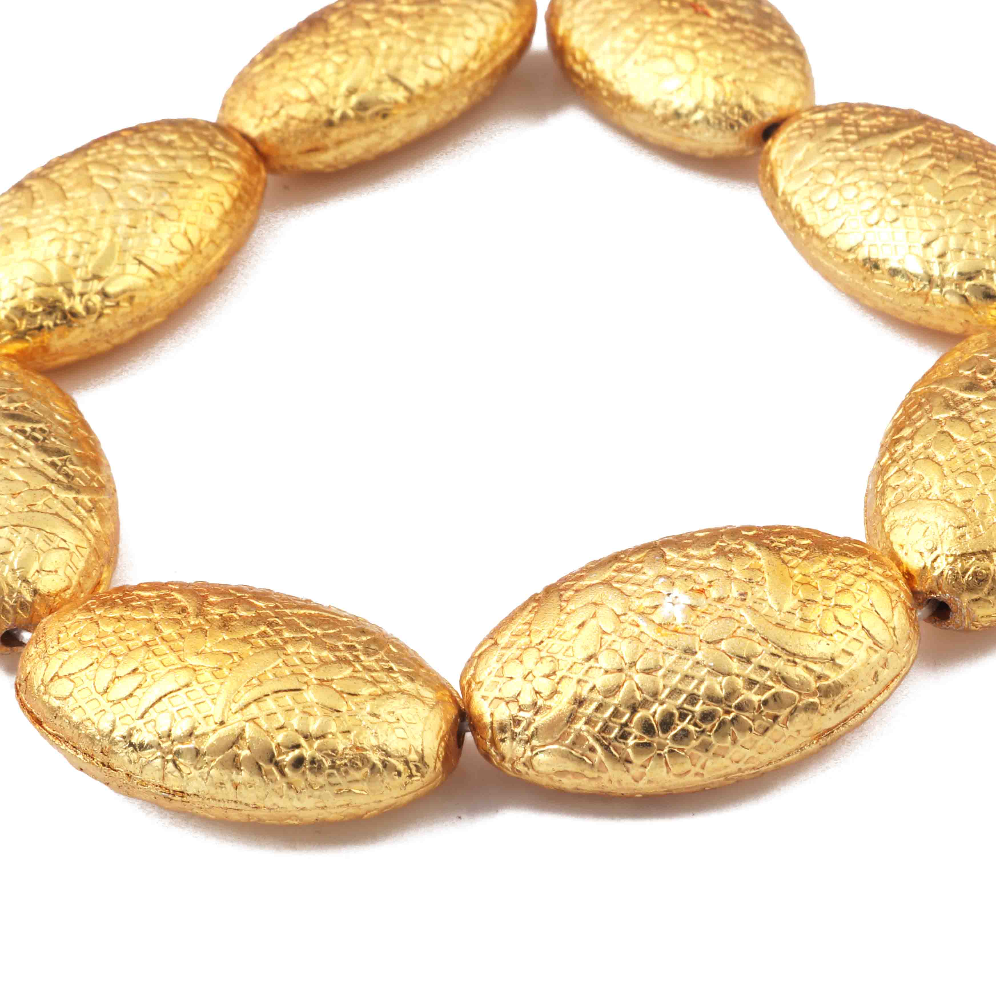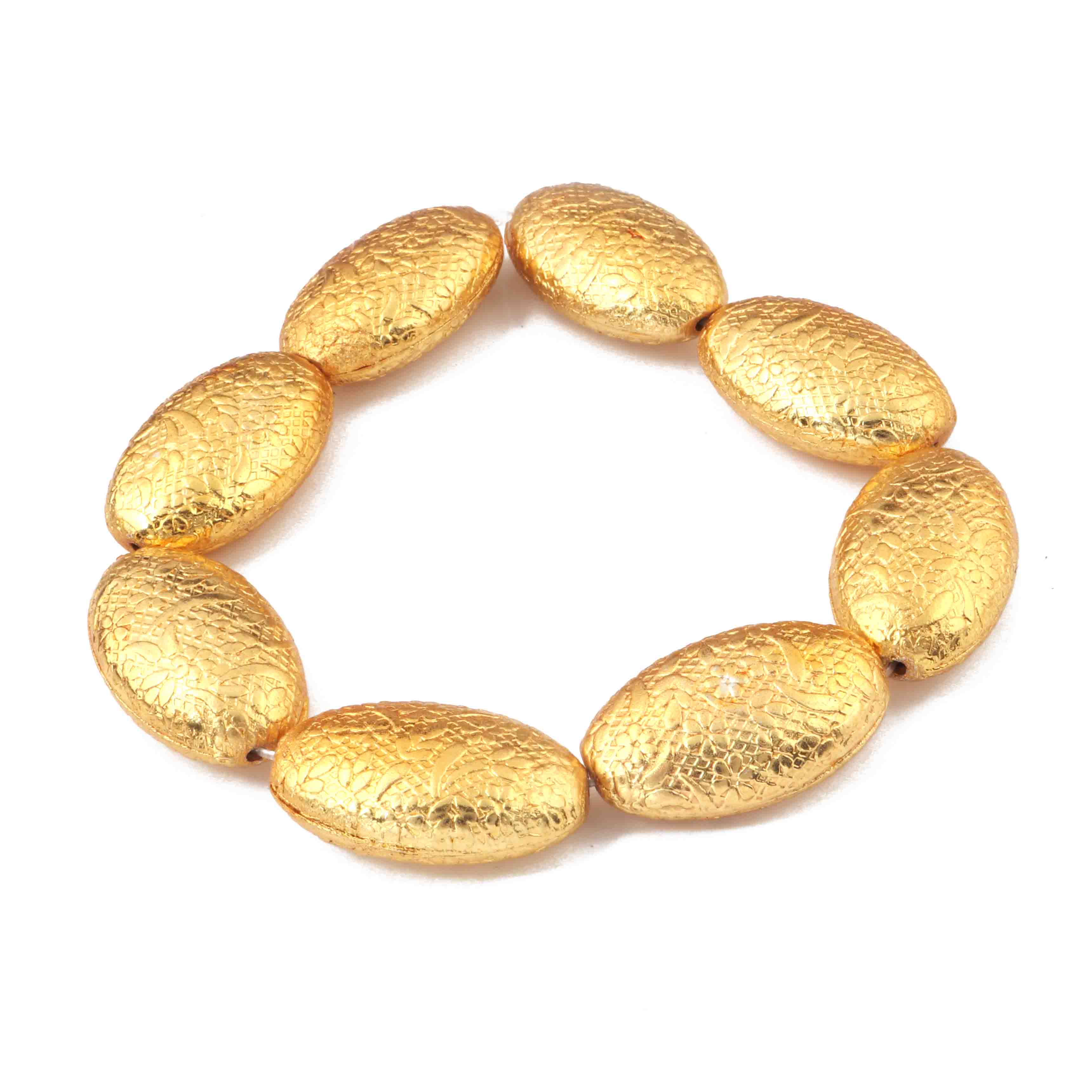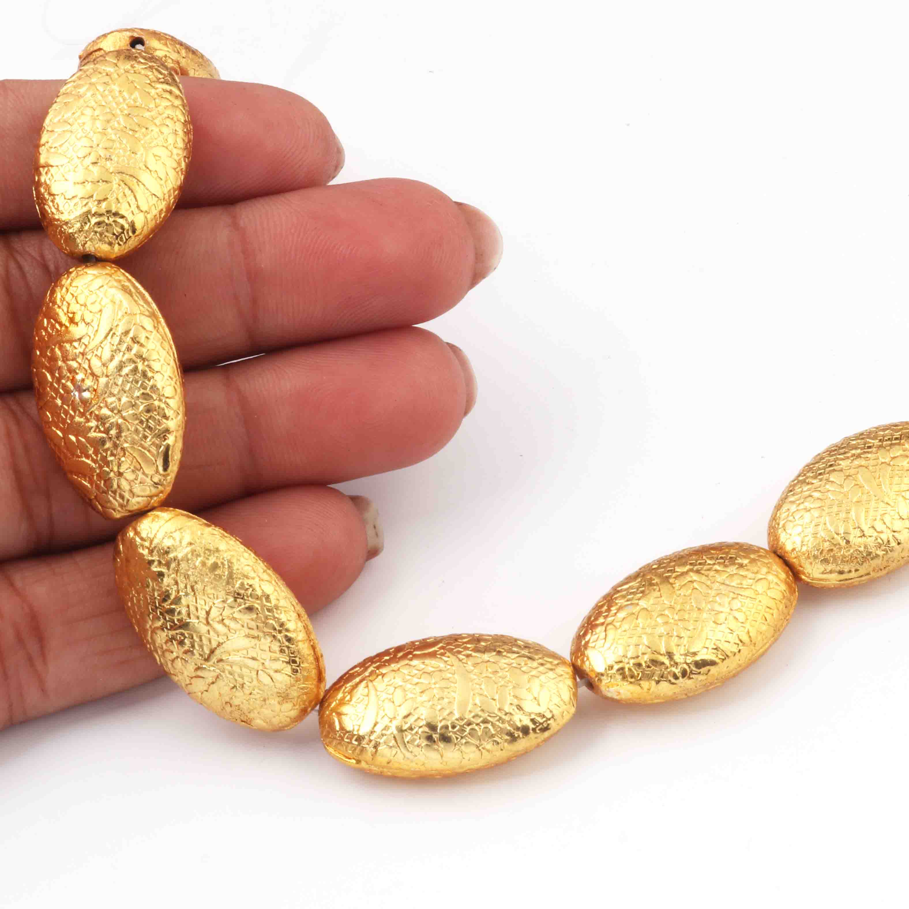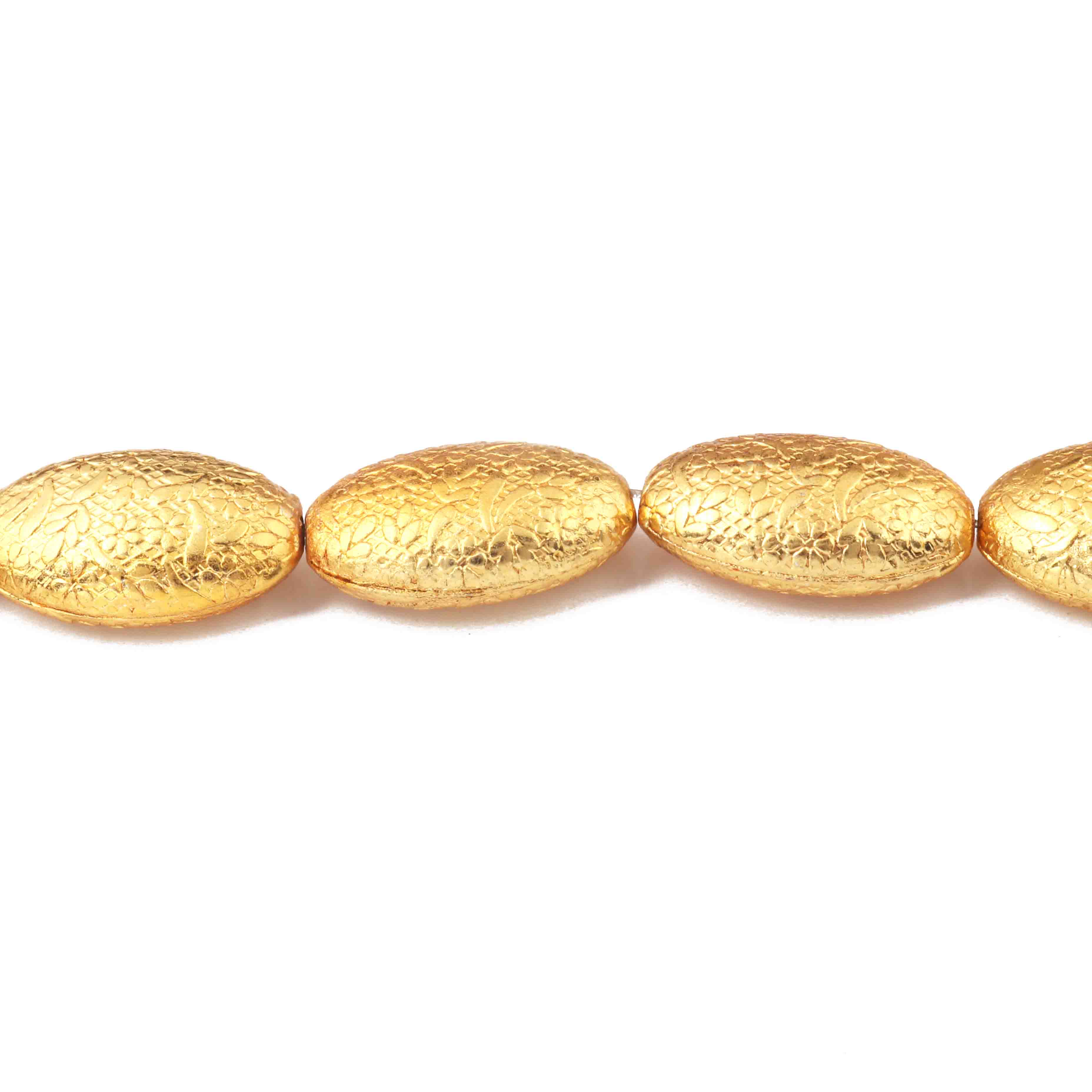 1 Stand Designer 24k Gold Plated Oval Beads ,Copper Oval Shape Design Charm,Jewelry Making 25mmx15mm 7 Inches GPC1308