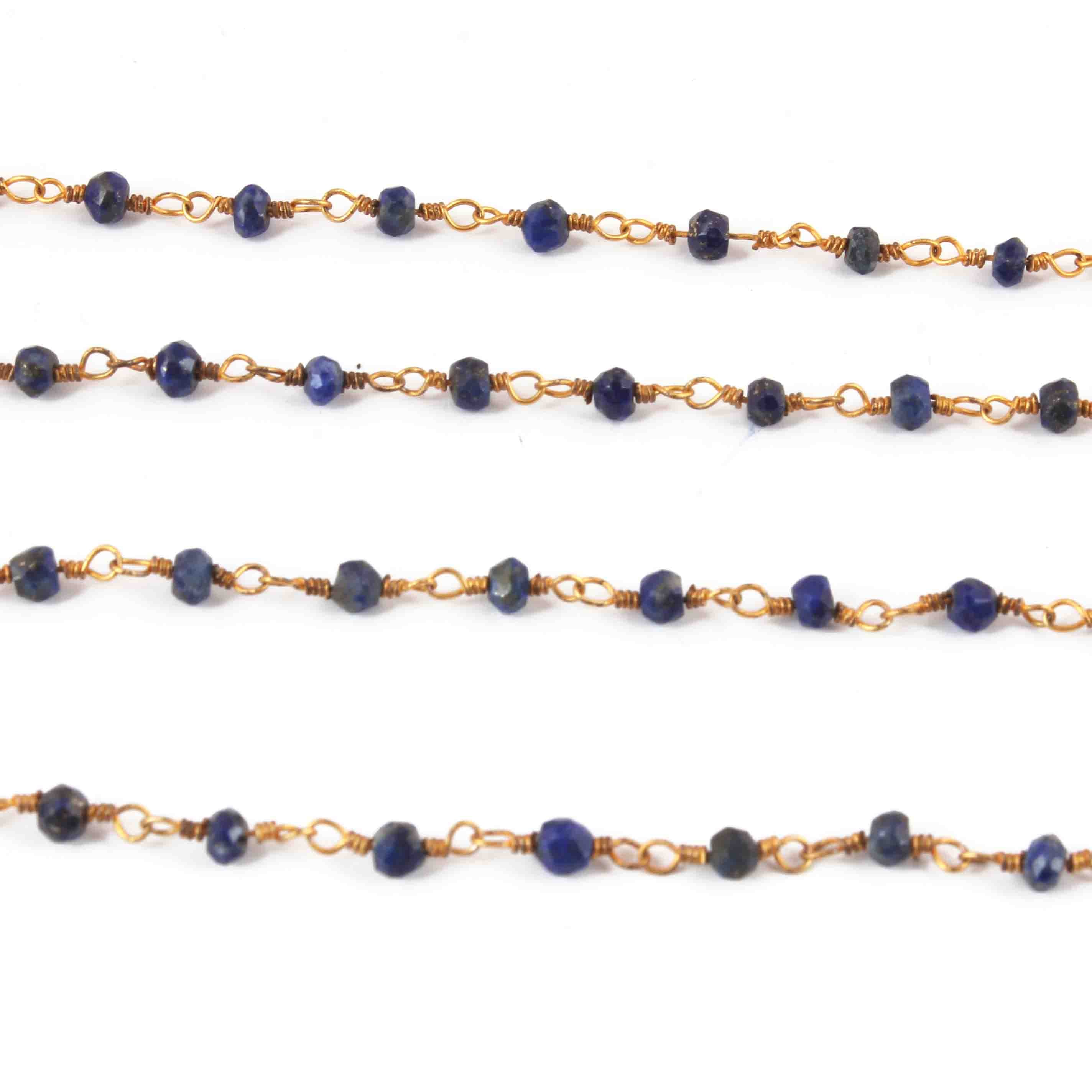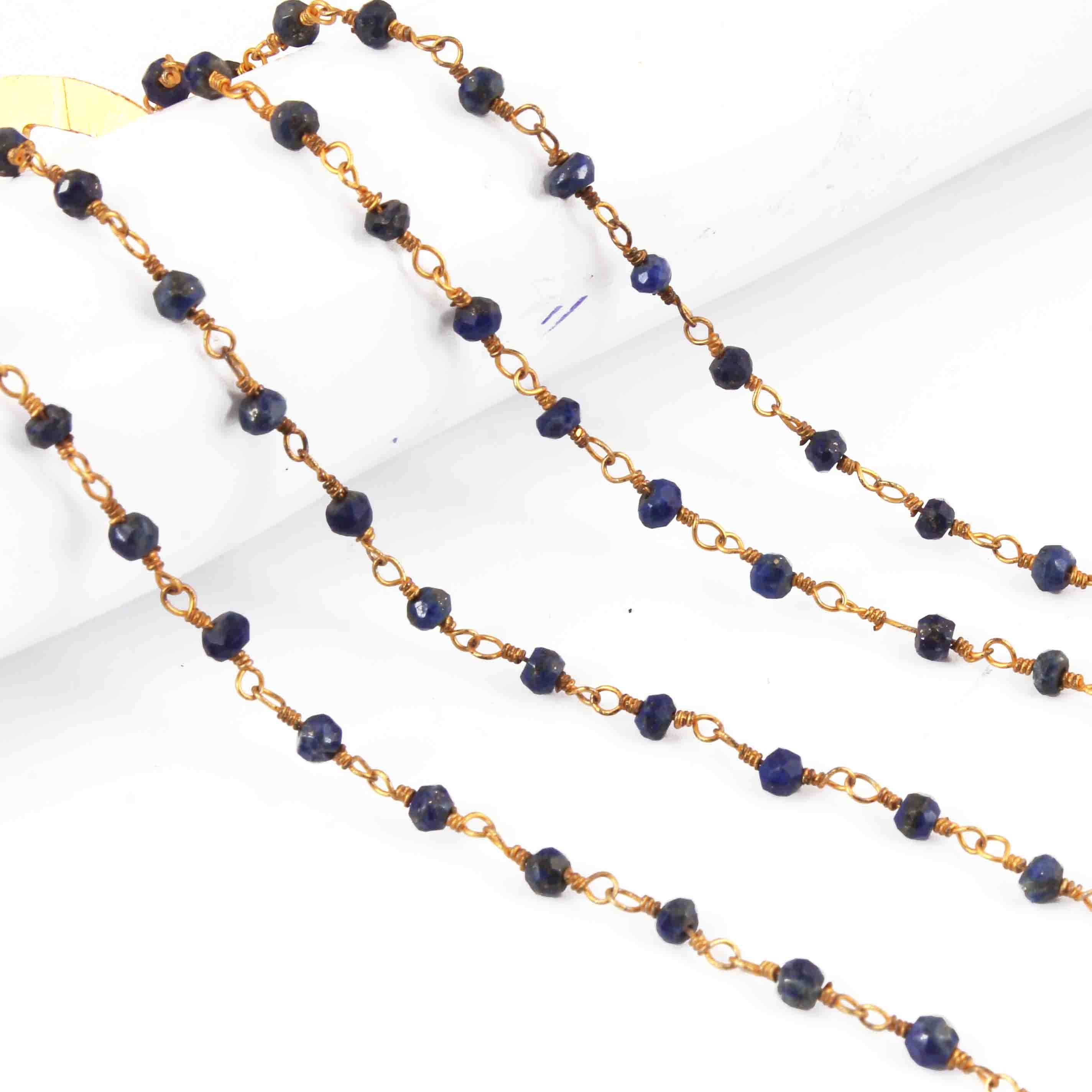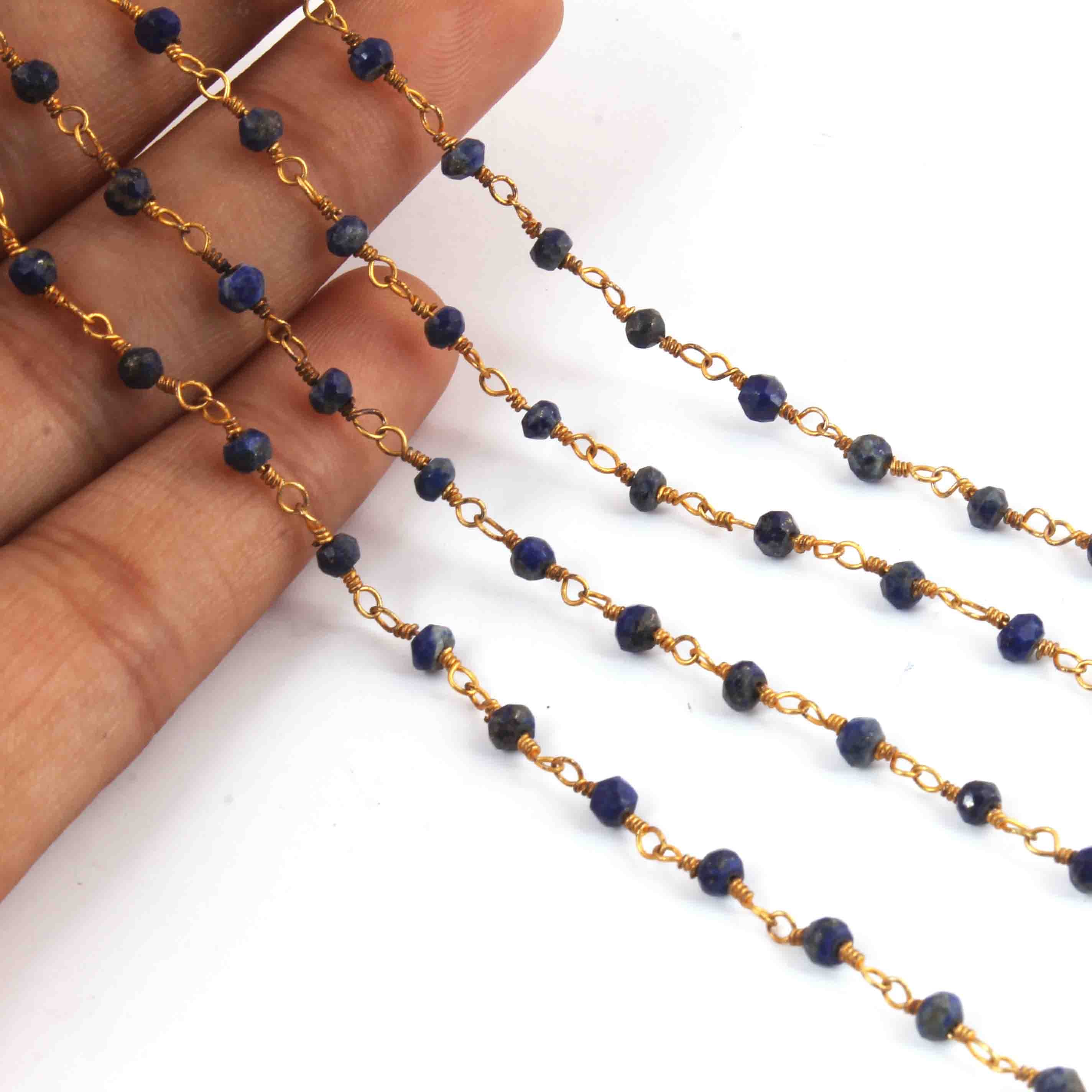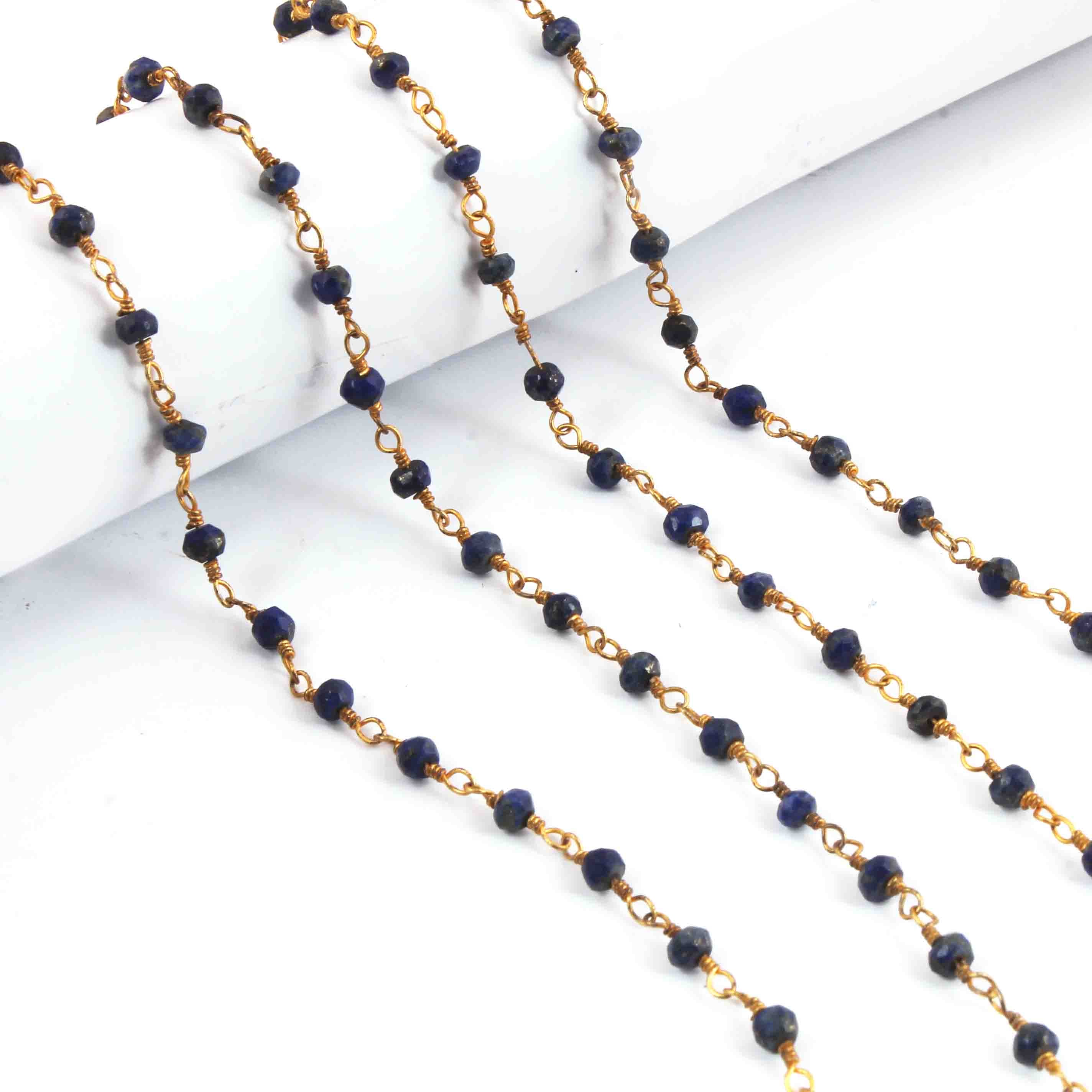 Lapis Chain Necklace - Faceted Sparkly Necklace ,Tiny Beaded 2mm, Necklace -34"Long GPC1345
