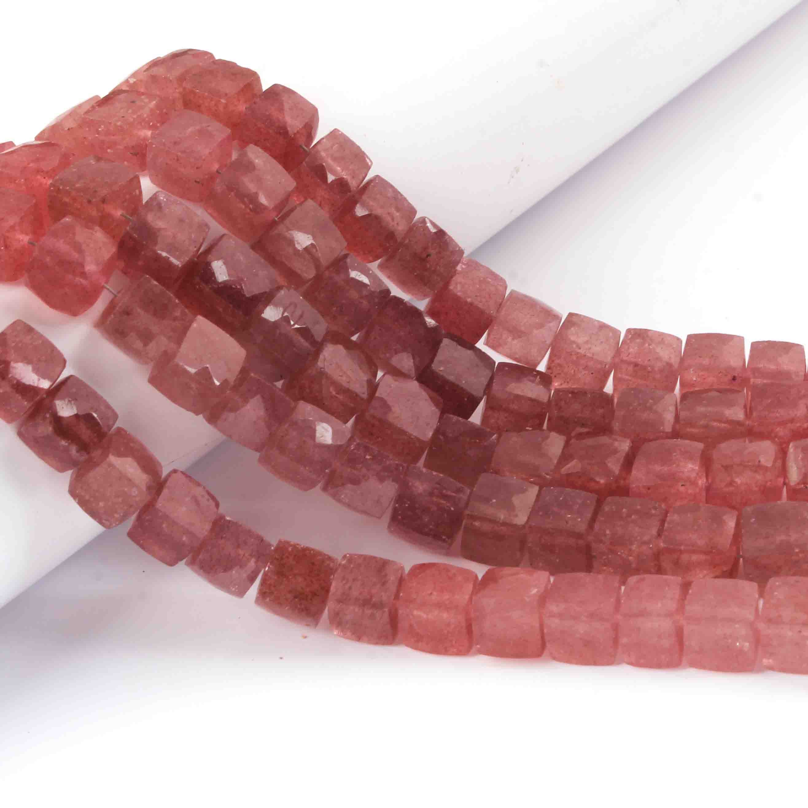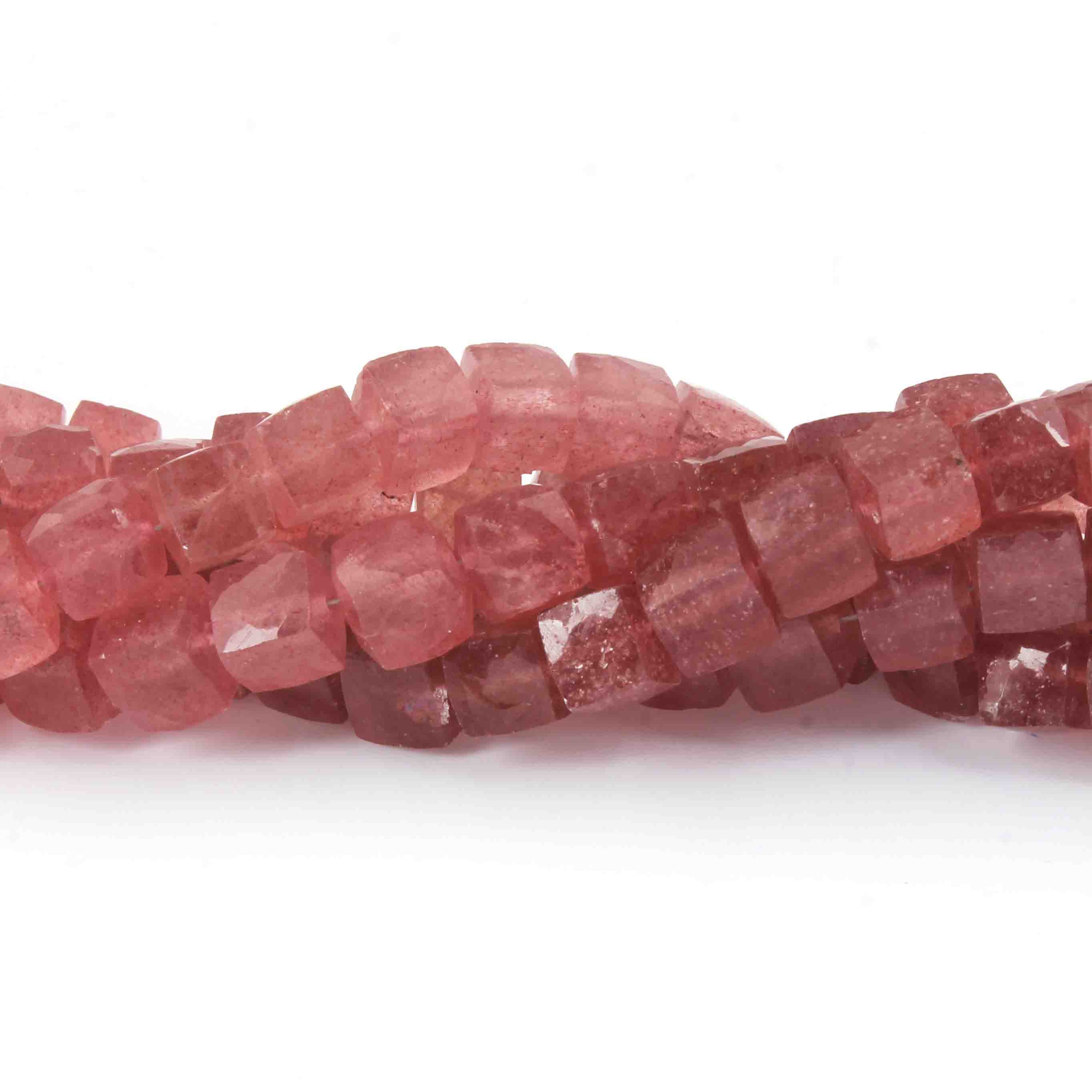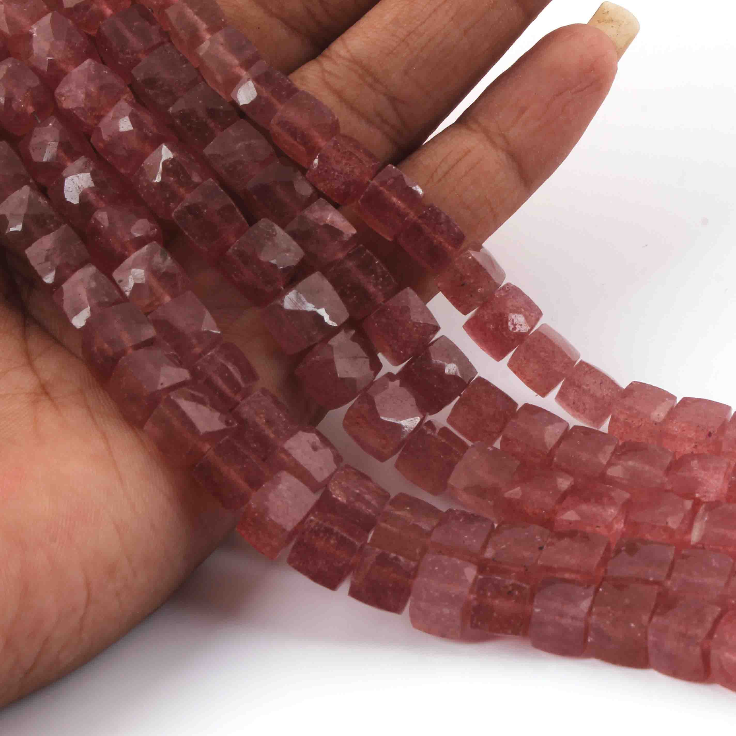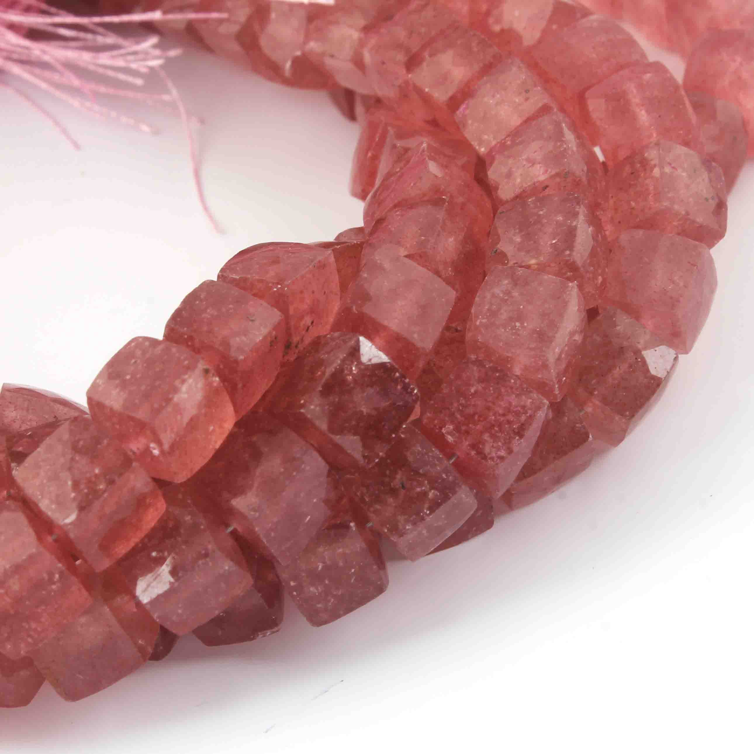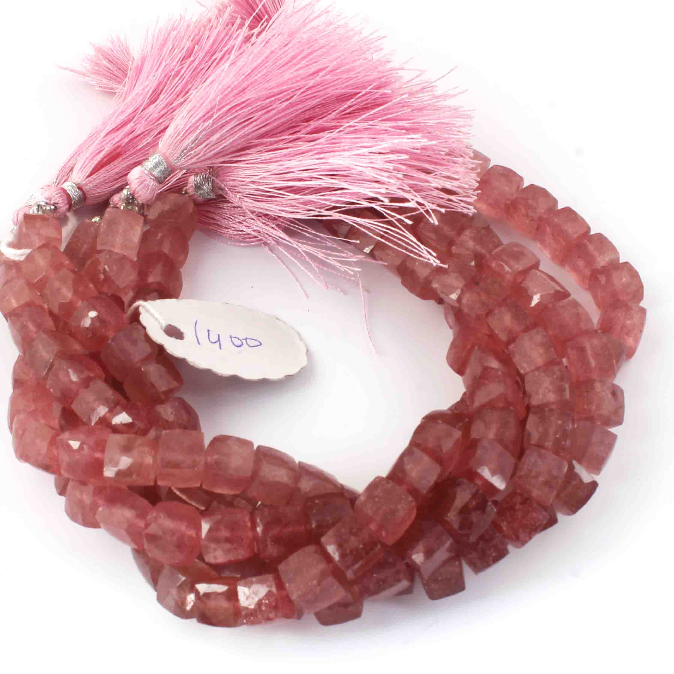 1  Long Strand Strawberry Quartz Faceted Briolettes -Cube Shape  Briolettes  7mm- 8.5 Inches BR0637