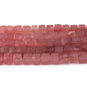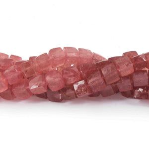 1 Long Strand Strawberry Quartz Faceted Briolettes -Cube Shape Briolettes 7mm- 8.5 Inches BR0637