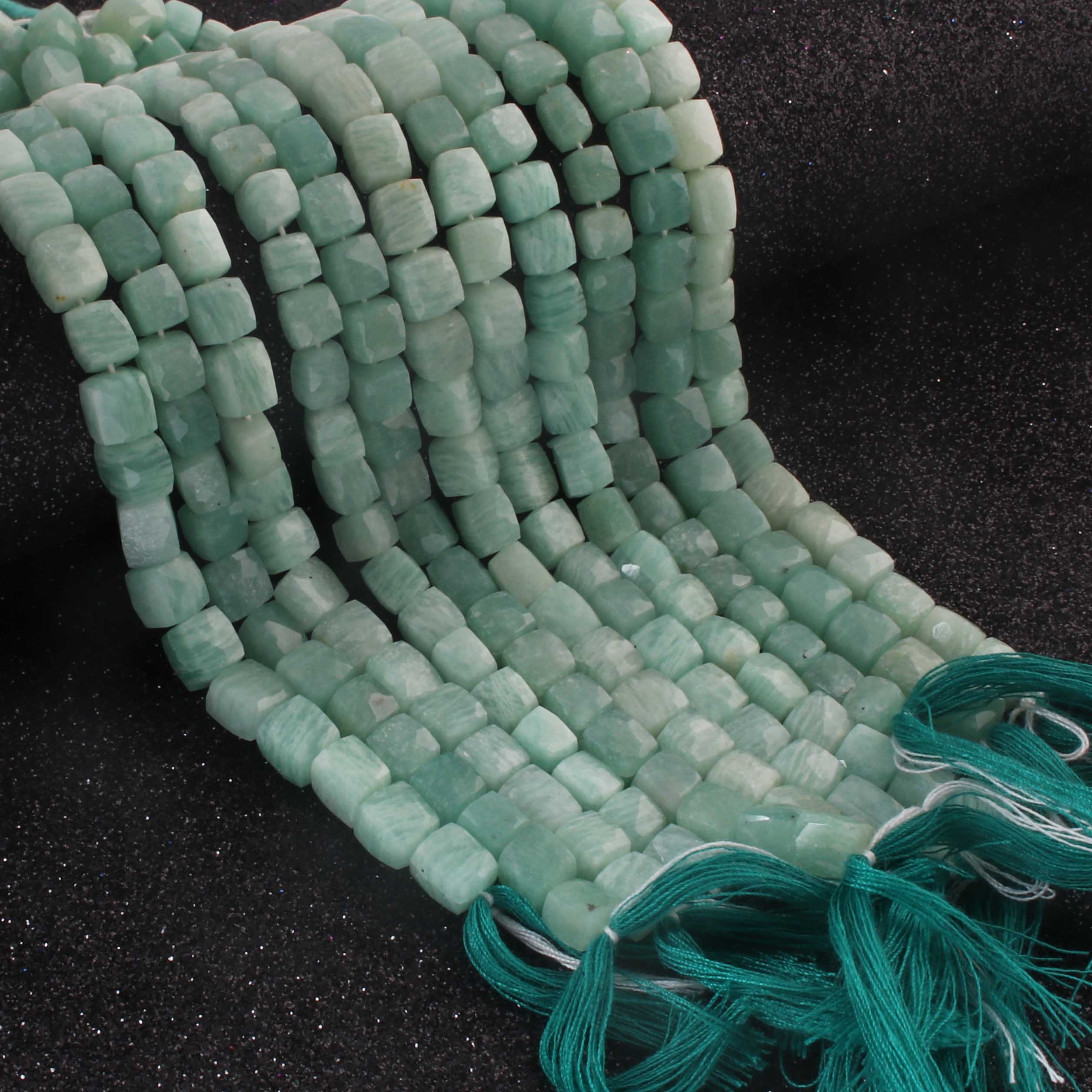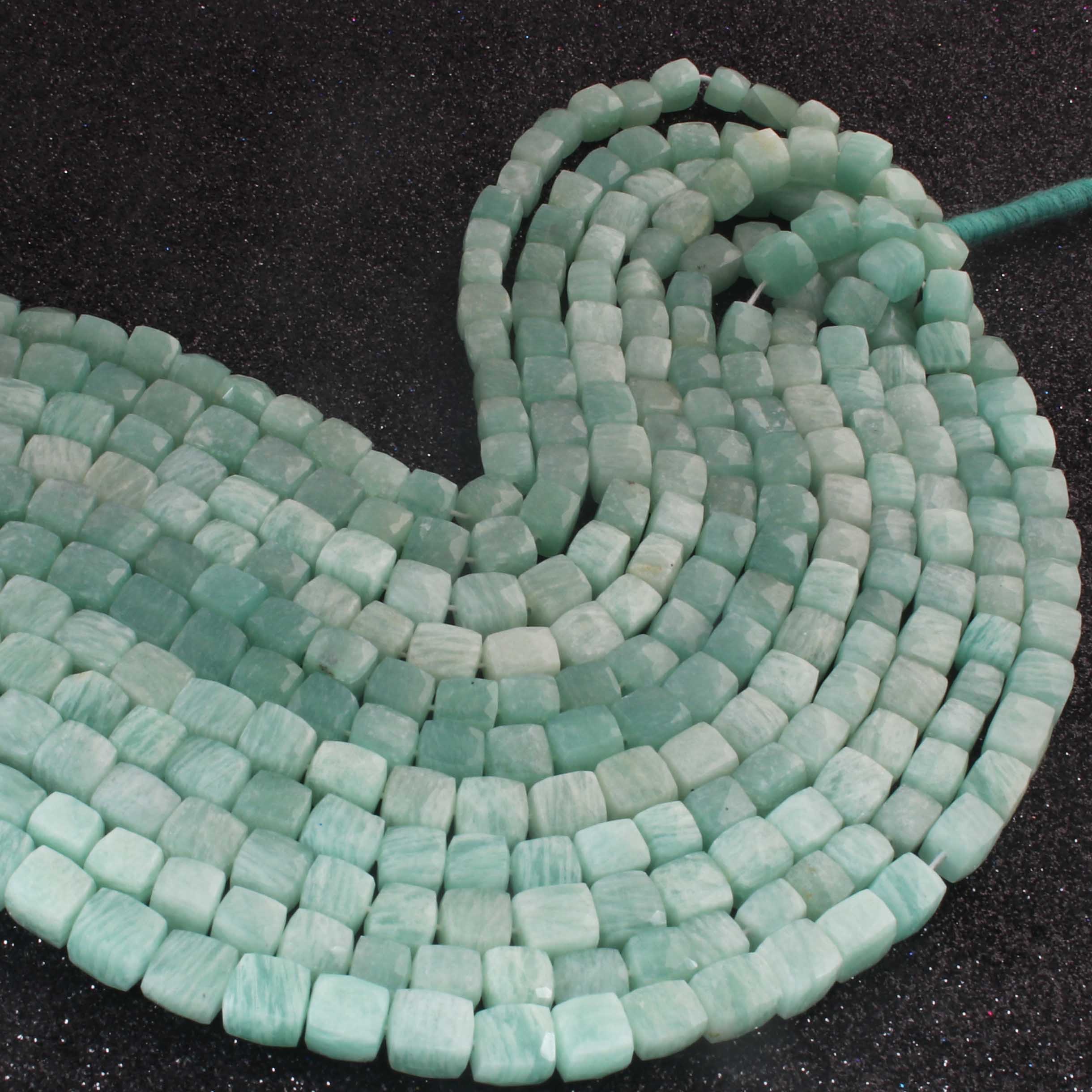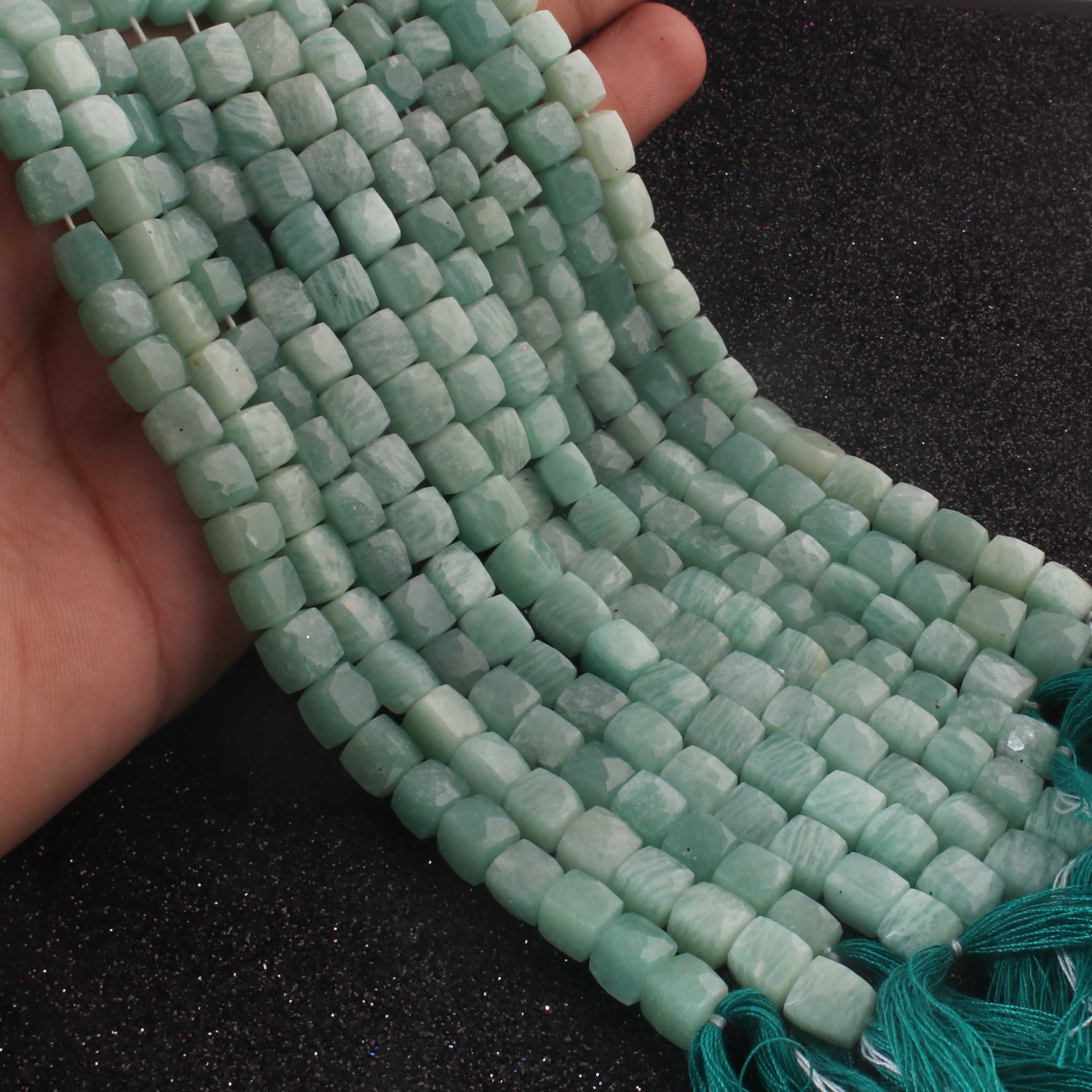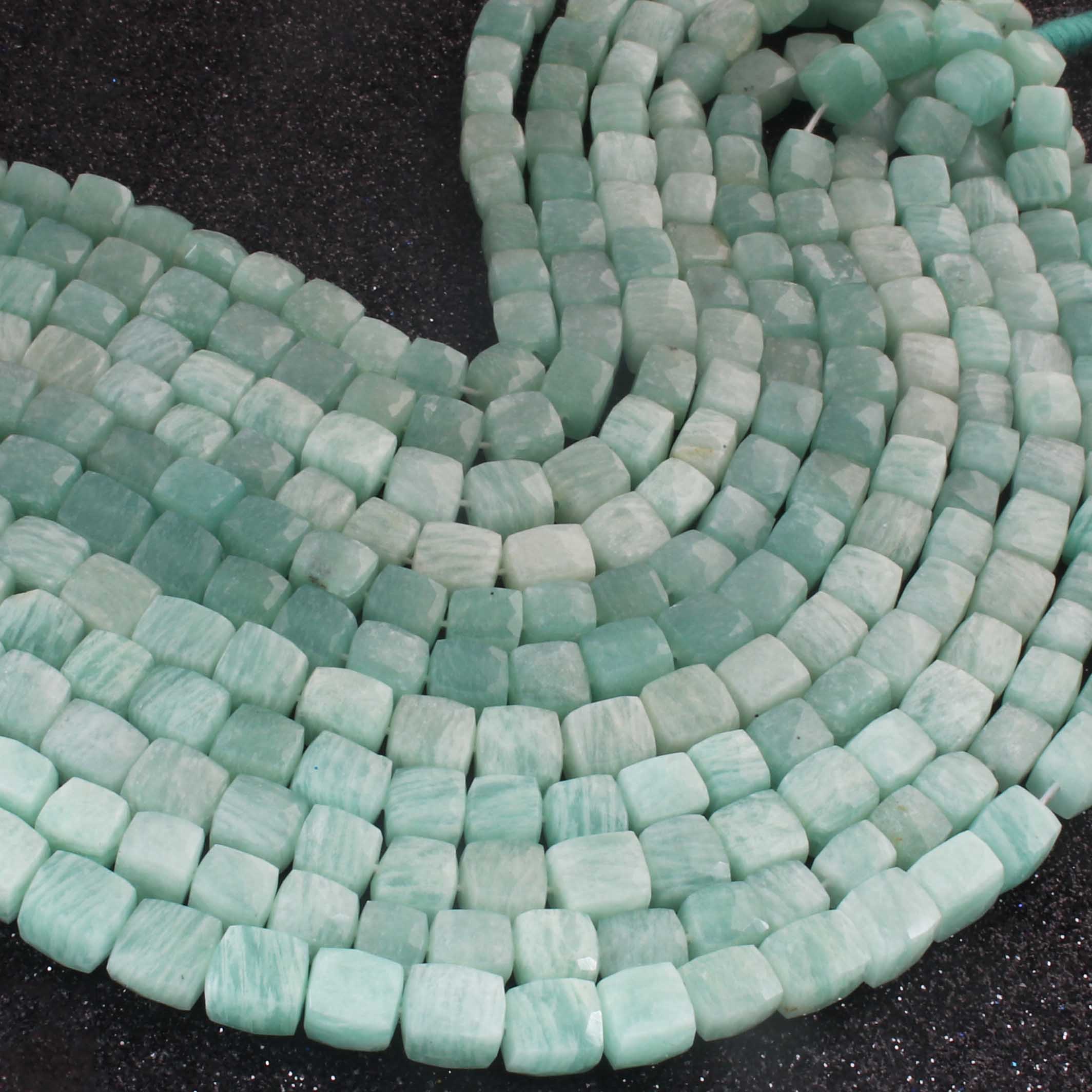 1 Strand Amazonite Faceted Cube Box Shape Beads -3D Cube Gemstone Beads, Fine Quality Amazonite Briolettes 7mm-8mm -8 Inches BR02881