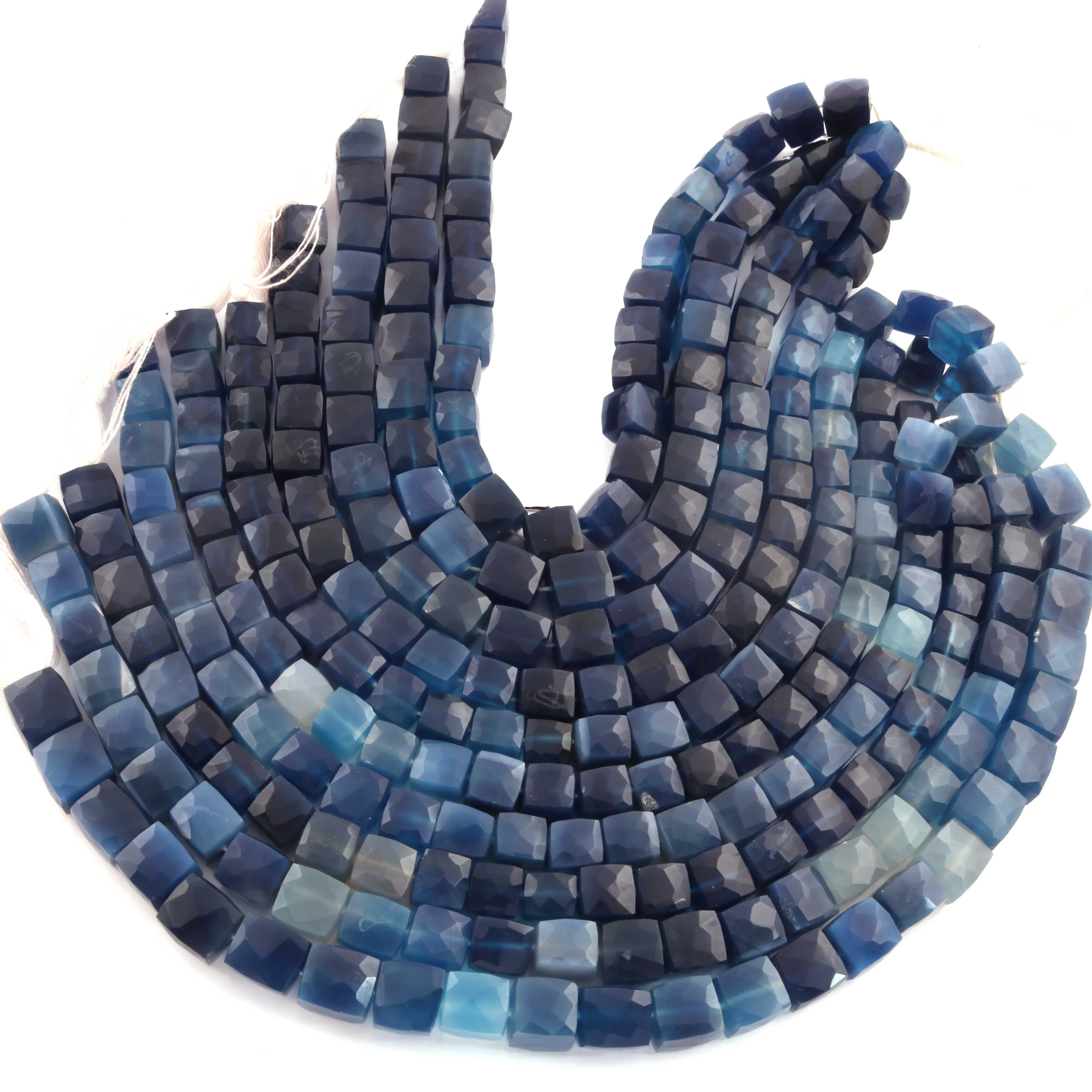 1 Strand Blue Quartz Faceted Cube Beads, 3D Box, Square, Dice Briolettes-6mm- 8mm- 8 Inches BR03942