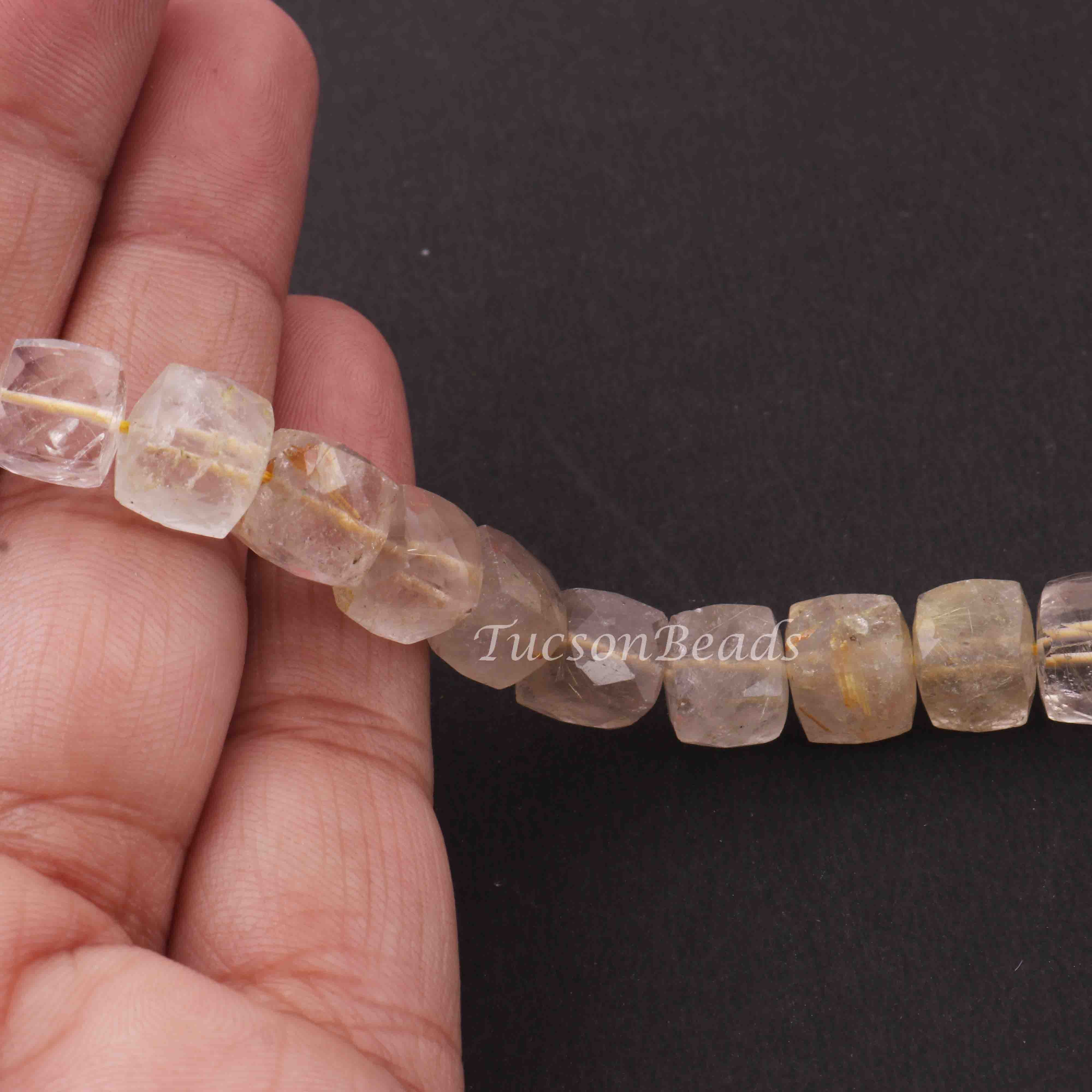 1 Strand Golden Rutile Faceted Cube Briolettes - Box shape Beads 7mm-10mm 8 Inches BR012