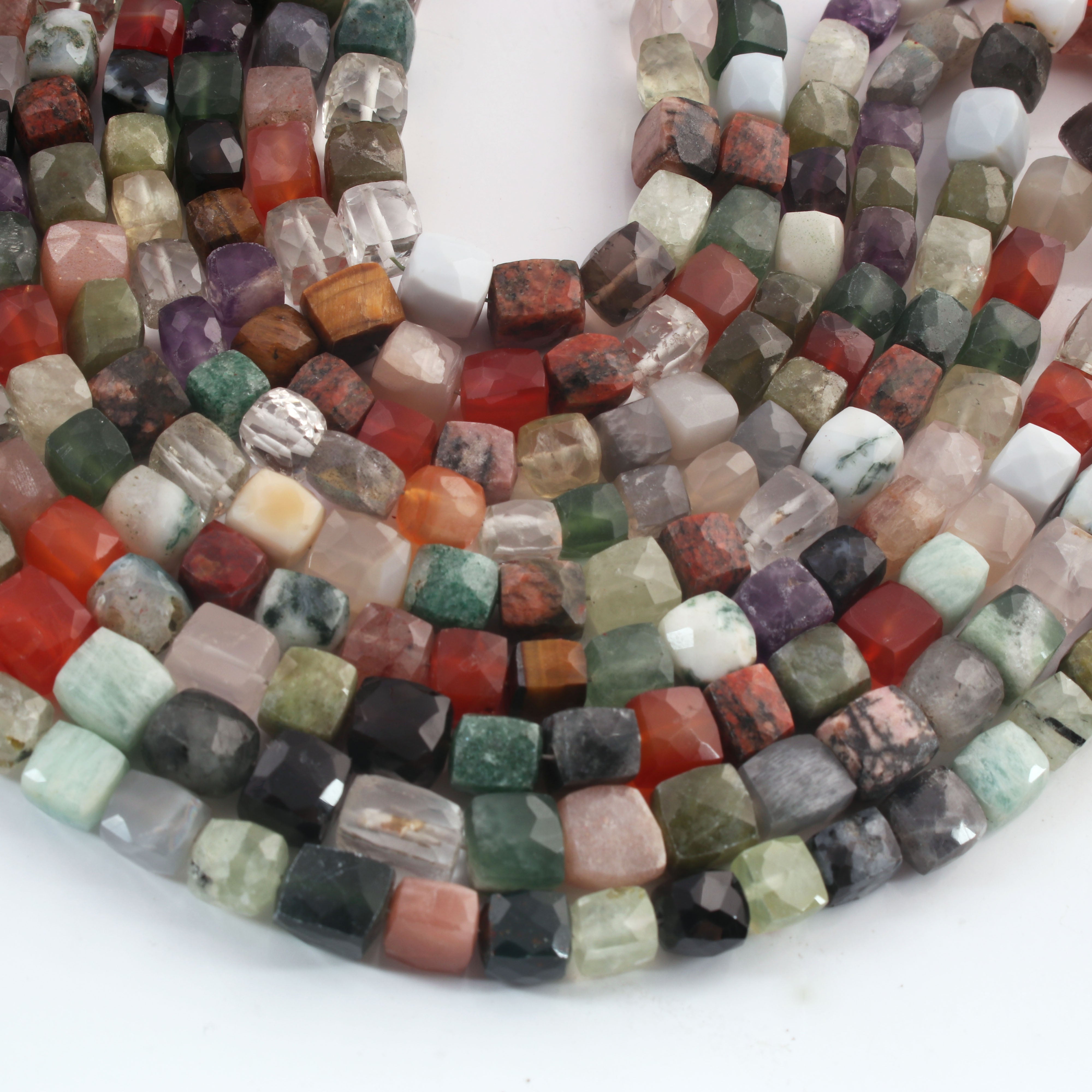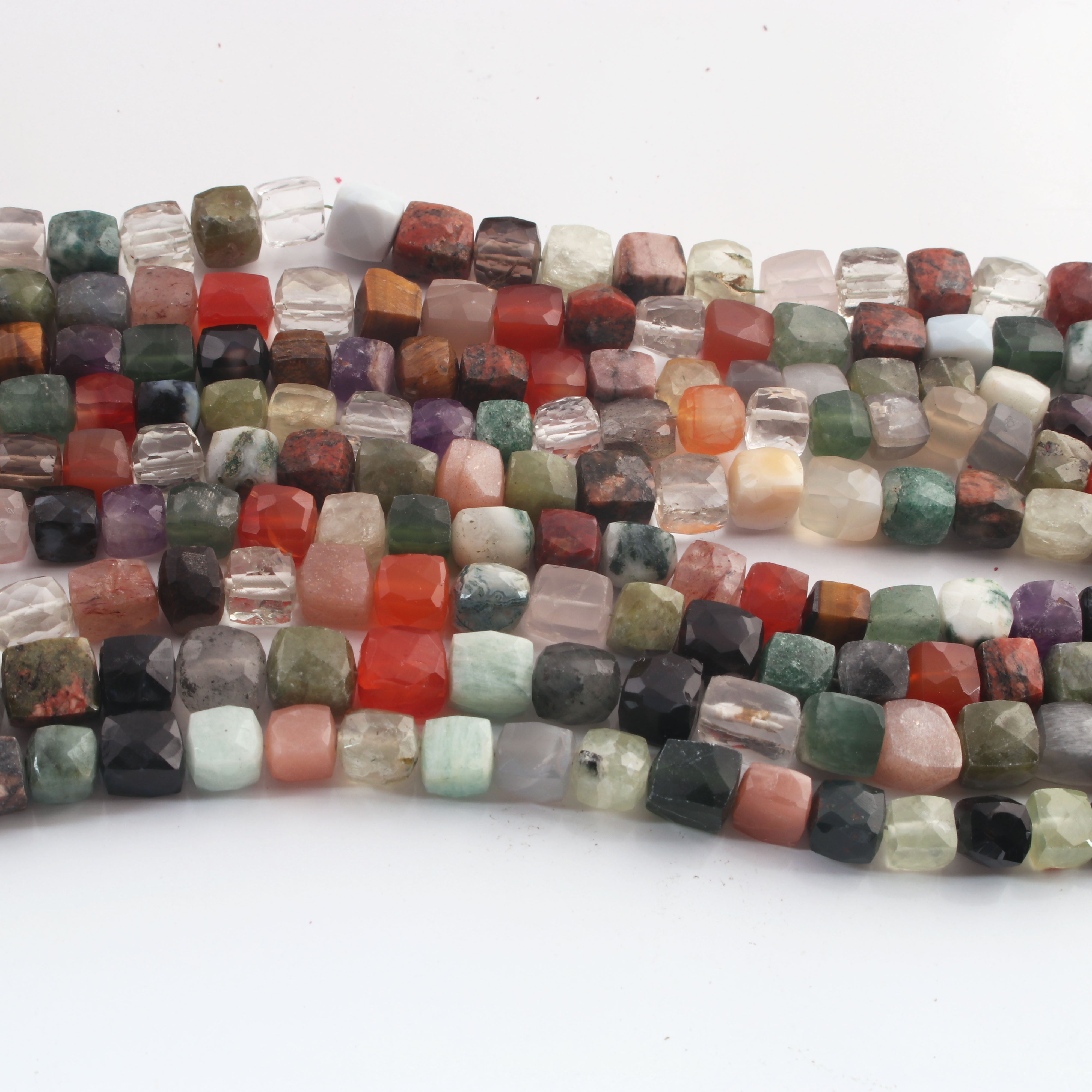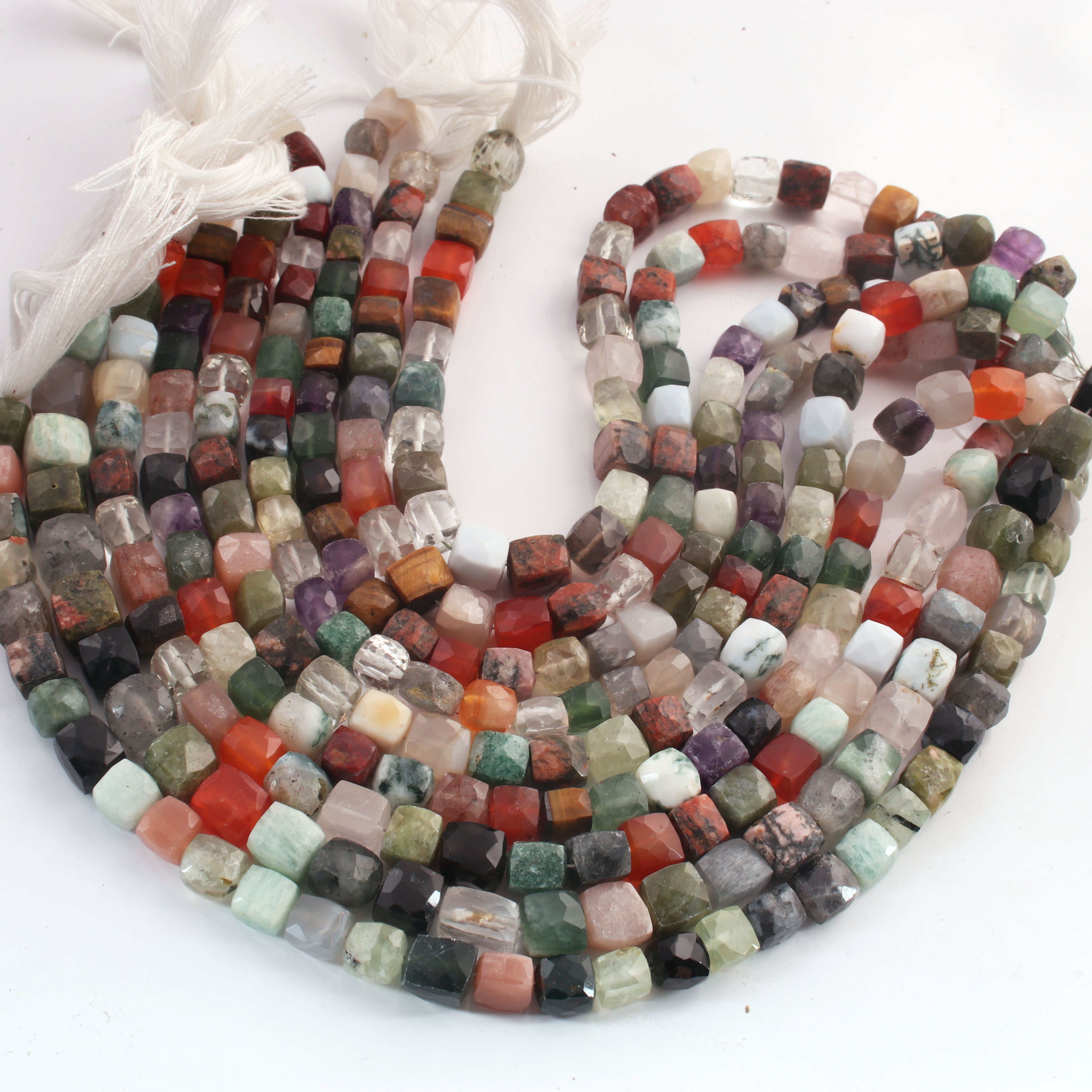 1 Strand Multi Stone Faceted Cube Briolettes -Box Shape Beads 6mm-8mm 8 inches BR1084