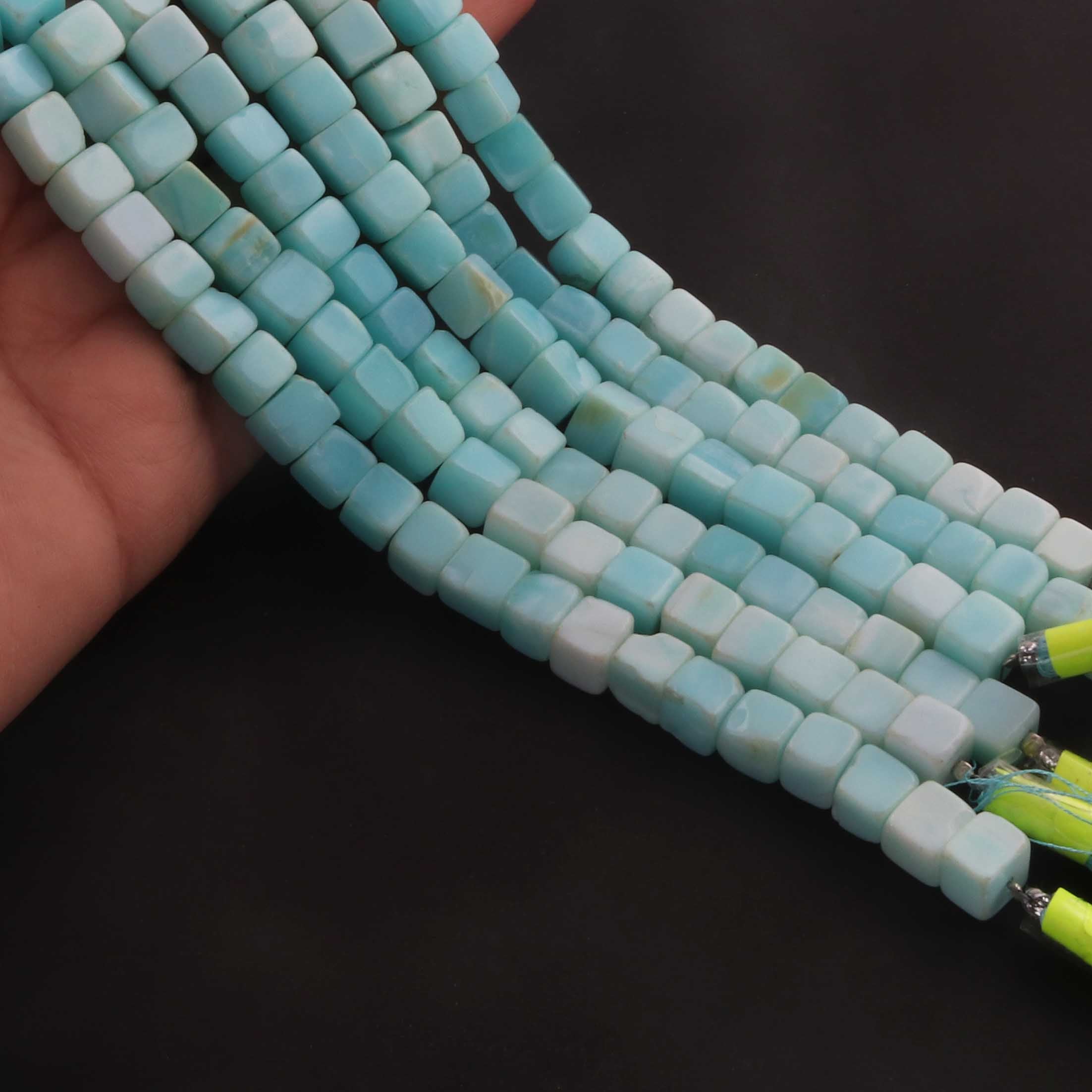 1 Strand Peru Opal Smooth Cube Briolettes - Box Shape Gemstone Beads 7mm-9mm- 8 Inches BR03378