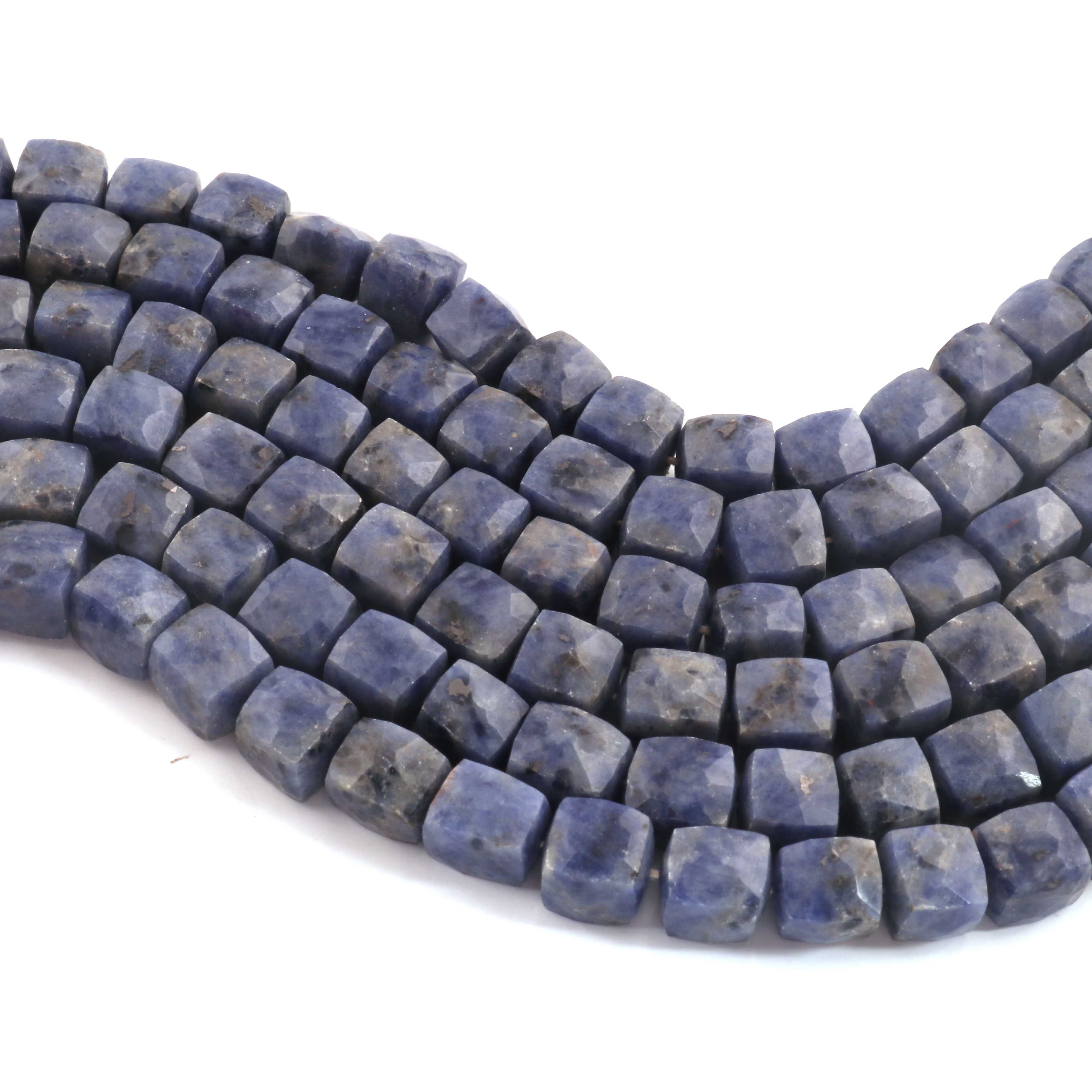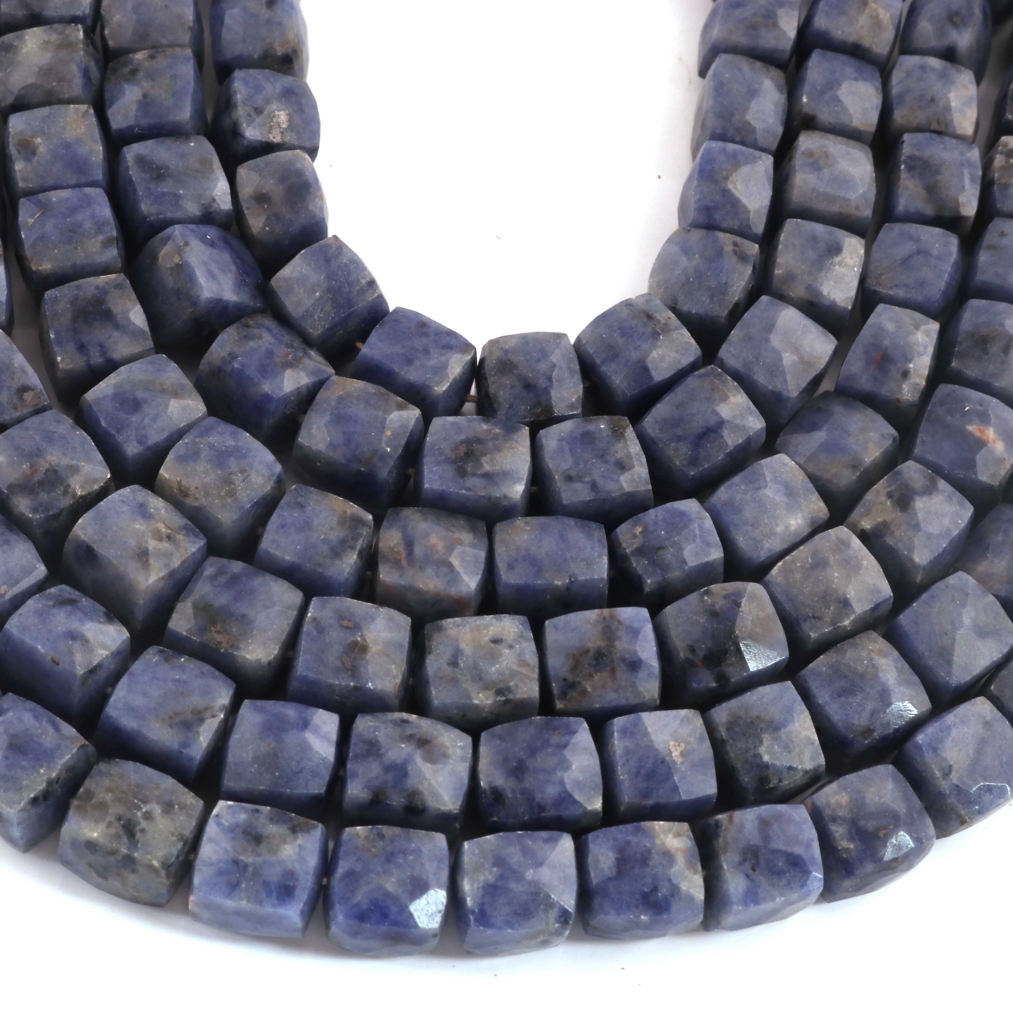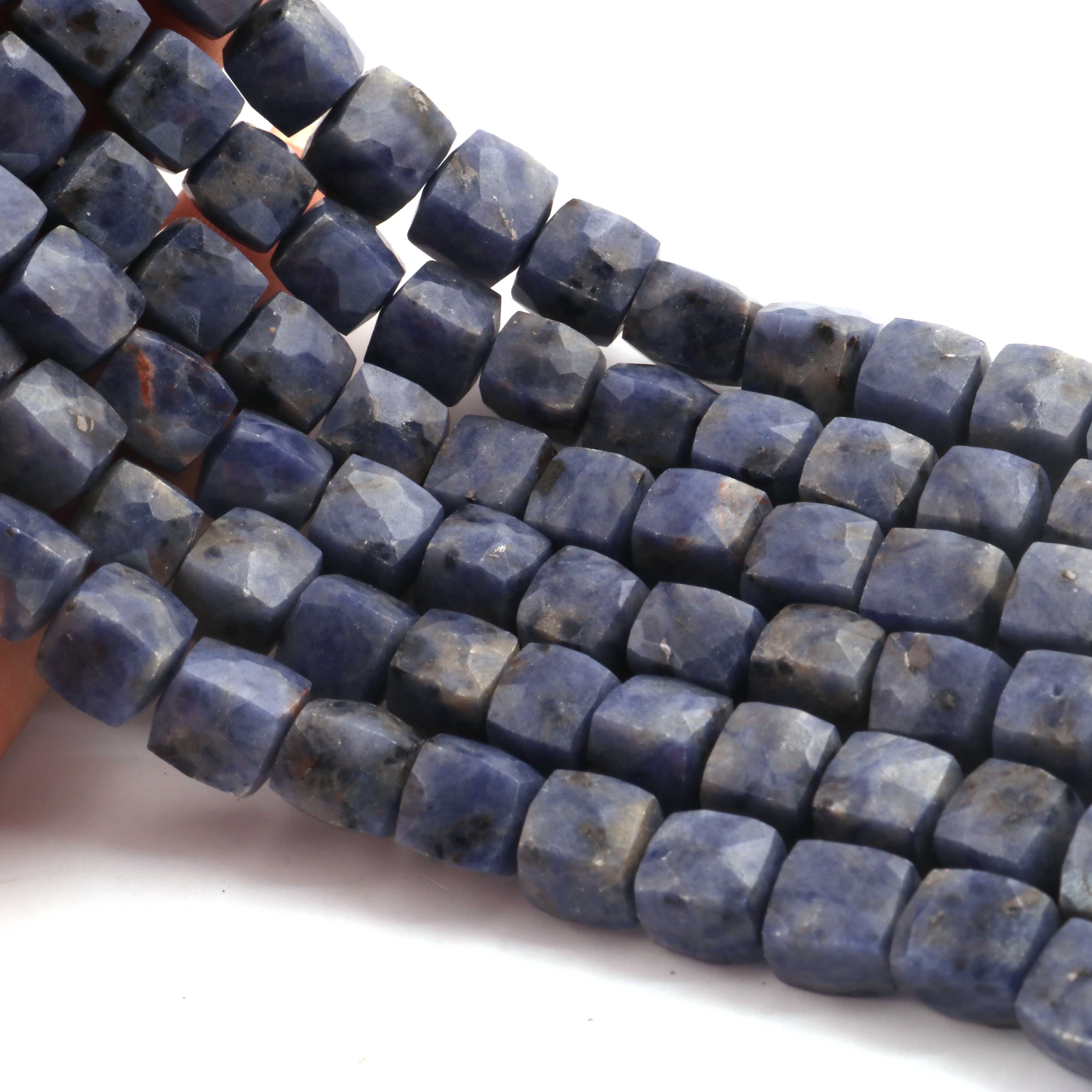 1 Strand Sodalite Faceted Cube Beads, 3D Box, Square, Dice Briolettes - 7mm-8mm- 8 Inches BR03955