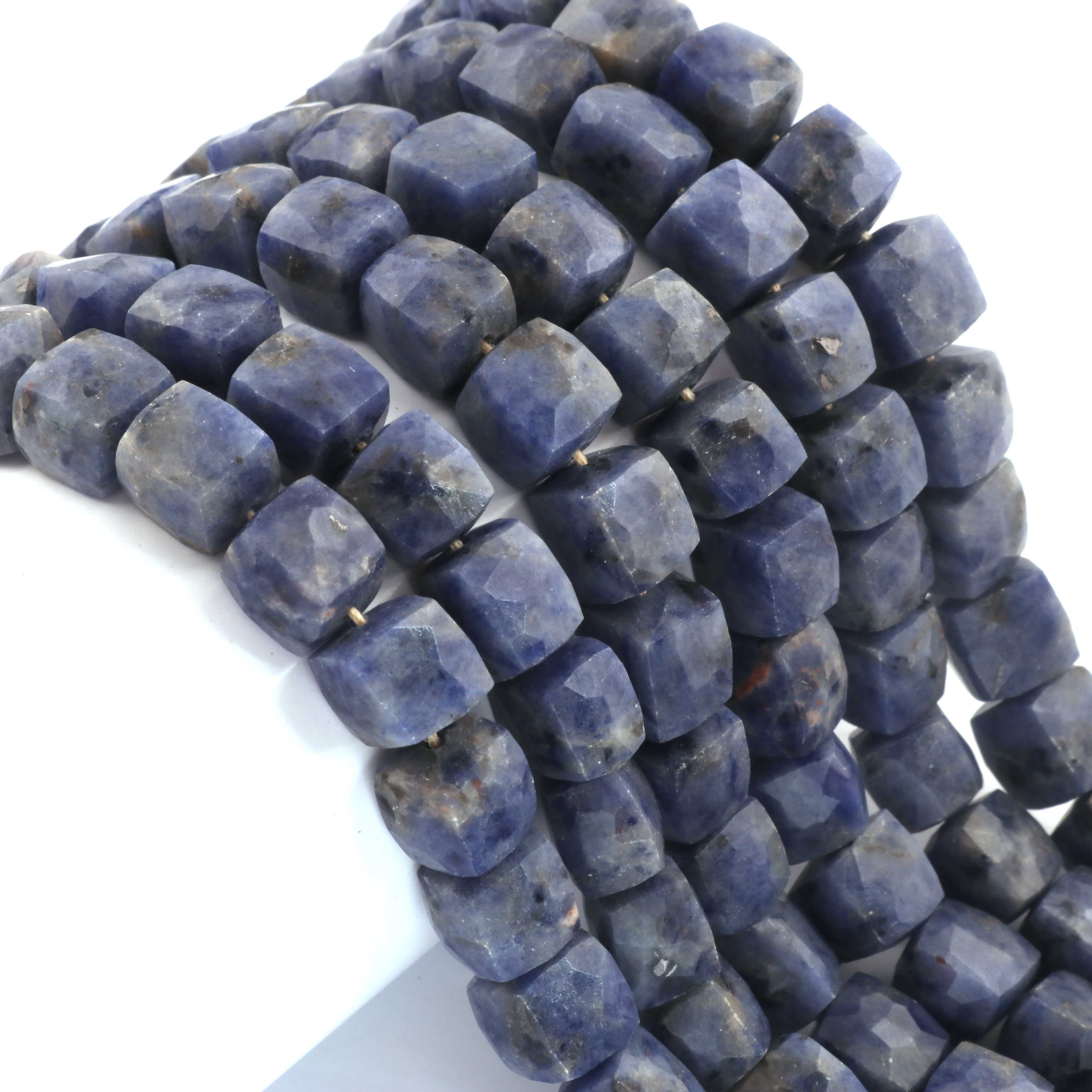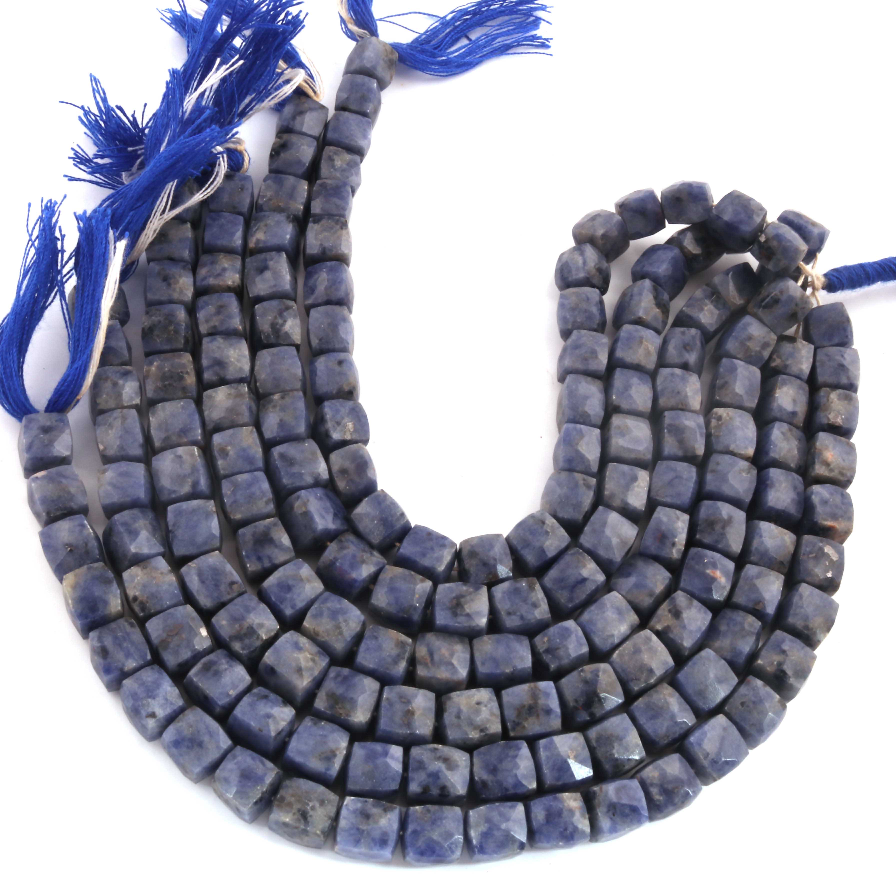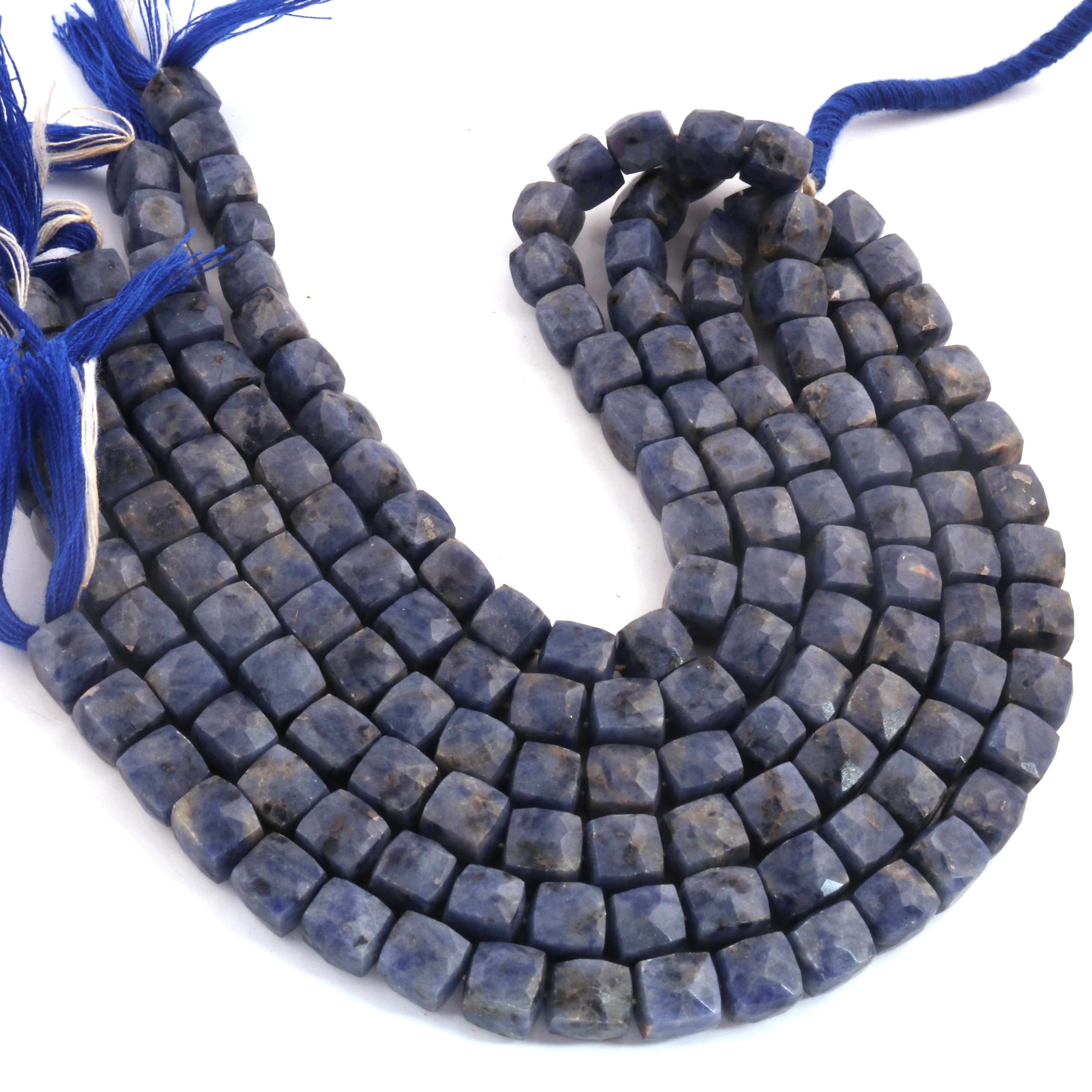 1 Strand Sodalite Faceted Cube Beads, 3D Box, Square, Dice Briolettes - 7mm-8mm- 8 Inches BR03955
