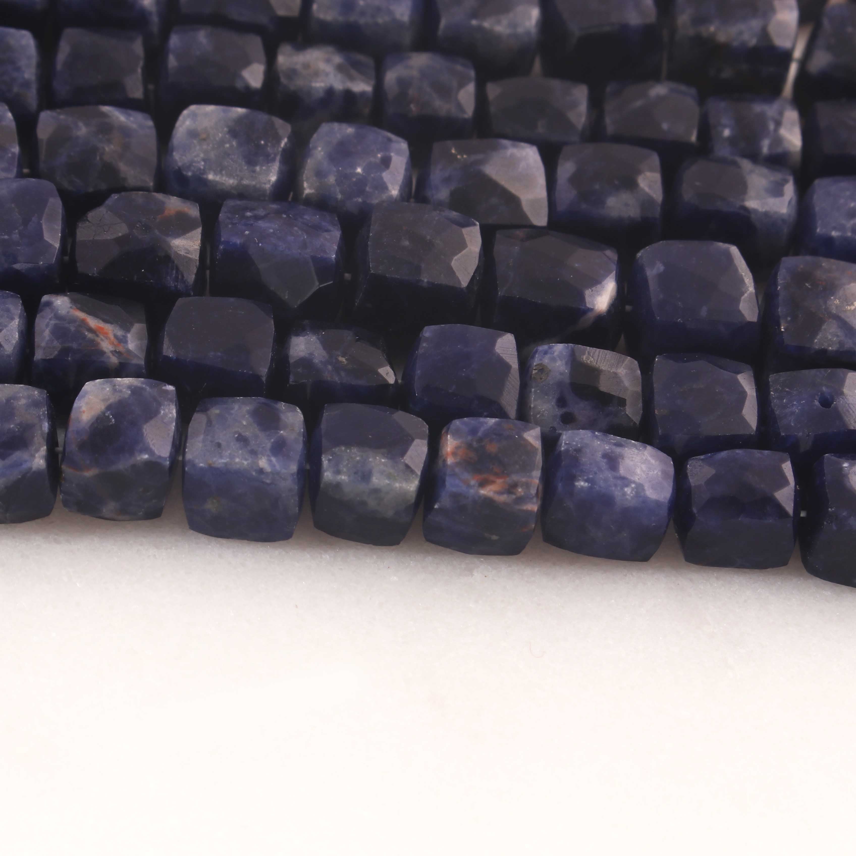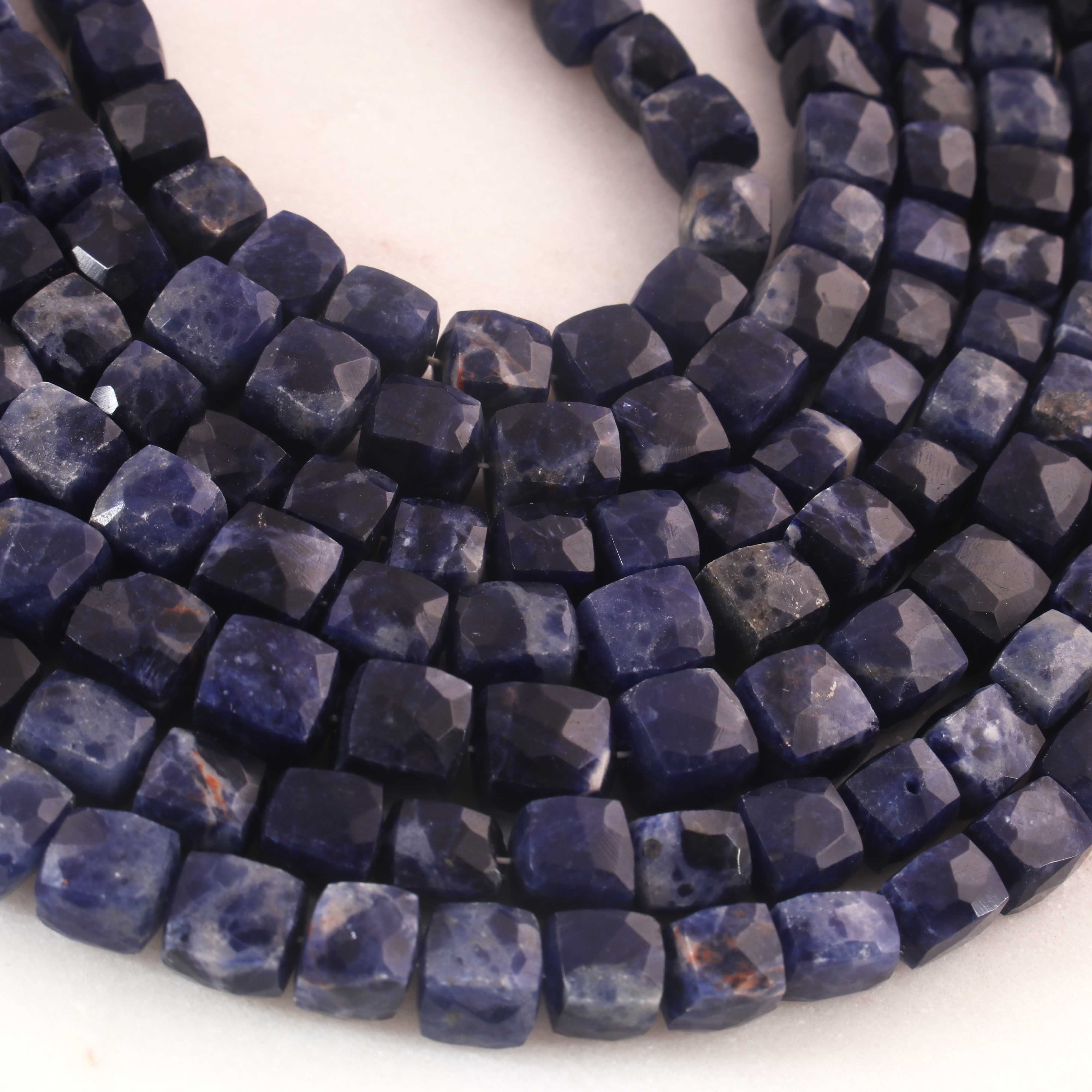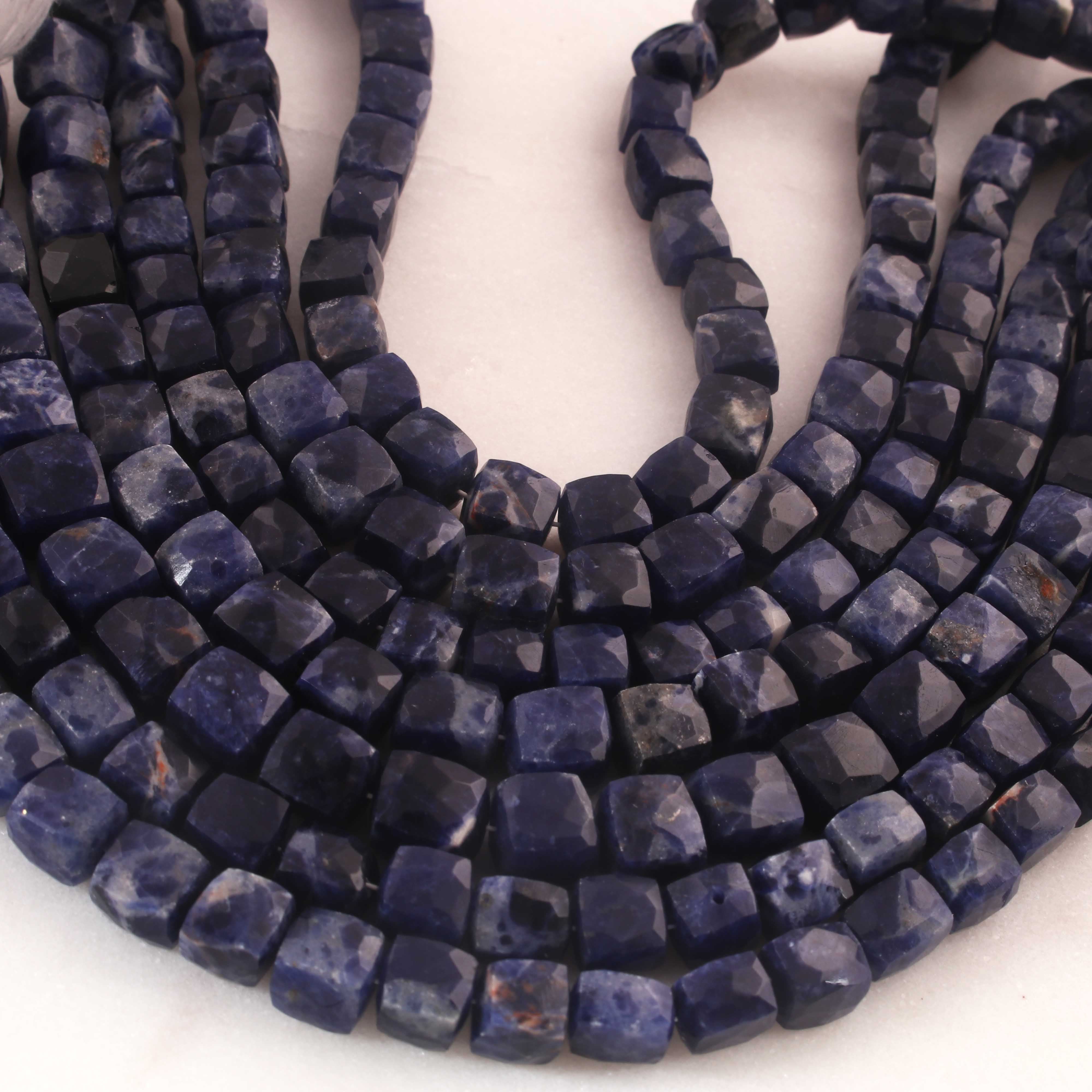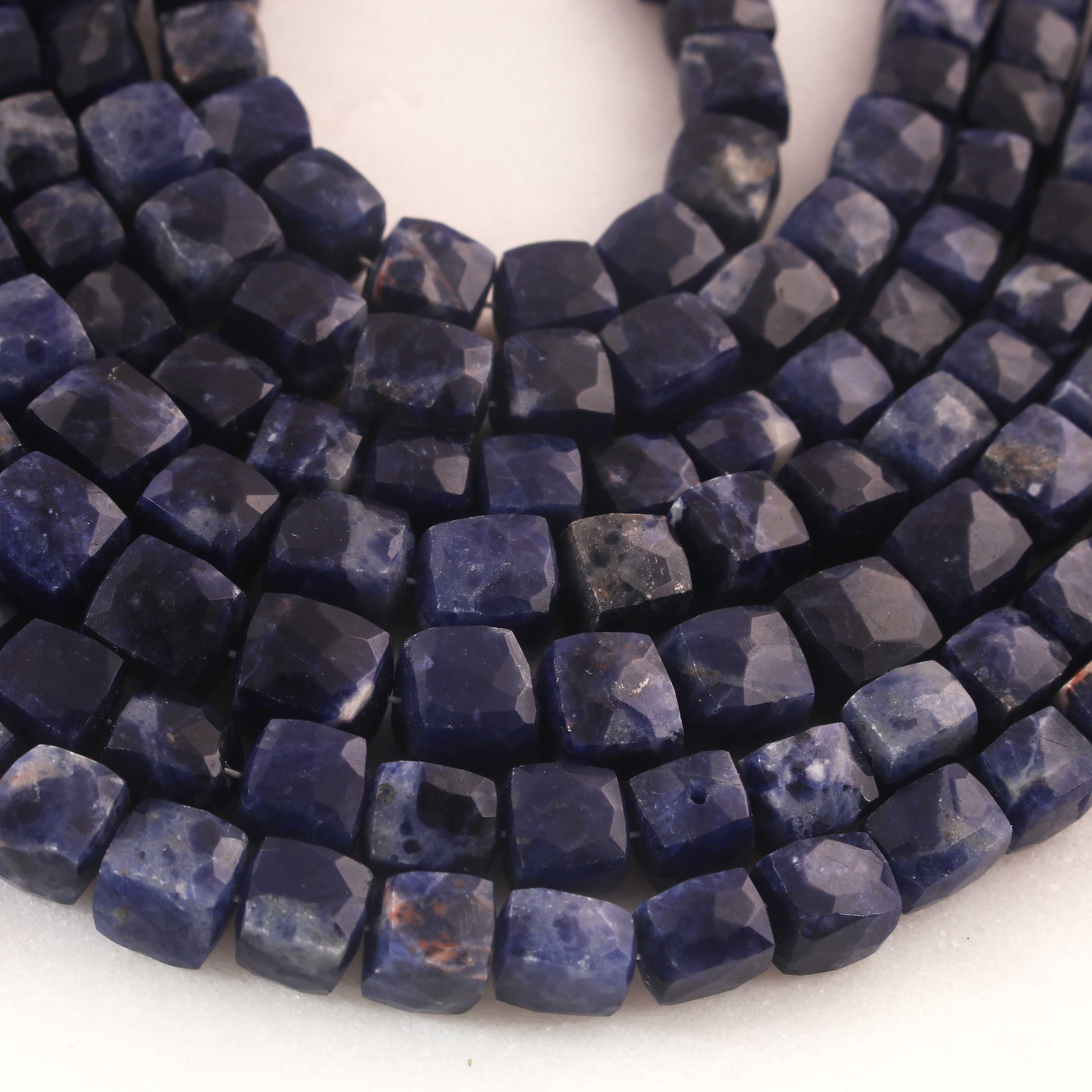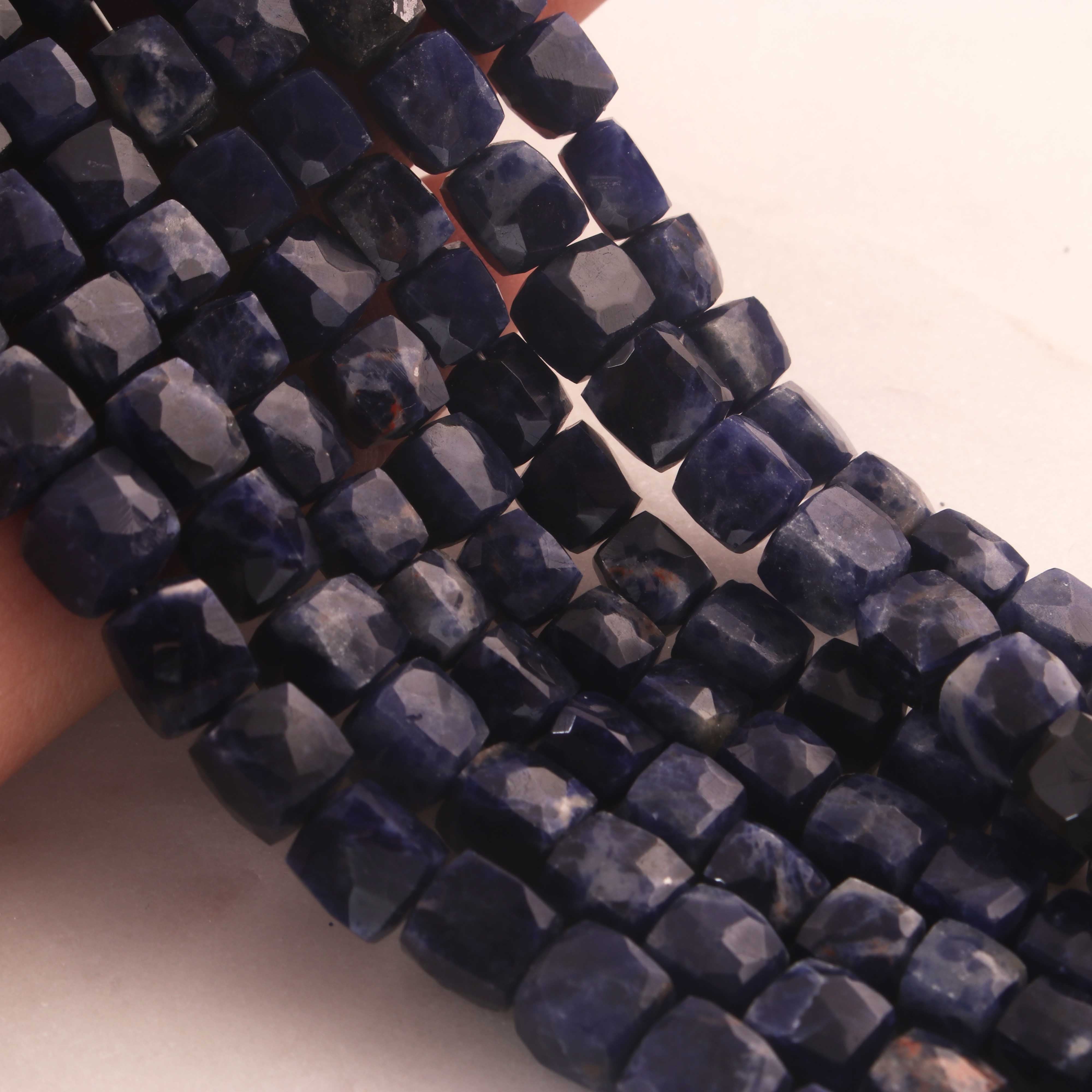 1 Strand Sodalite Faceted Cube Box Shape Beads -3D Cube Gemstone Beads, Fine Quality Snow Flake Briolettes 6mm-8mm -8 Inches BR02872