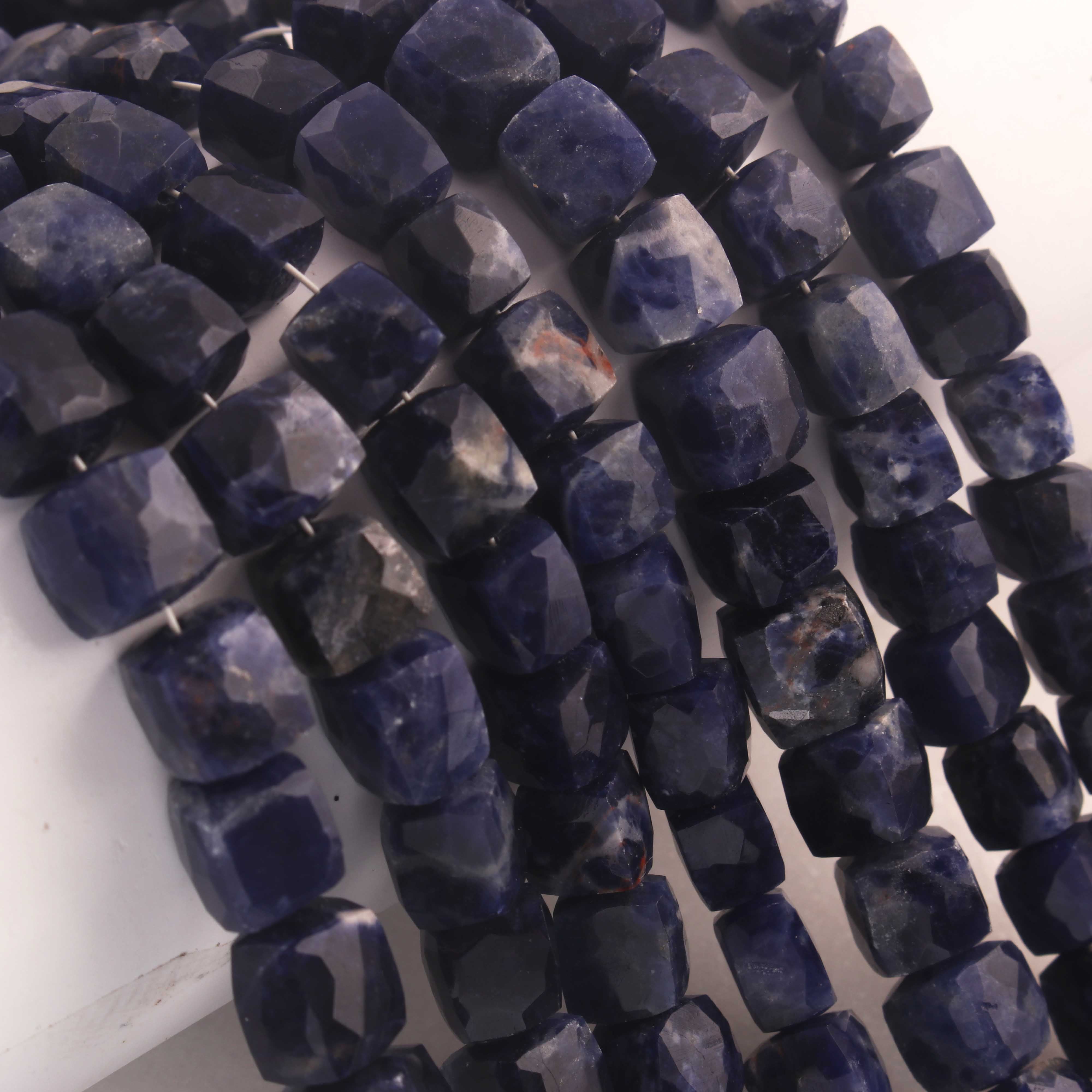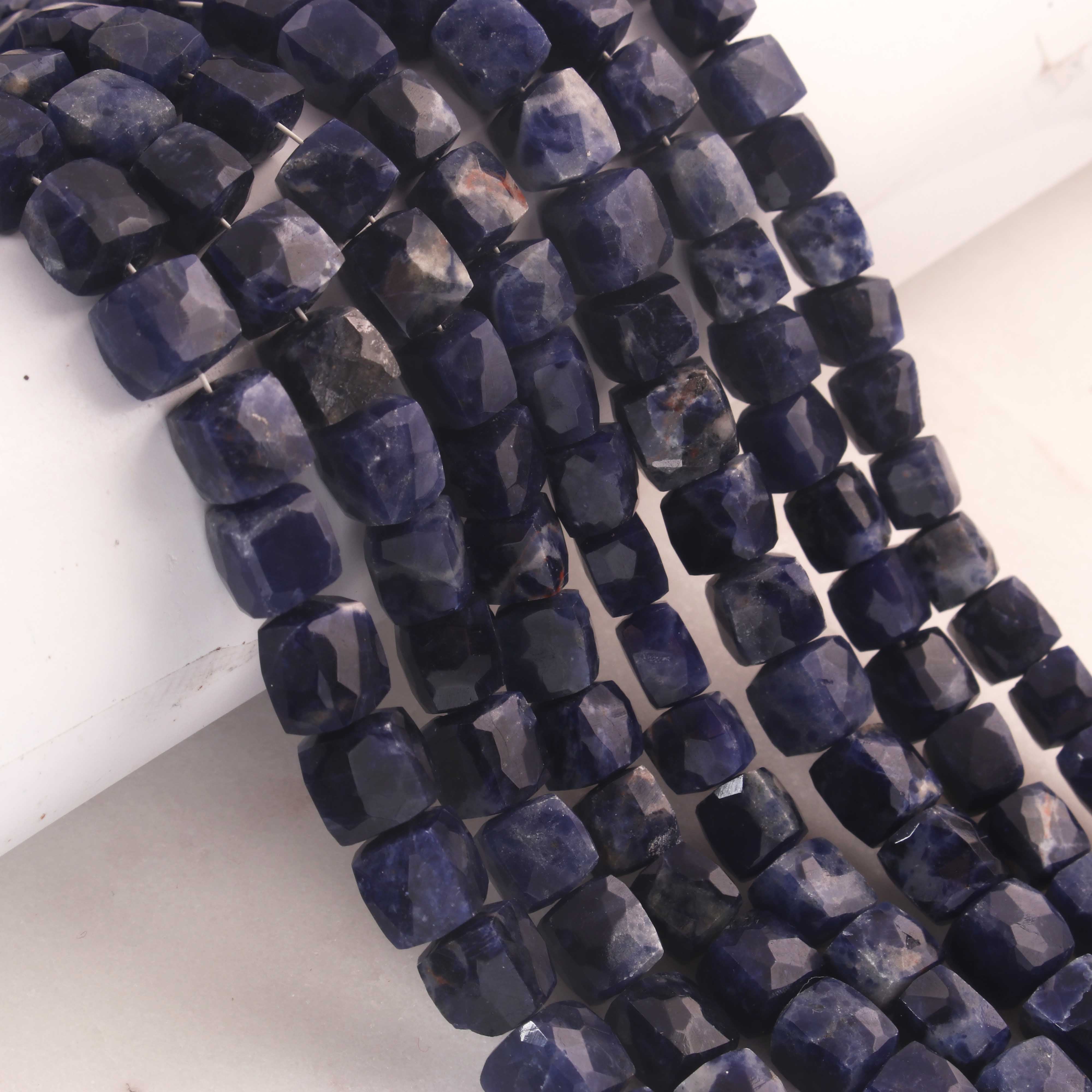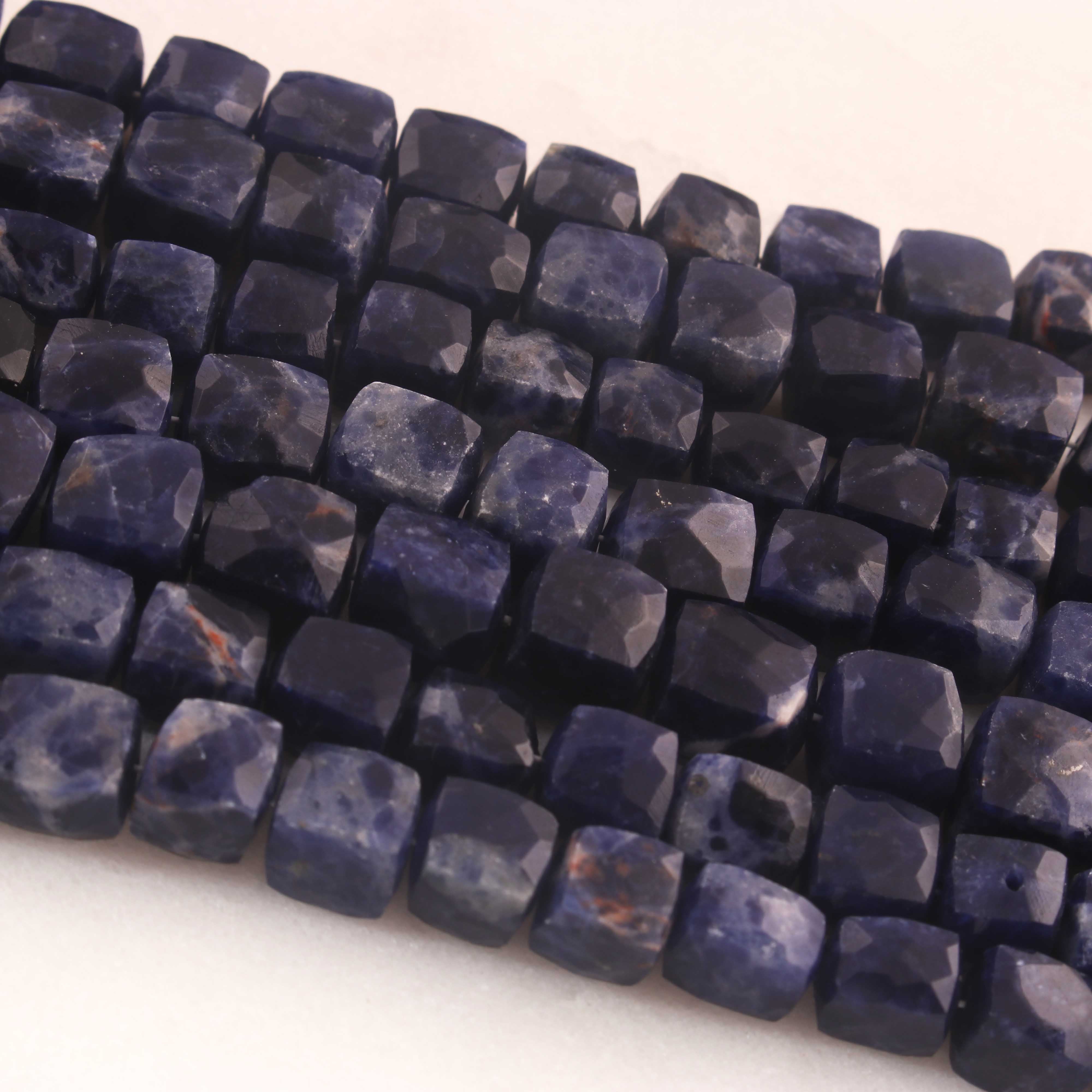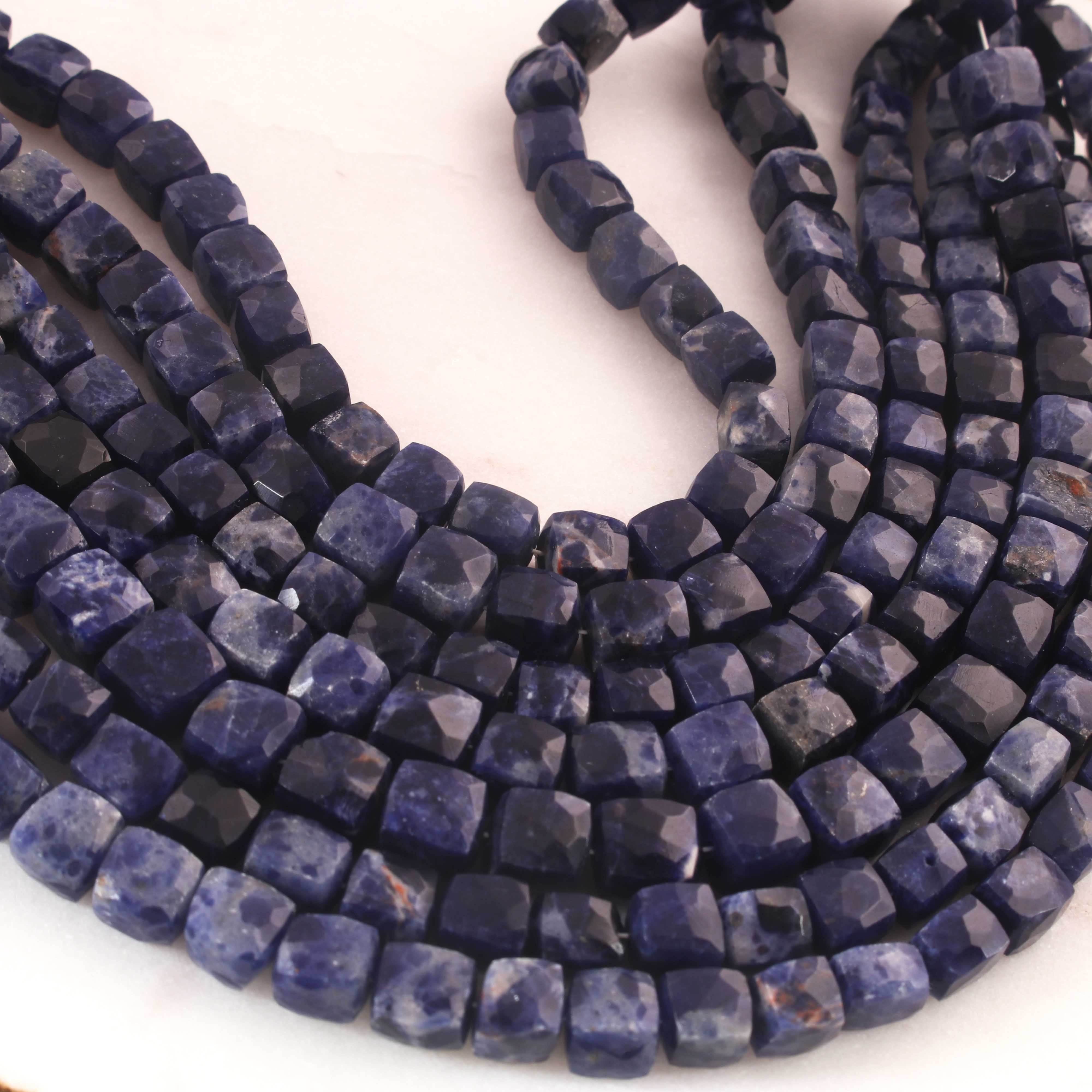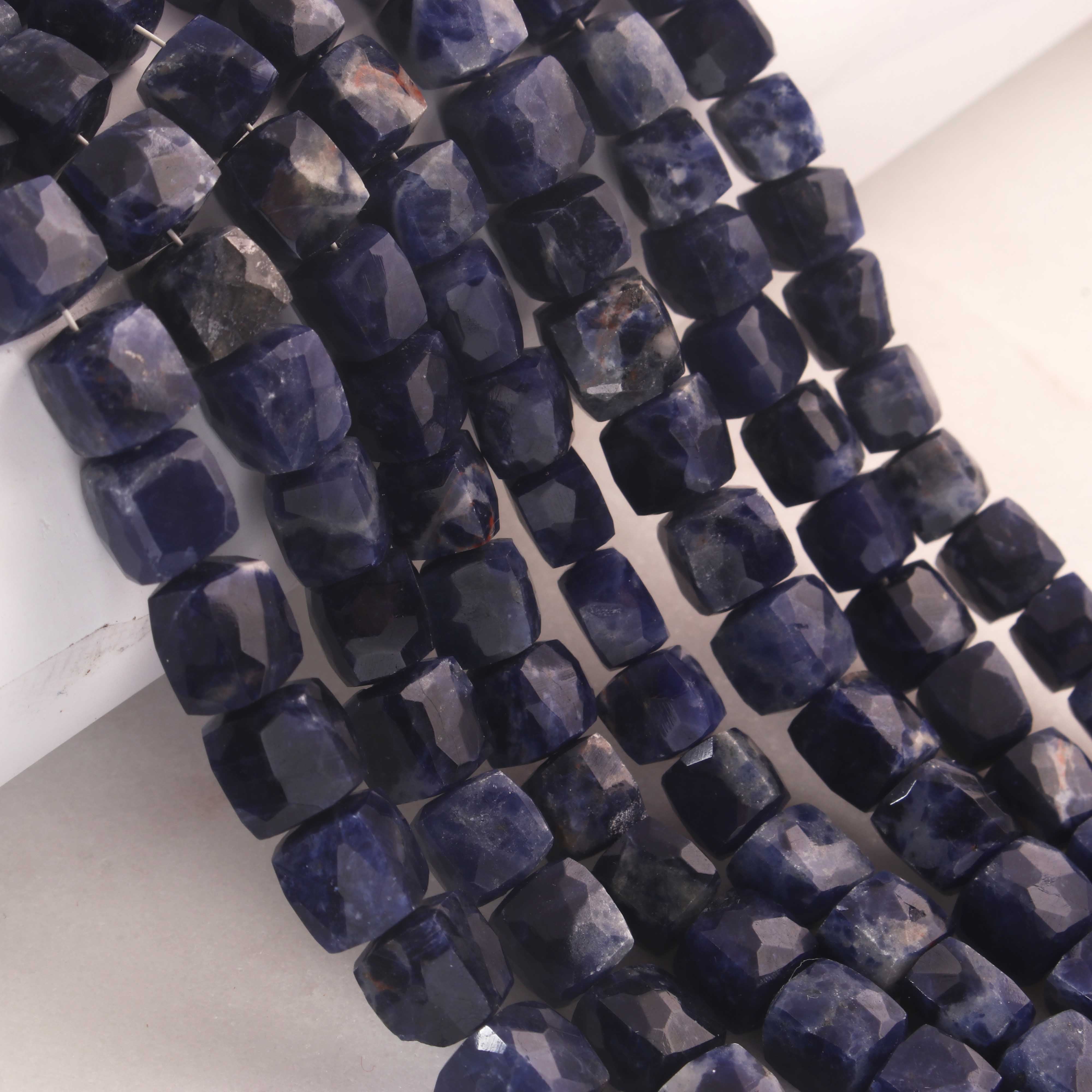 1 Strand Sodalite Faceted Cube Box Shape Beads -3D Cube Gemstone Beads, Fine Quality Snow Flake Briolettes 6mm-8mm -8 Inches BR02872
