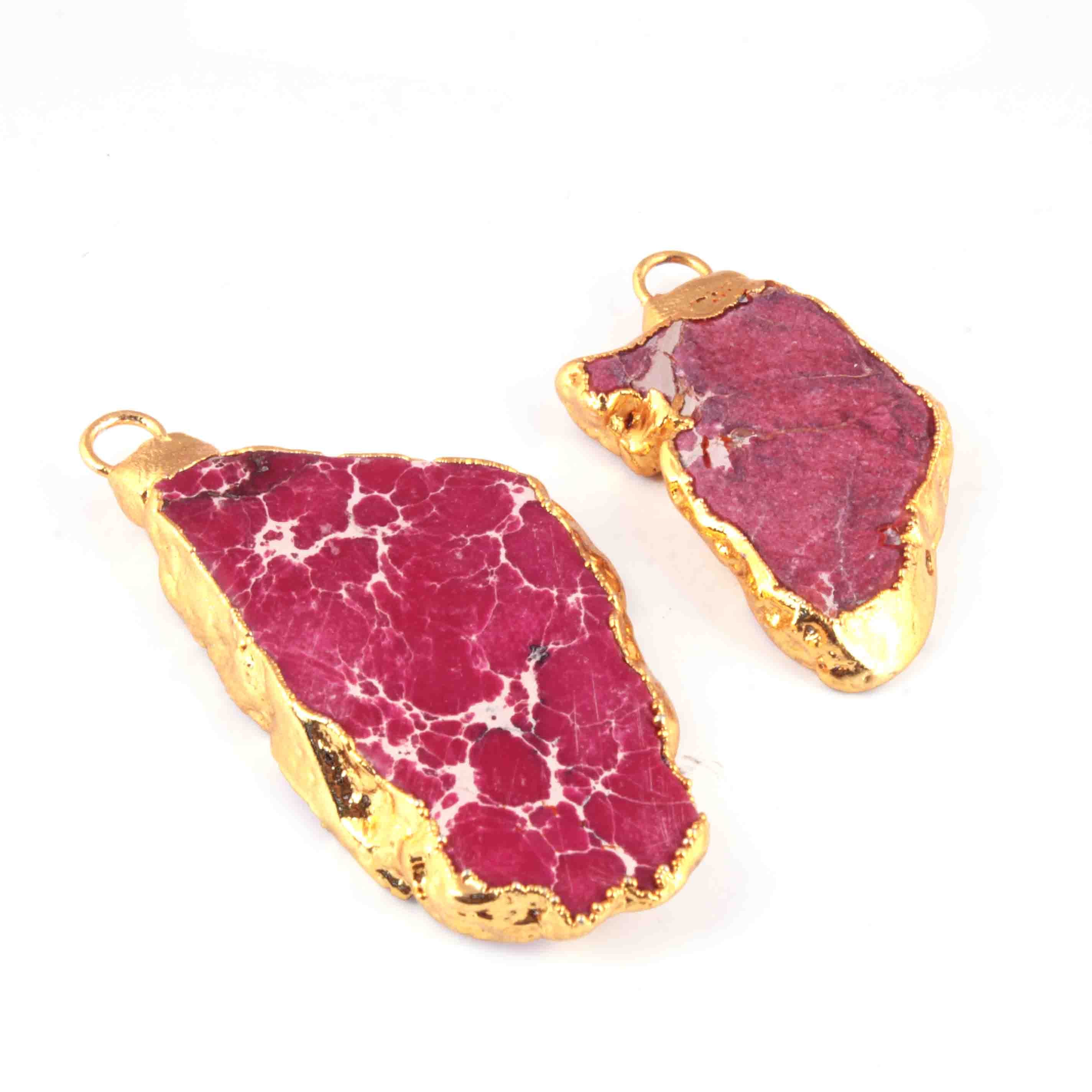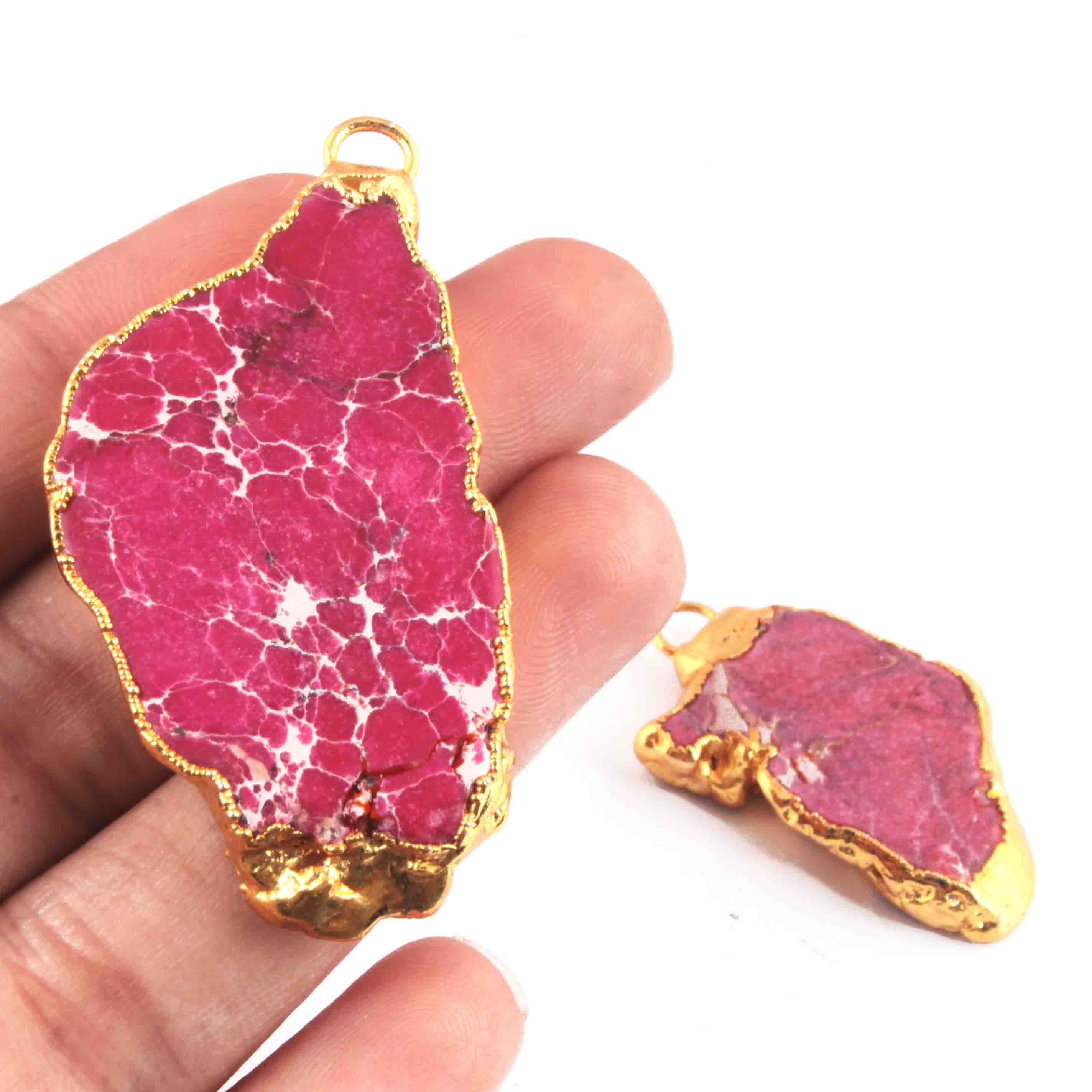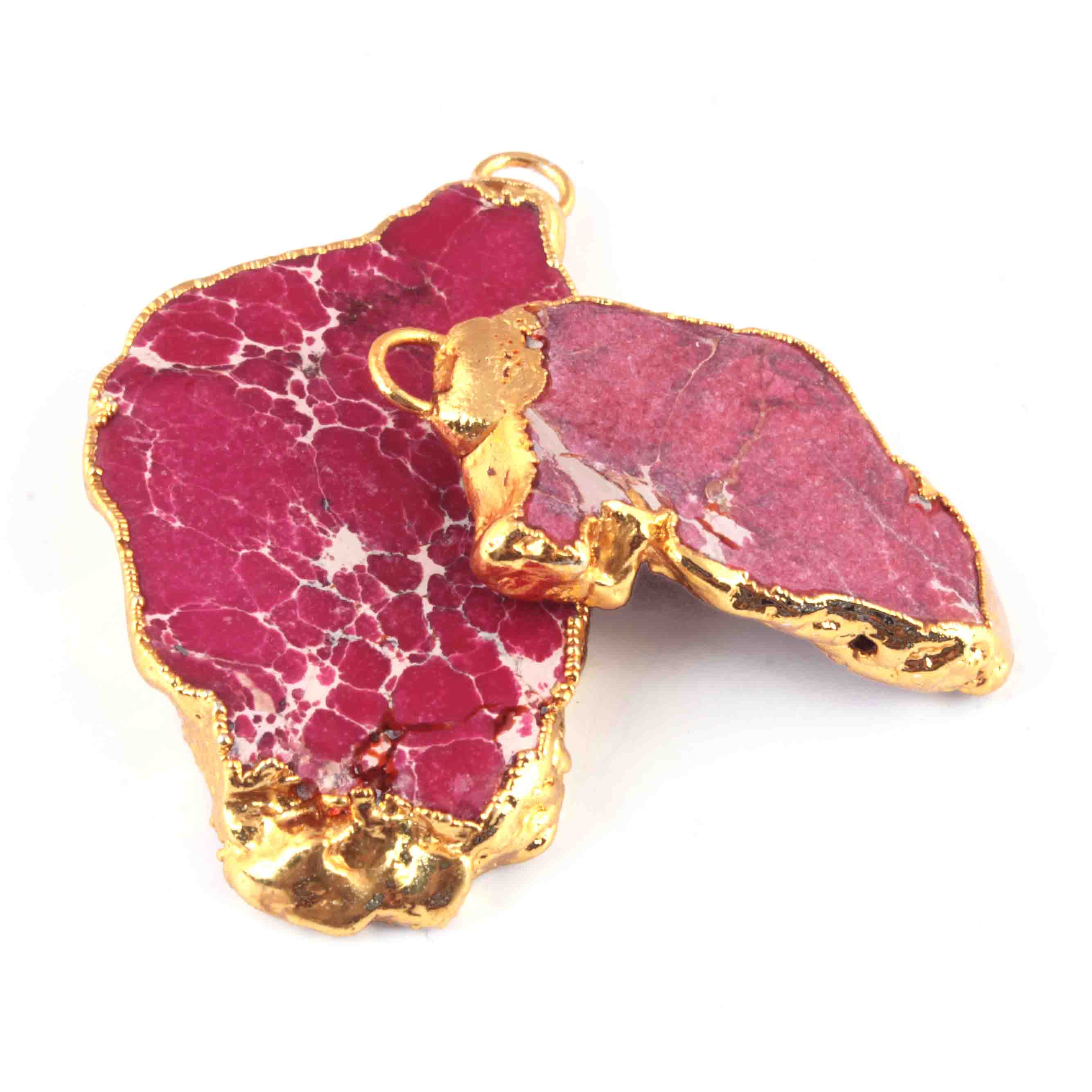 2 Pcs 24k Gold Plated Geode Agate Pink Druzzy Slice Pendant , Fancy Shape Druzzy , Gemstone Pendant , Jewelry Making DRZ413