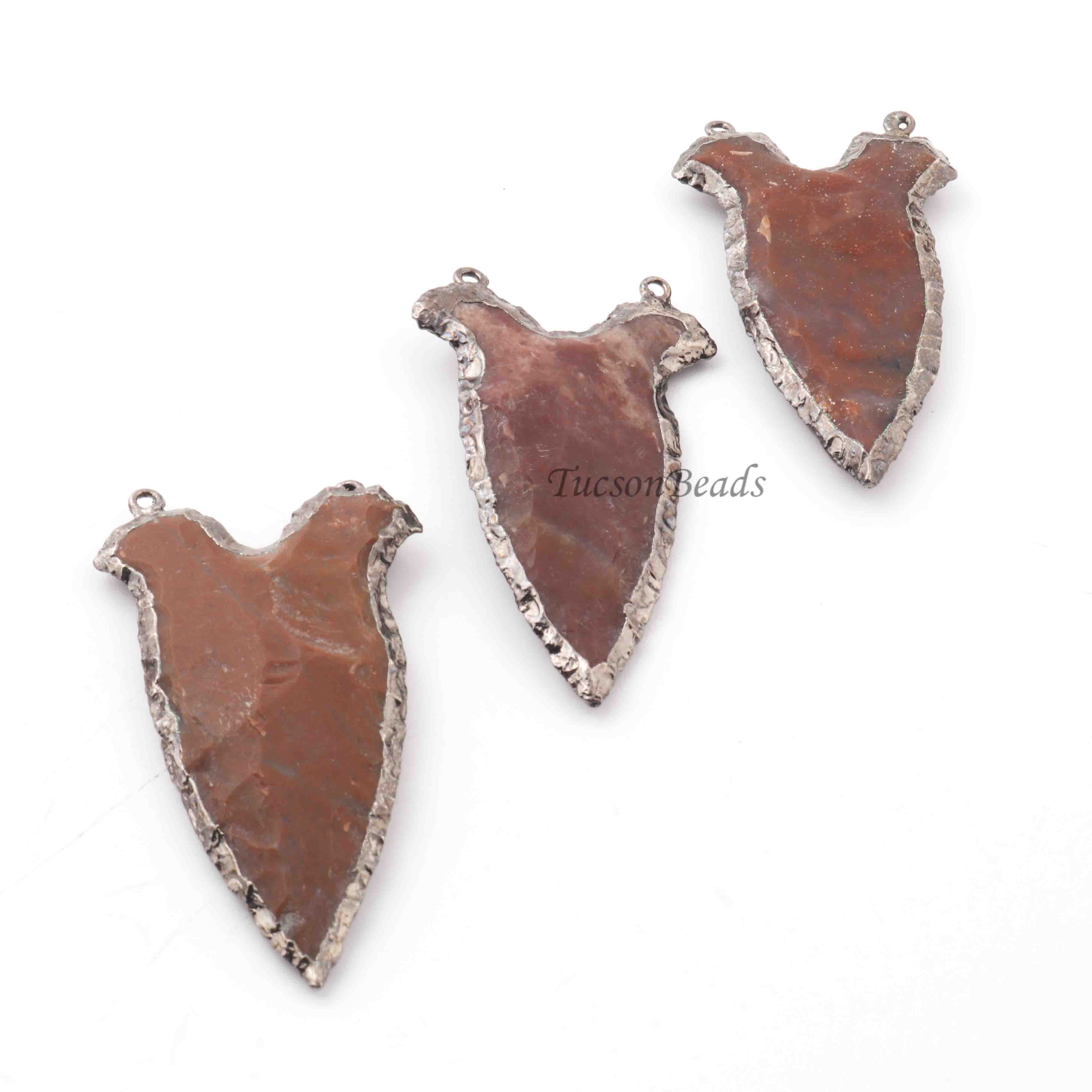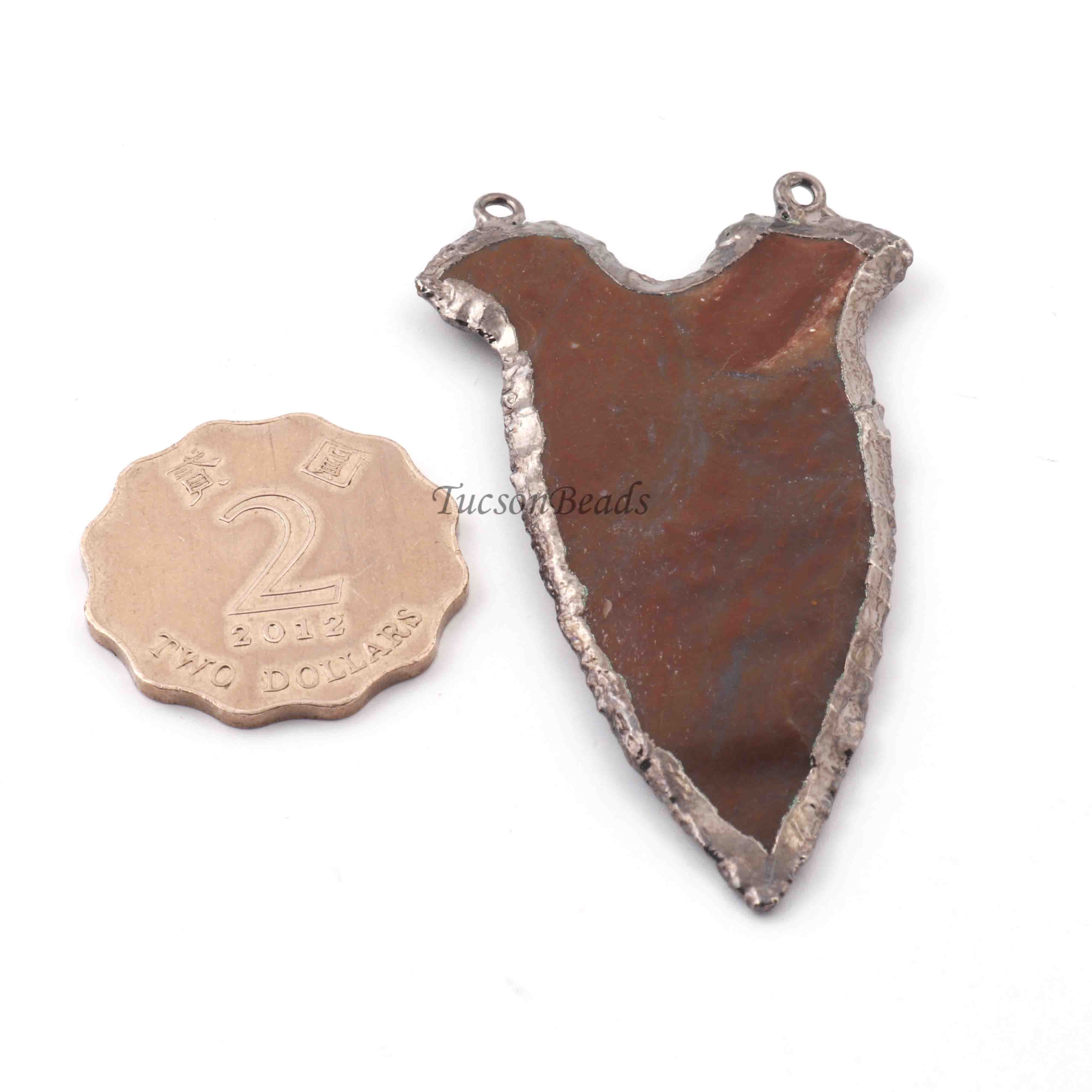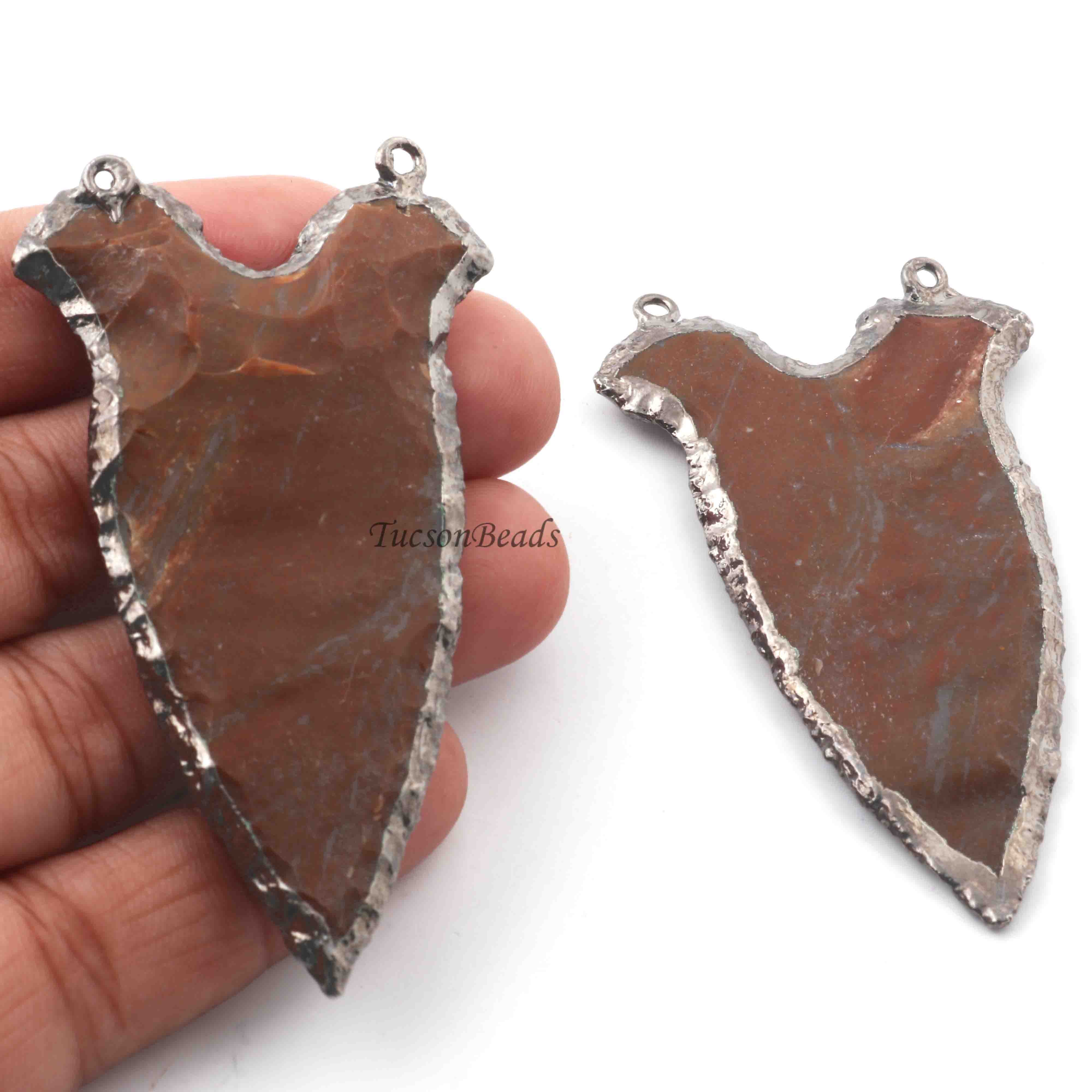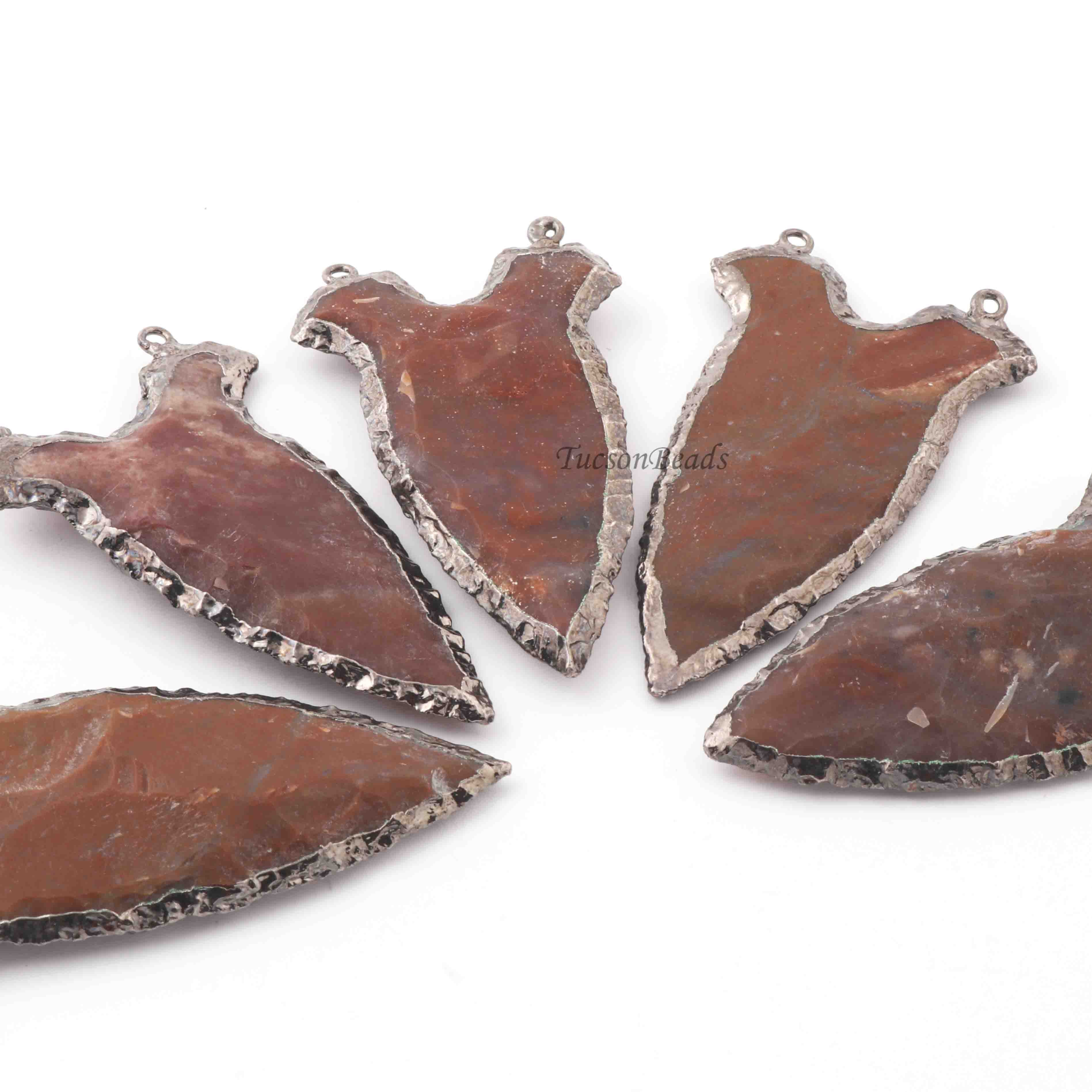 5 PCS Jasper Arrowhead 925 Sterling Plated Charm Double Bail Pendant-Electroplated With Gold Edge - 66mmX28mm AR310