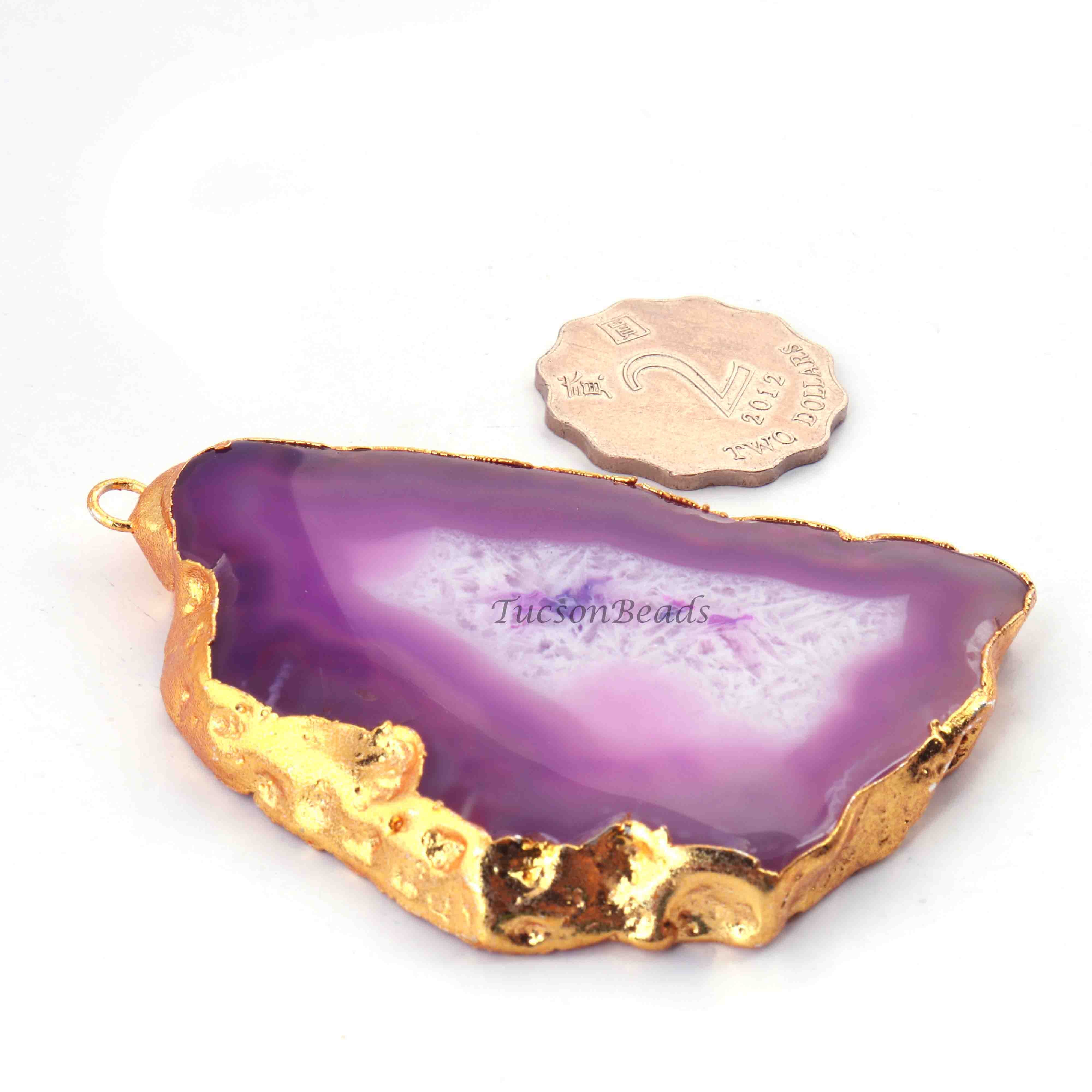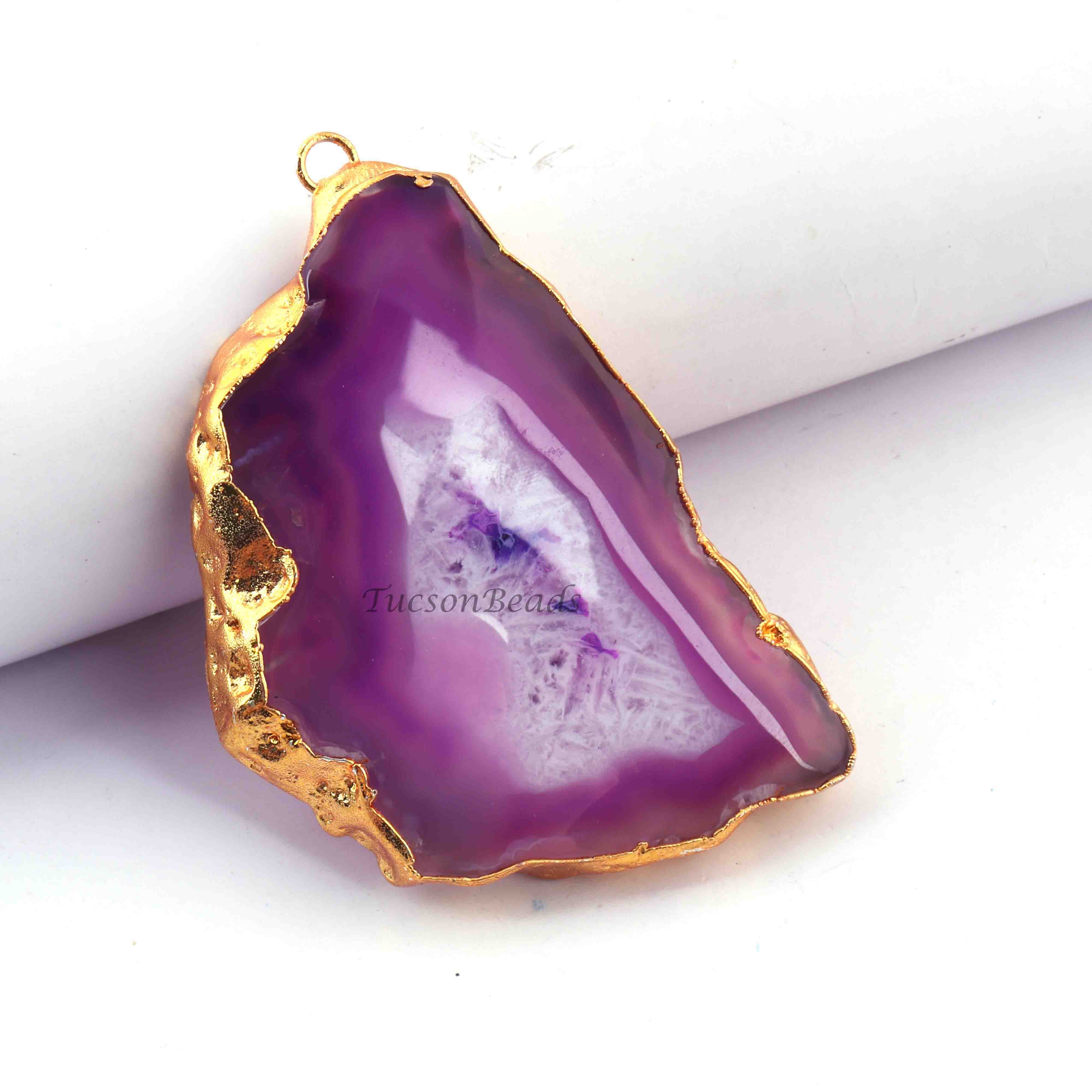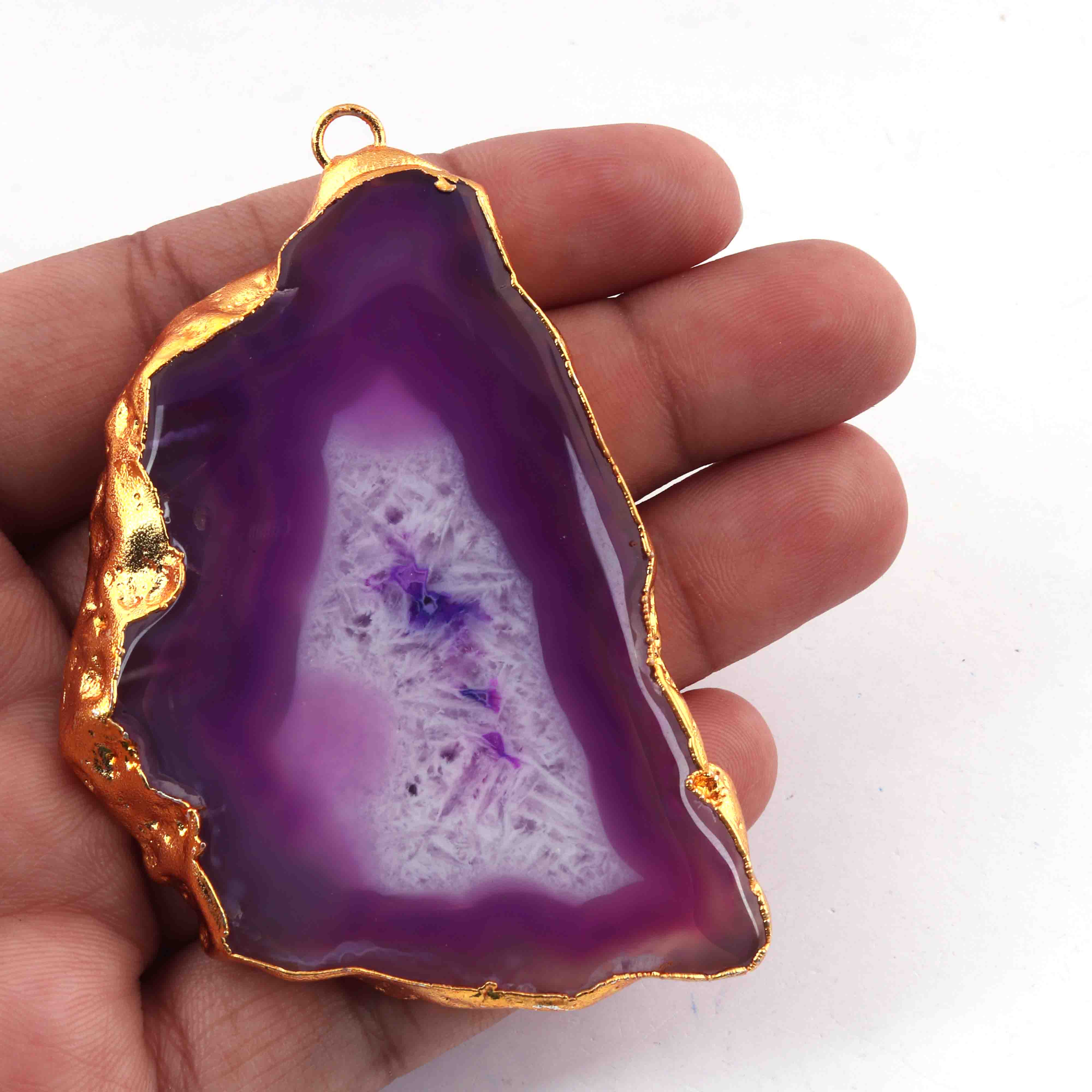 1 Pcs Purple Druzzy Geode Raw Drusy Agate Slice Pendant - Electroplated Gold Druzy Pendant 75mmx45mm DRZ241