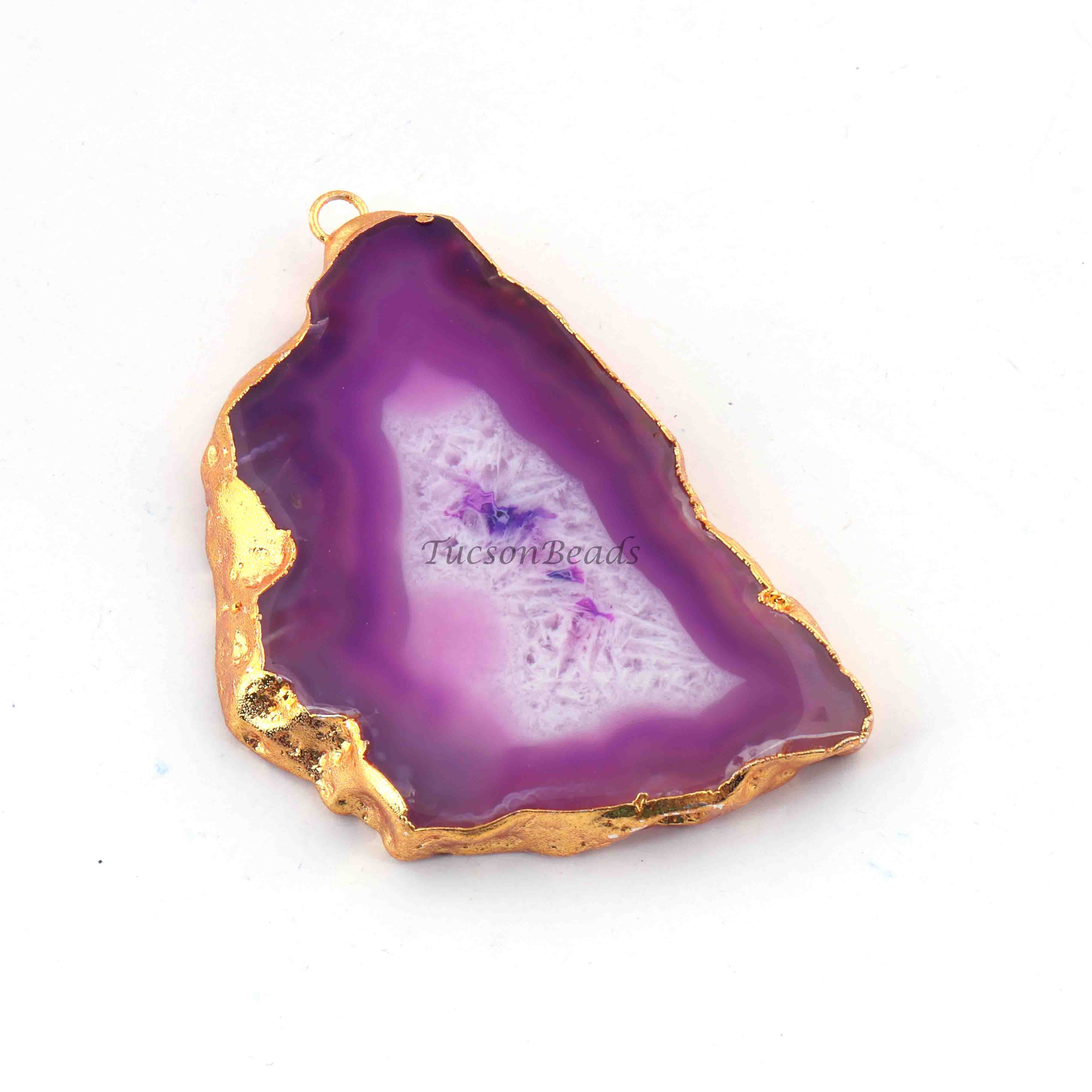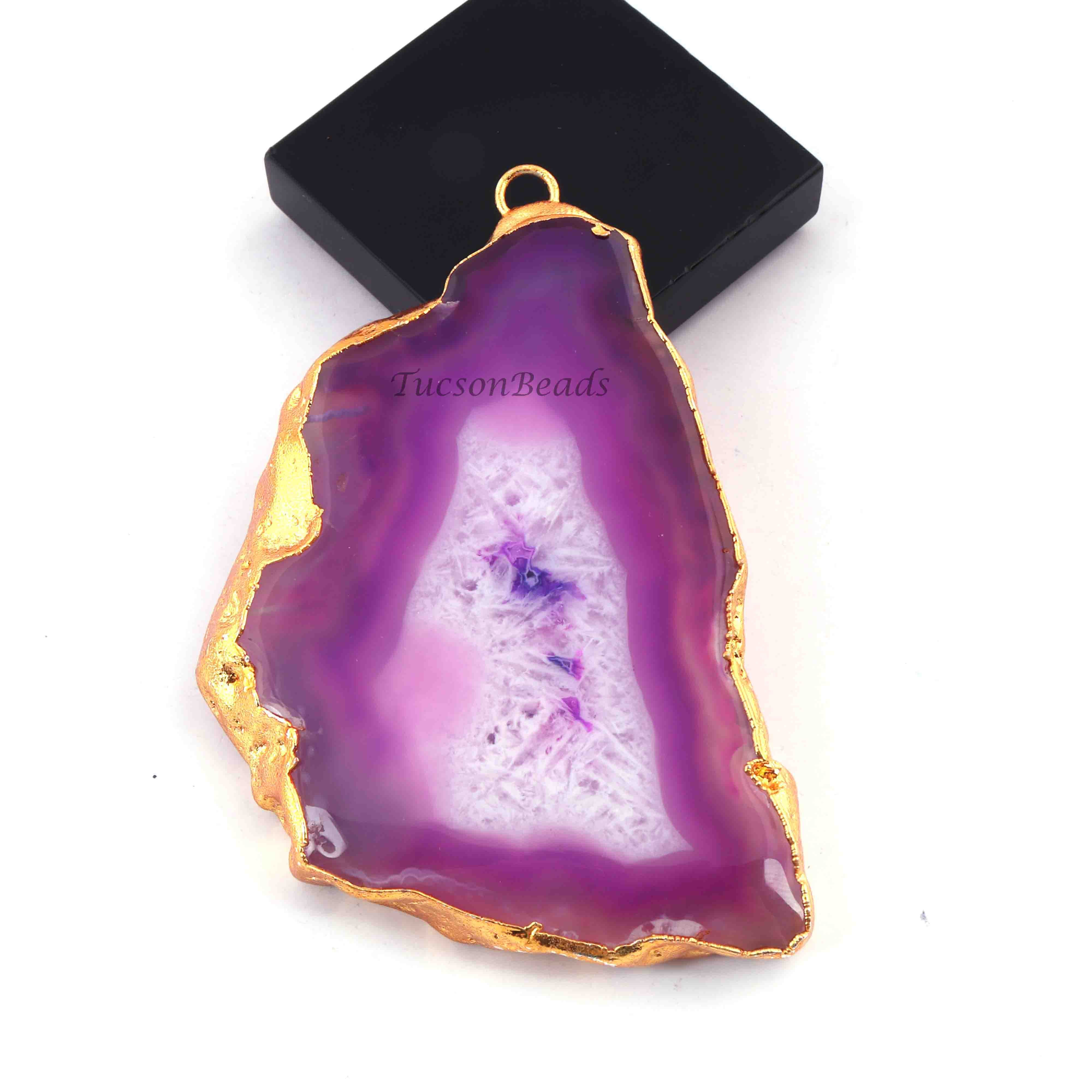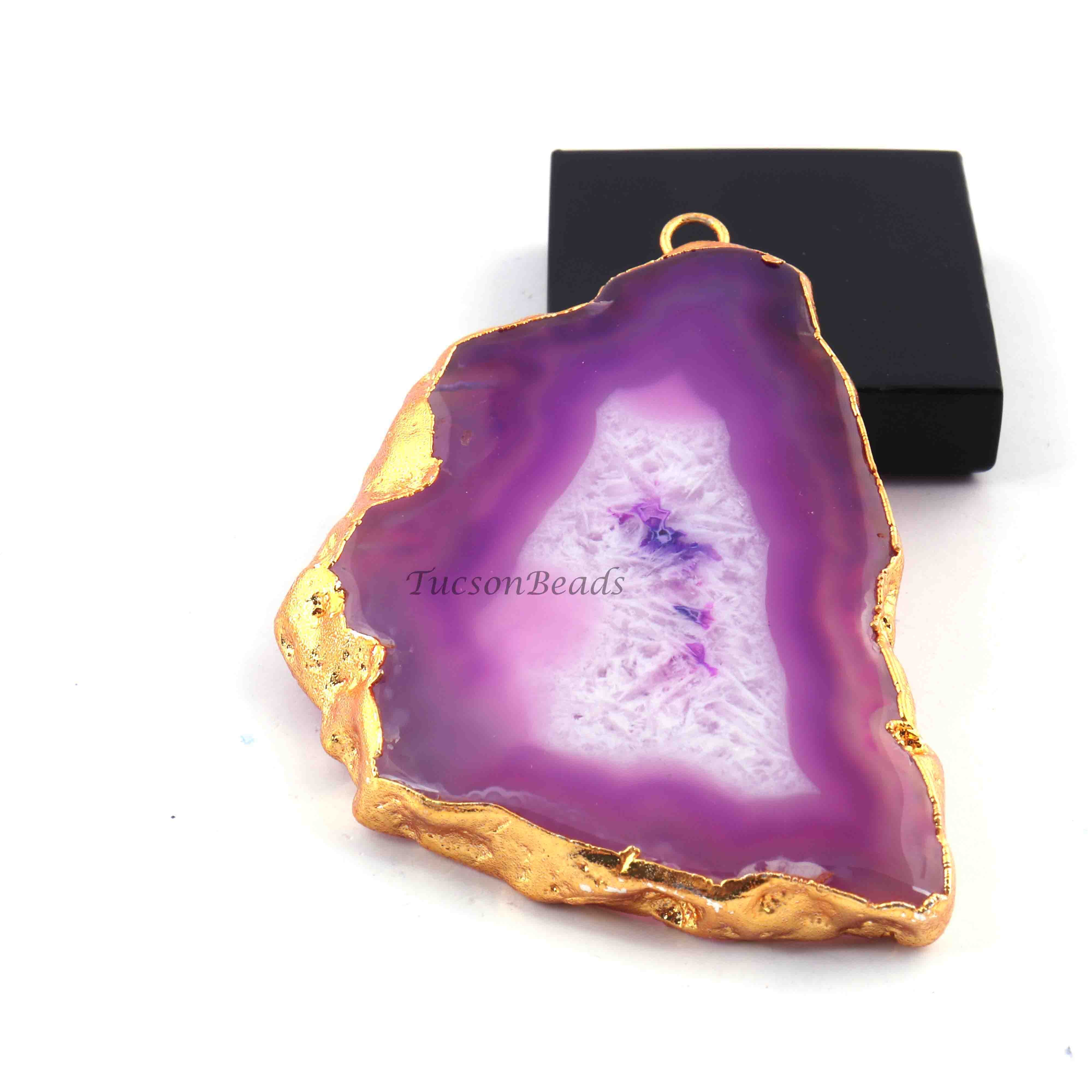 1 Pcs Purple Druzzy Geode Raw Drusy Agate Slice Pendant - Electroplated Gold Druzy Pendant 75mmx45mm DRZ241
