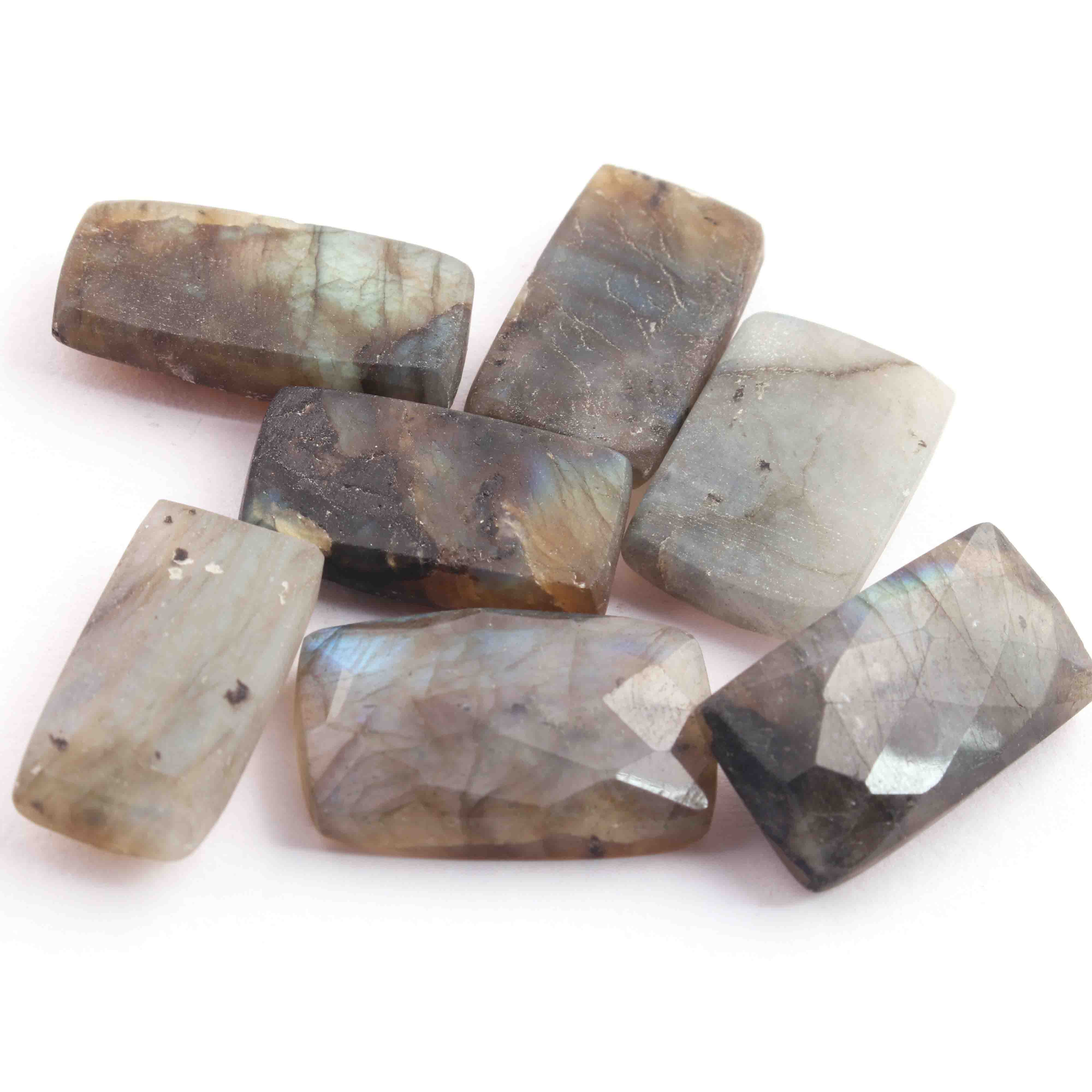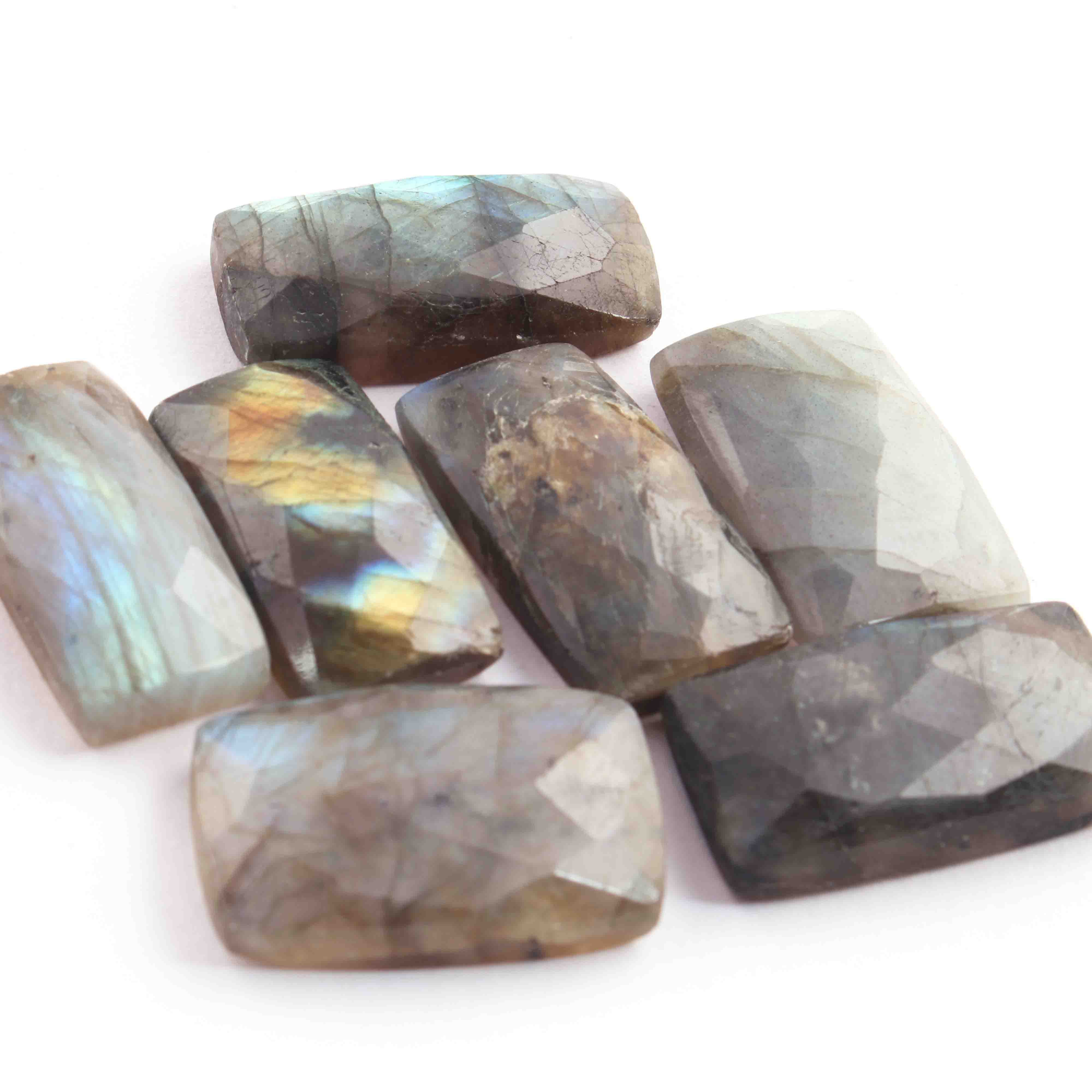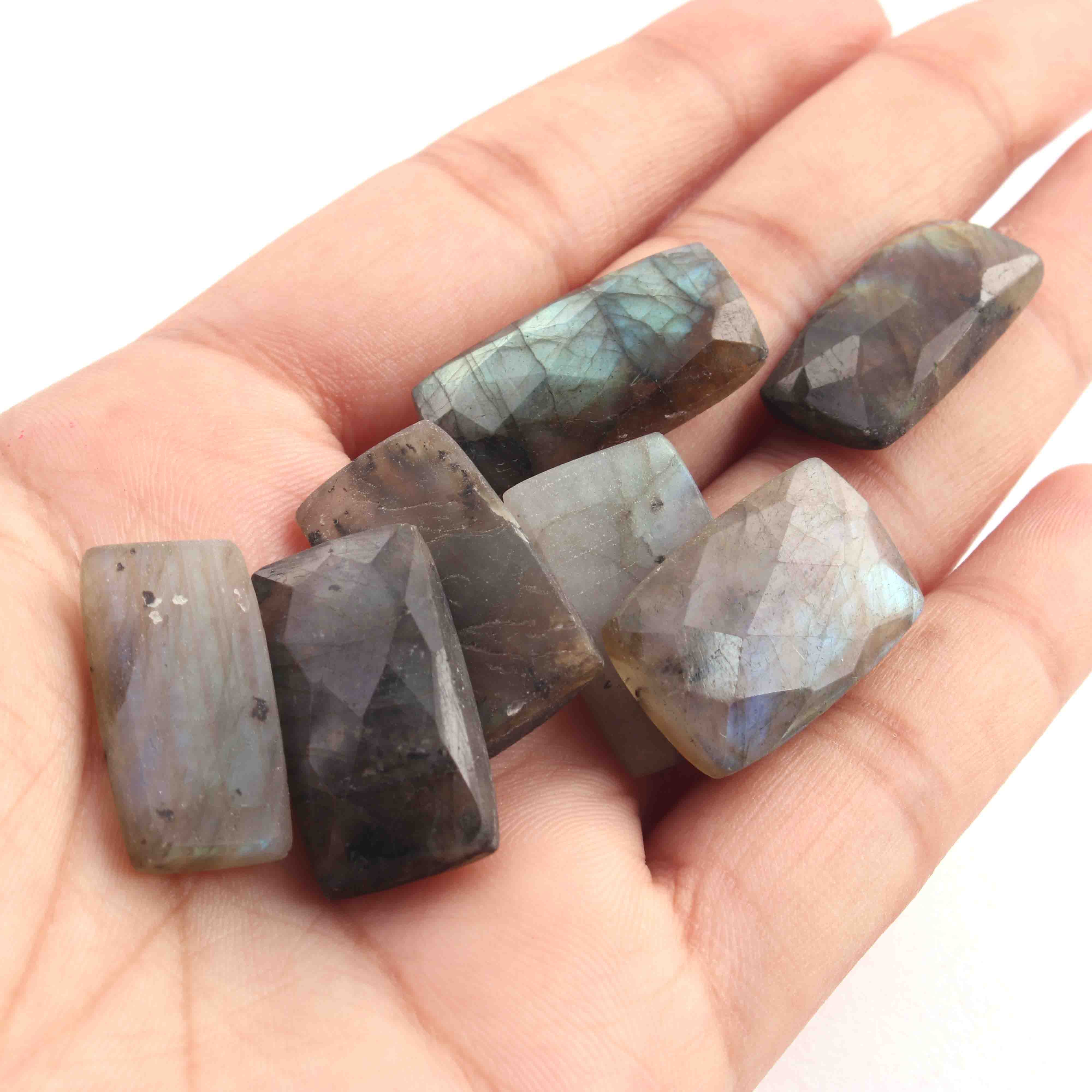 7 Pcs Amazing Labradorite Faceted Cabochon Spectrolite - Rectangle Shape Multi Fire Loose Gemstone -22mmx12mm-23mmx15mm- LGS036