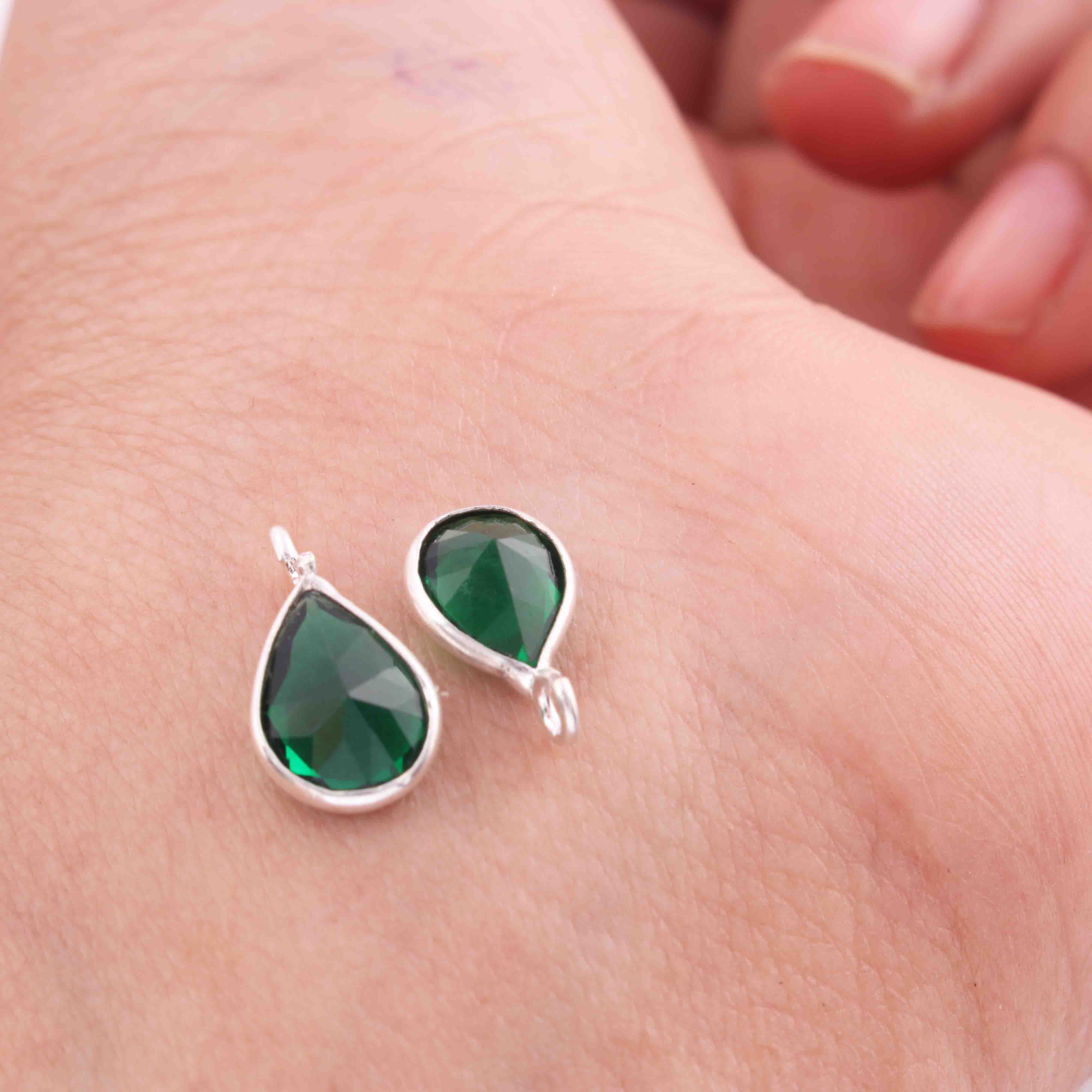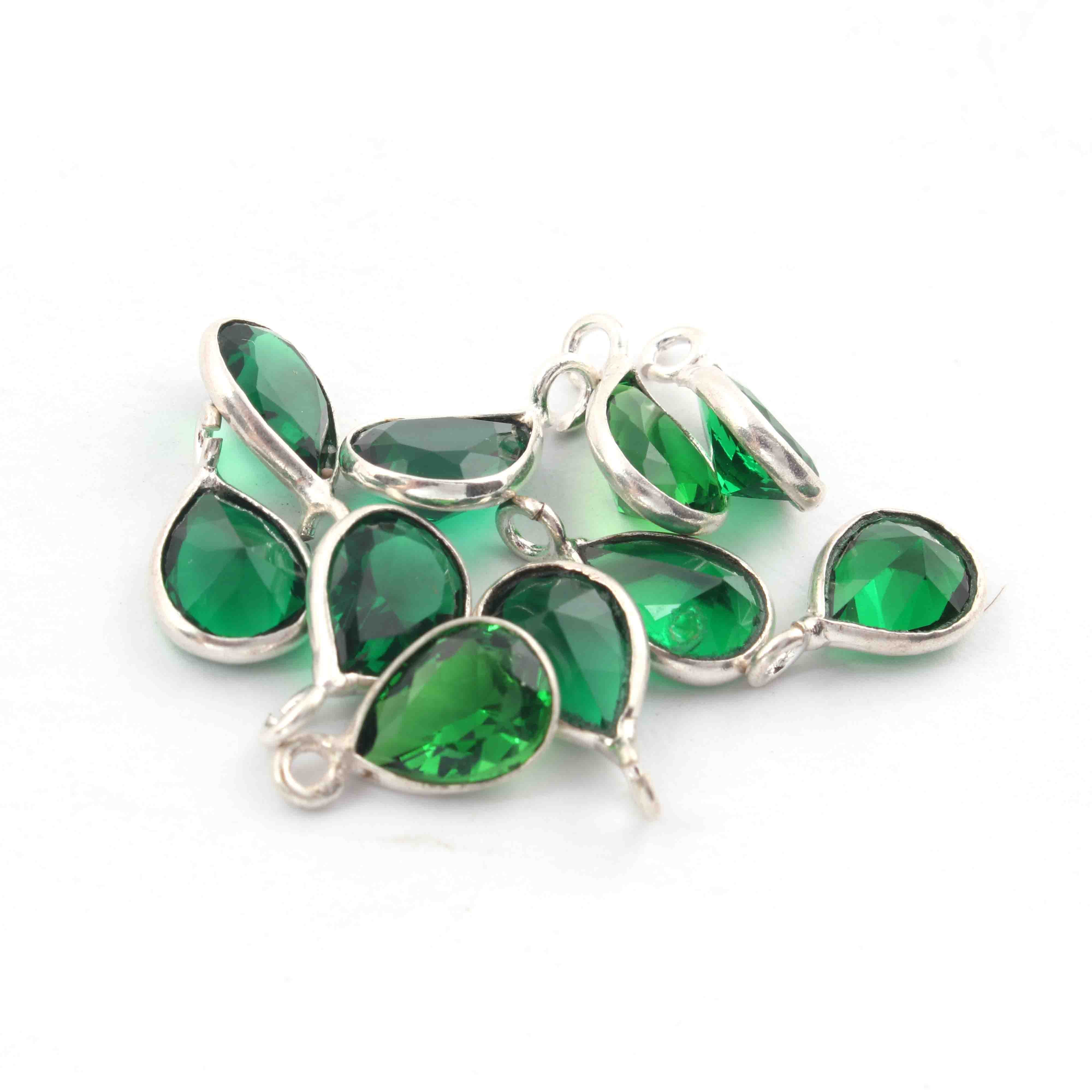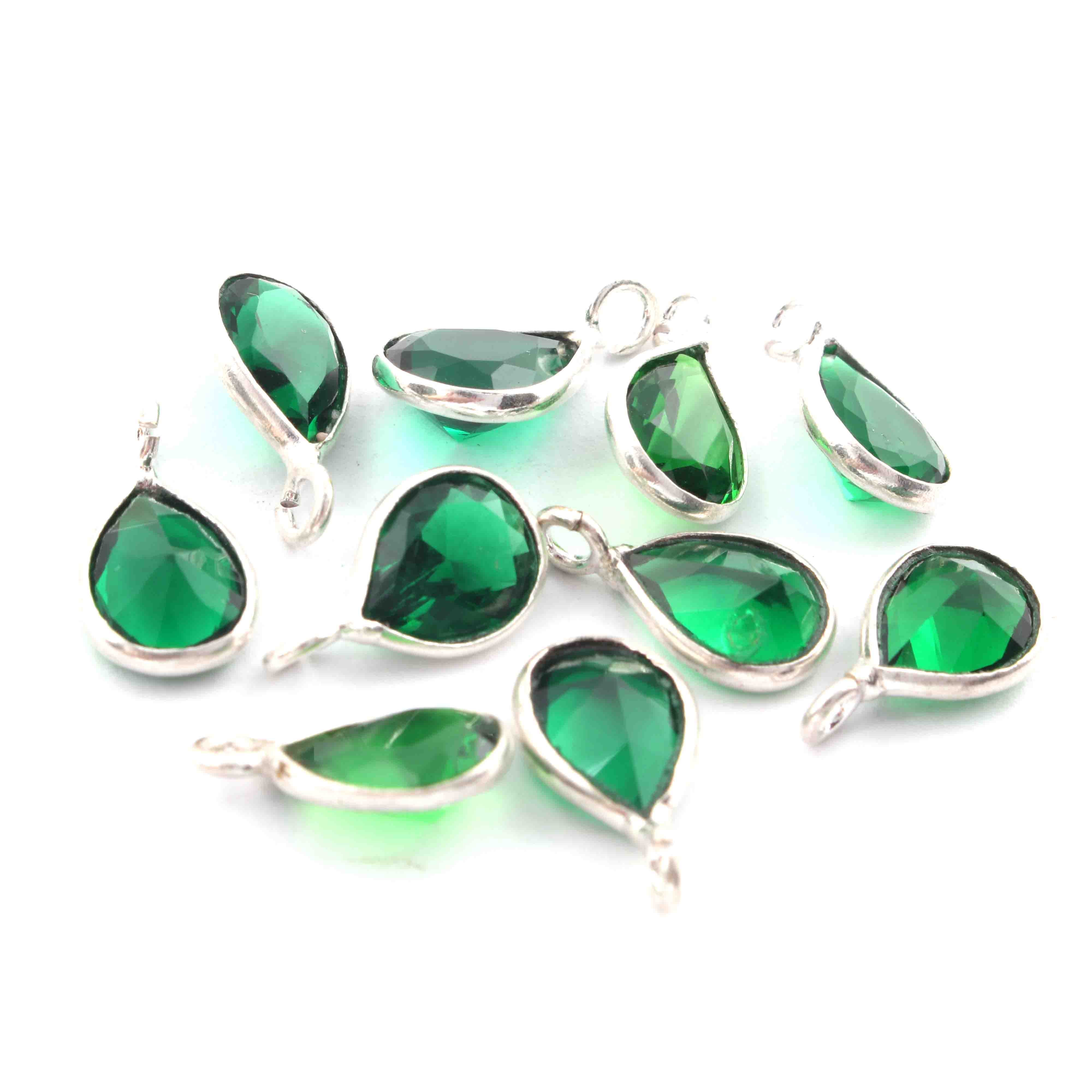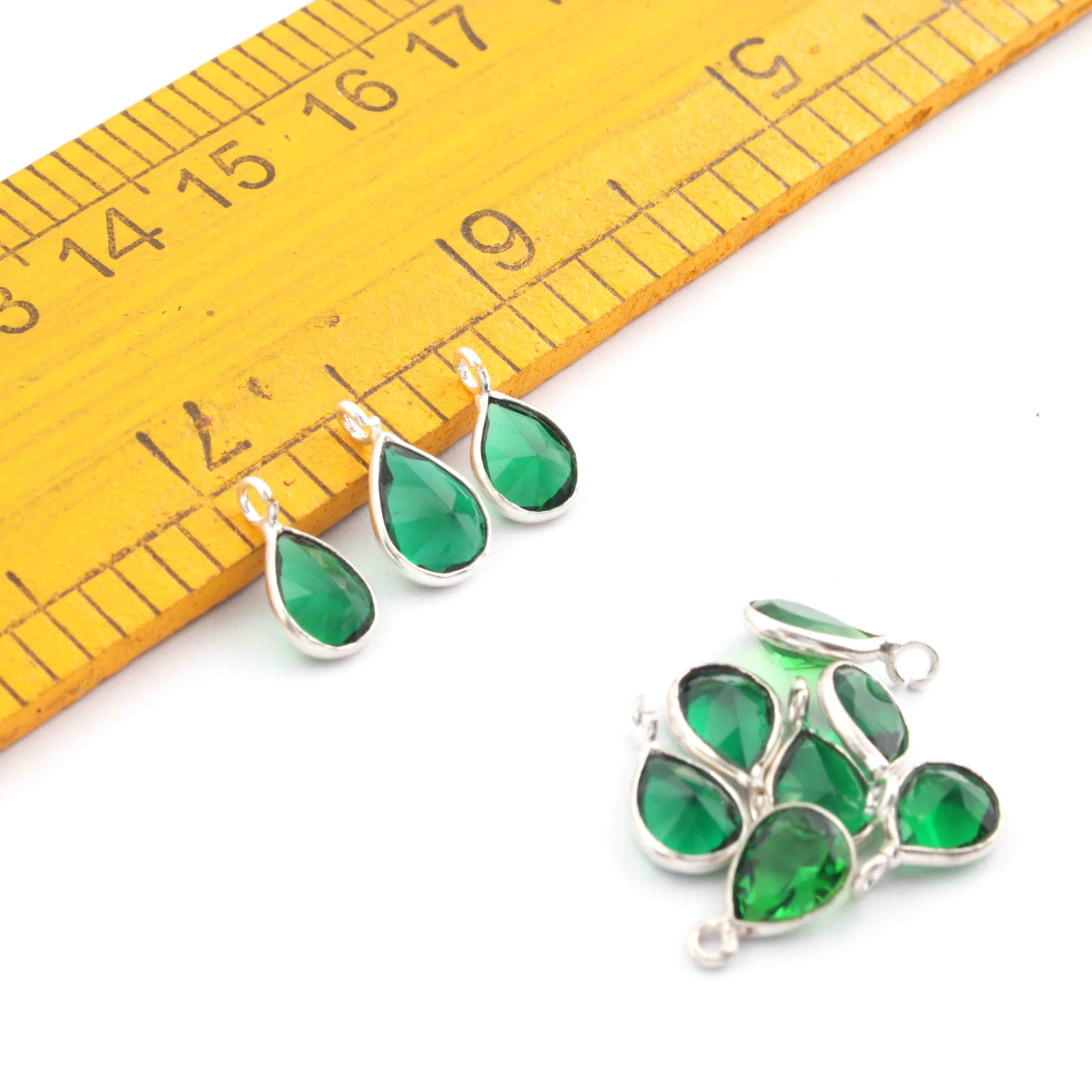 10 Pcs Green Glass Hydro 925 Silver Plated Faceted - Pear Shape Faceted Pendant -11mmx6mm-PC930