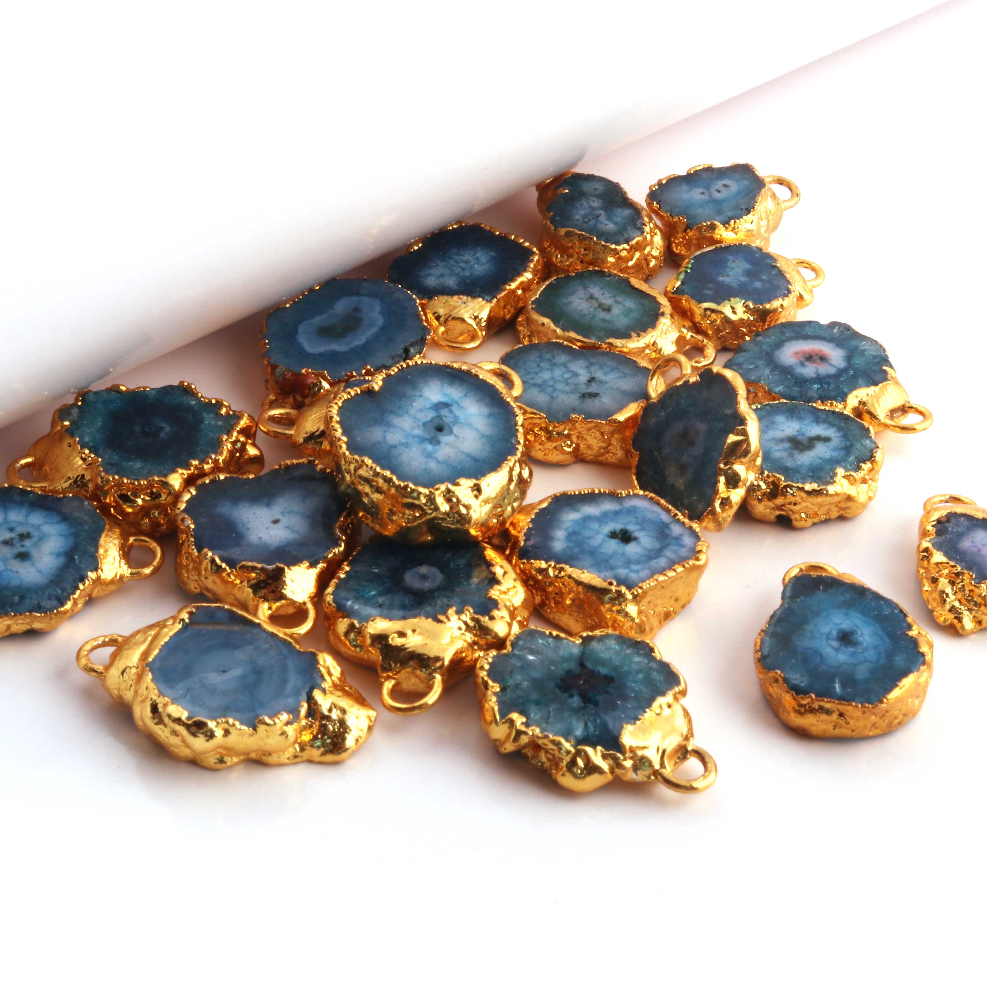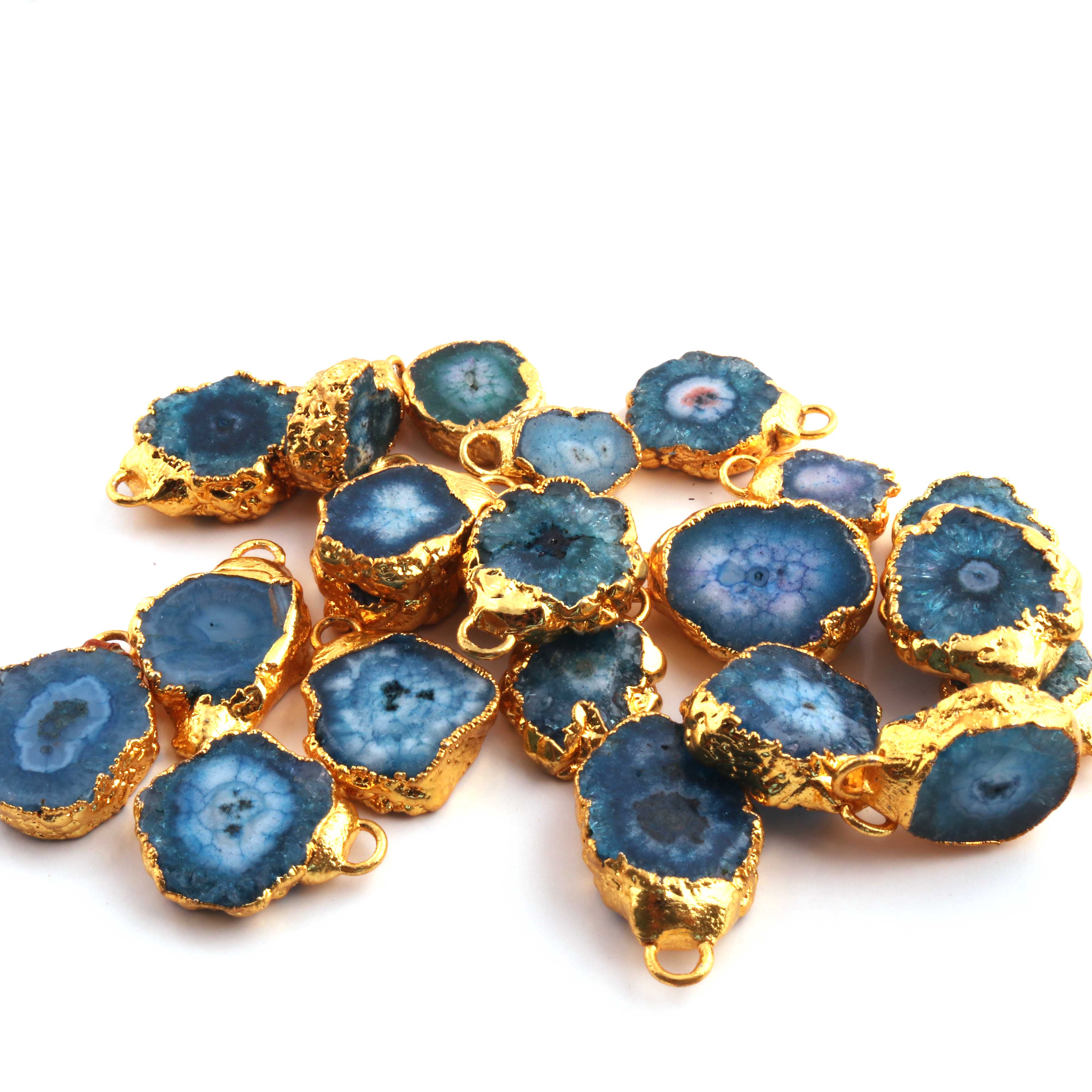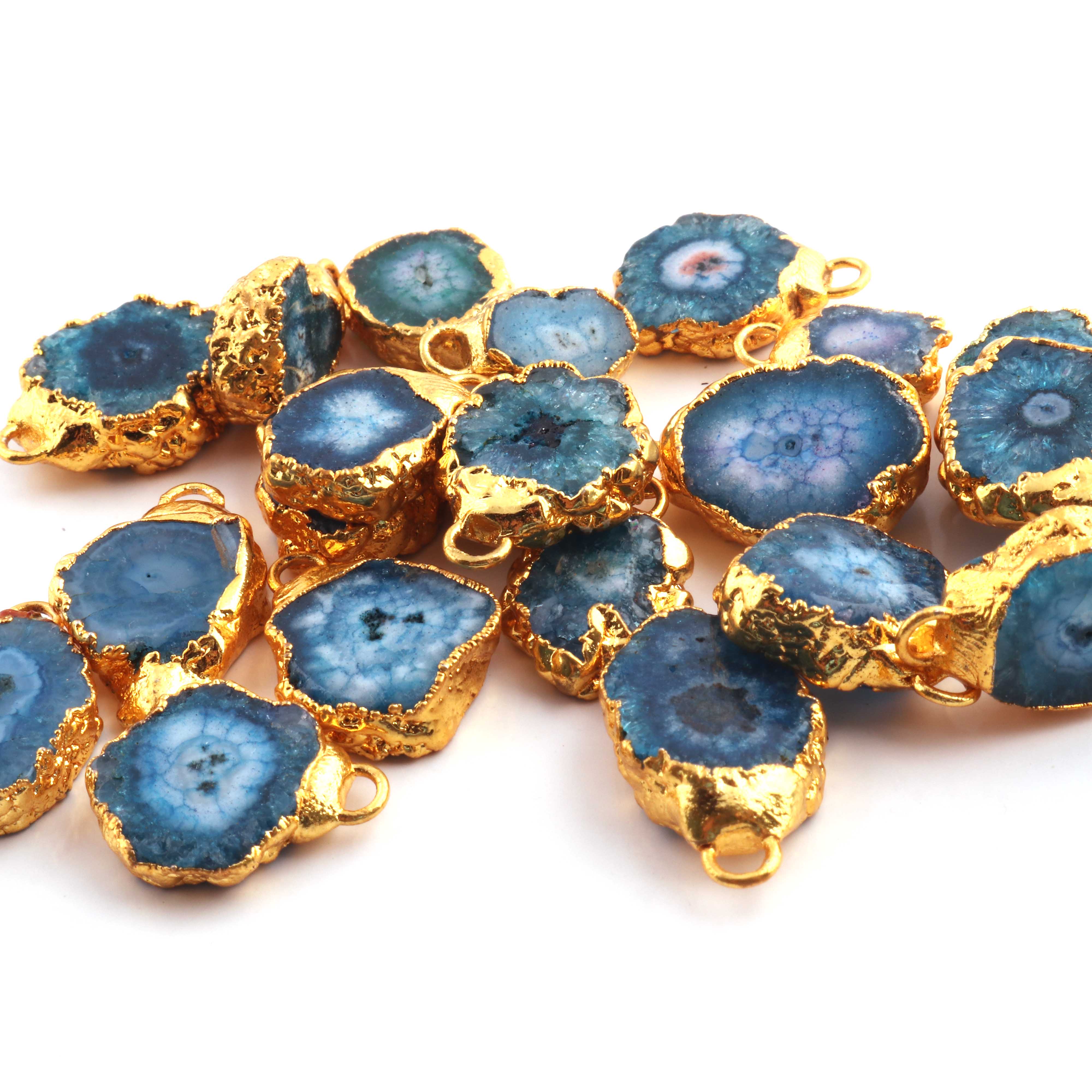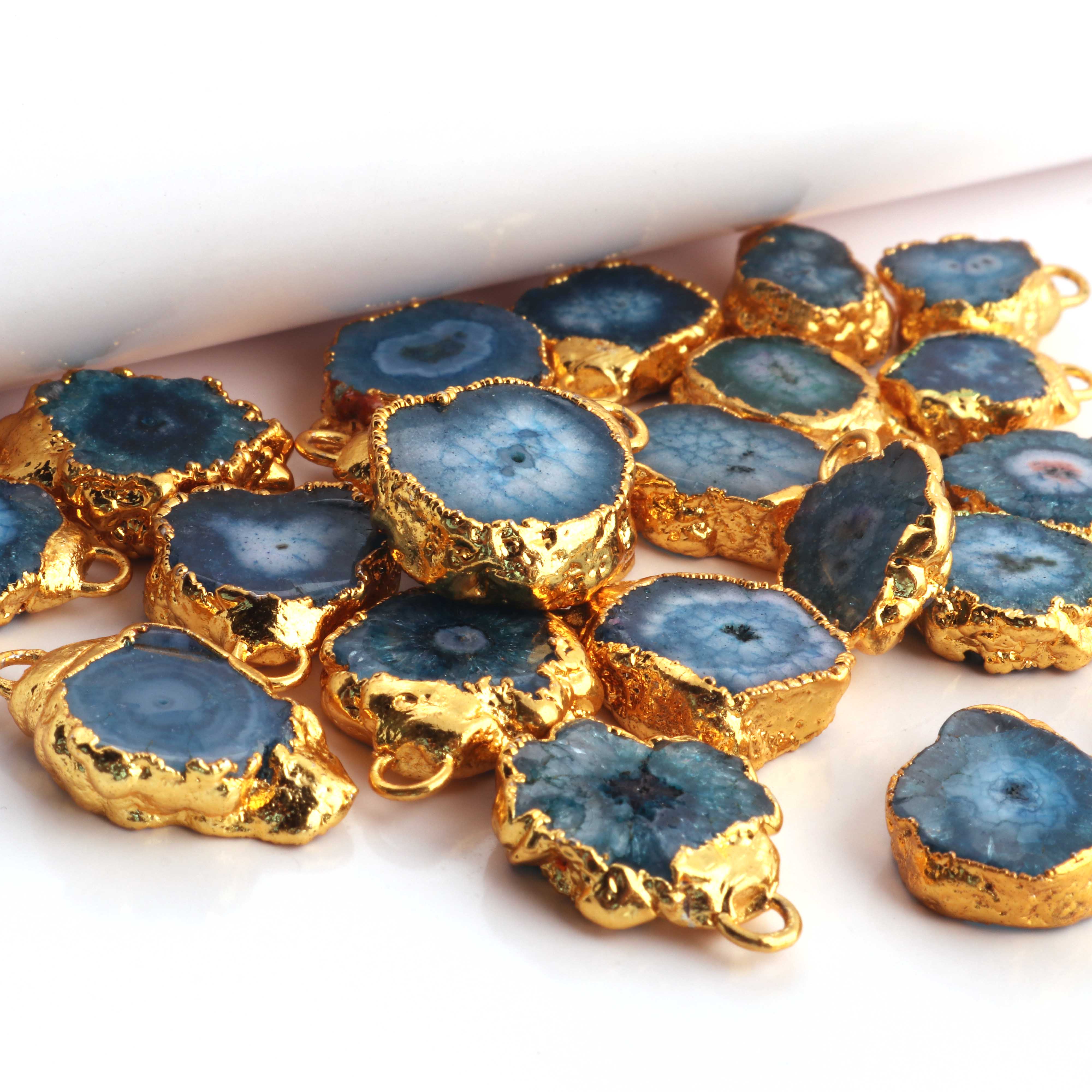 22 Pcs Blue Druzzy Geode Raw Drusy Agate Slice Pendant - Electroplated Gold Druzy Pendant 16mx10mm-24mmx13mm ,DRZ190