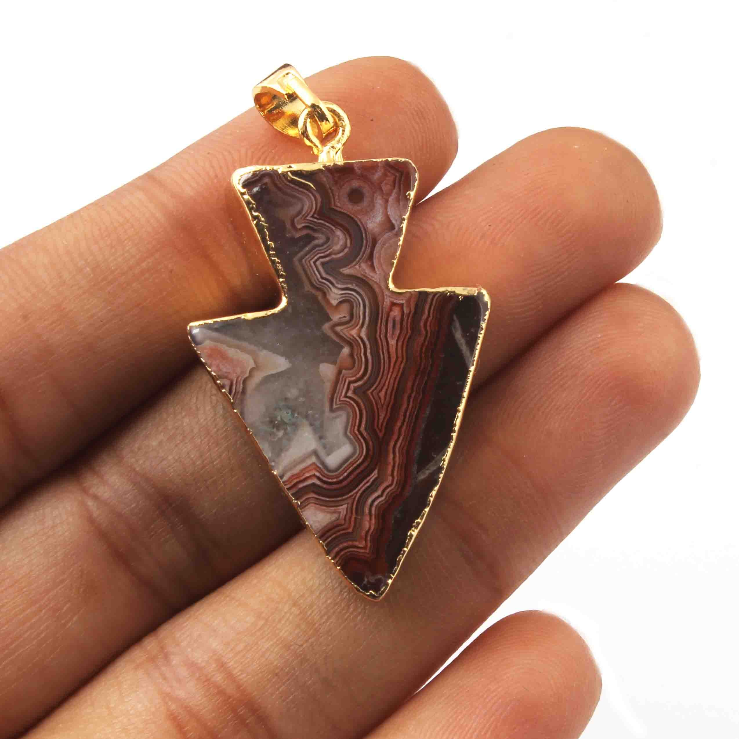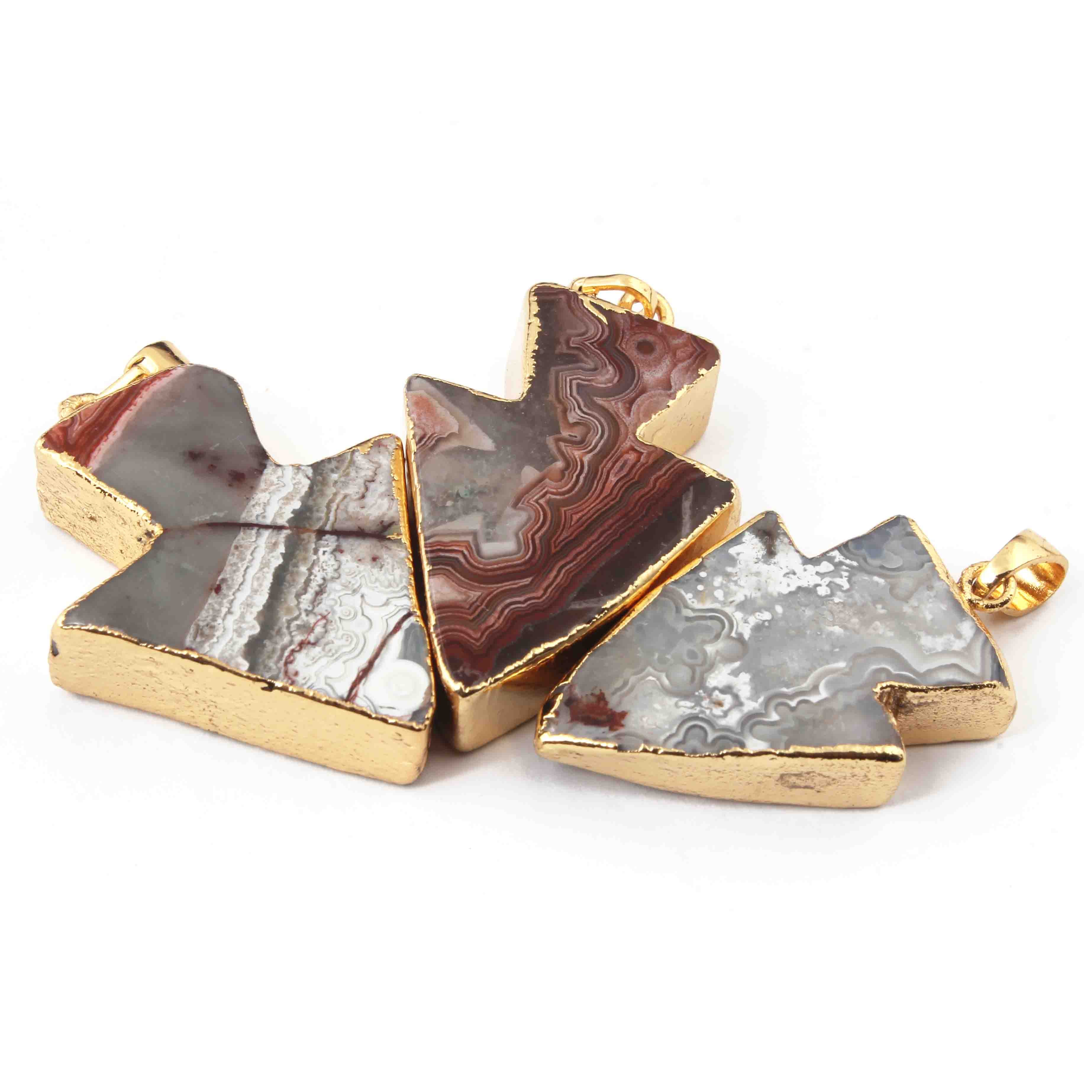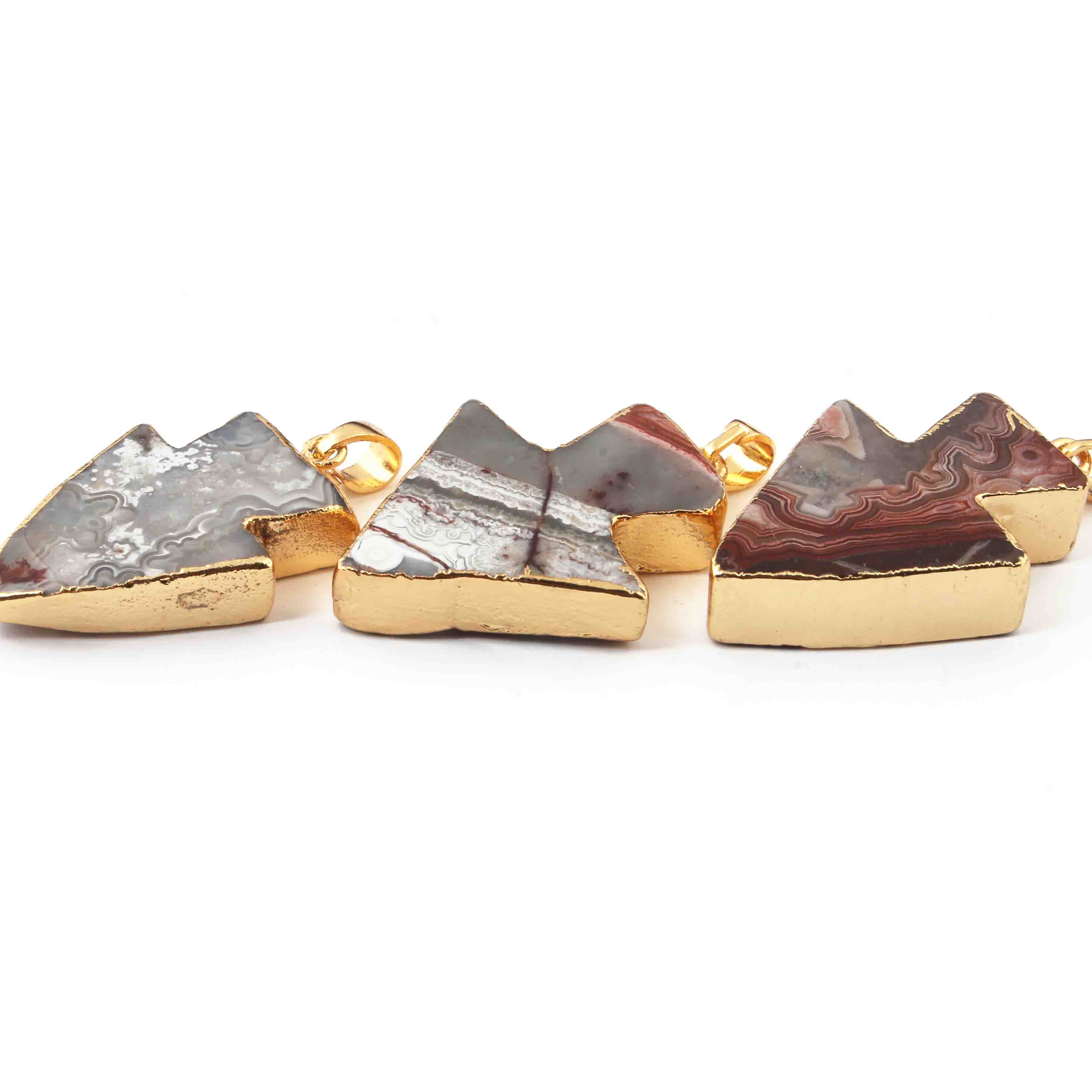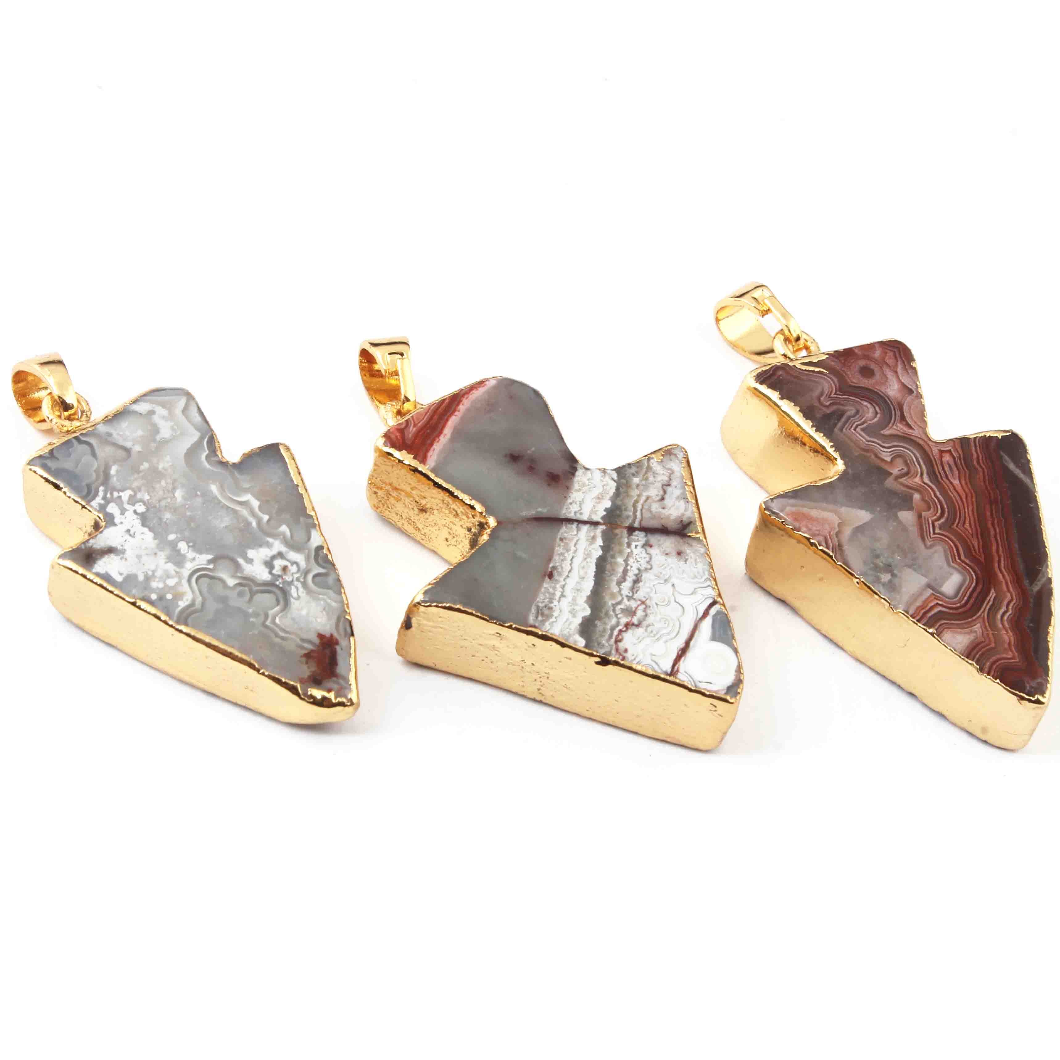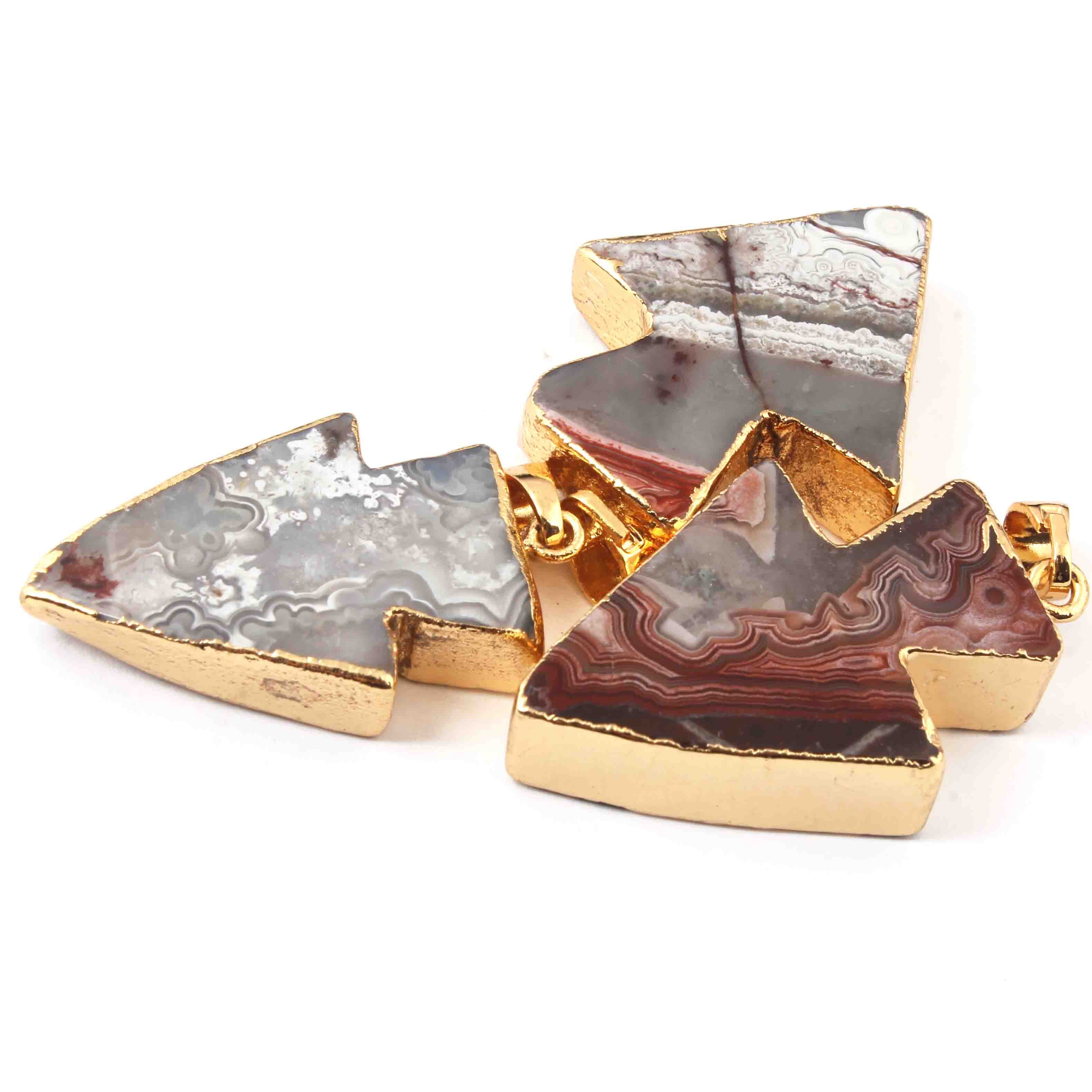 3 Pc Natural Agate Champagne Arrowhead Cactus Druzy Sparkle Geode Pendant - DRZ308