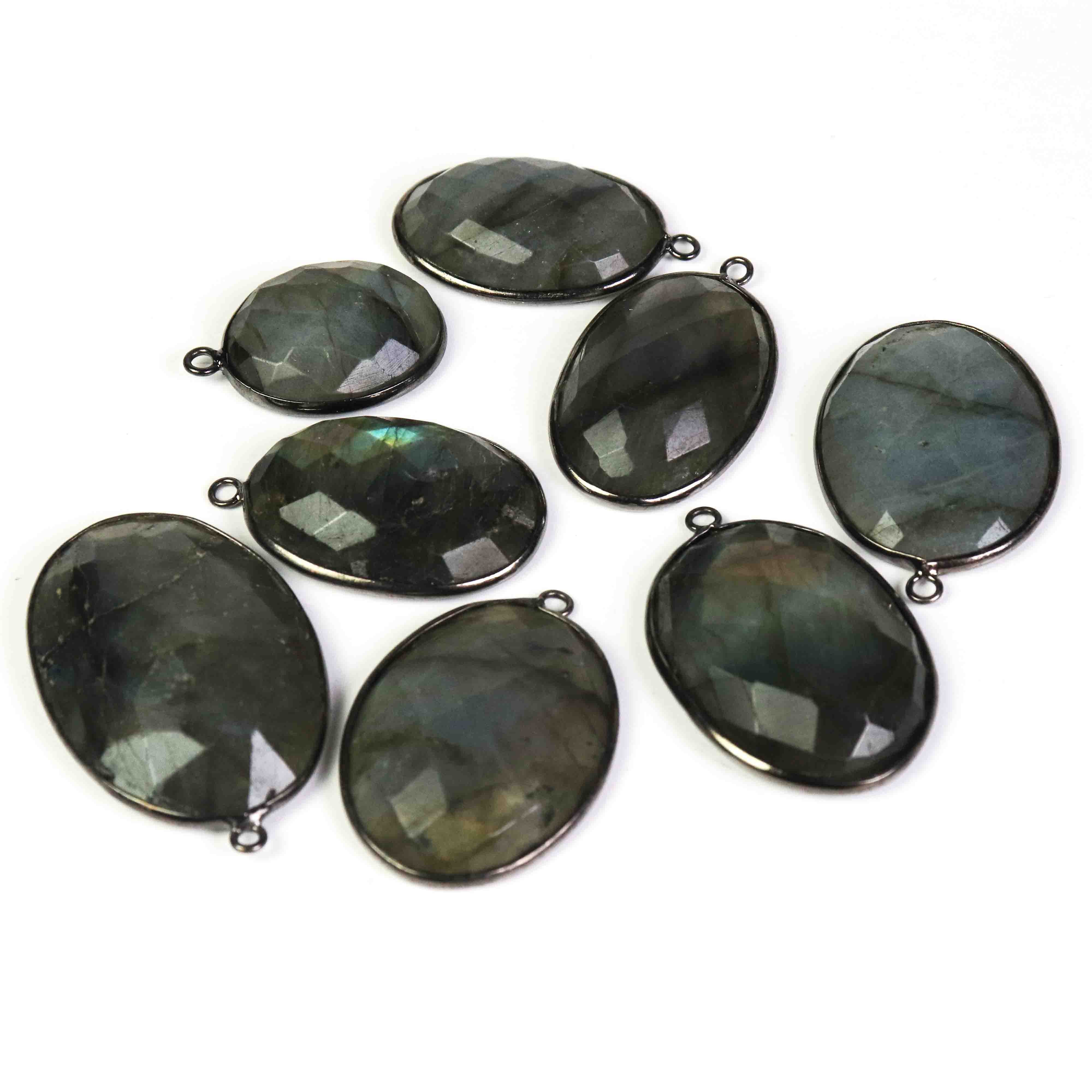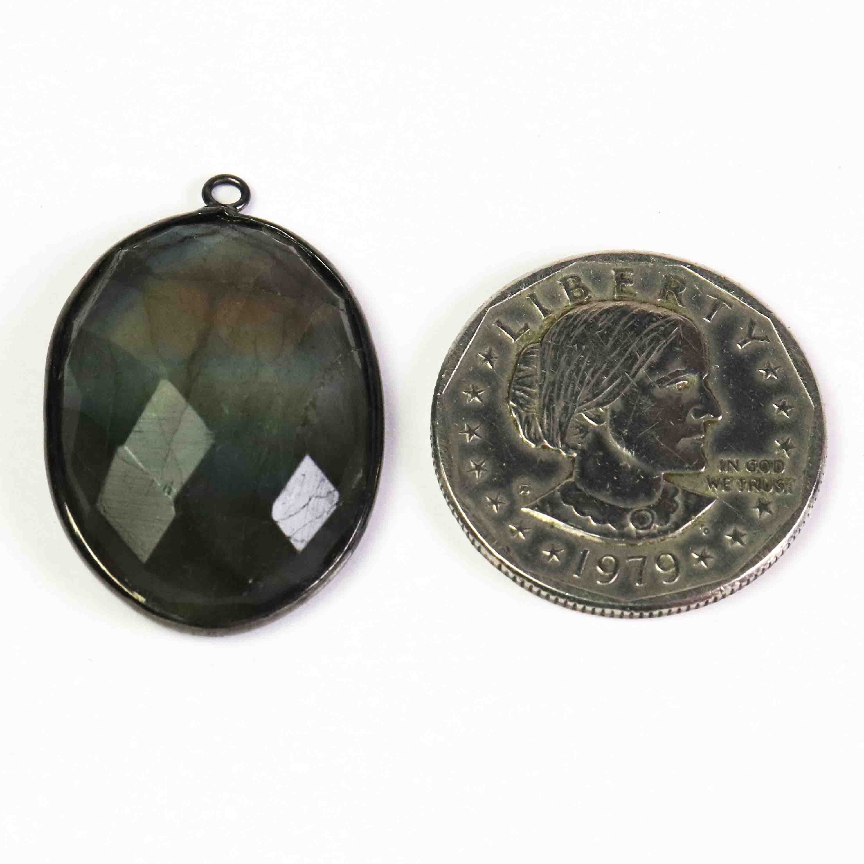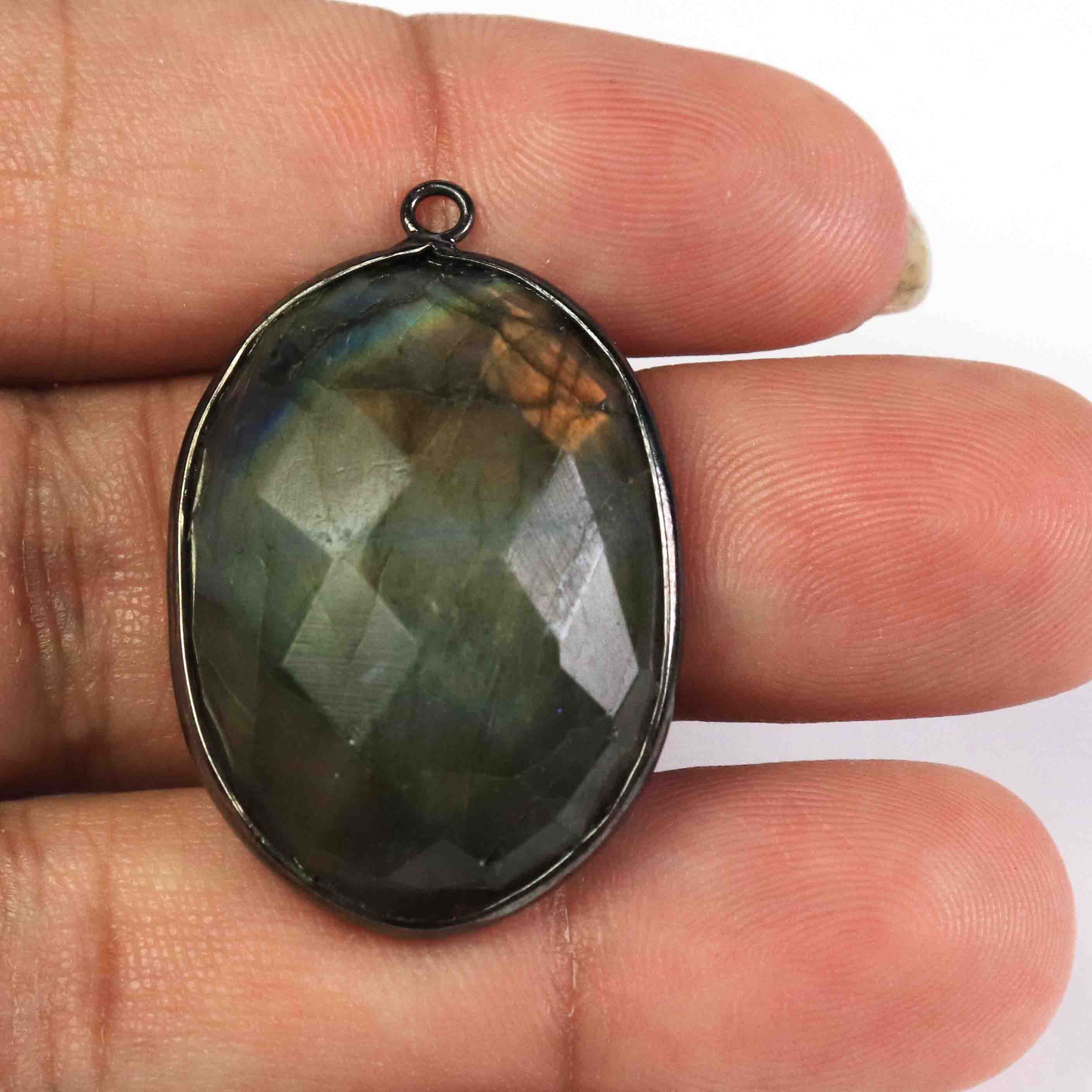 Listing is For- 3 Pcs Beautiful Labradorite Blue Flesh Oxidized Plated Faceted Oval Shape Single Bail Pendant-