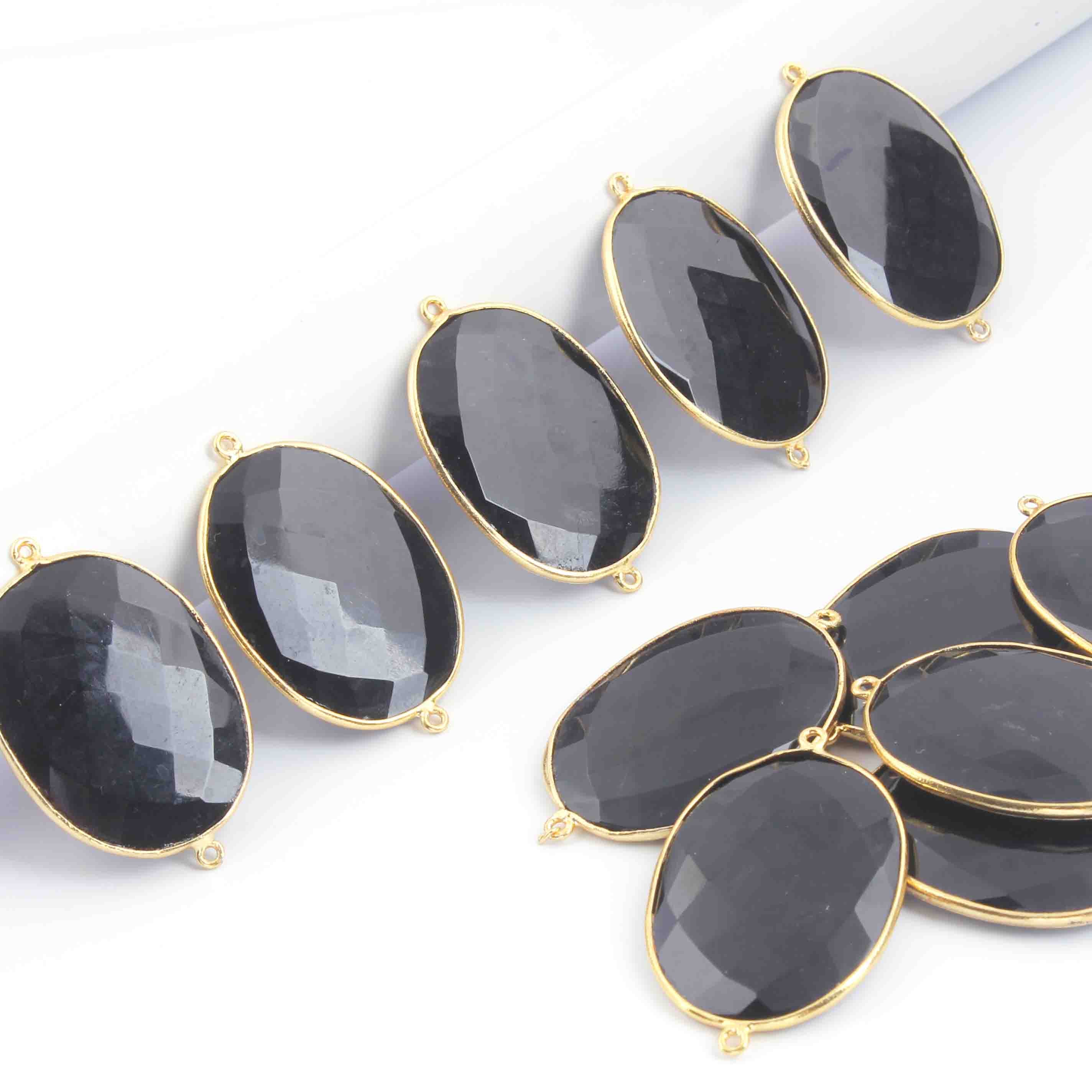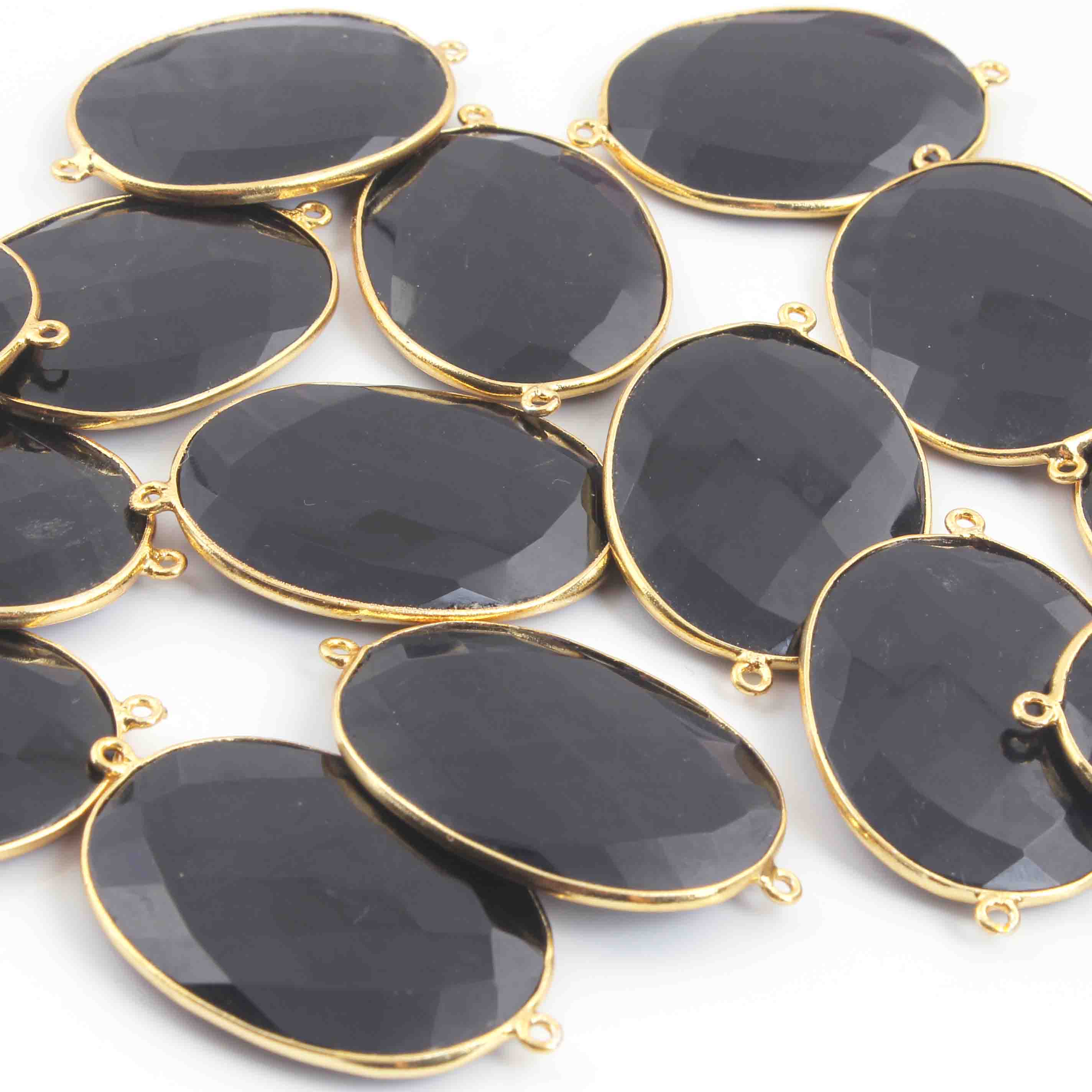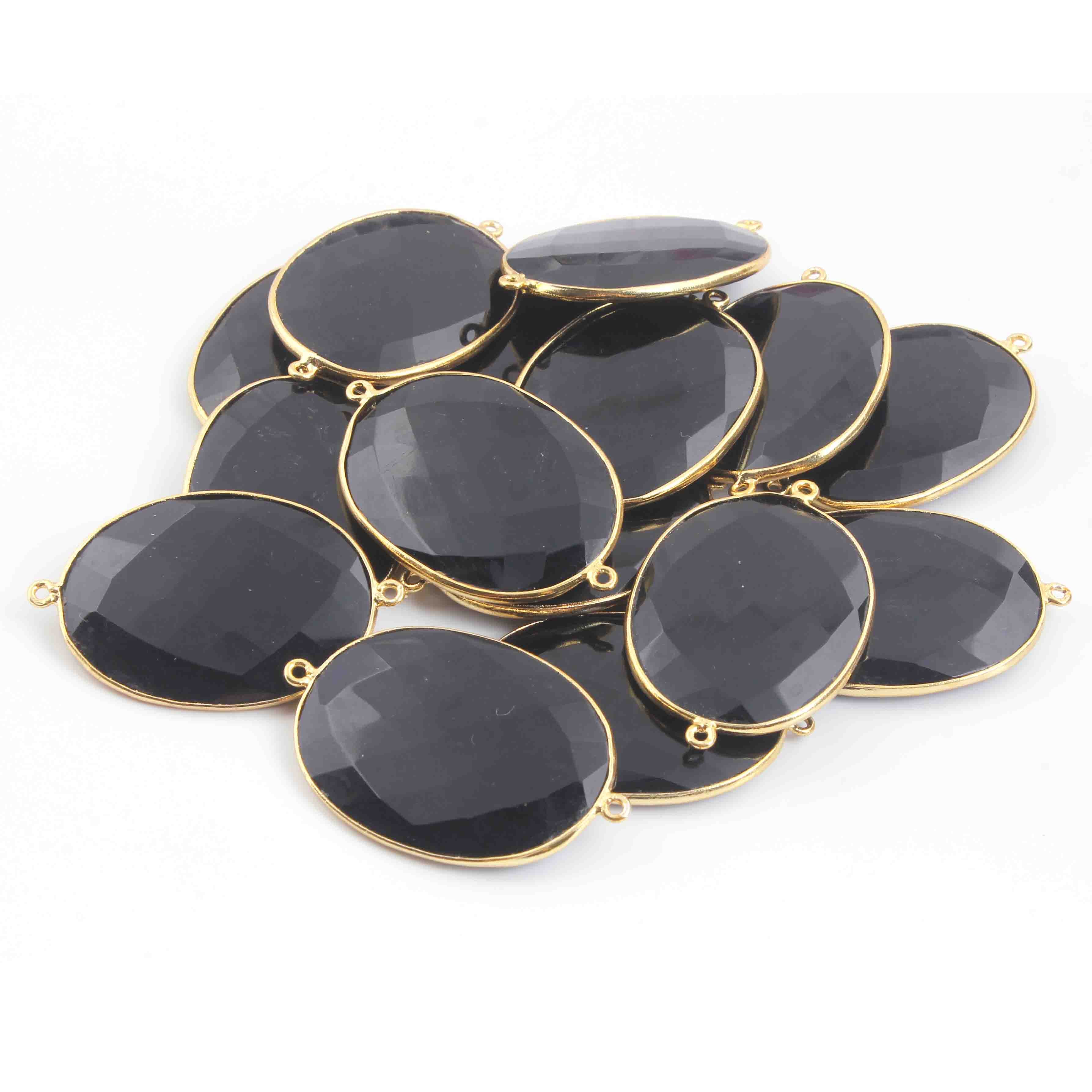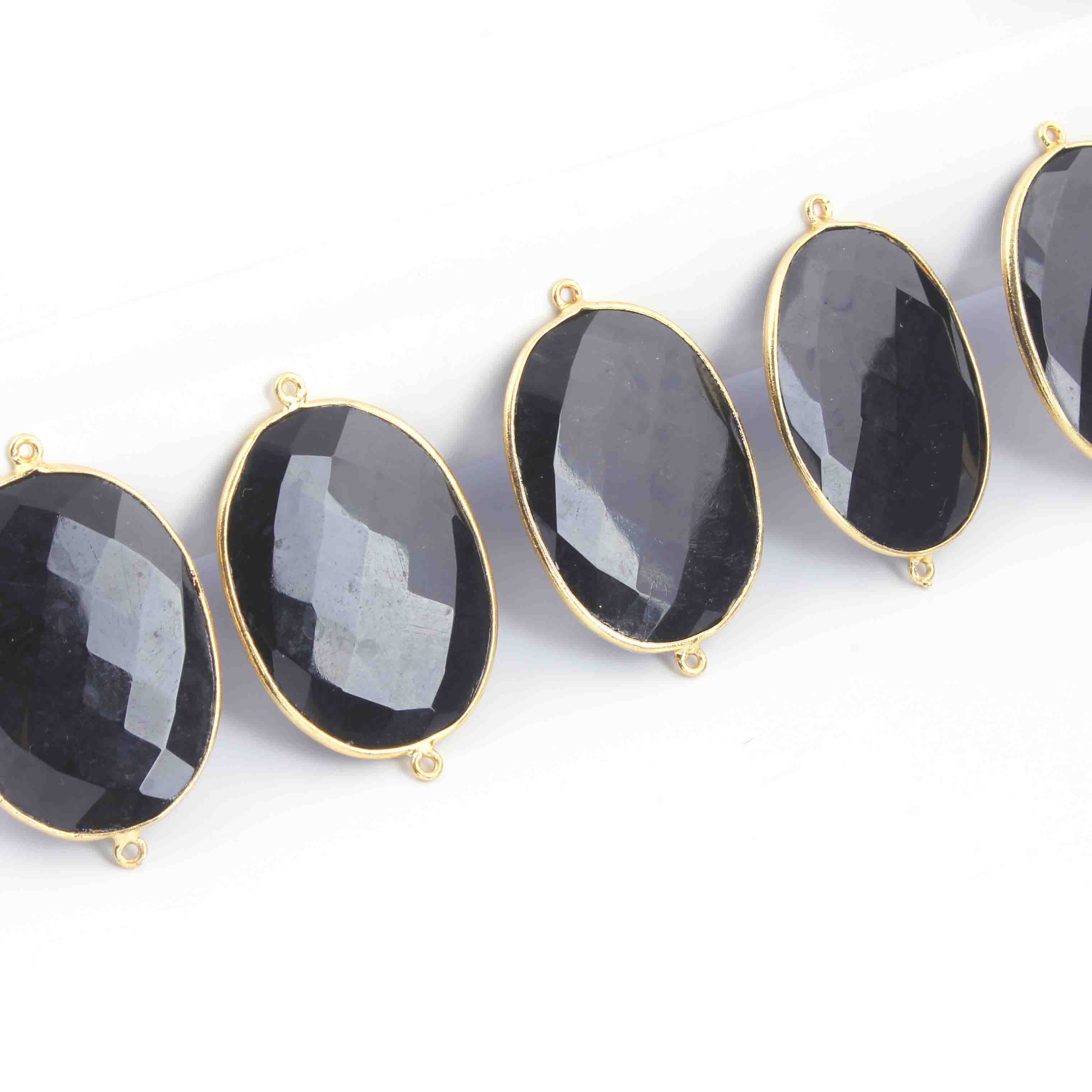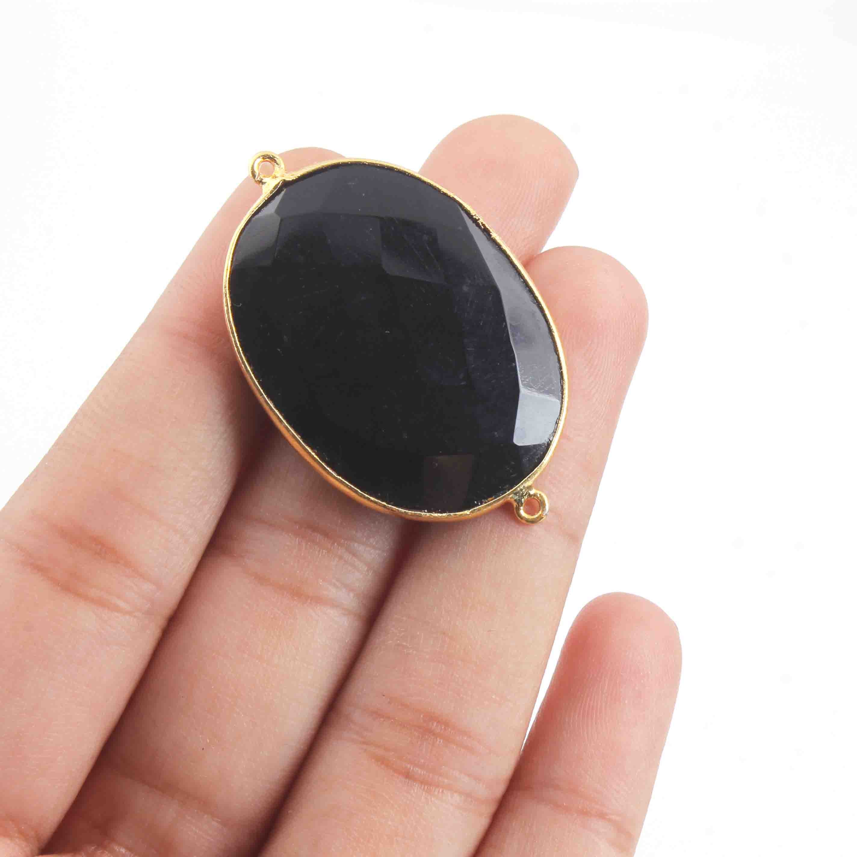 4 Pcs Black Onyx Faceted 24k Gold Plated Oval Shape Double Bail Connector -42mmx27mm-36mmx22mm PC552