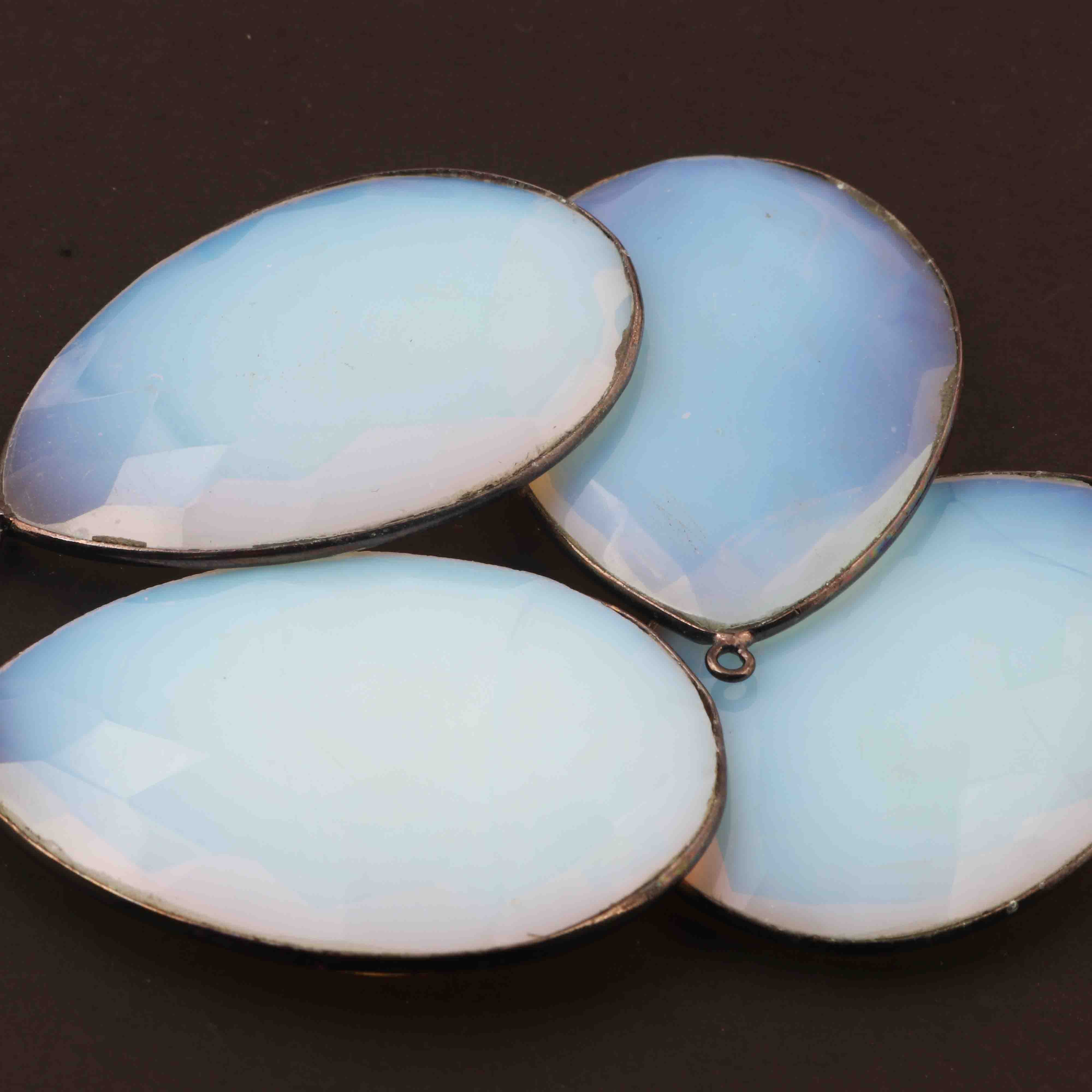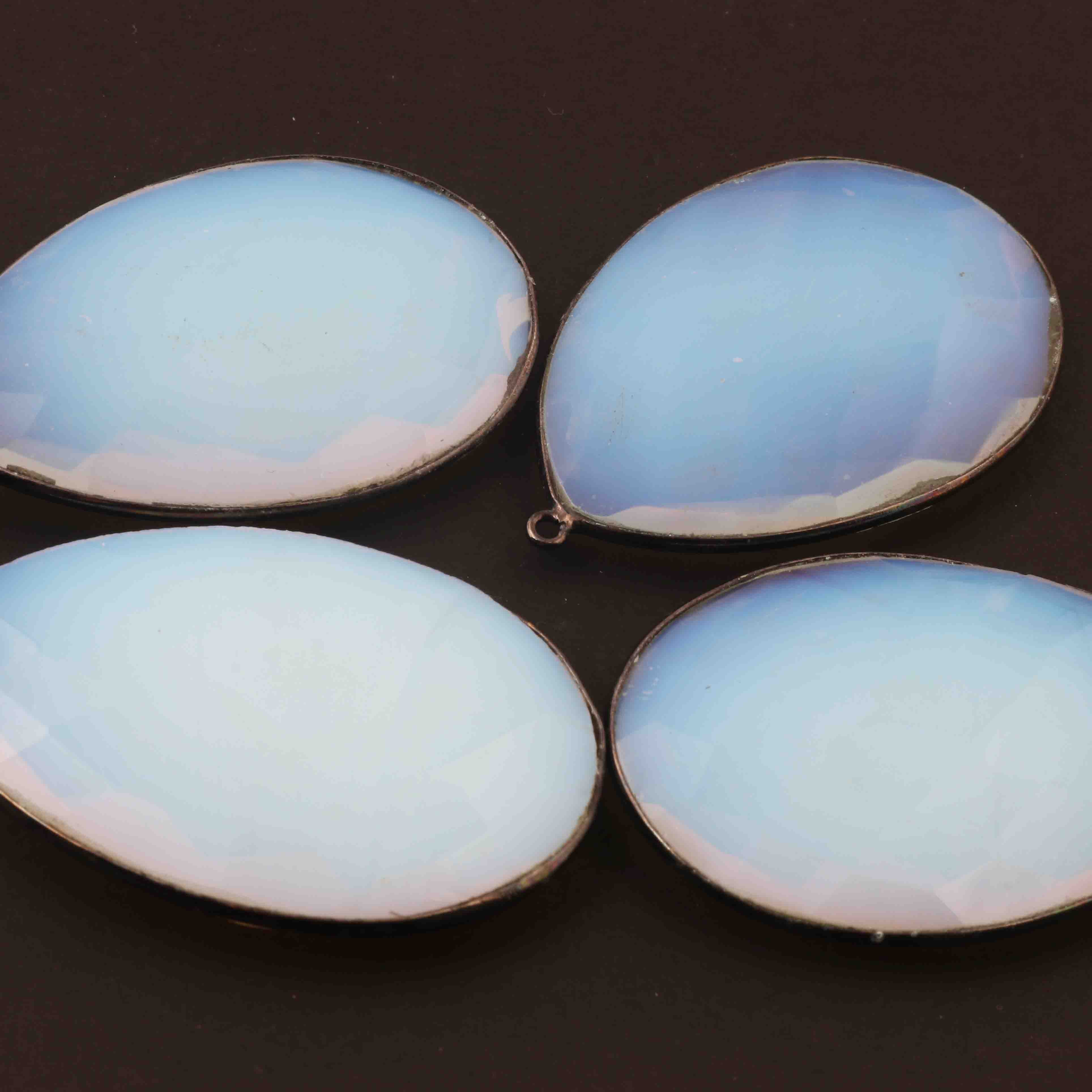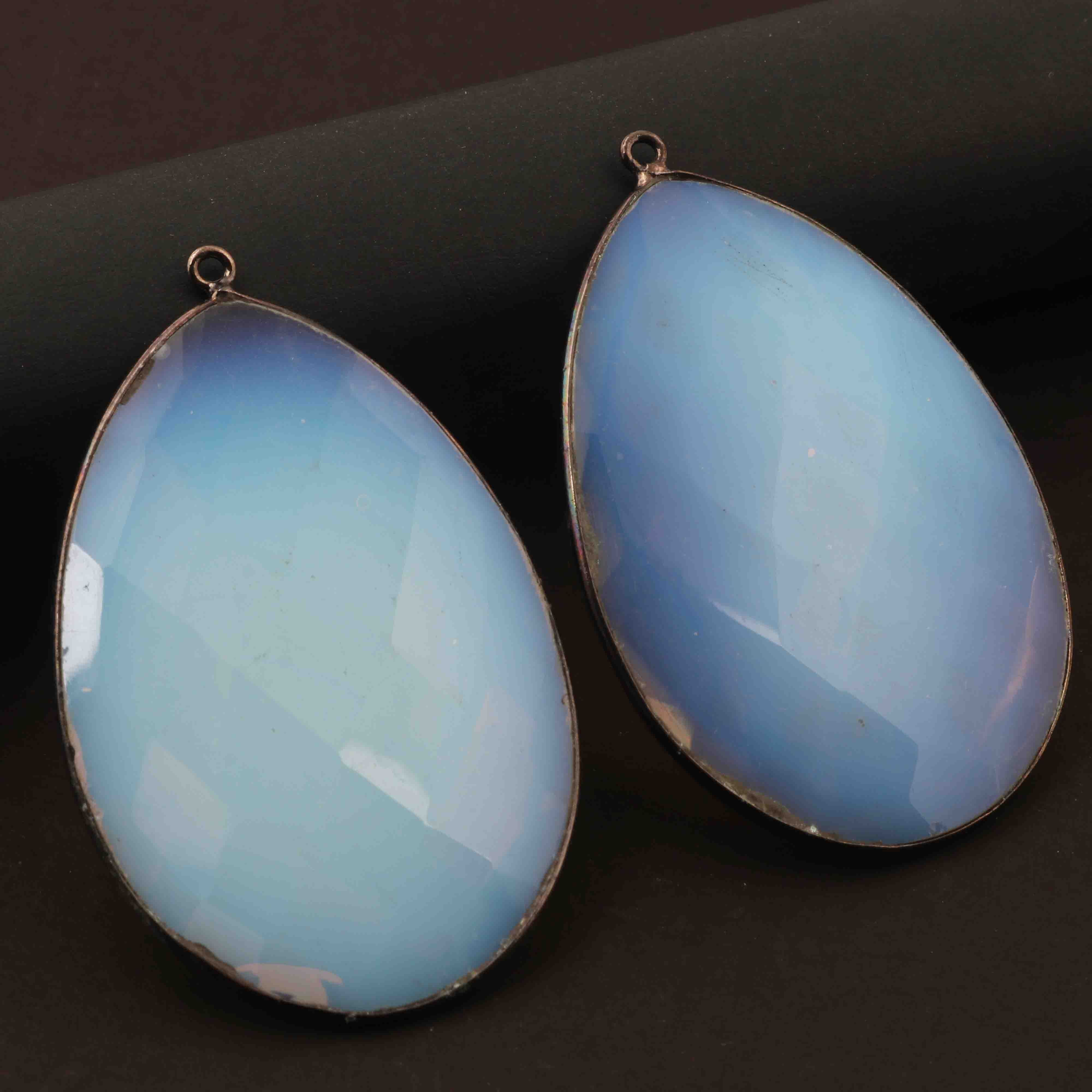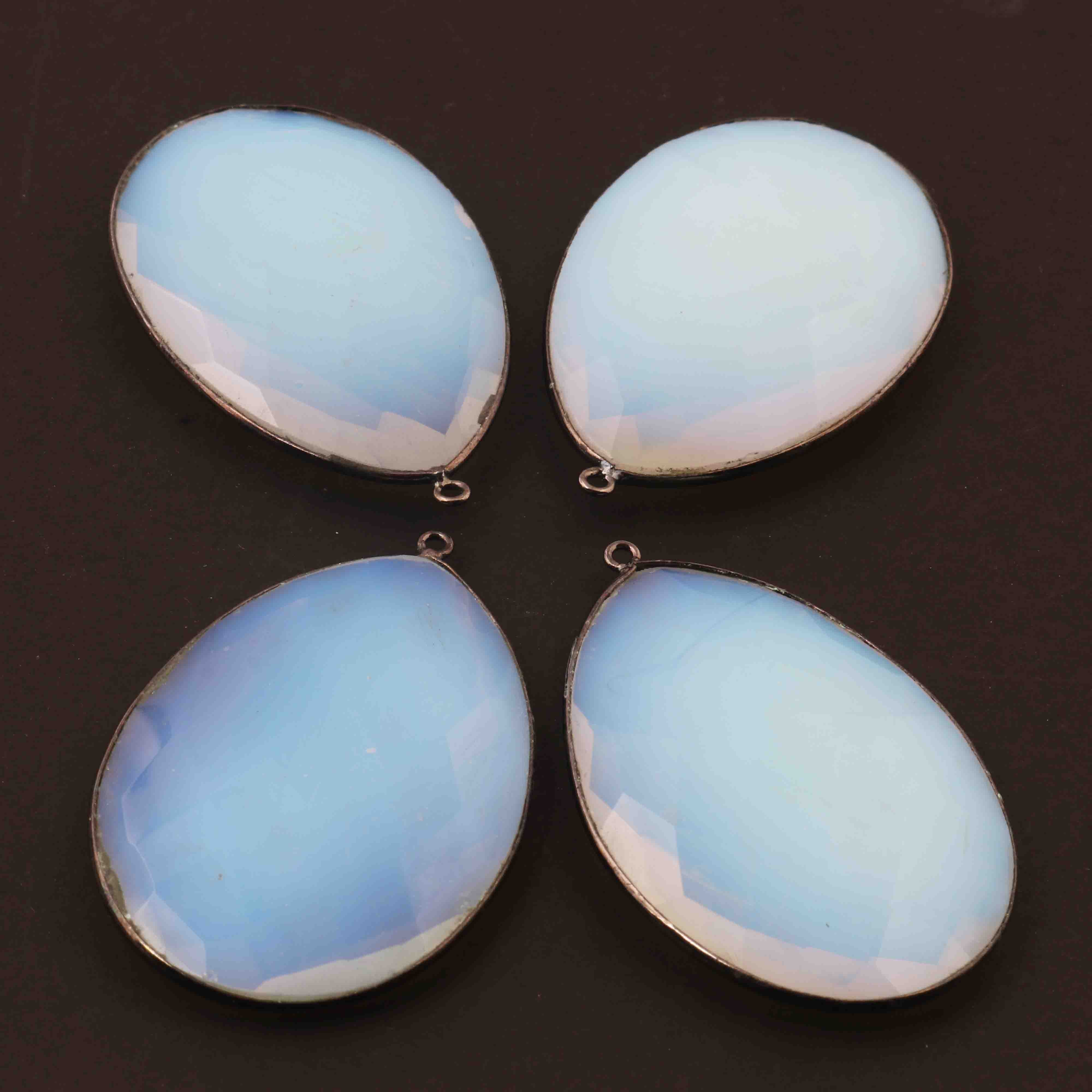 4 Pcs Ice Quartz Oxidize Silver Plated Faceted Pear Shape Pendant Single Bail -55mmx36mm- PC028