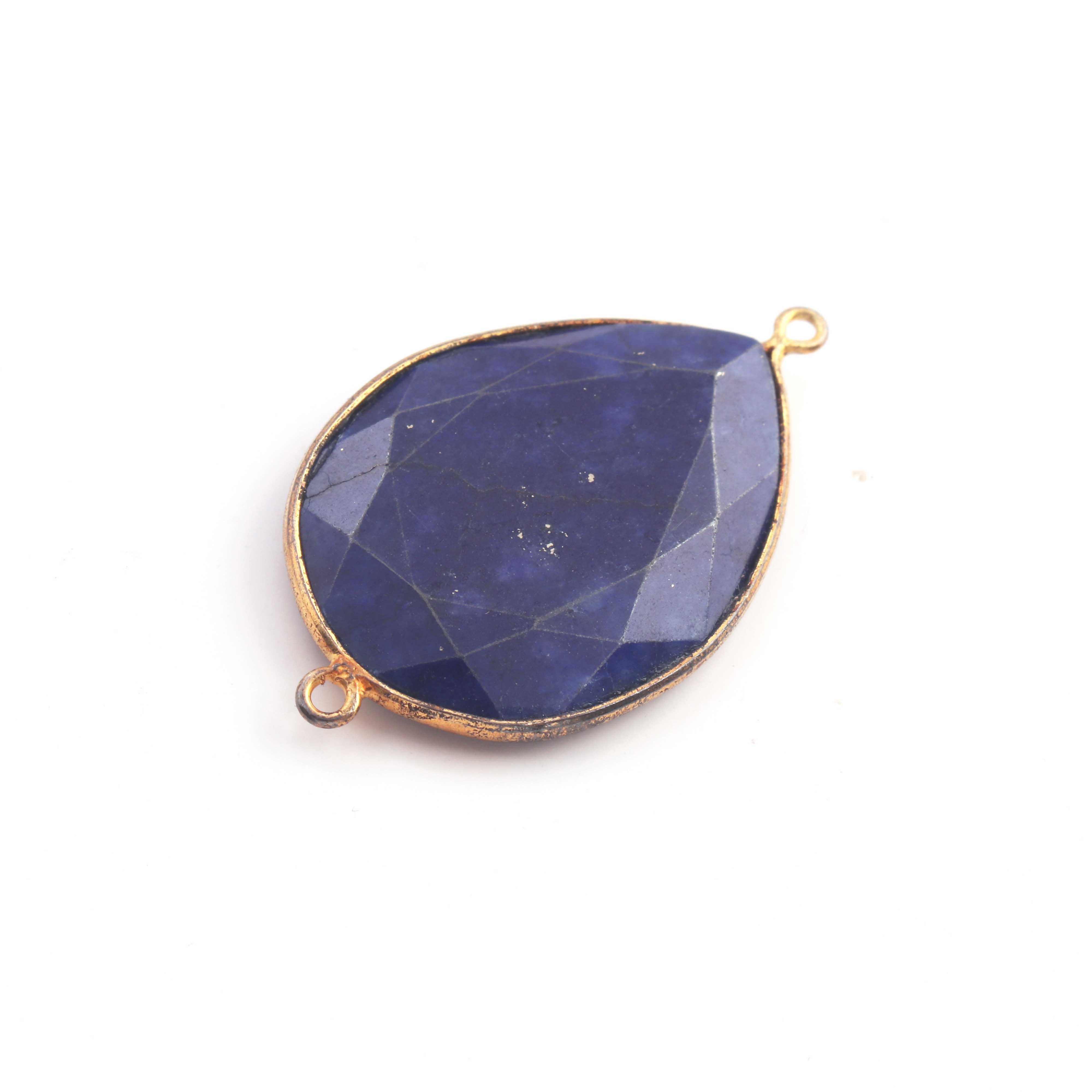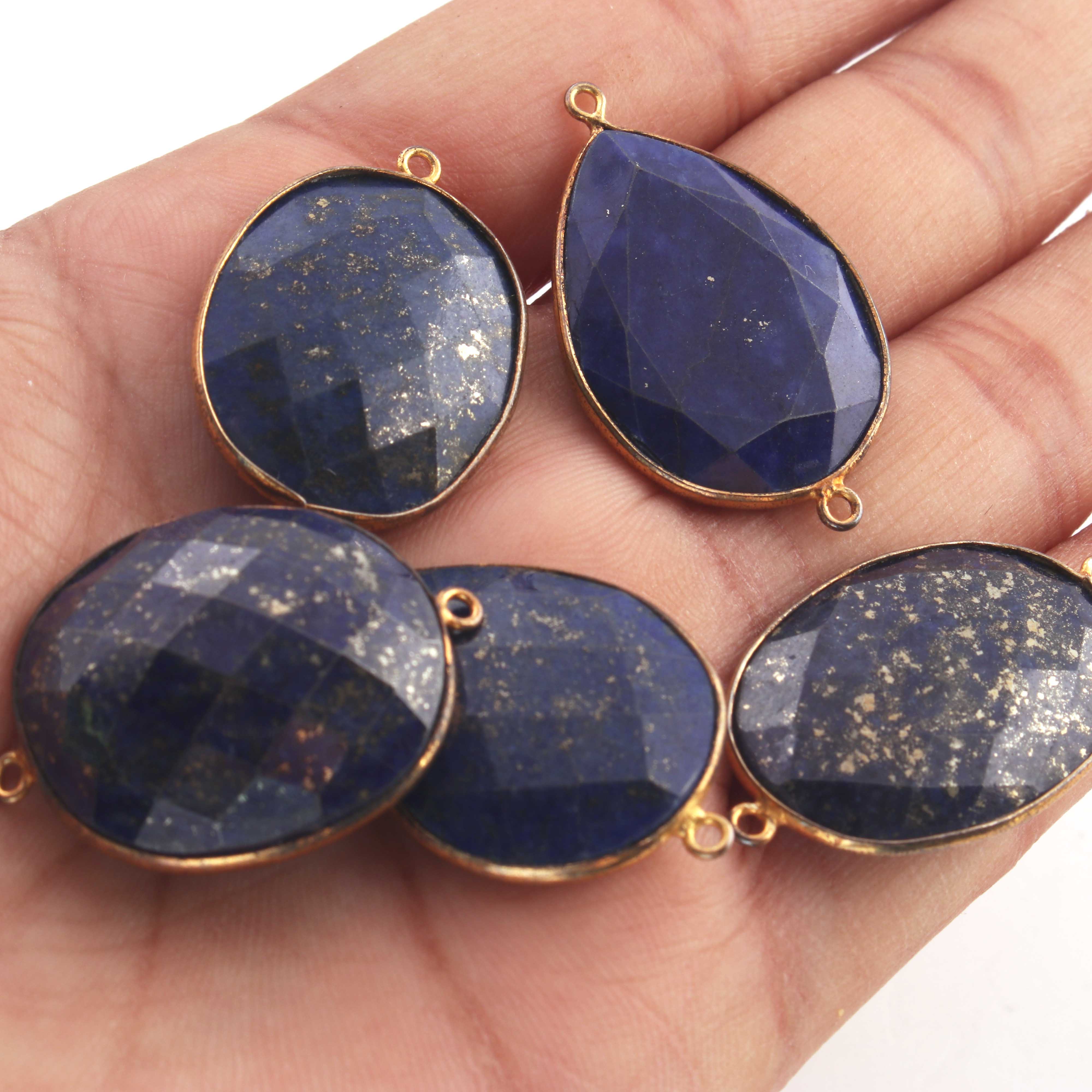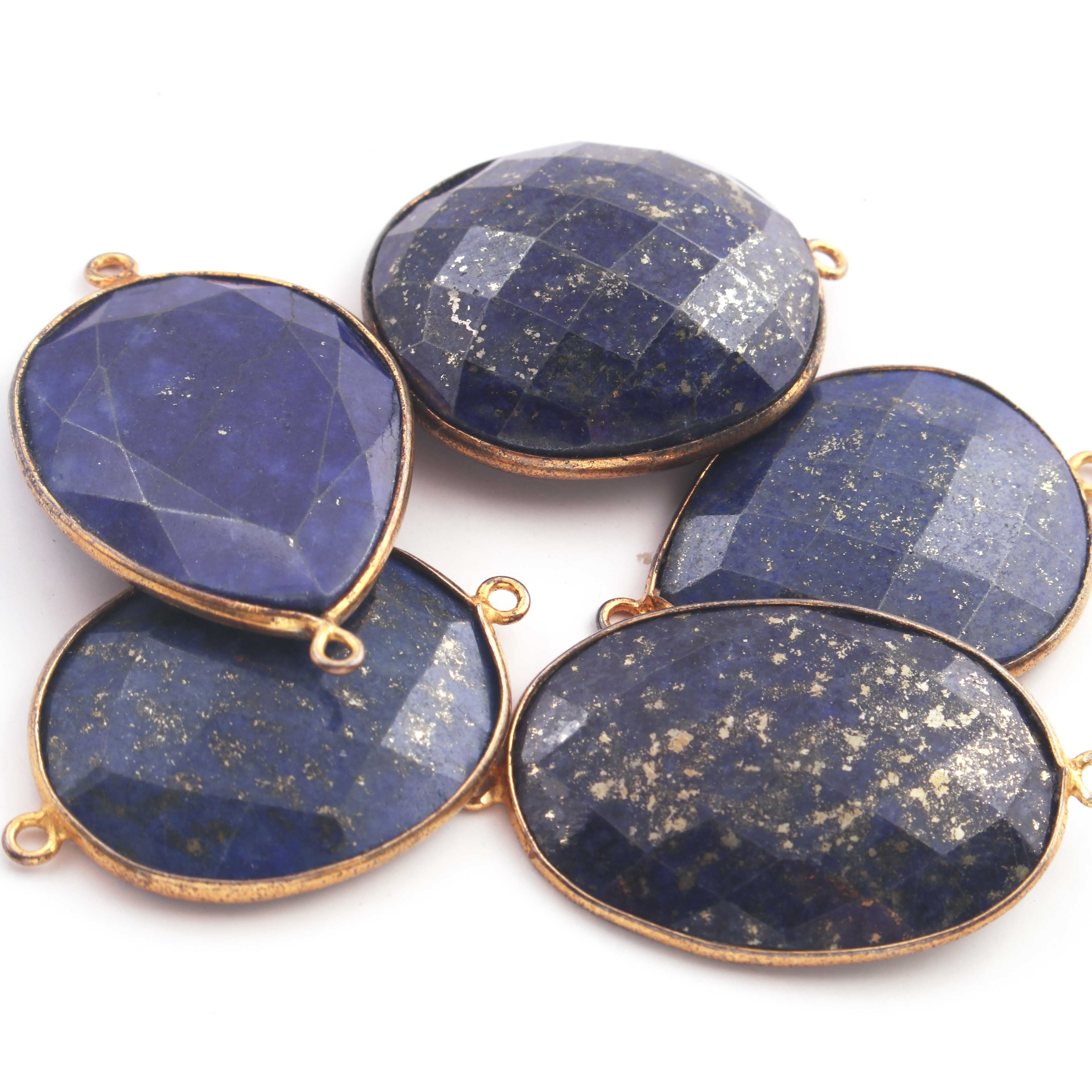 Listing is For -5 Pcs Beautiful Lapis 925 Sterling Vermeil Gemstone Faceted Oval Shape Double Bail connector-25mmx31mm SS058