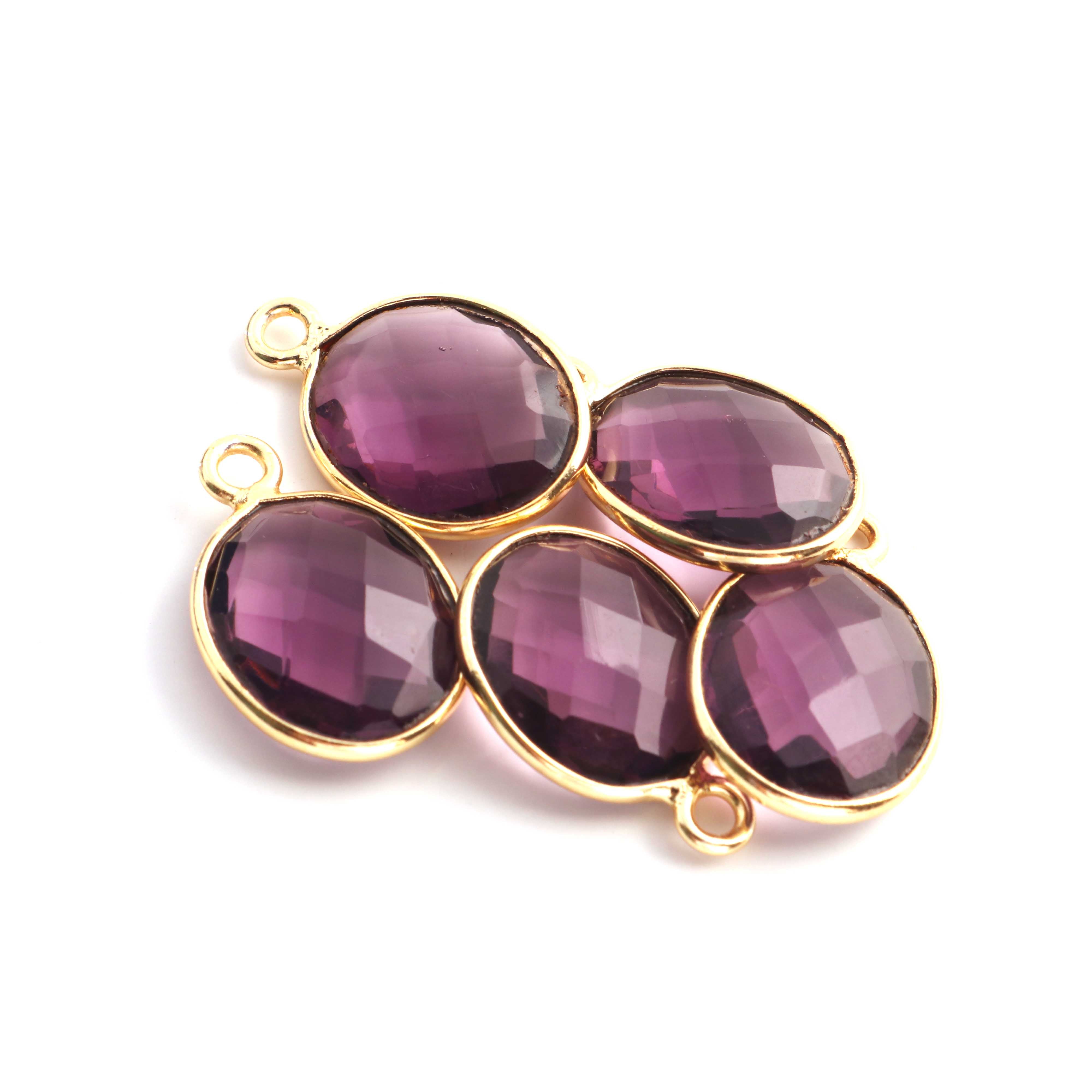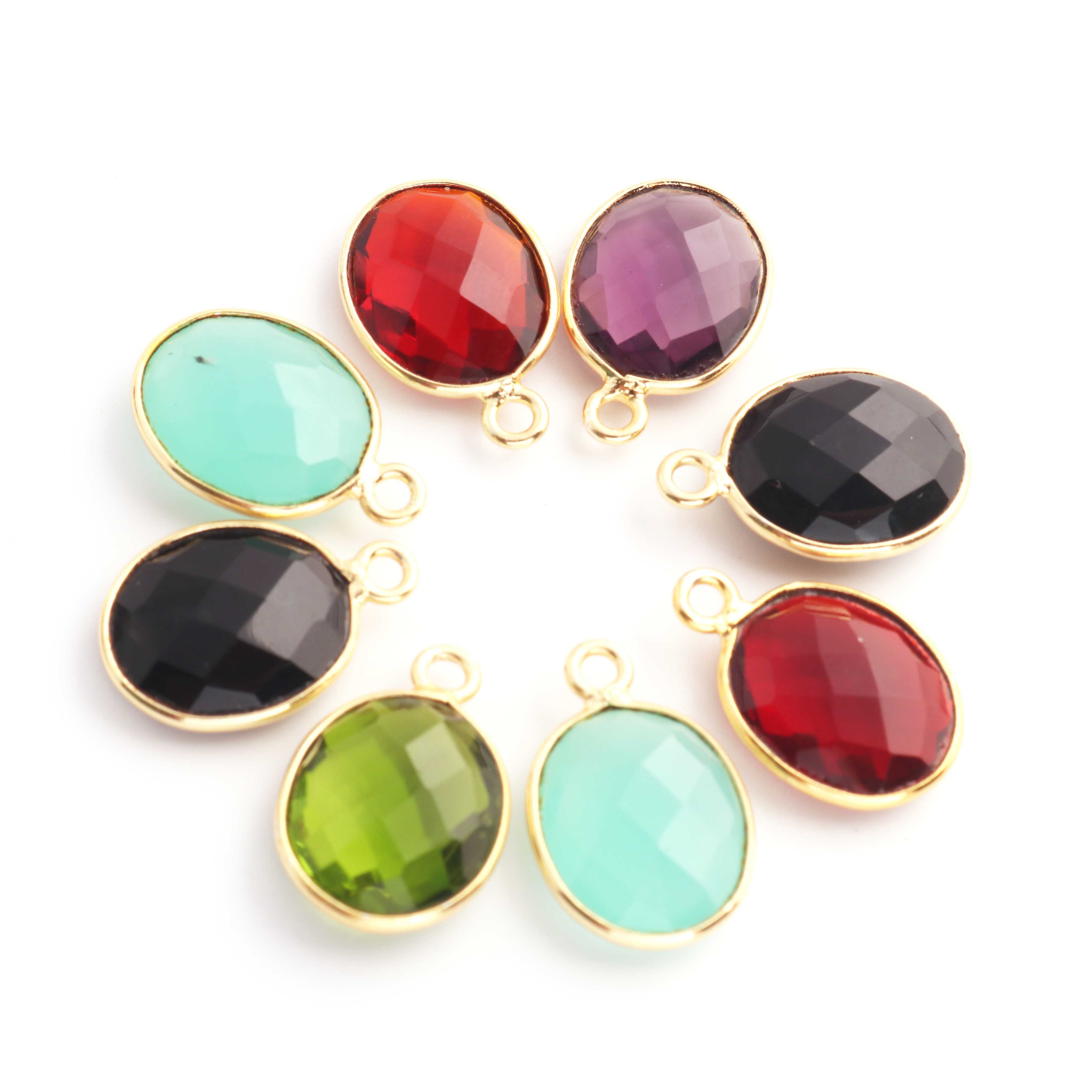 5 Pcs Birth Stone Oval Shape 24k Gold Plated Pendant- Multi Stone Faceted Pendant 18mmx12mm PC0015(You Choose)