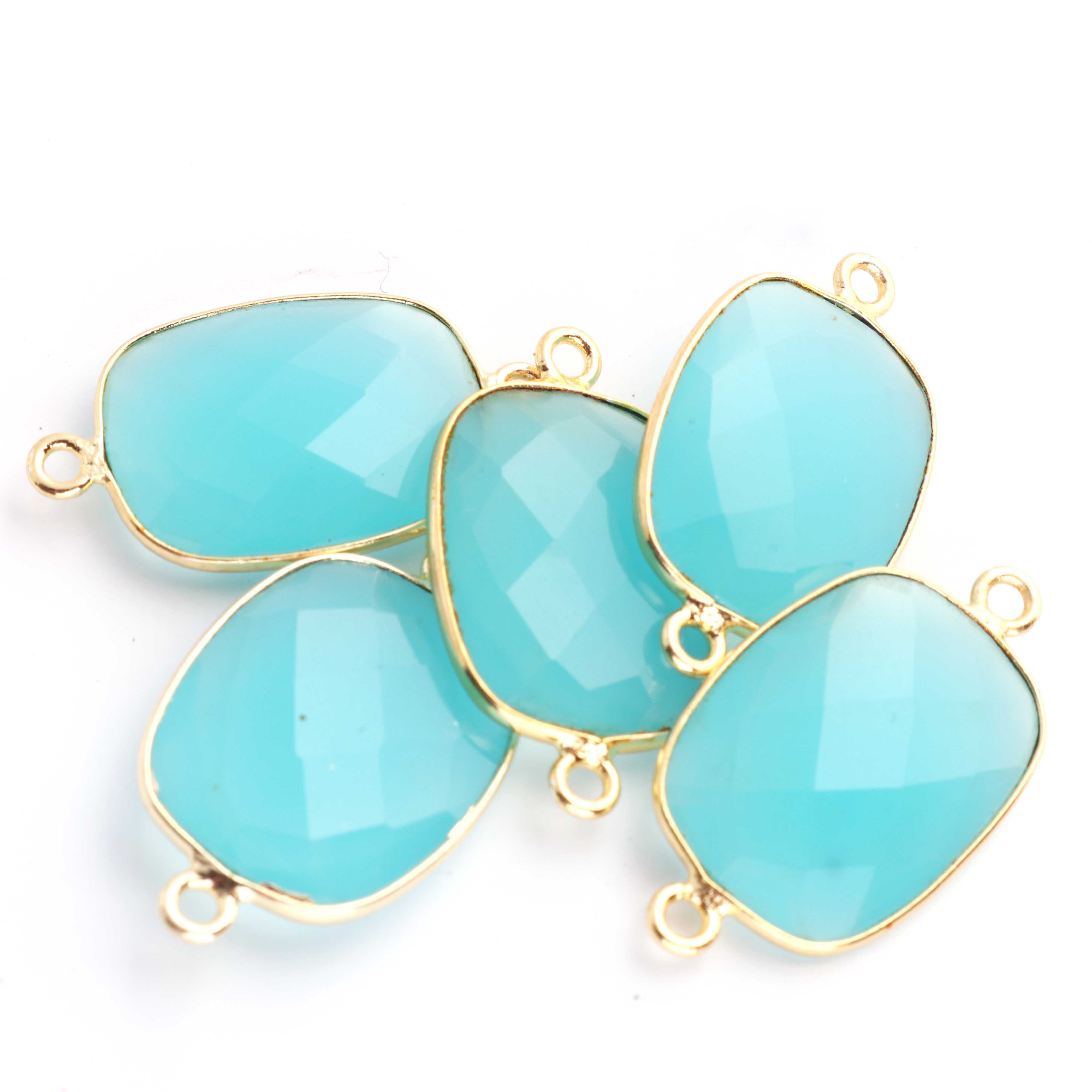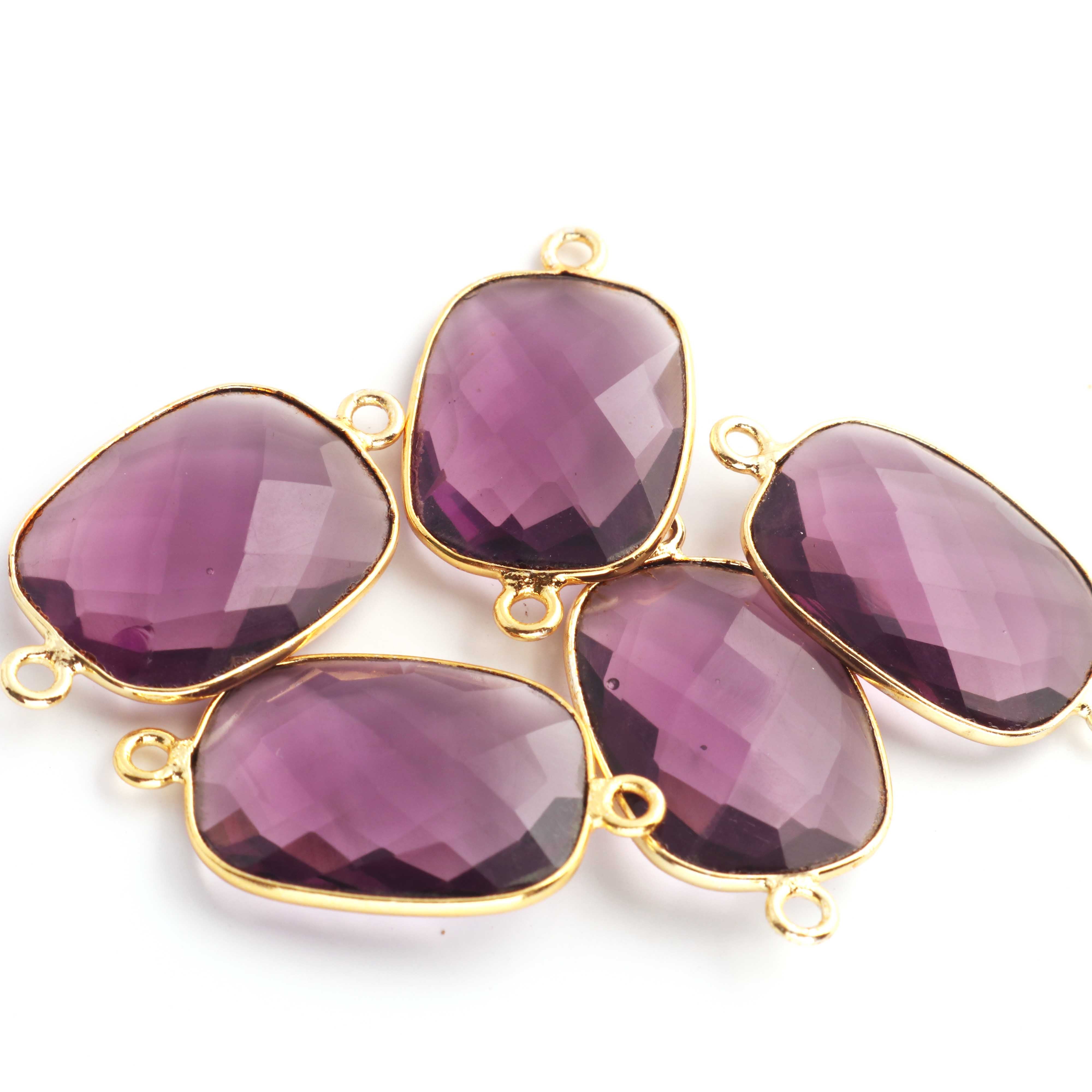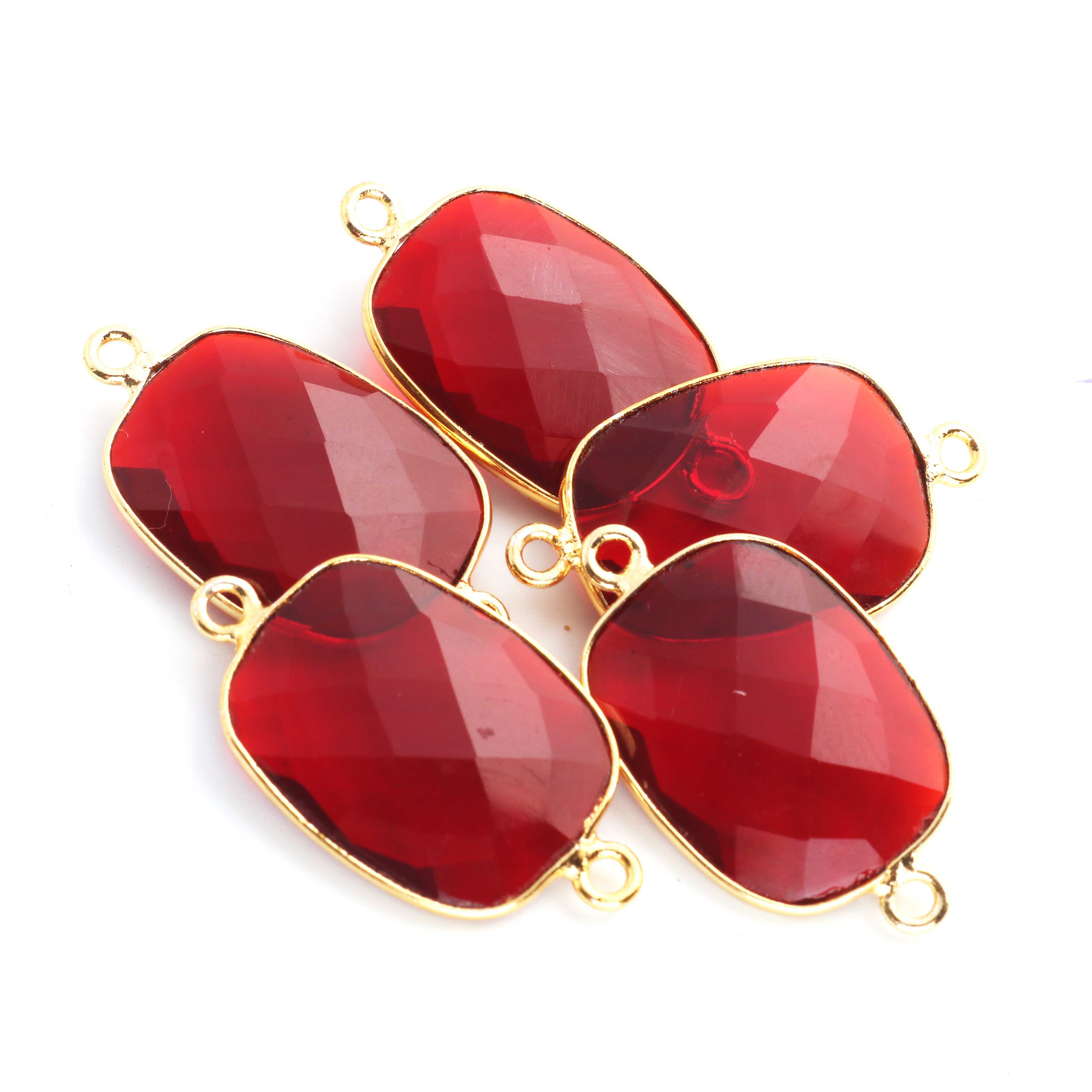 5 Pcs Birth Stone Rectangle Shape 24k Gold Plated Double Bail Connector- Multi Stone Faceted Connector 29mmx16mm PC0020(You Choose)
