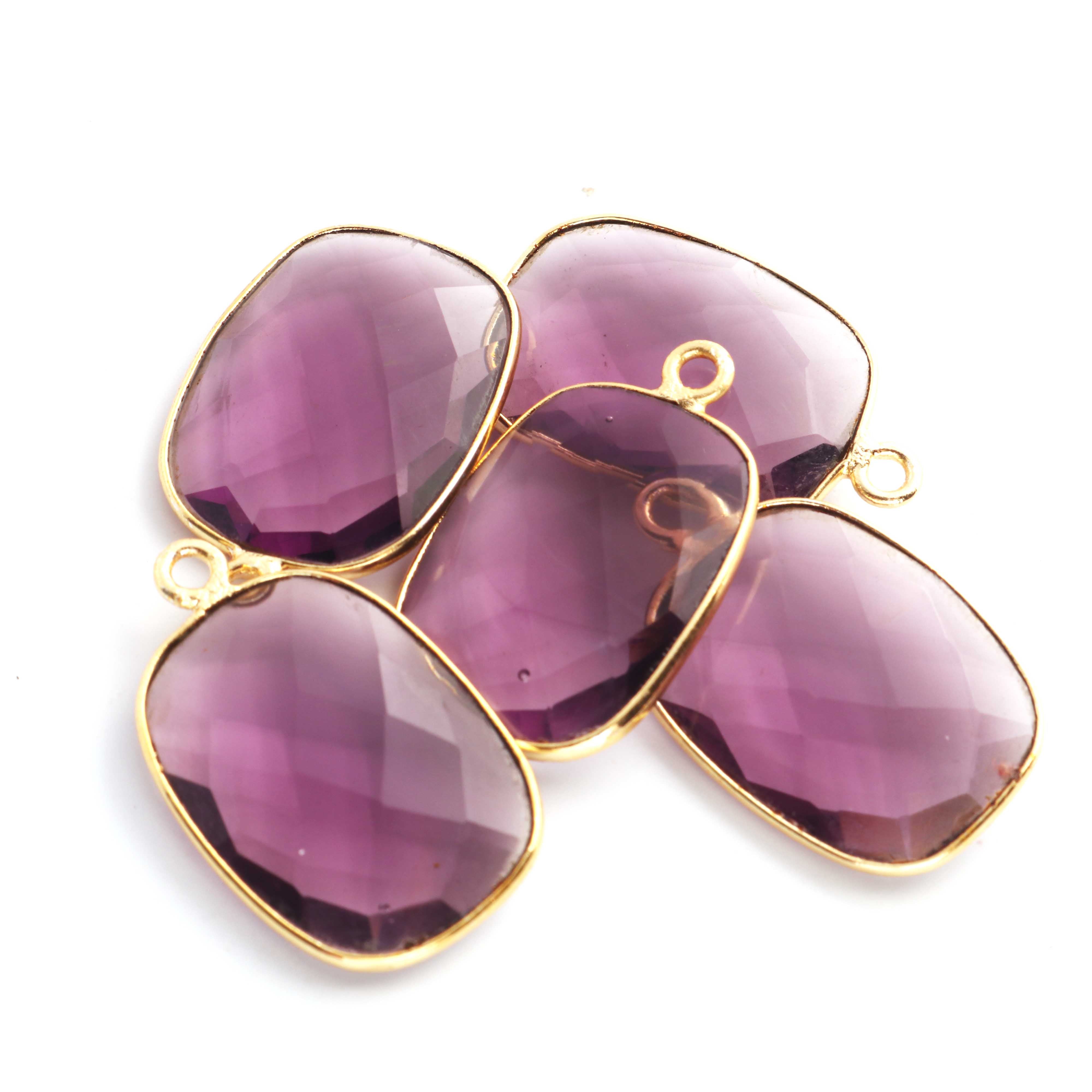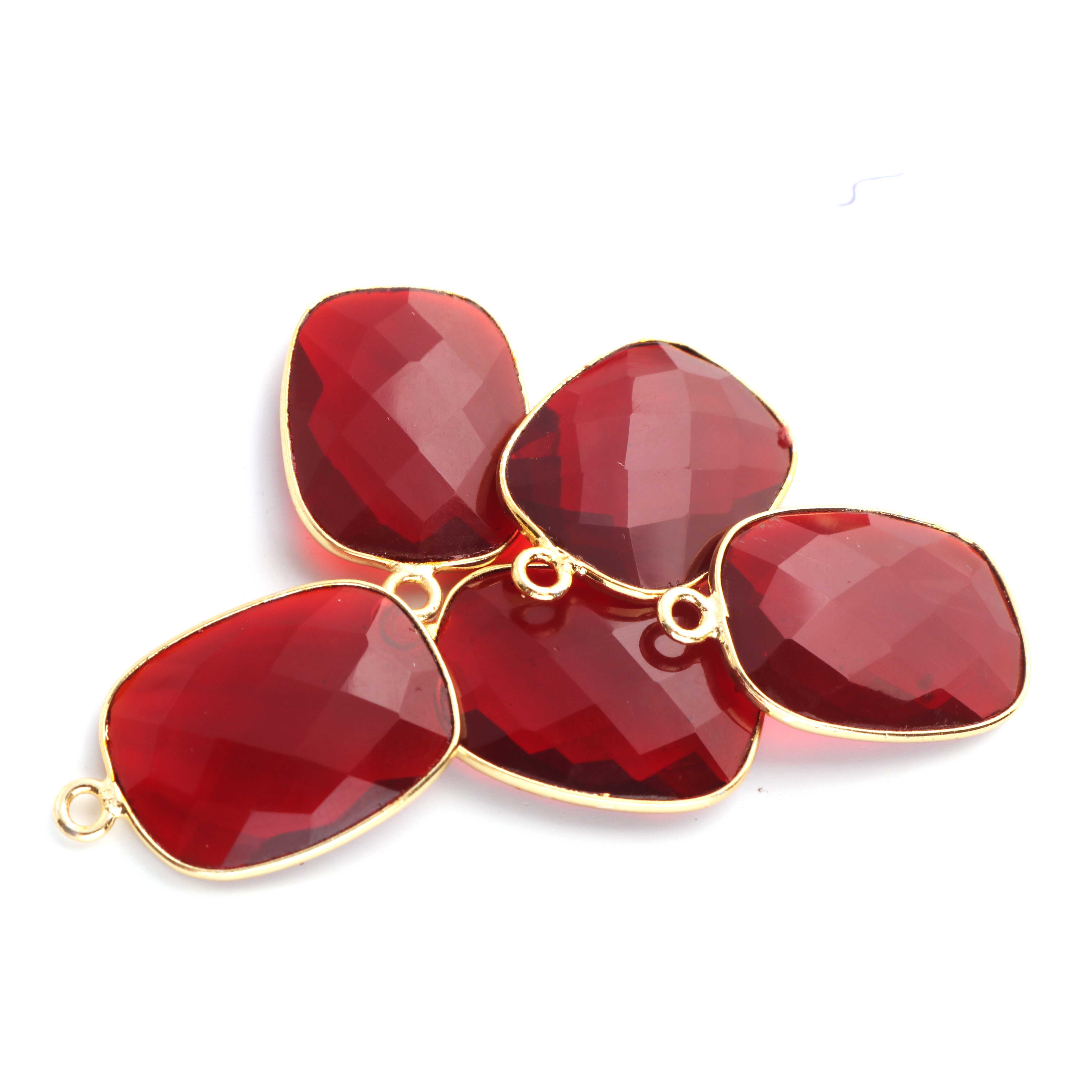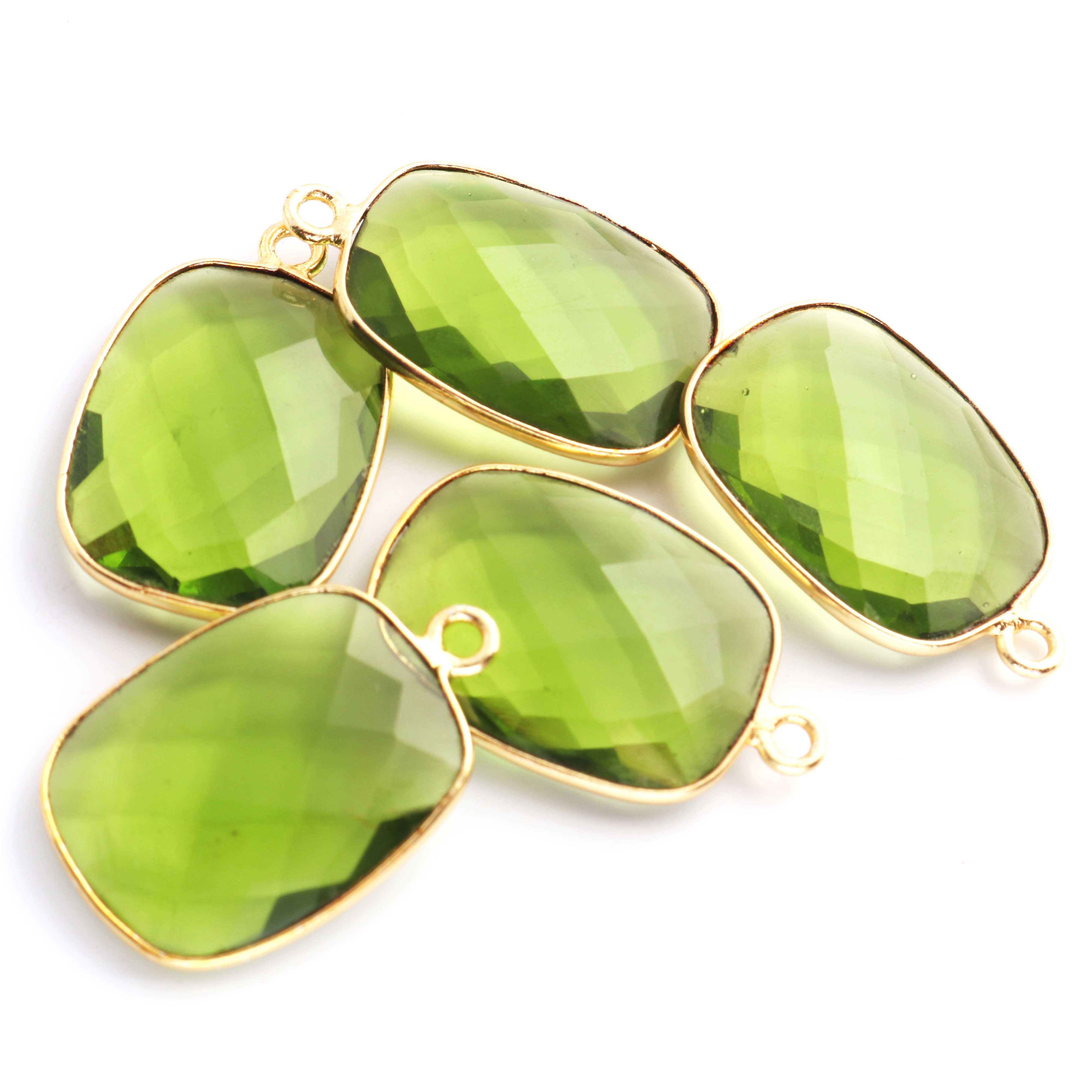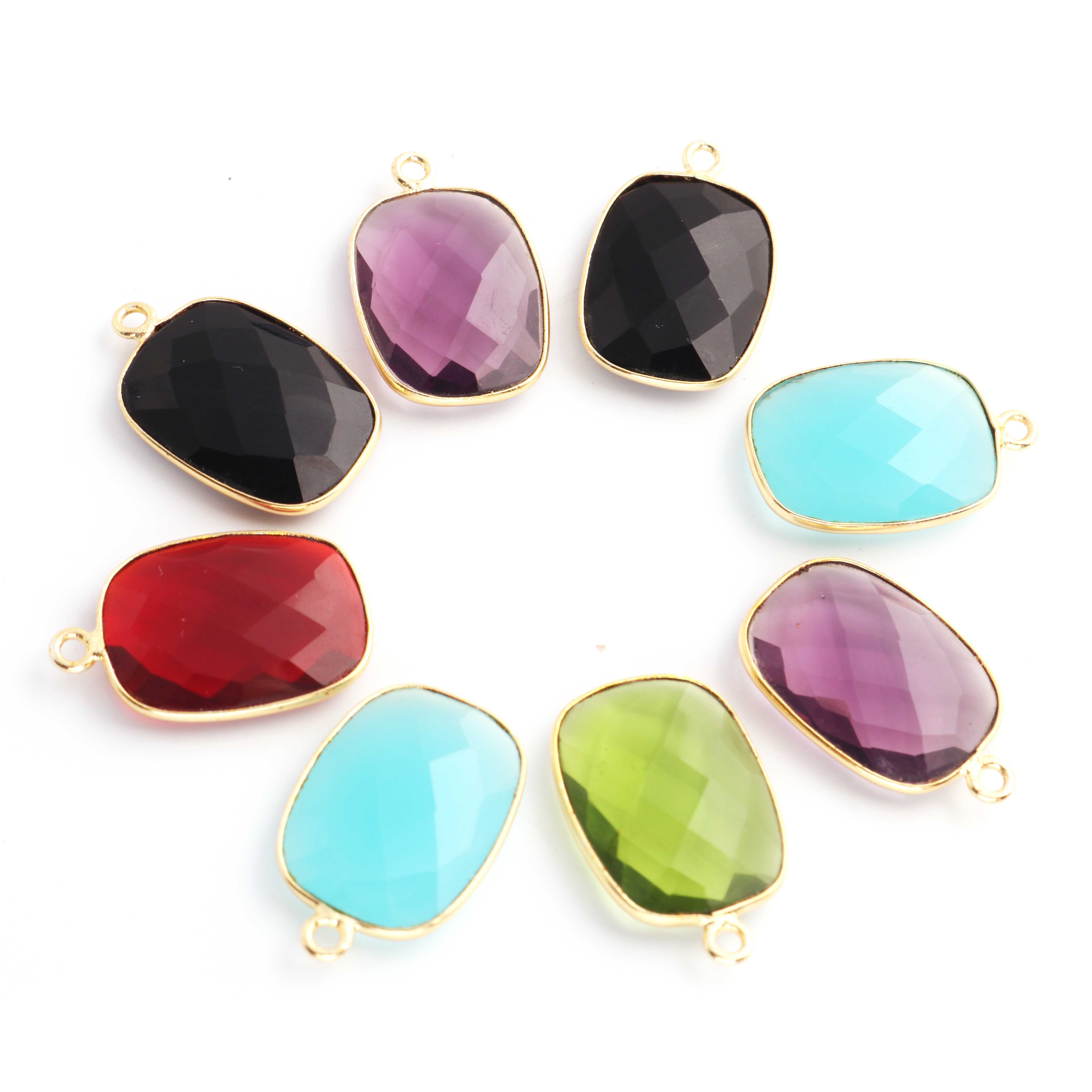 5 Pcs Birth Stone Rectangle Shape 24k Gold Plated Pendant- Multi Stone Faceted Pendant 25mmx15mm PC0016  (You Choose)