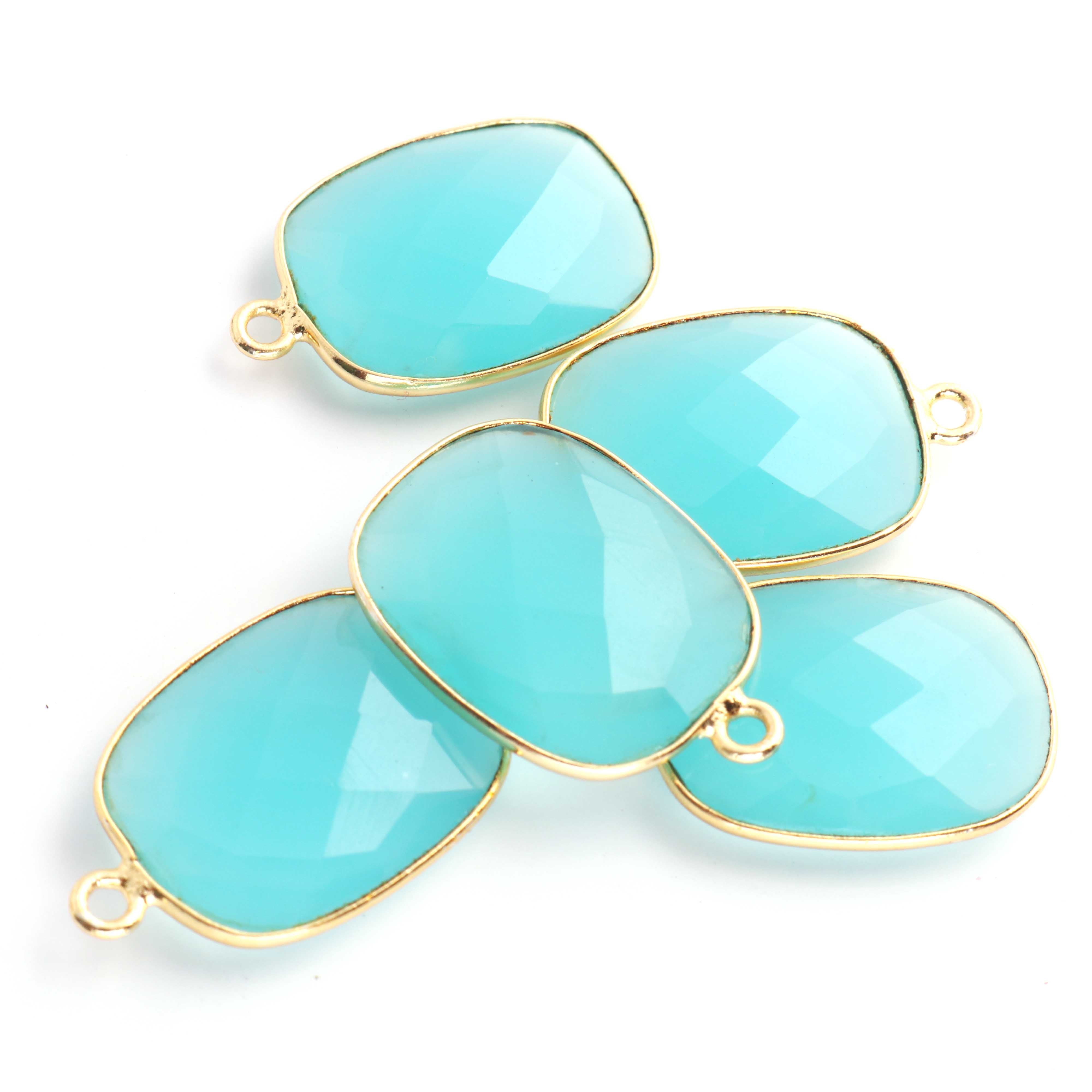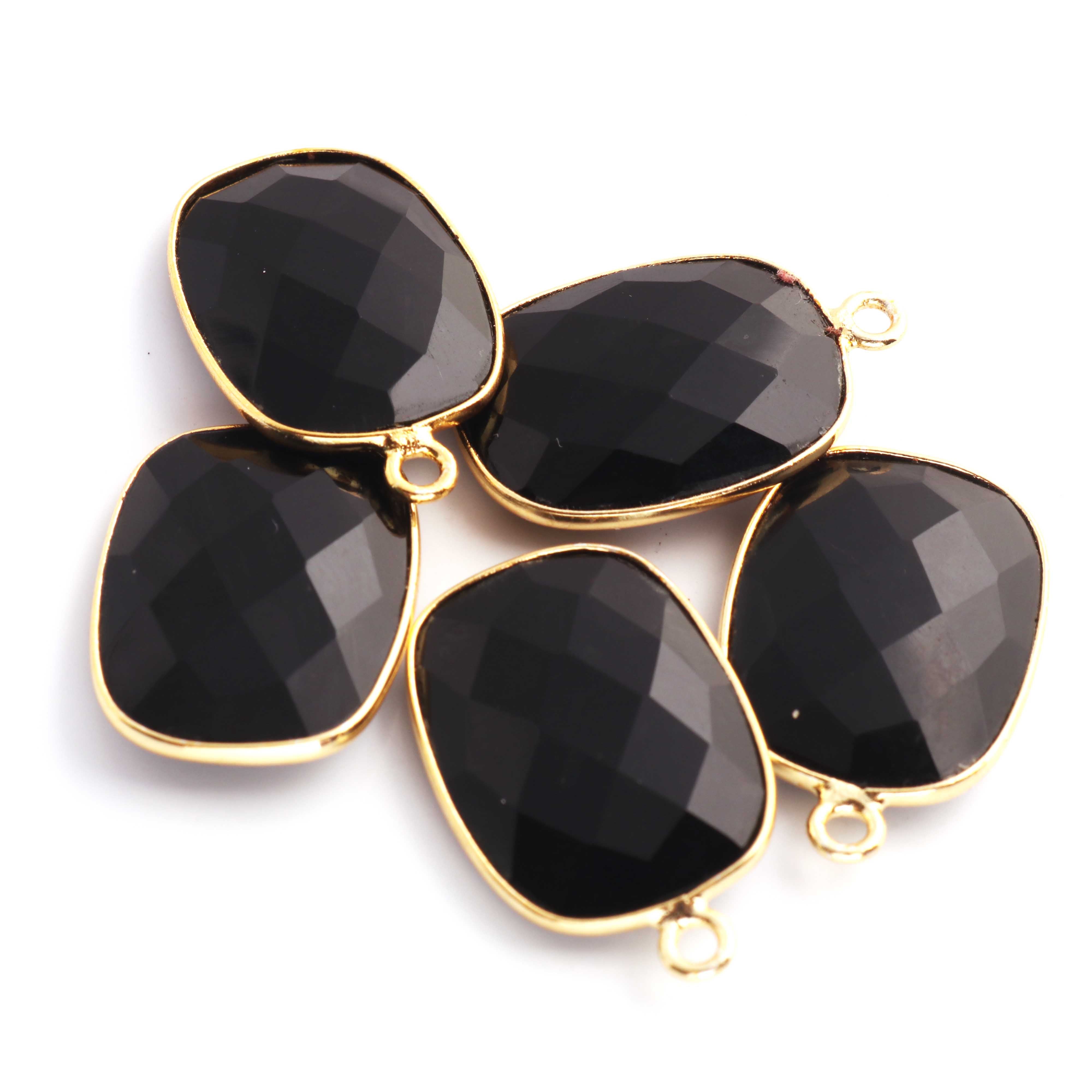 5 Pcs Birth Stone Rectangle Shape 24k Gold Plated Pendant- Multi Stone Faceted Pendant 25mmx15mm PC0016 (You Choose)