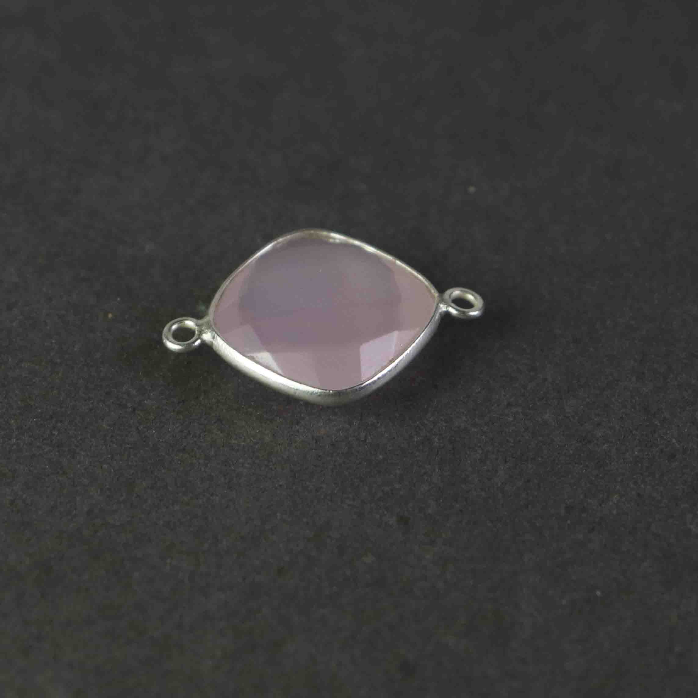 5 Pcs Rose Quartz Cushion 925 Sterling Silver Faceted Double Bail Connector 23mmx17mm SS374