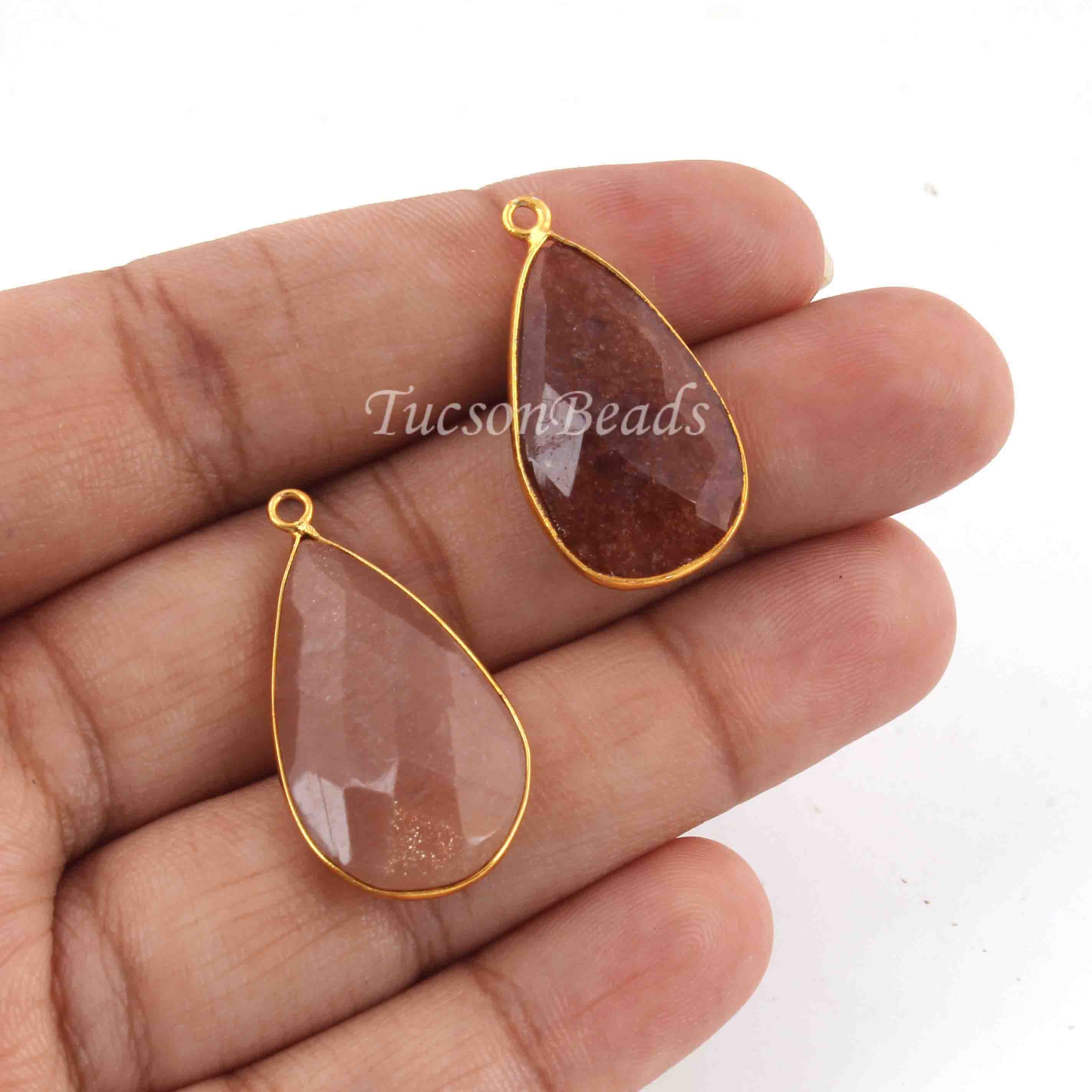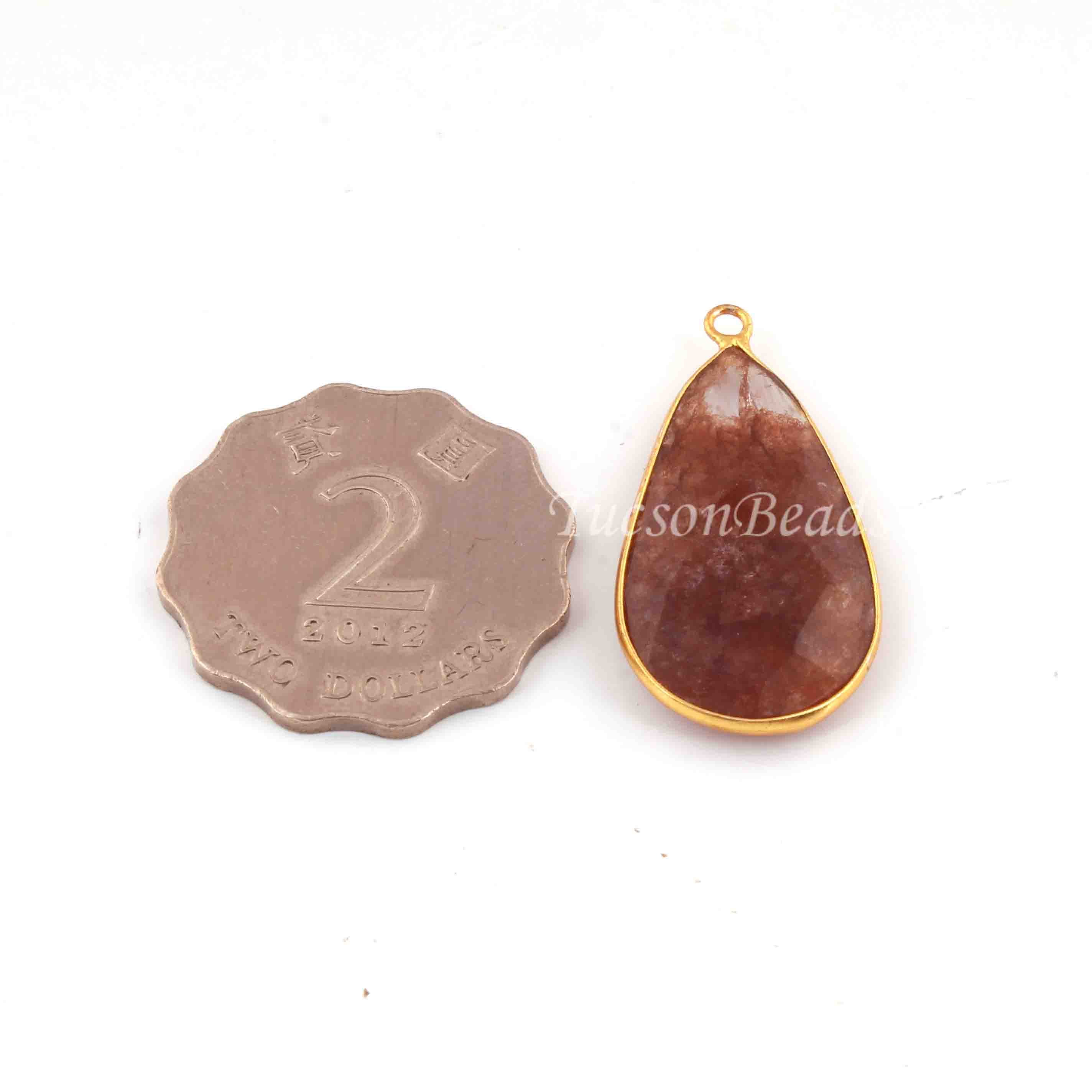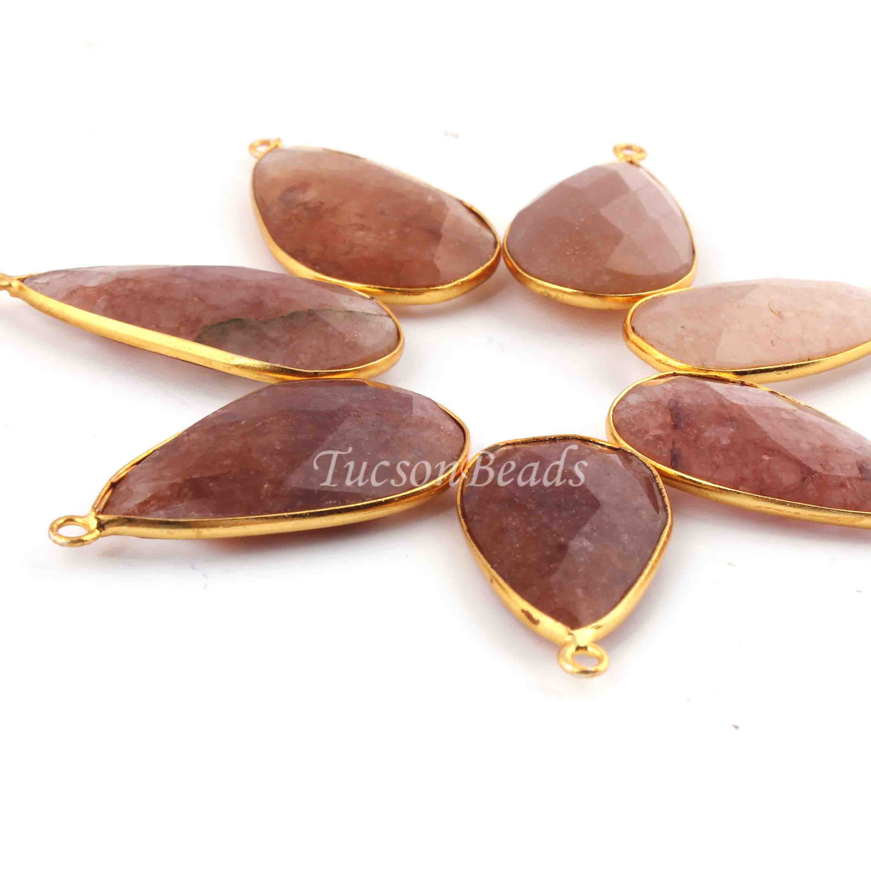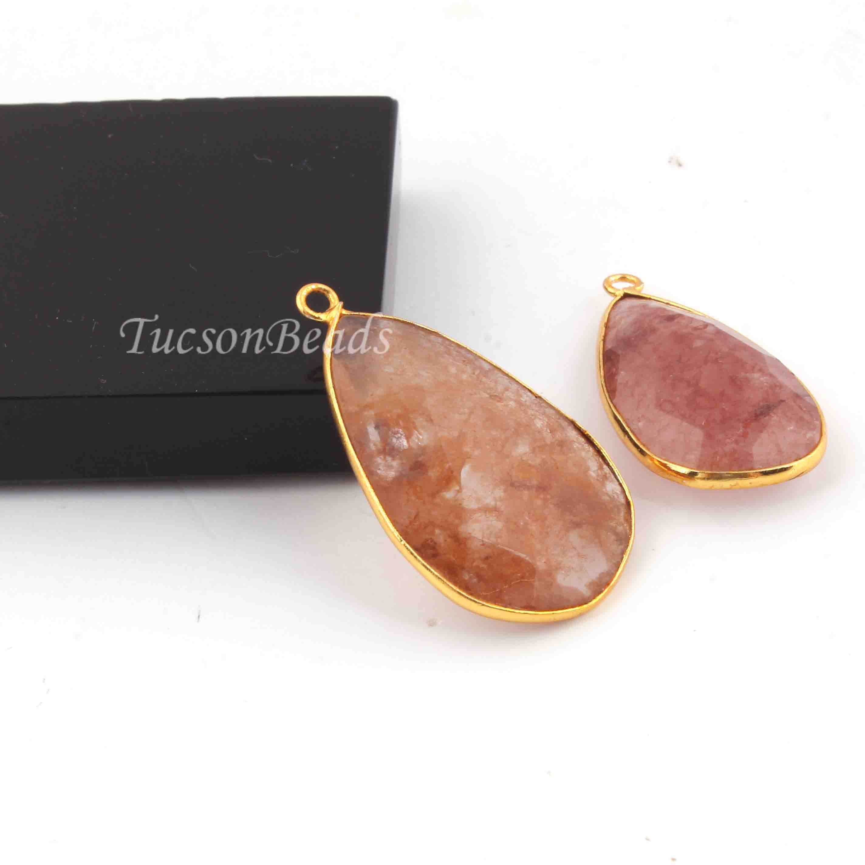 7 Pcs Red Rutile 24k Gold Plated Faceted Pear Shape Pendant- 35mmx17mm- PC287
