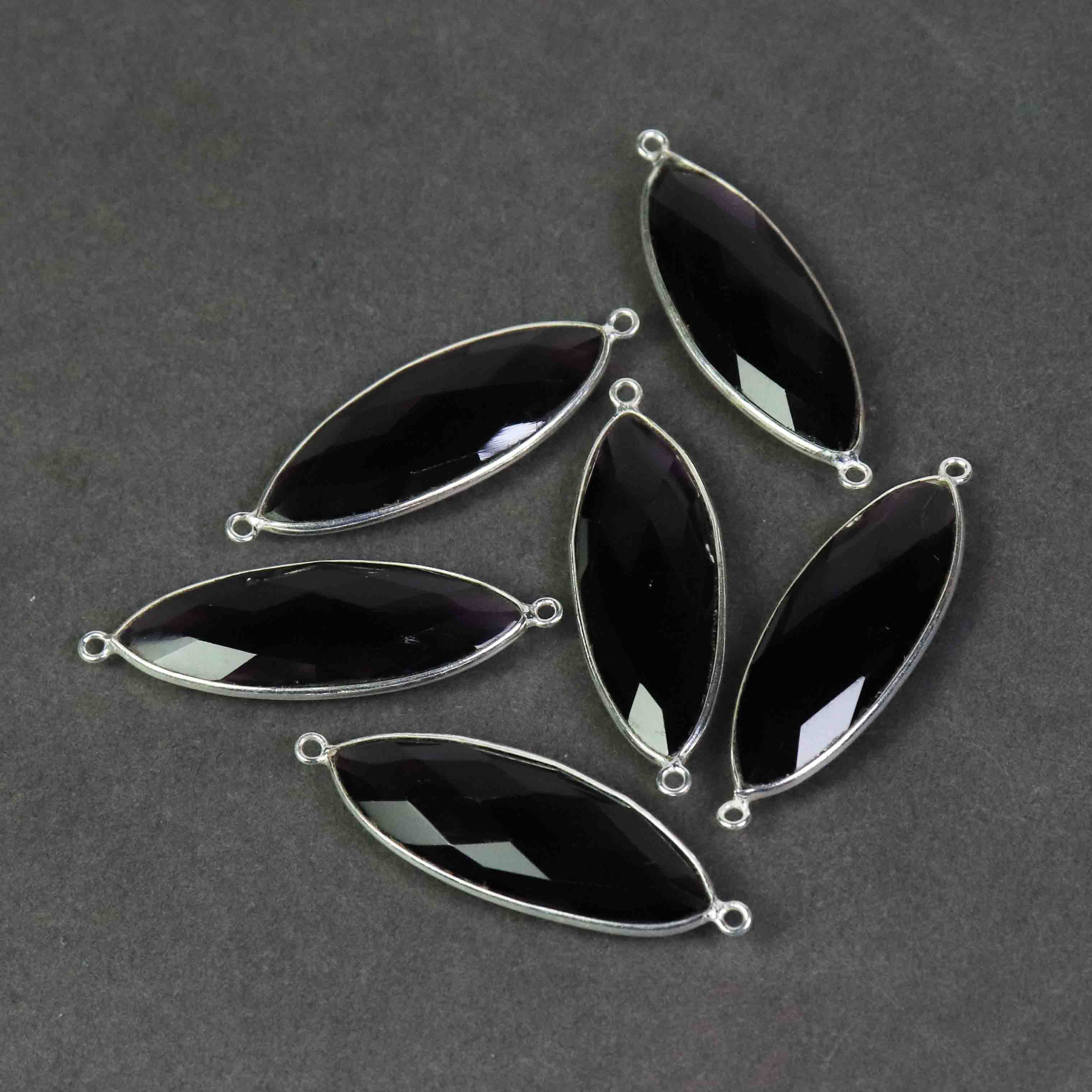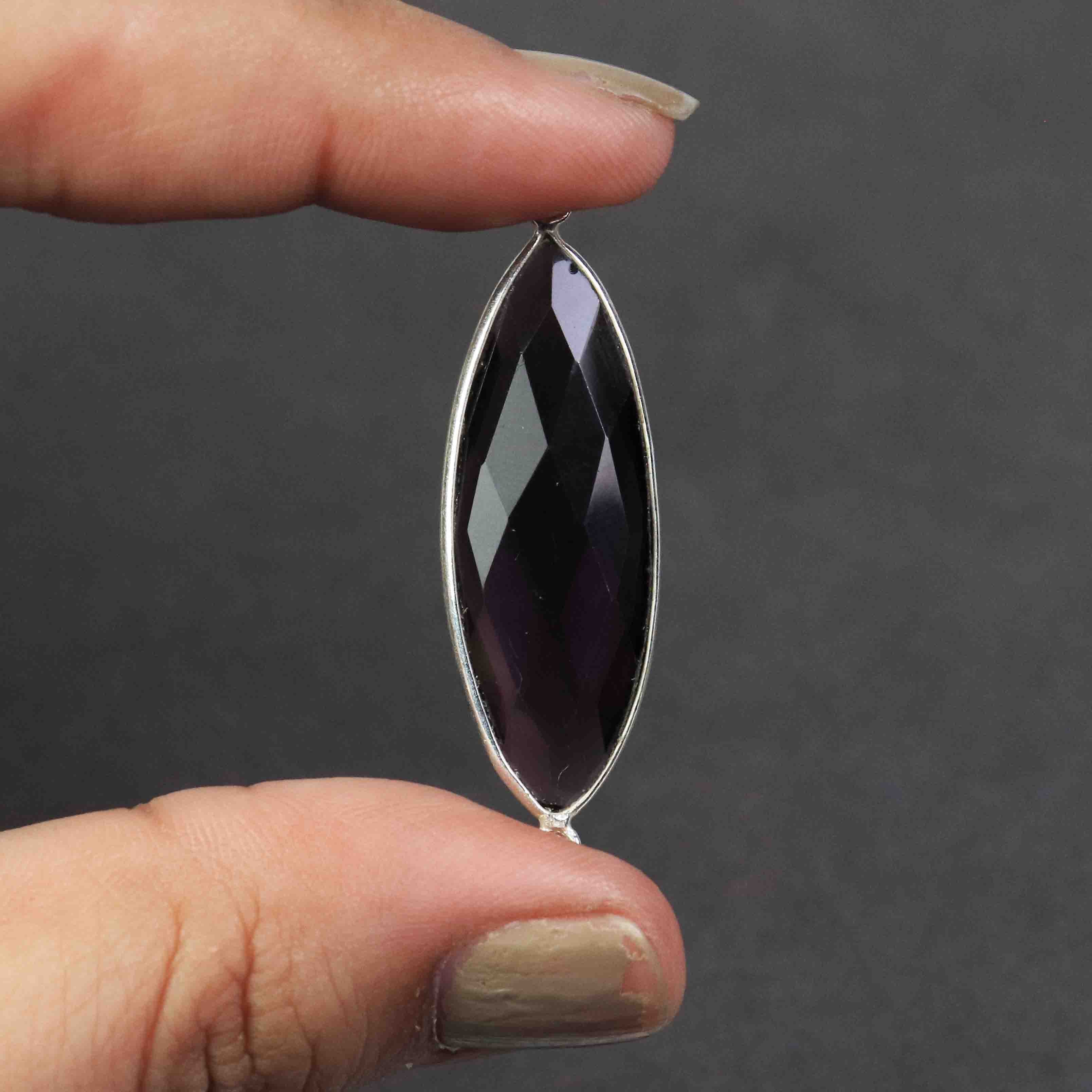 8 Pcs Amethyst  Faceted 925 Sterling Silver Marquise  Shape Double & Single  Bail Connector & Pendant 41mmx13mm & 39mmx13mm- SS476