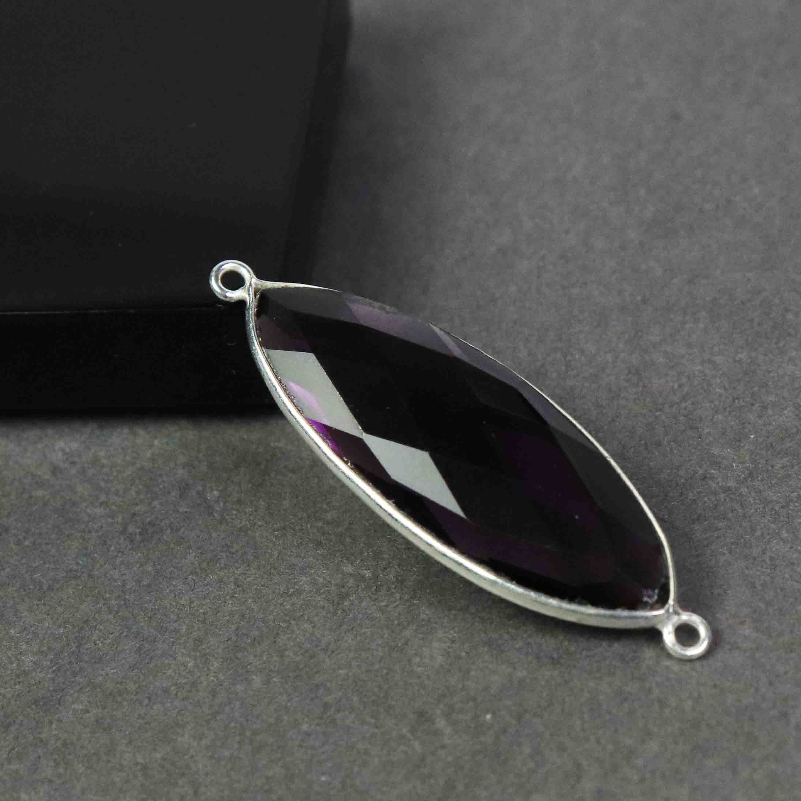 8 Pcs Amethyst Faceted 925 Sterling Silver Marquise Shape Double & Single Bail Connector & Pendant 41mmx13mm & 39mmx13mm- SS476