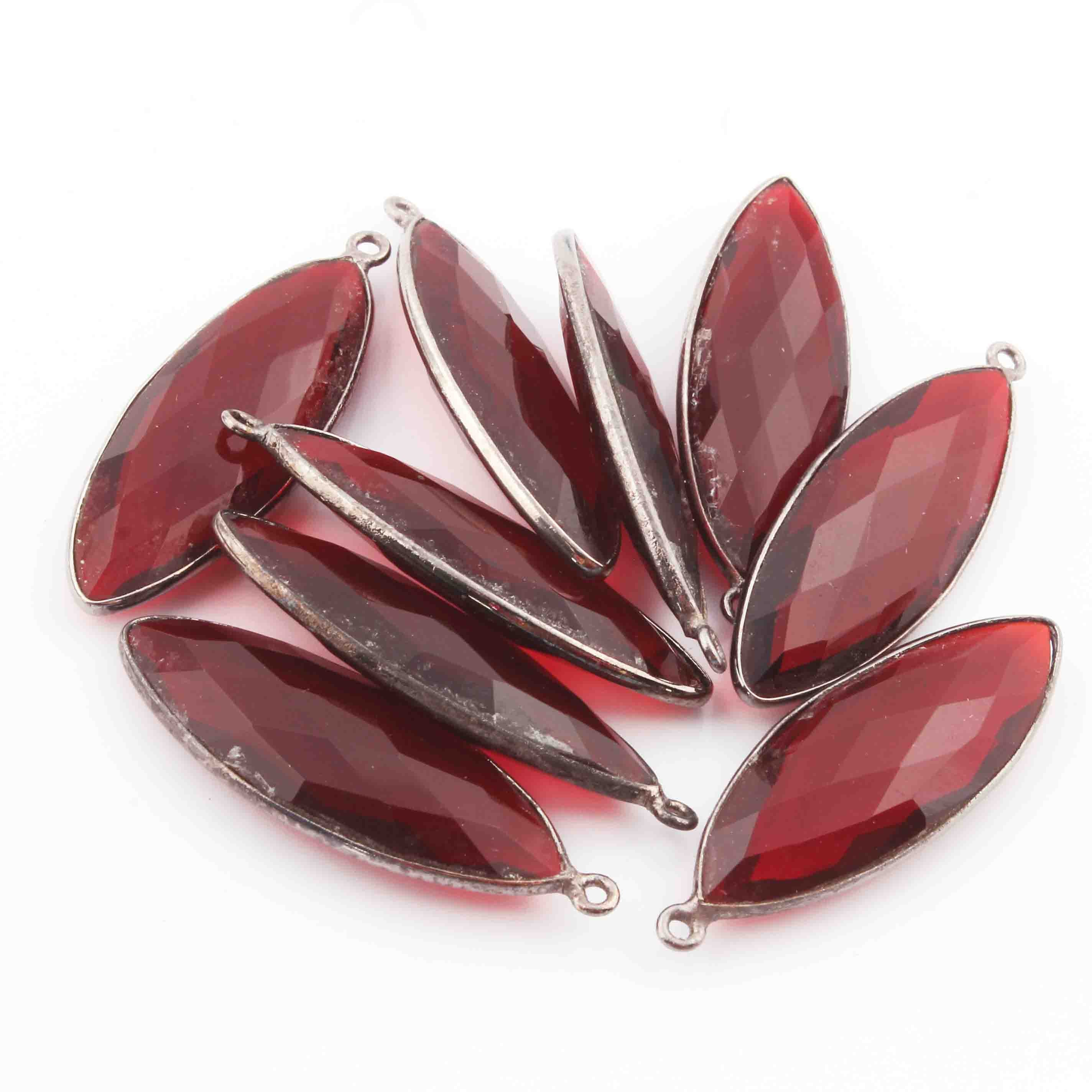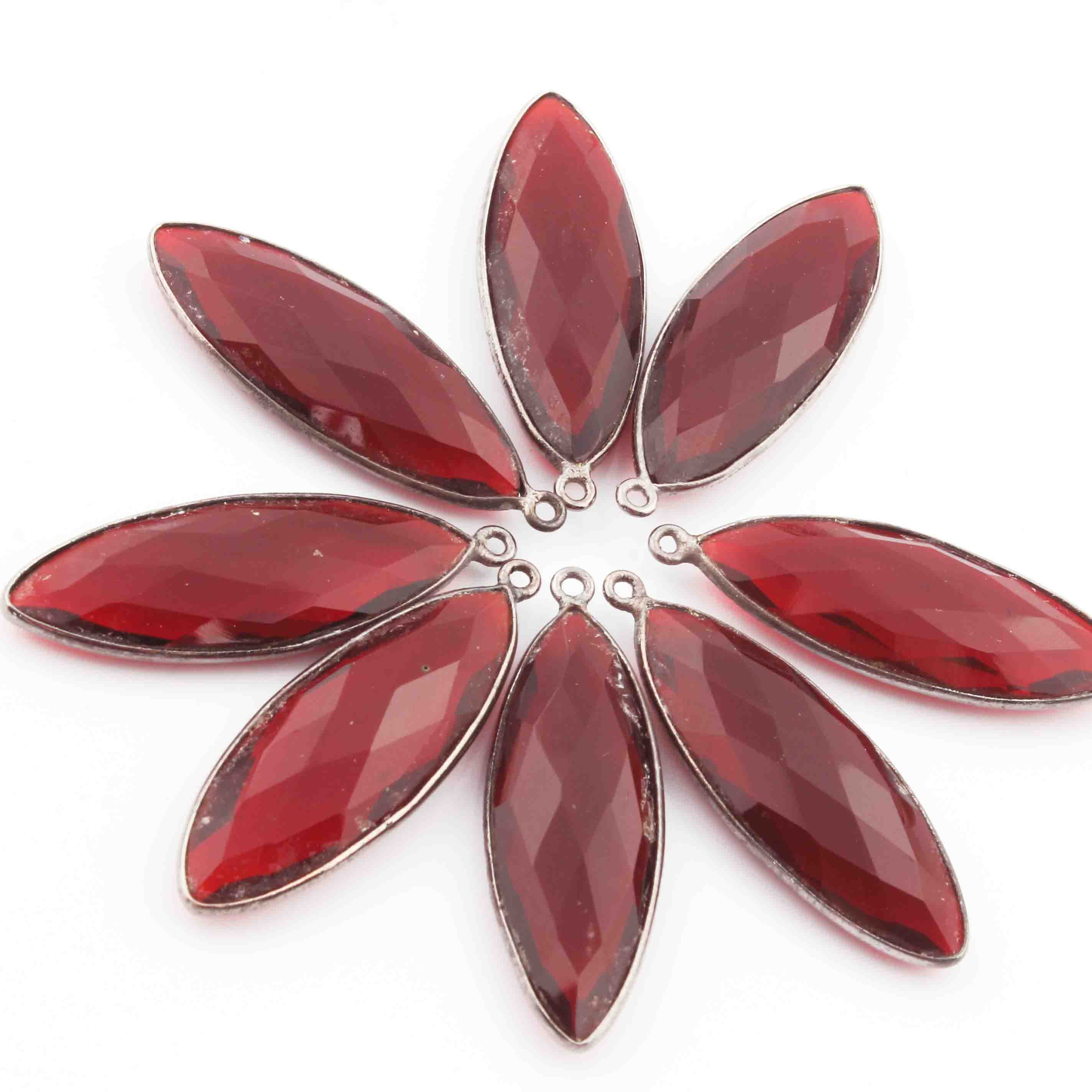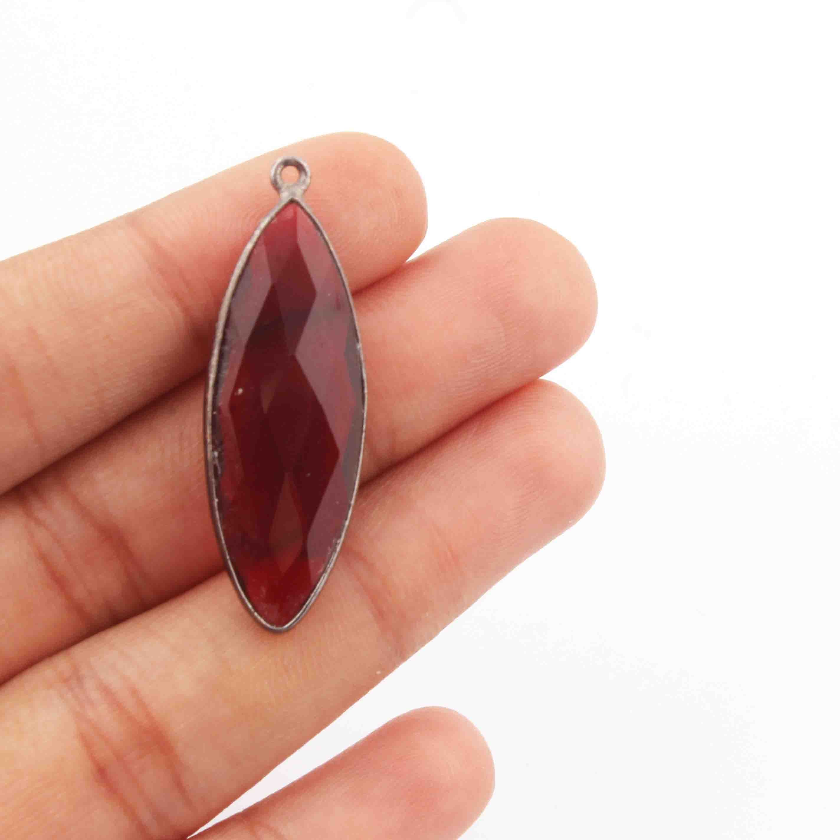 9 Pcs Garnet Faceted Marquise Shape Oxidized Silver Plated Pendant 39mmx13mm PC115