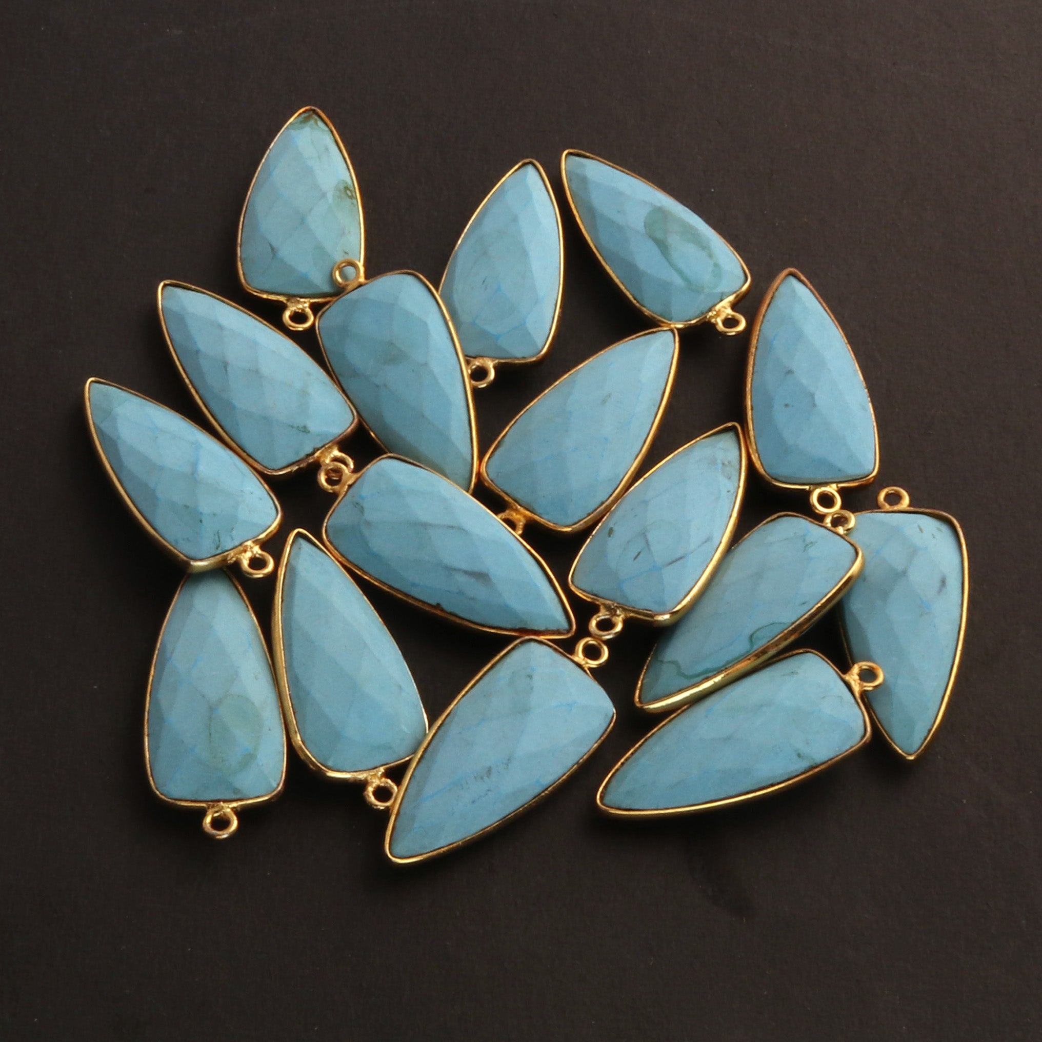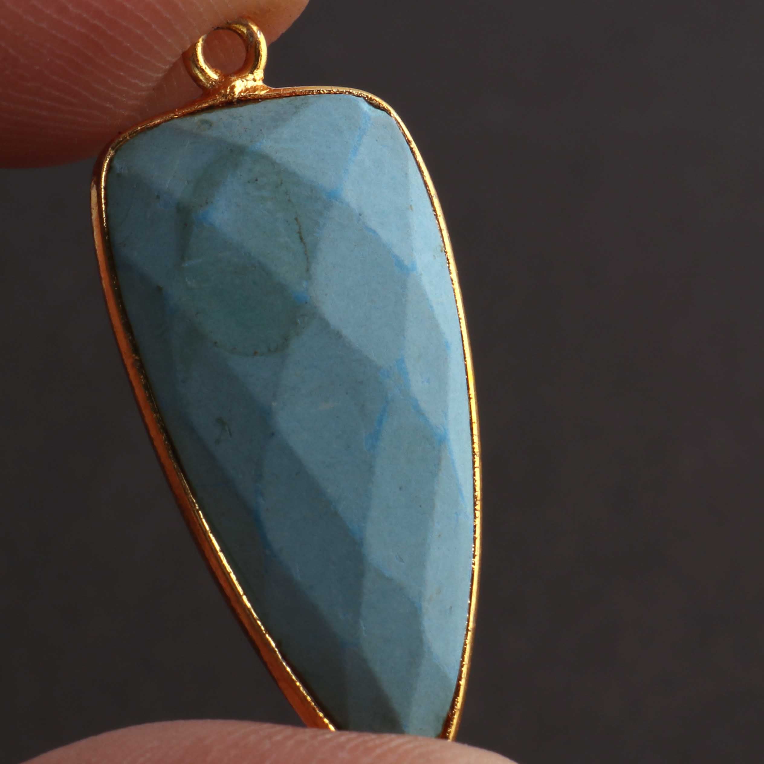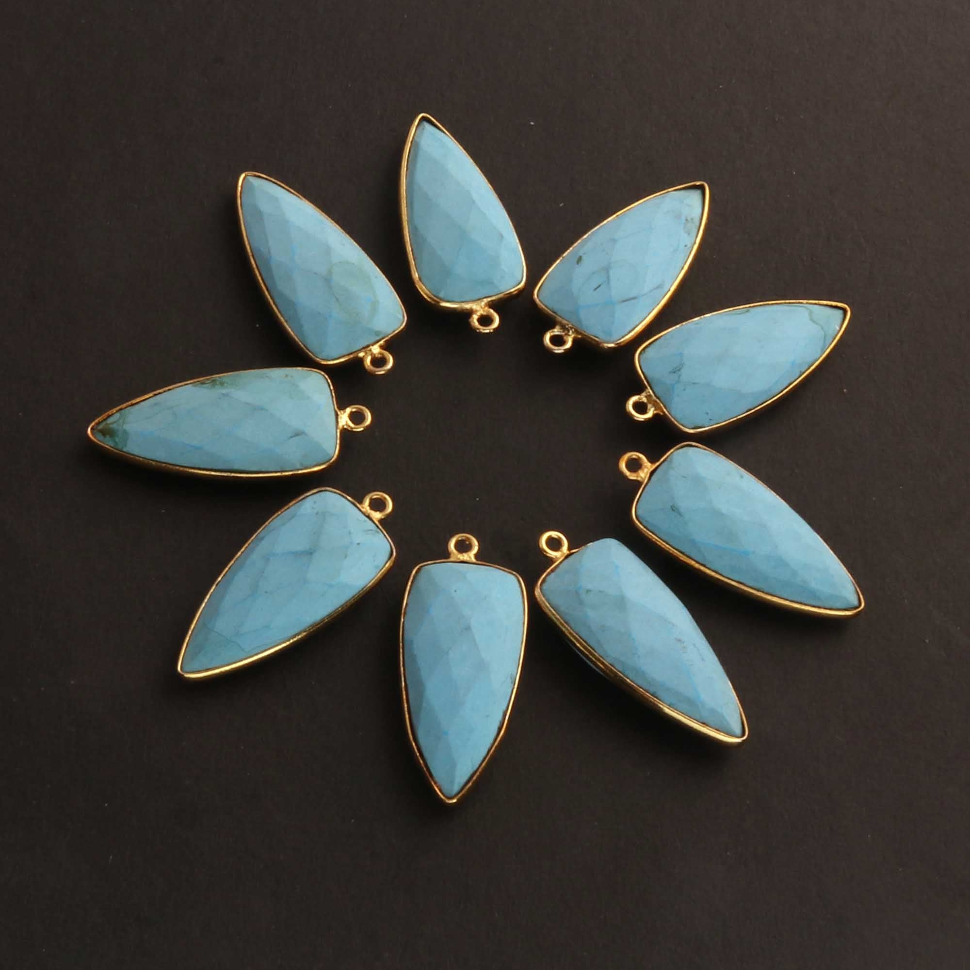 8 Pcs Turquoise Faceted Dagger  Shape 24k Gold Plated Pendant - 30mmx12mm-PC798