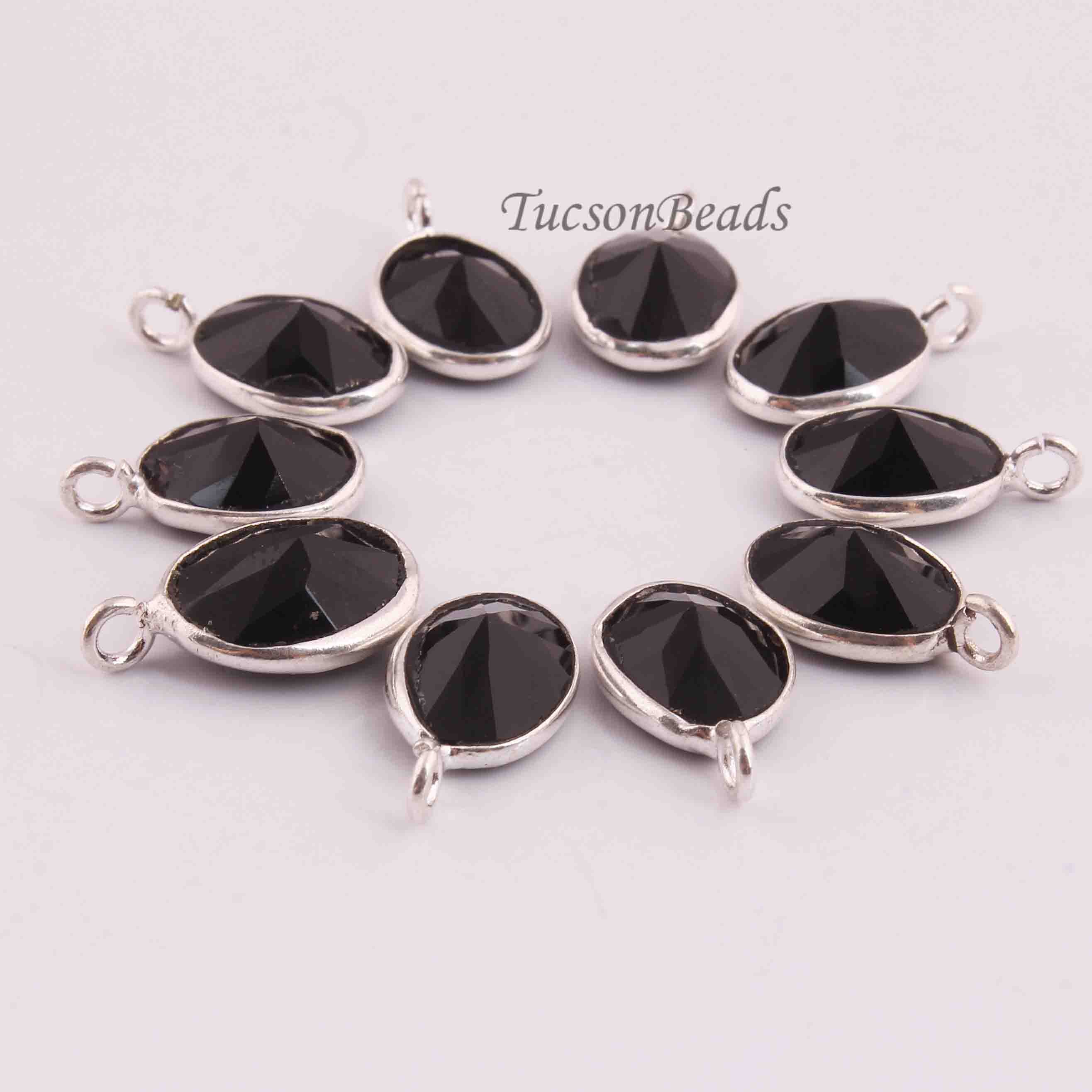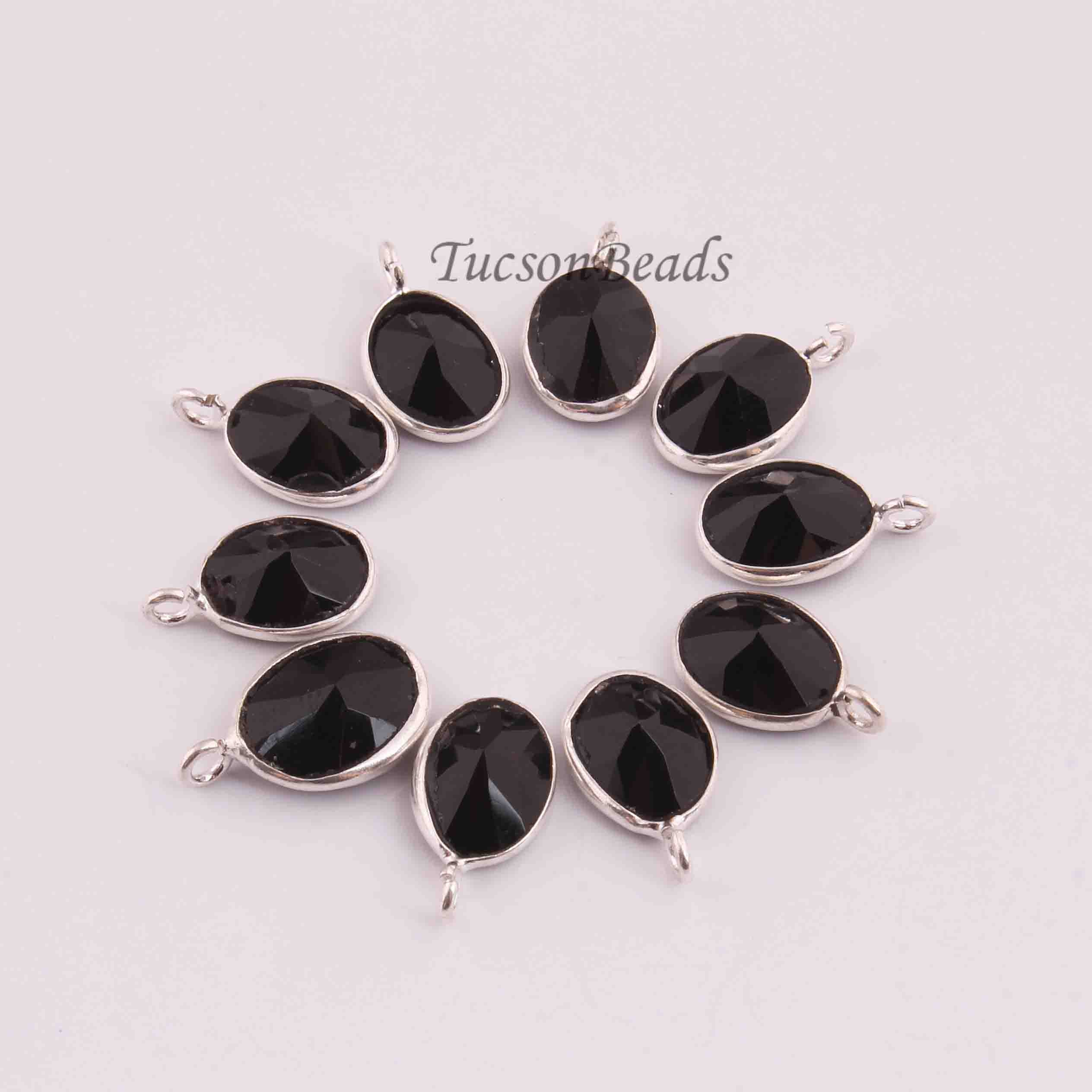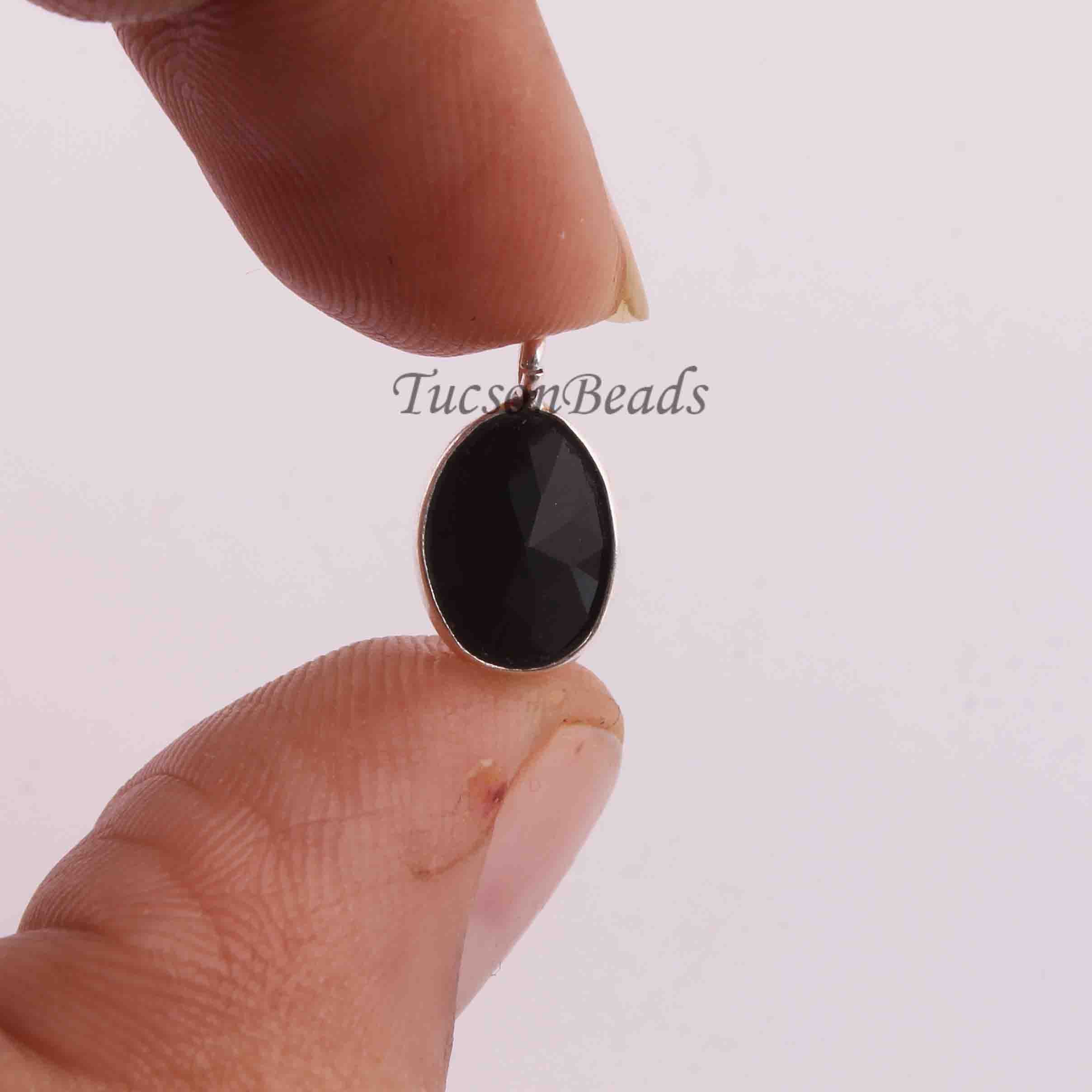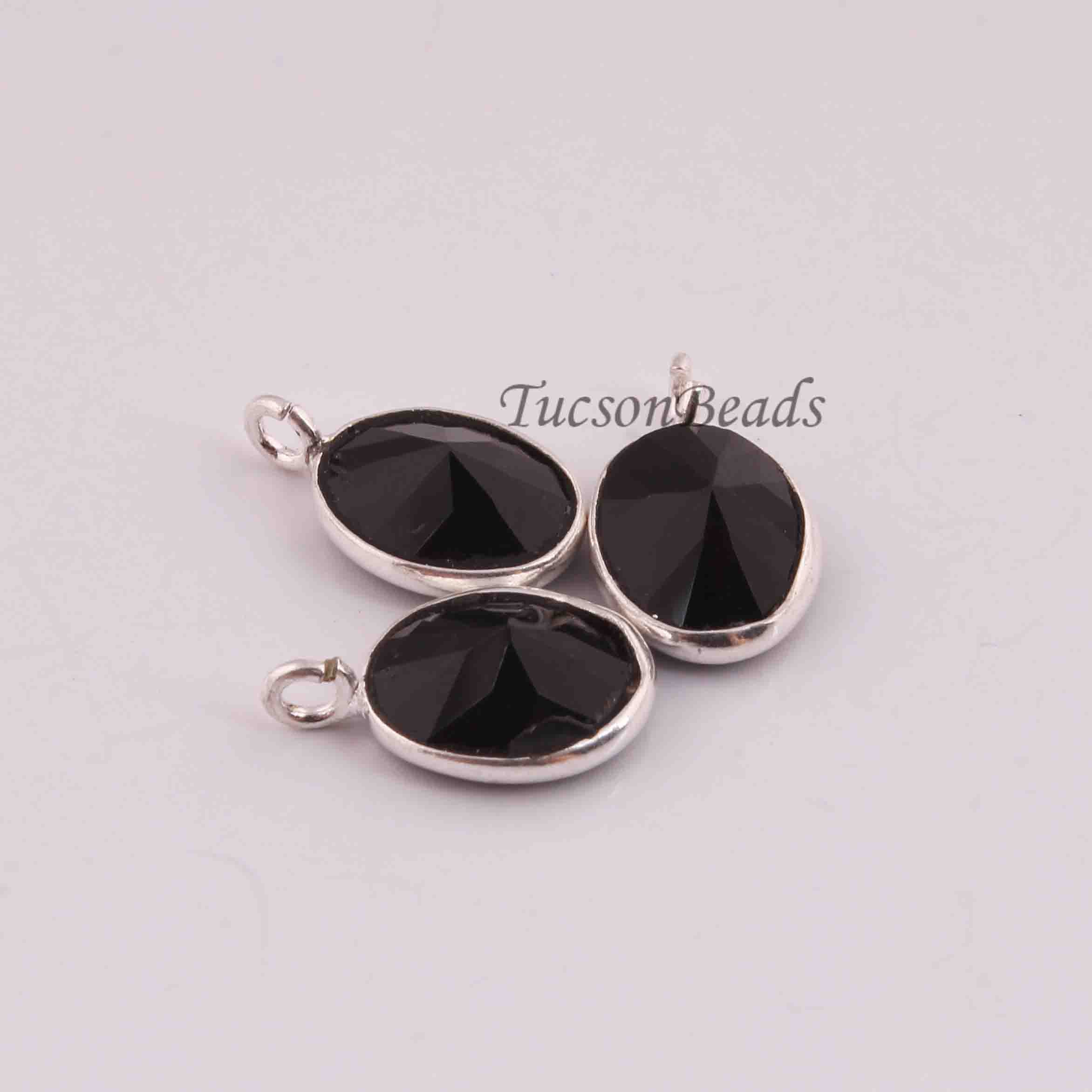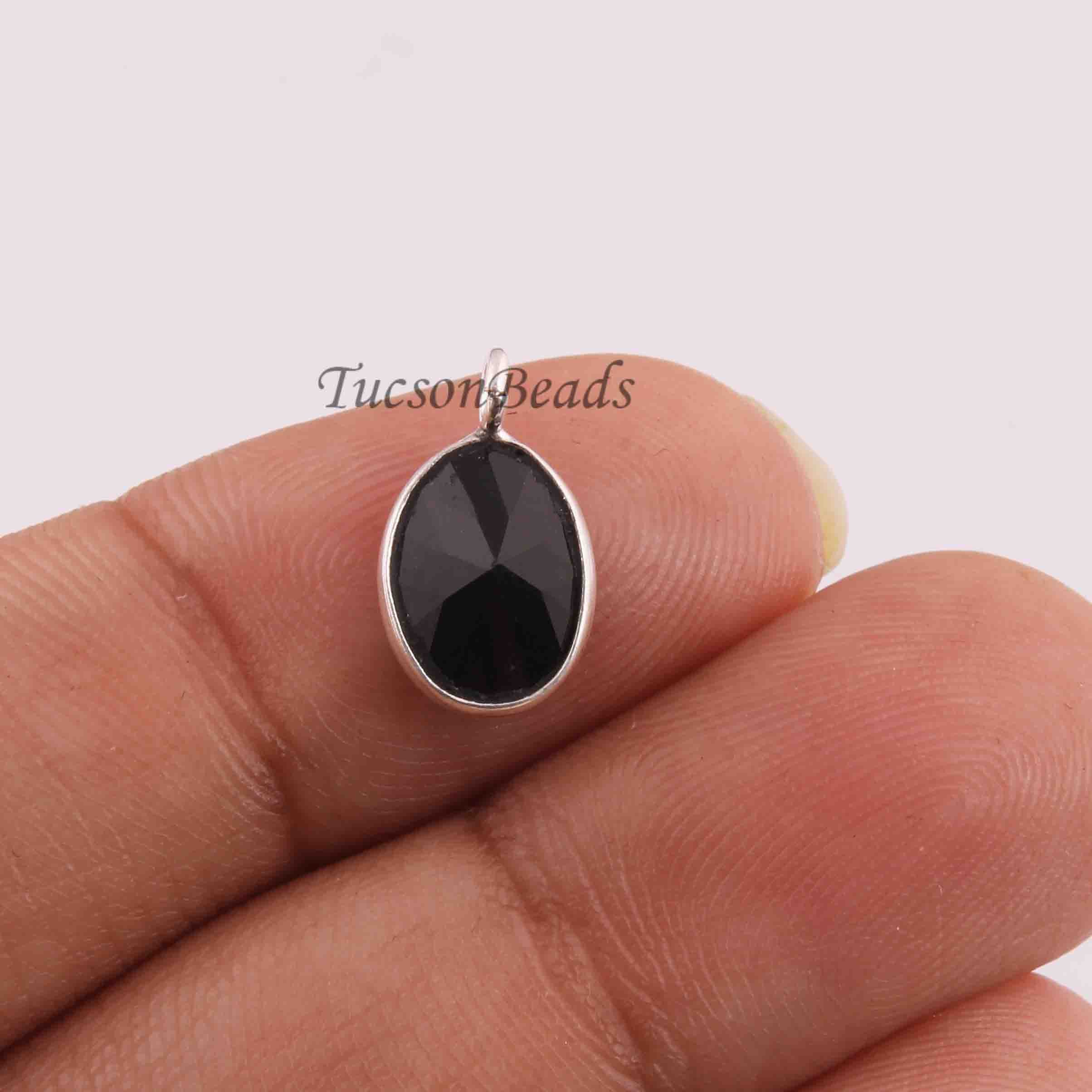 9 Pcs Black Onyx 925 Silver Plated Faceted - Oval Shape Faceted Pendant -13mmx8mm PC843